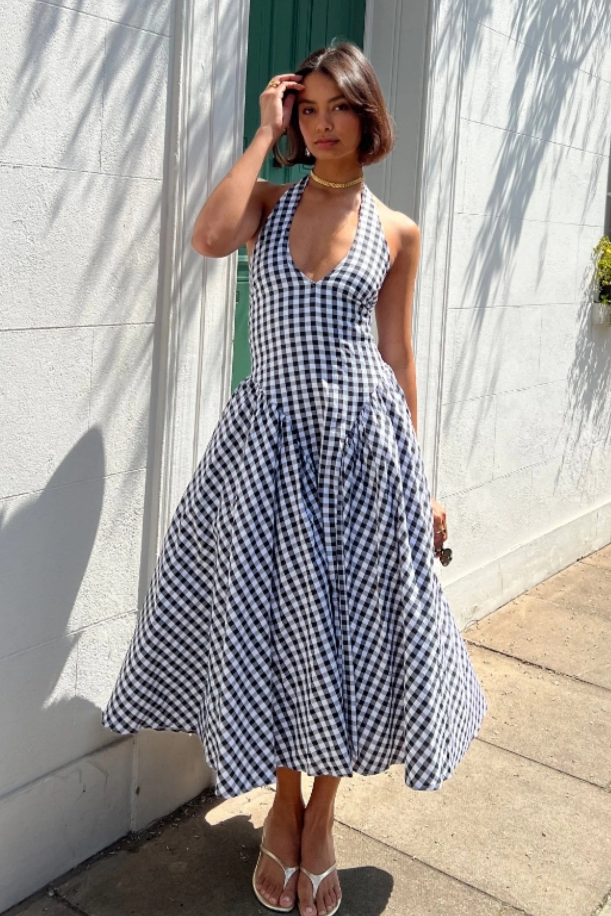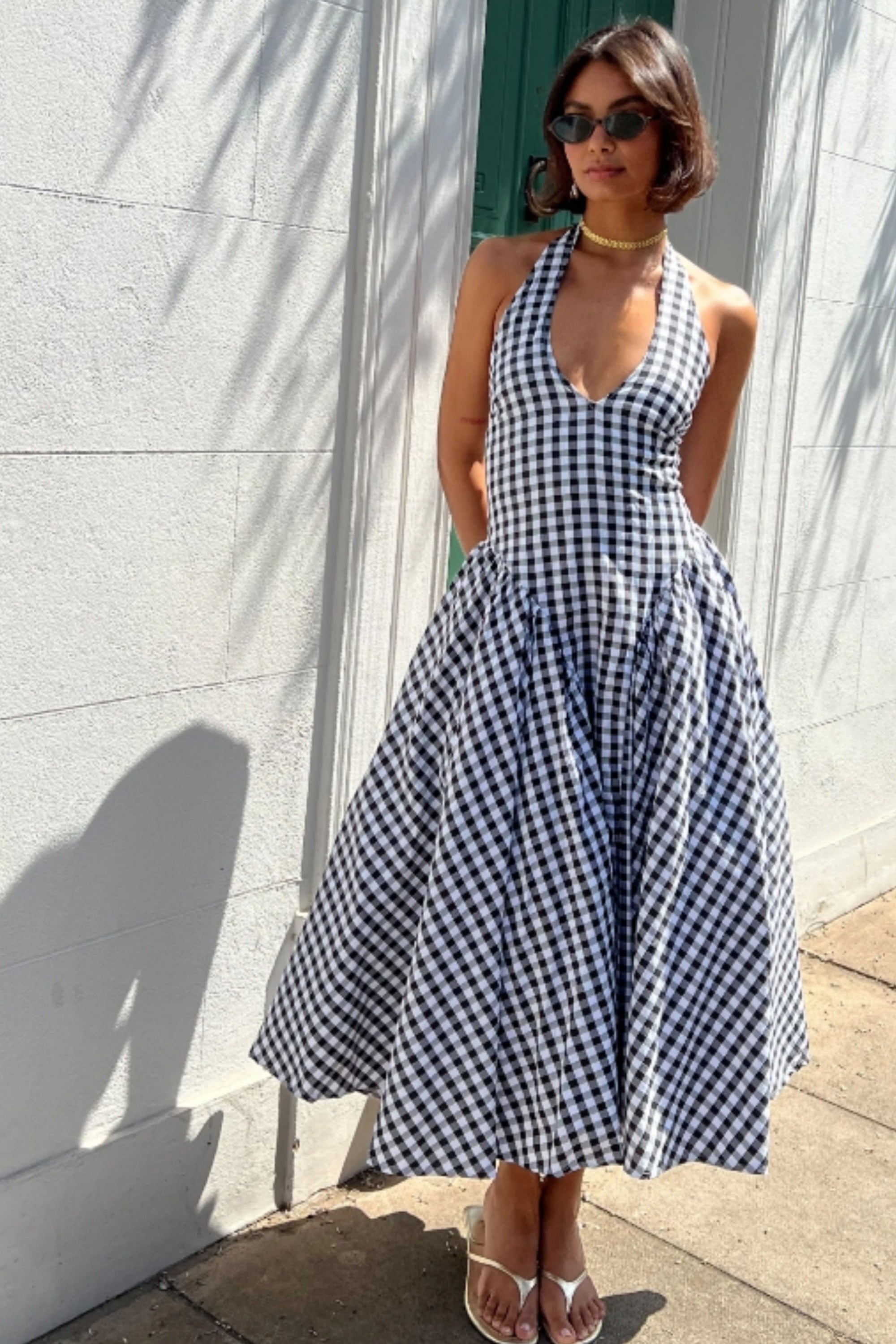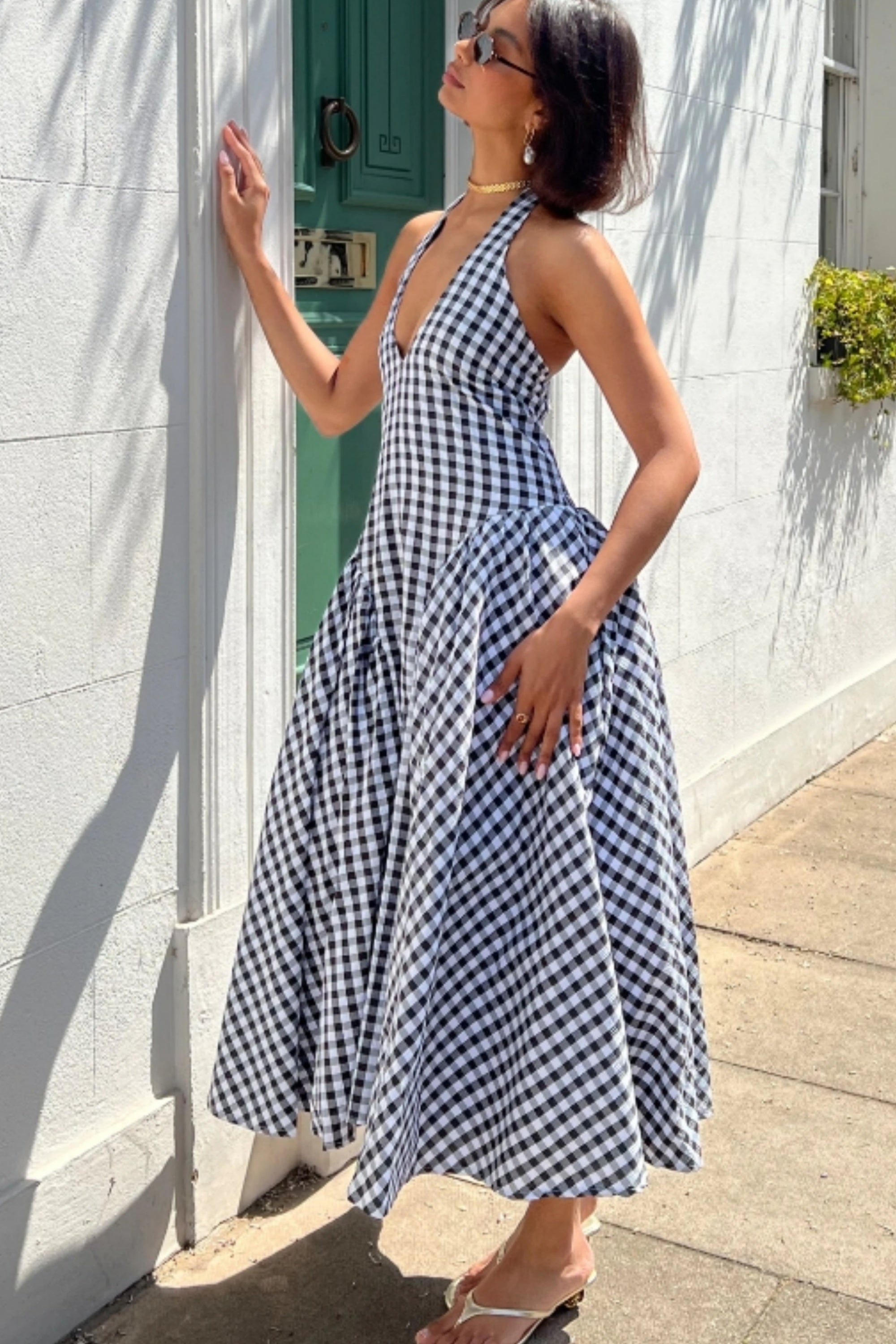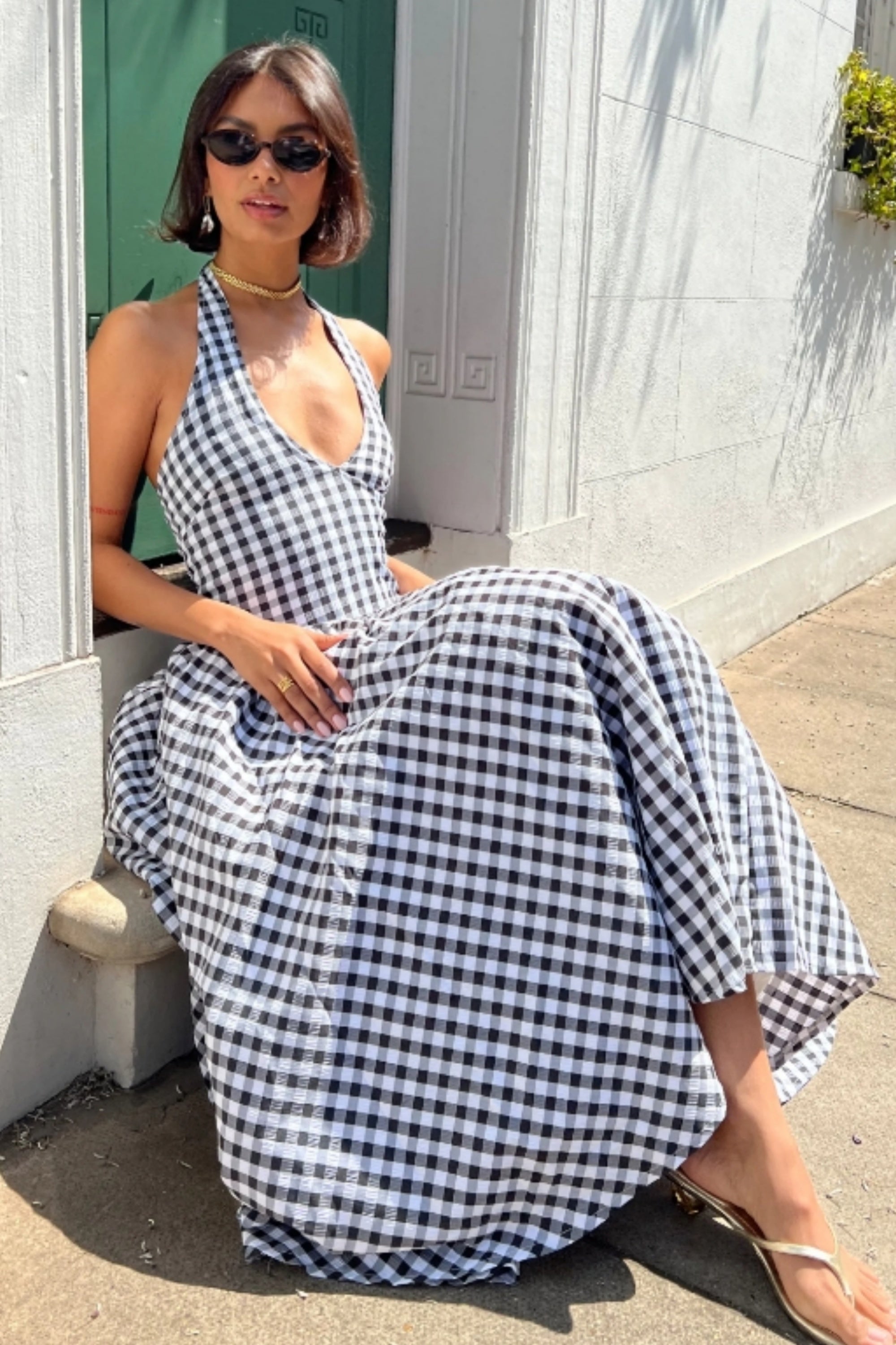 Full Pleated Ruffle Hem Maxi Dress in Black
