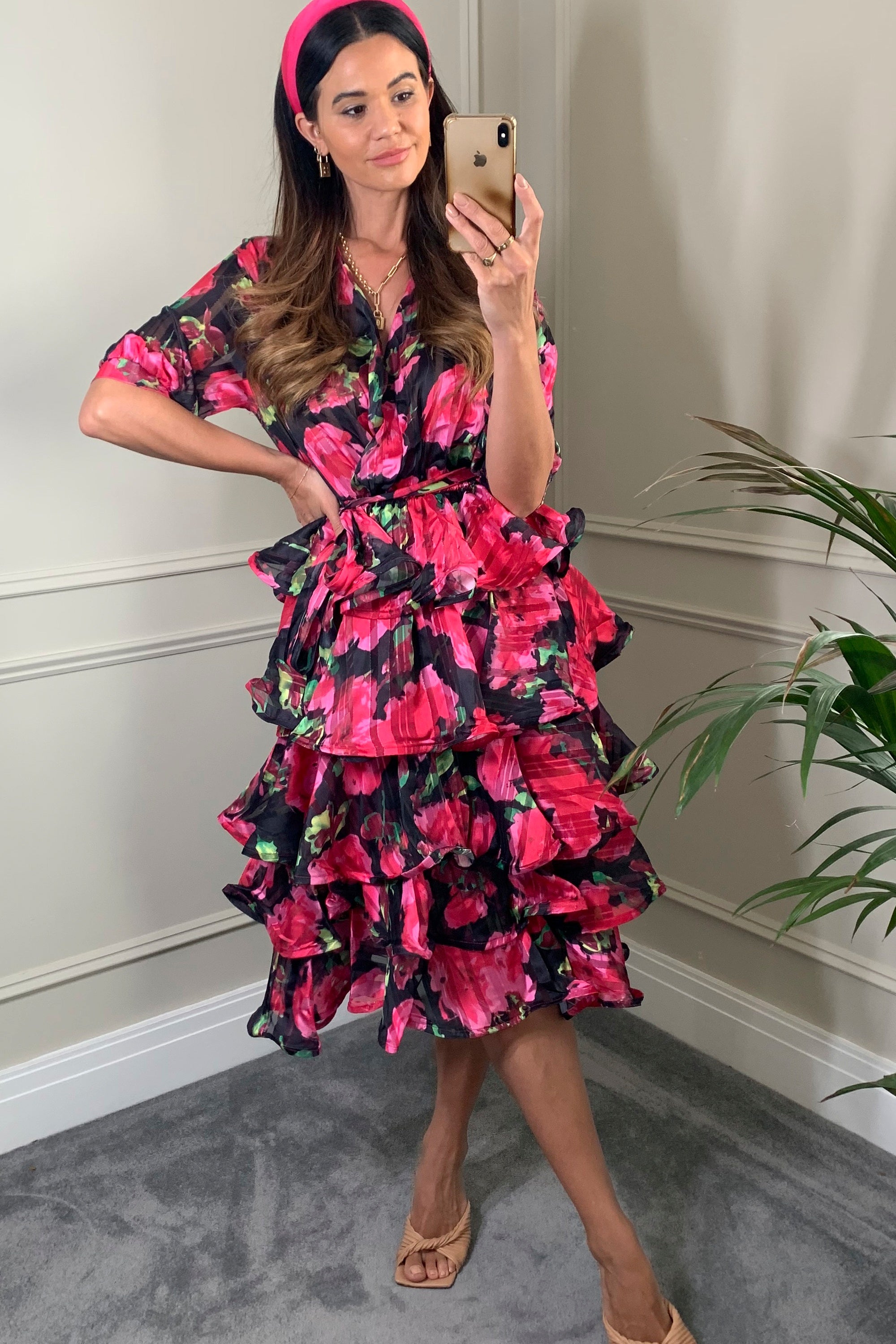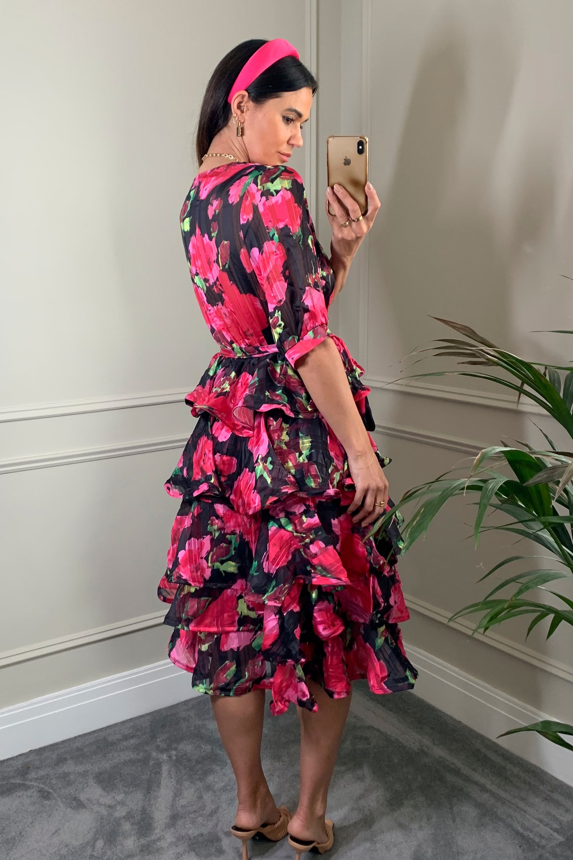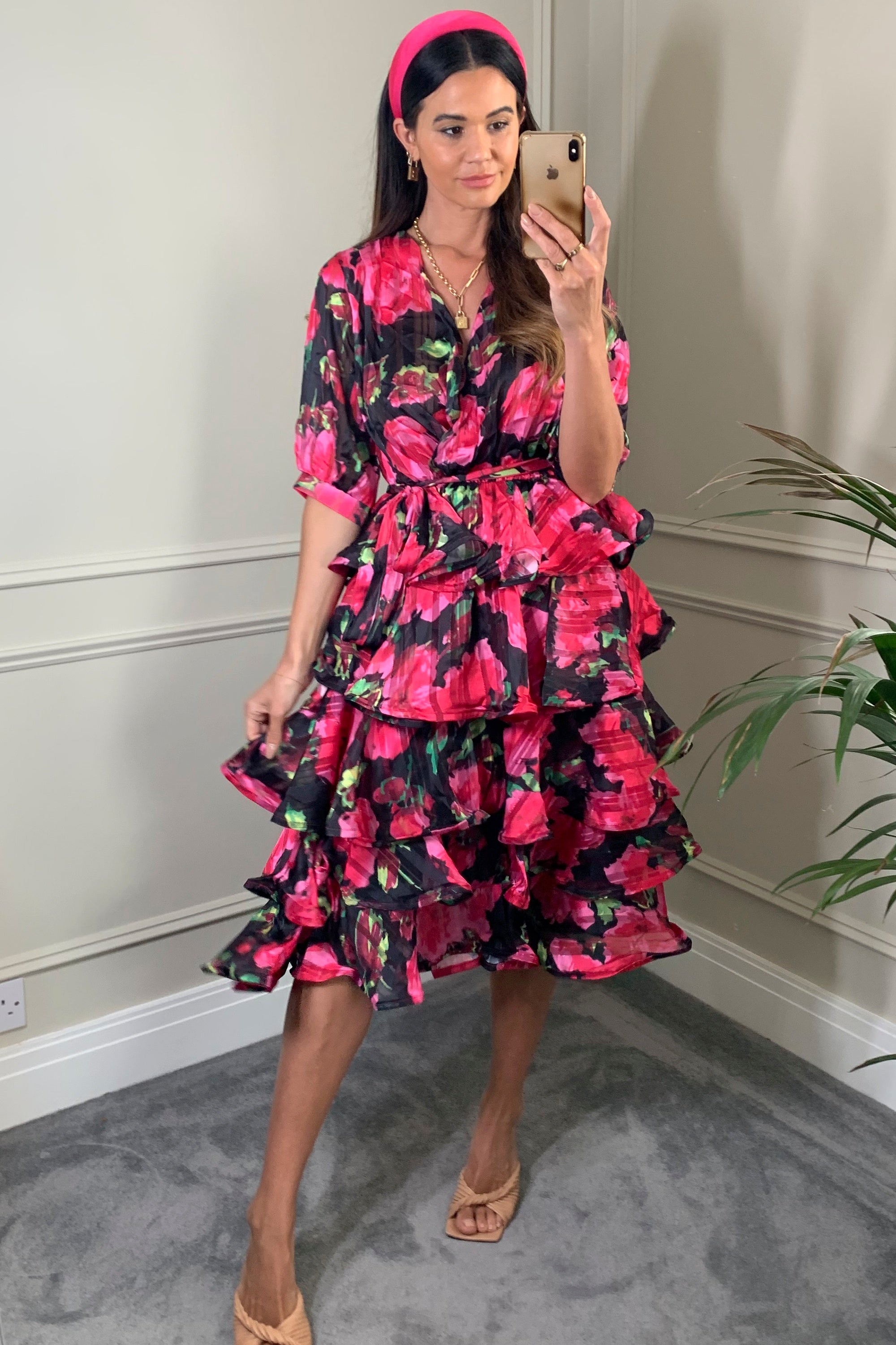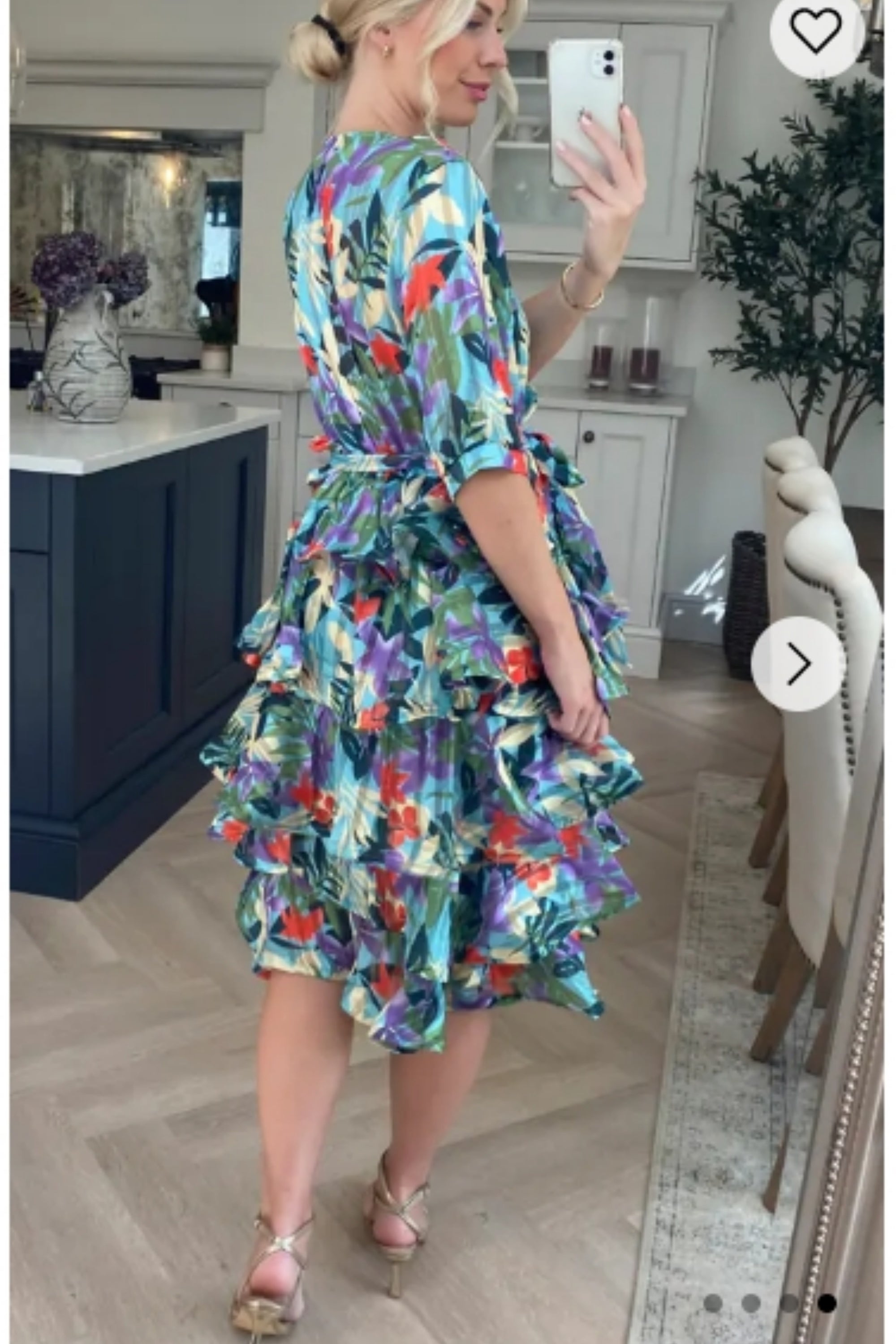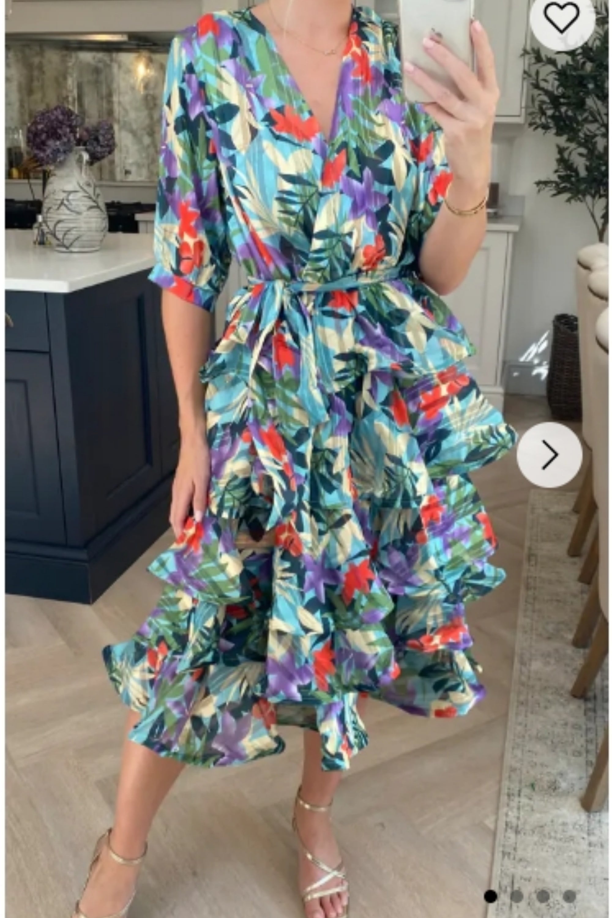 Floral Print Ruffle Multi Layer Hem Design Dress