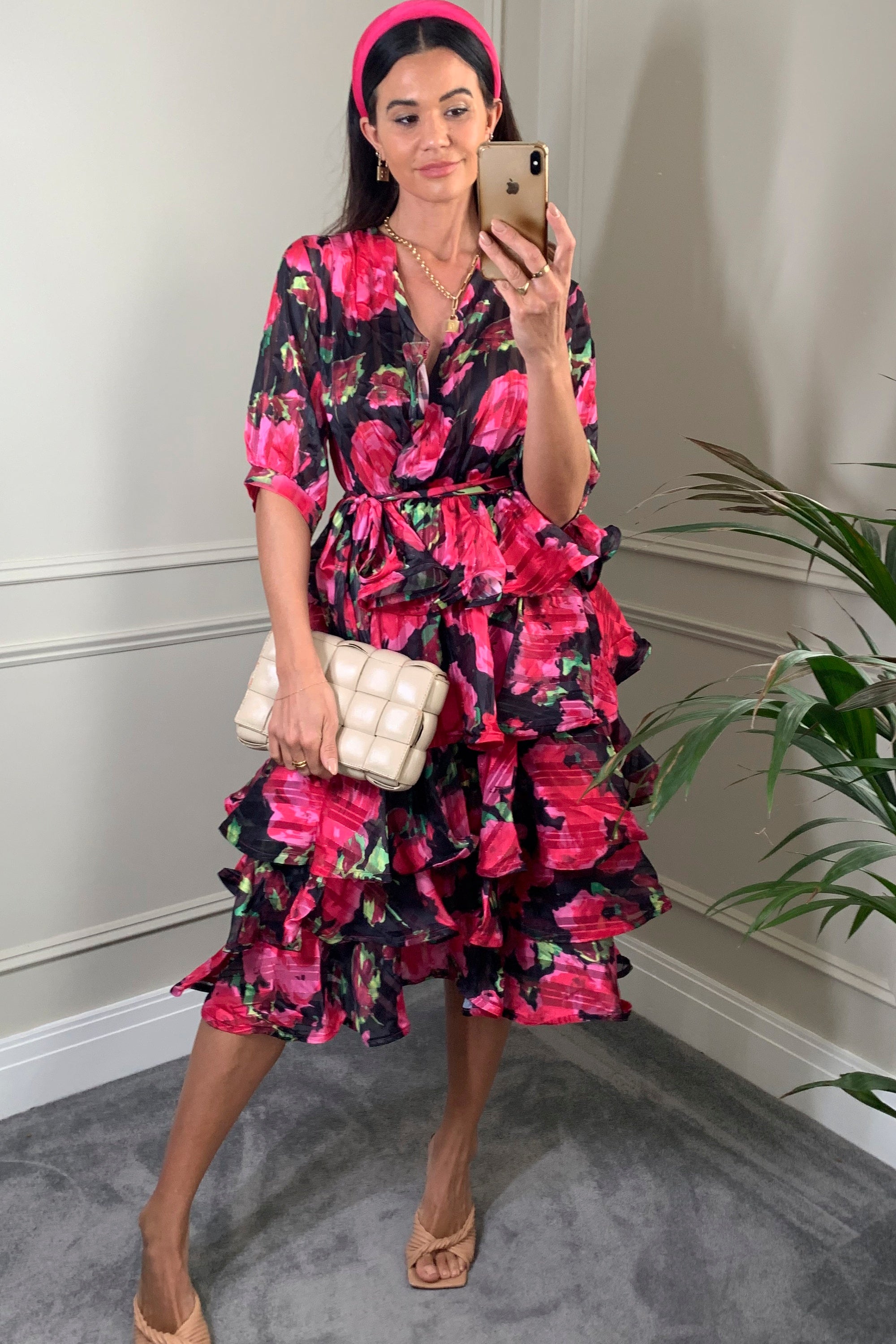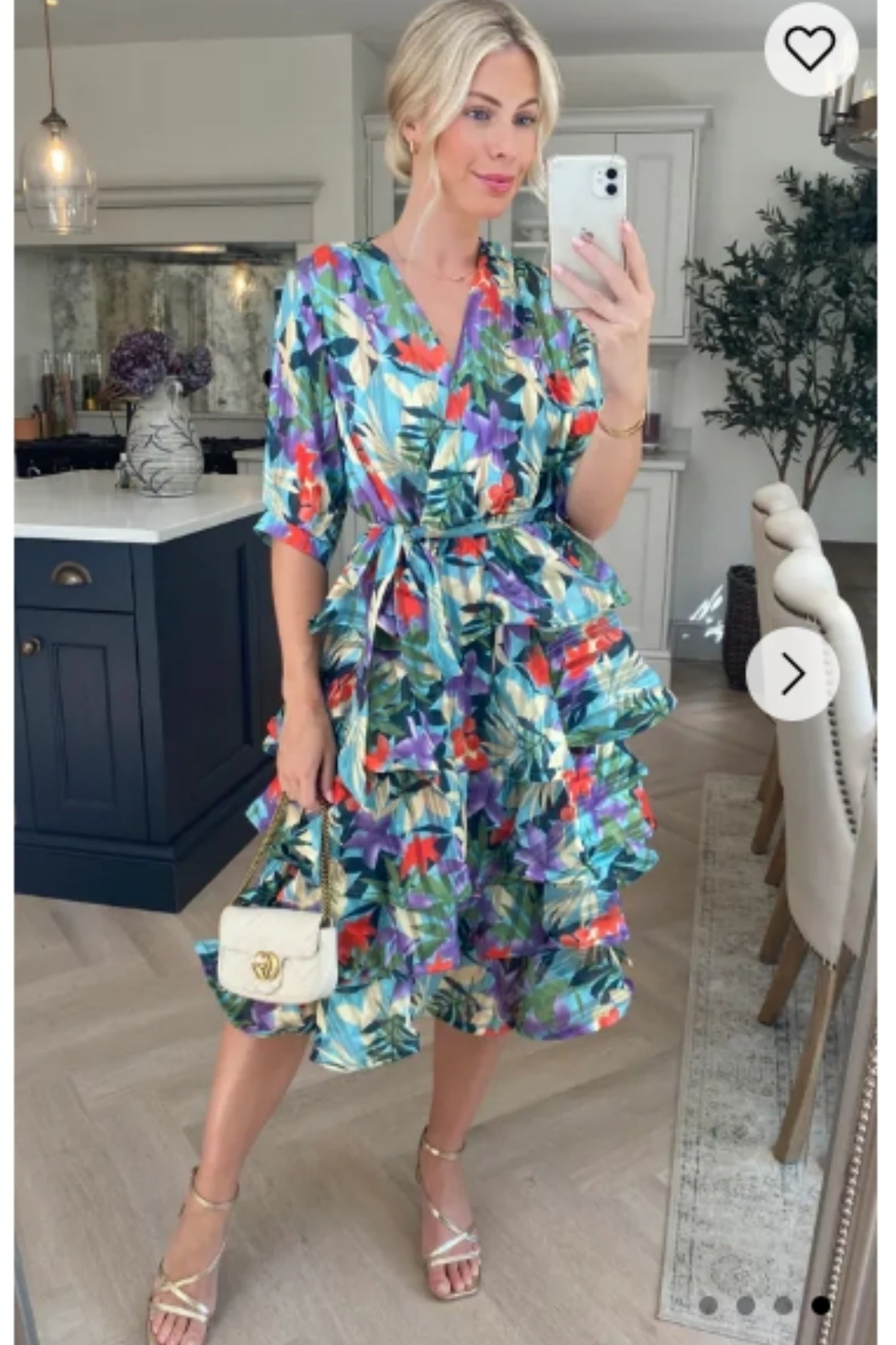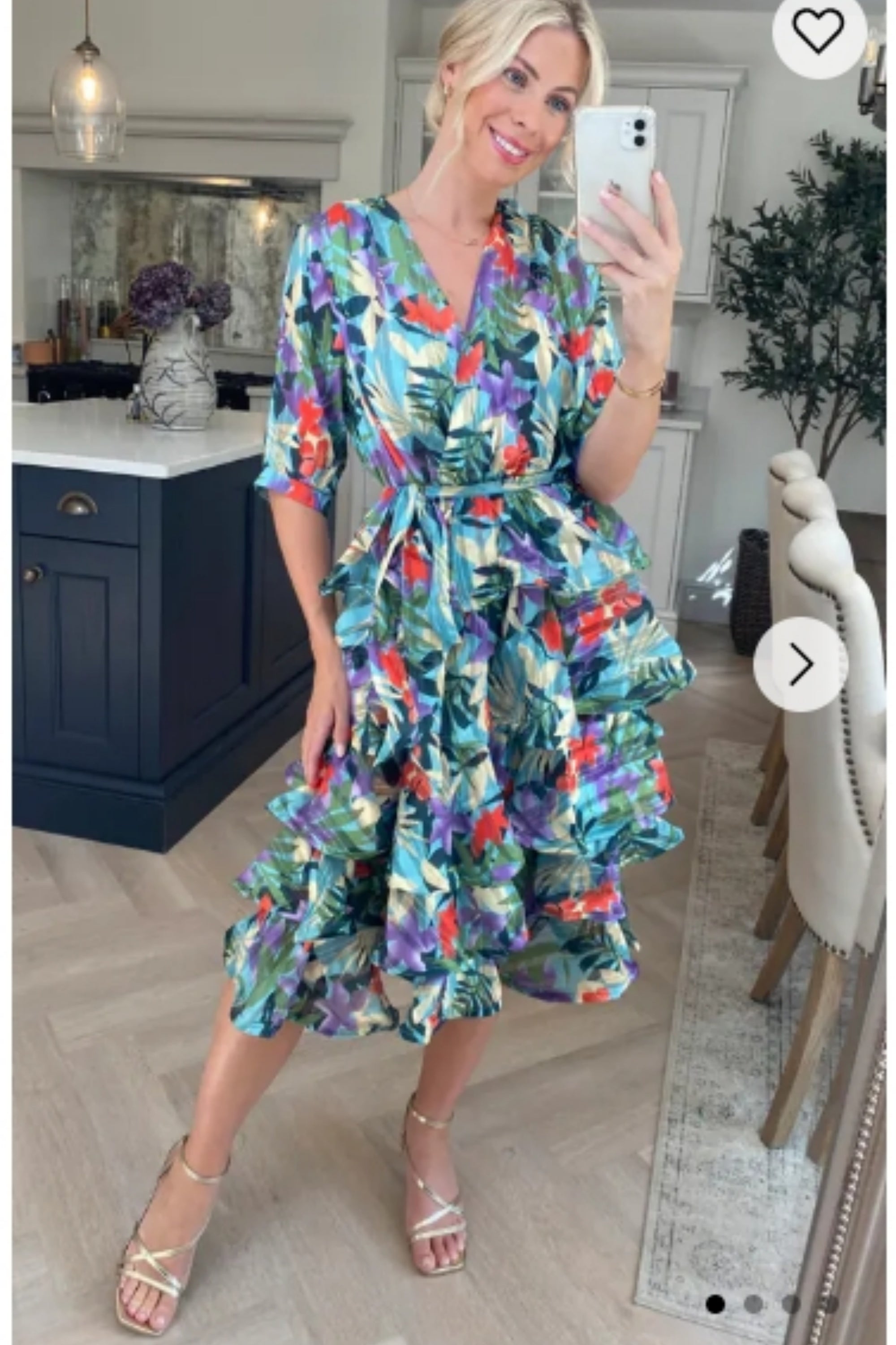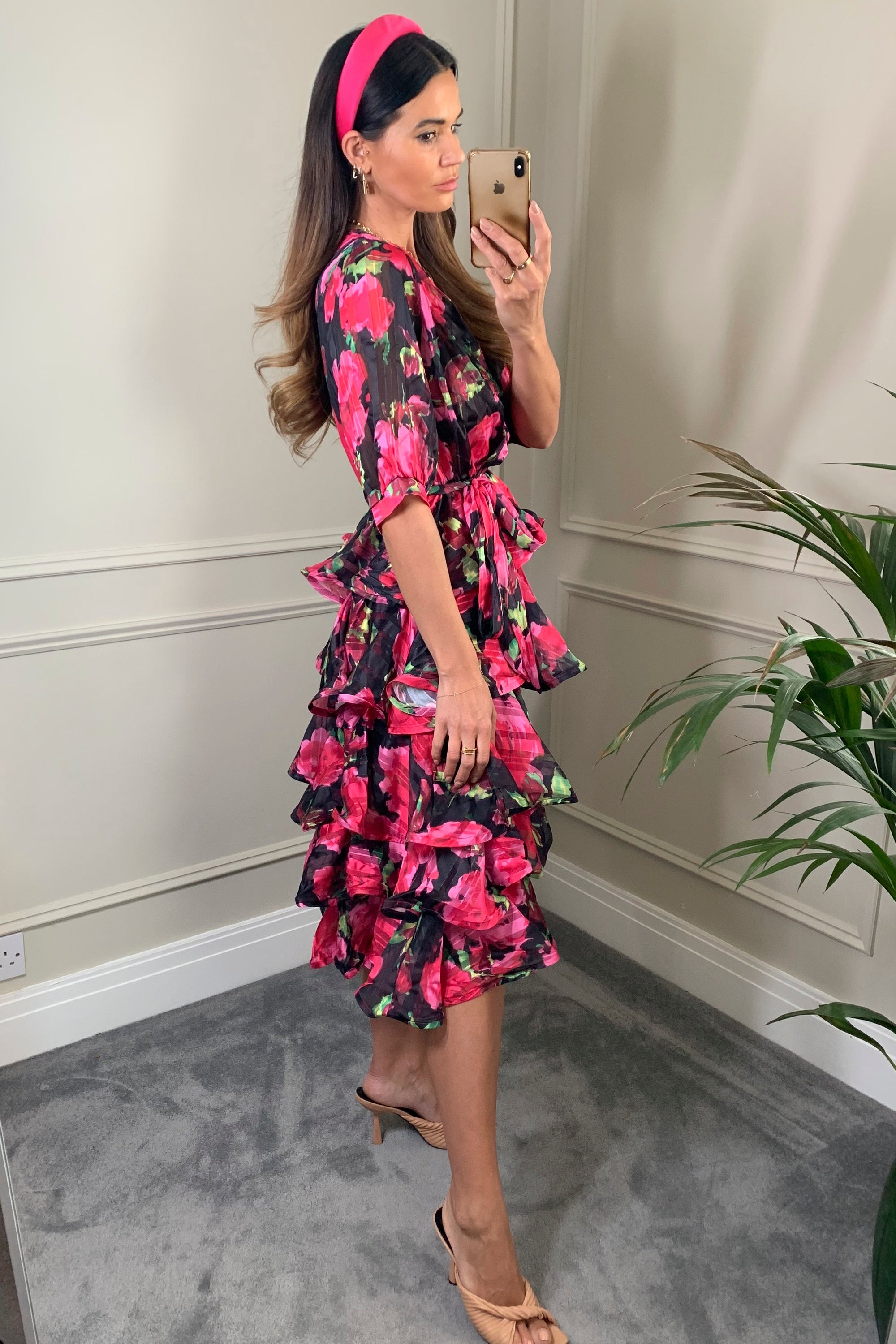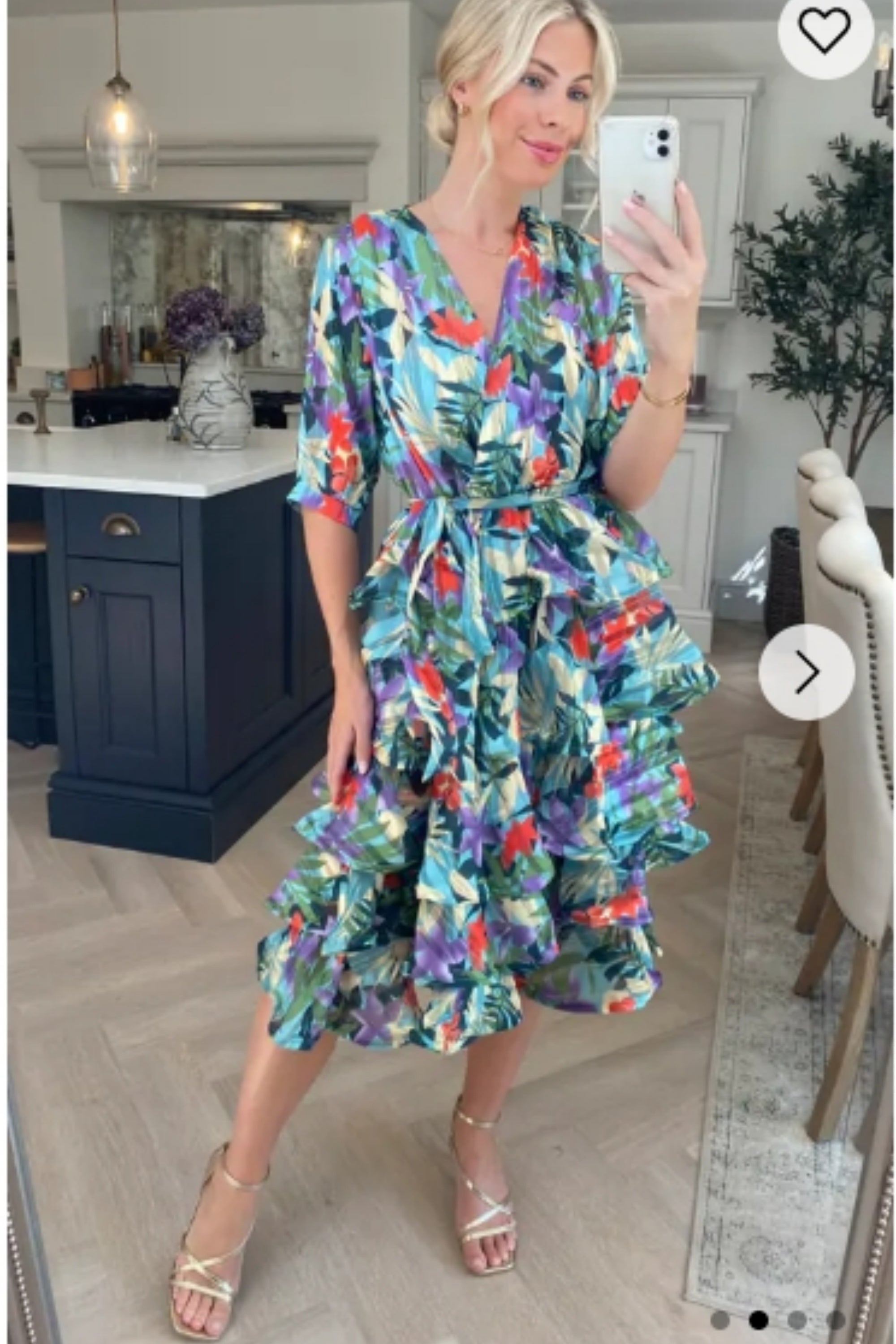 Floral Print Ruffle Multi Layer Hem Design Dress
