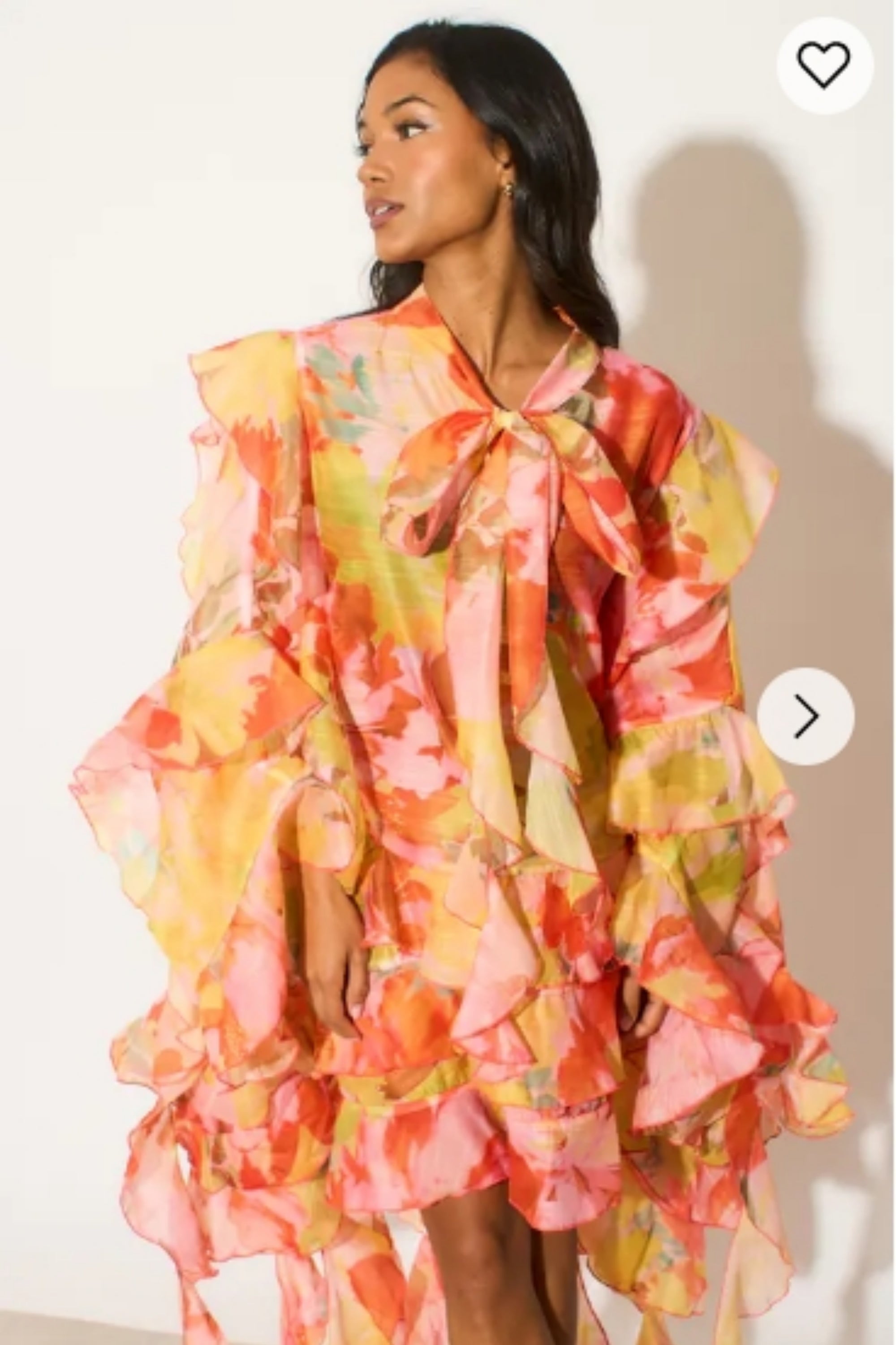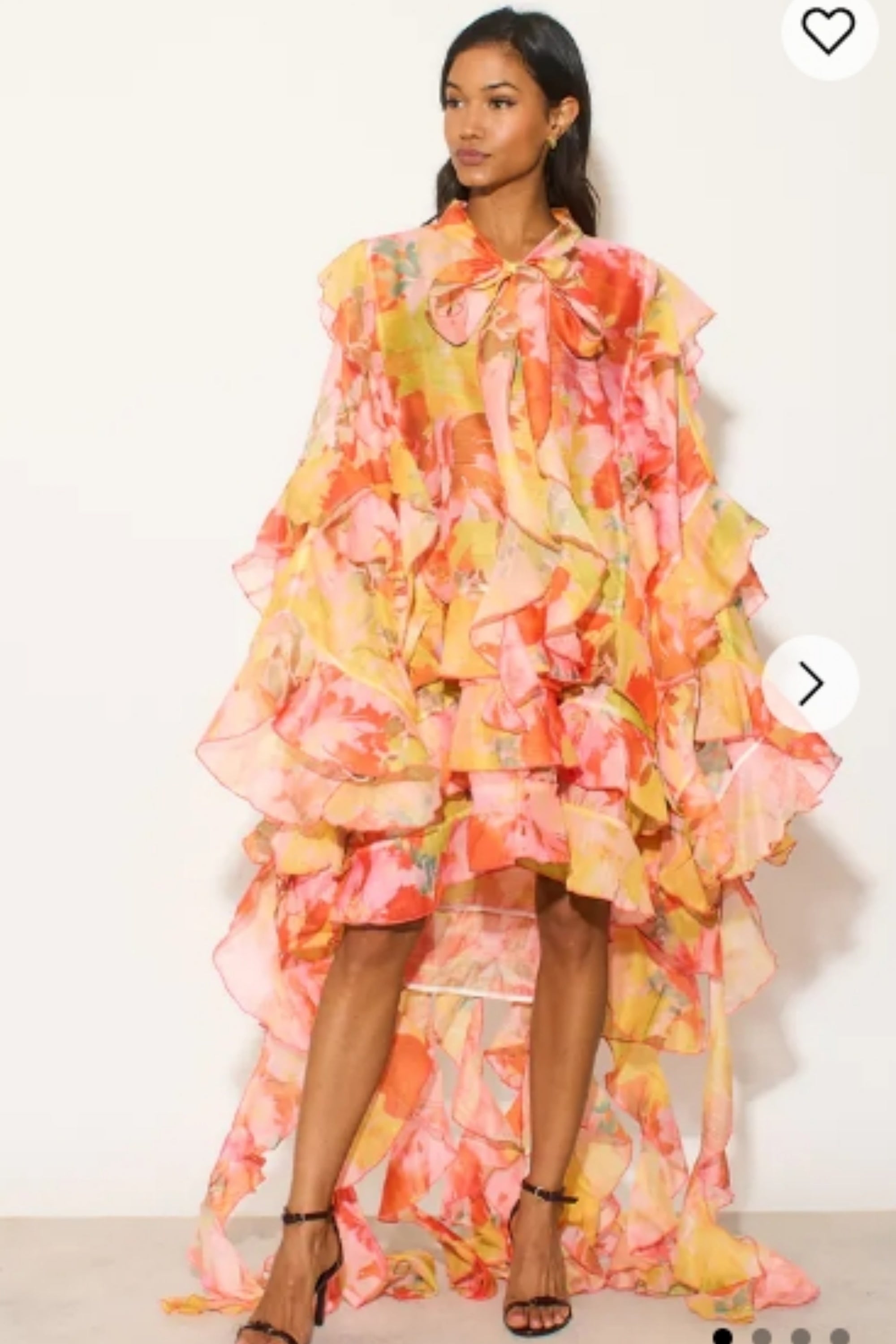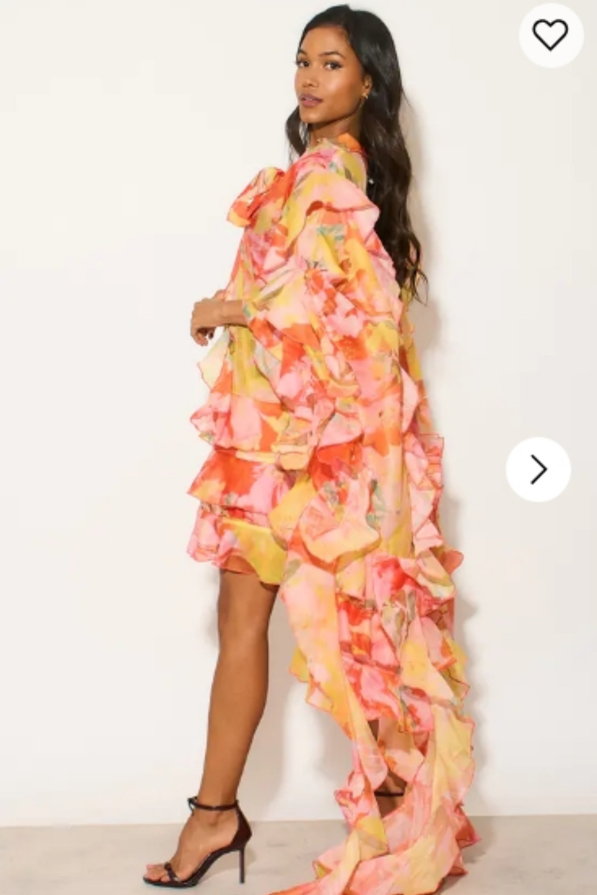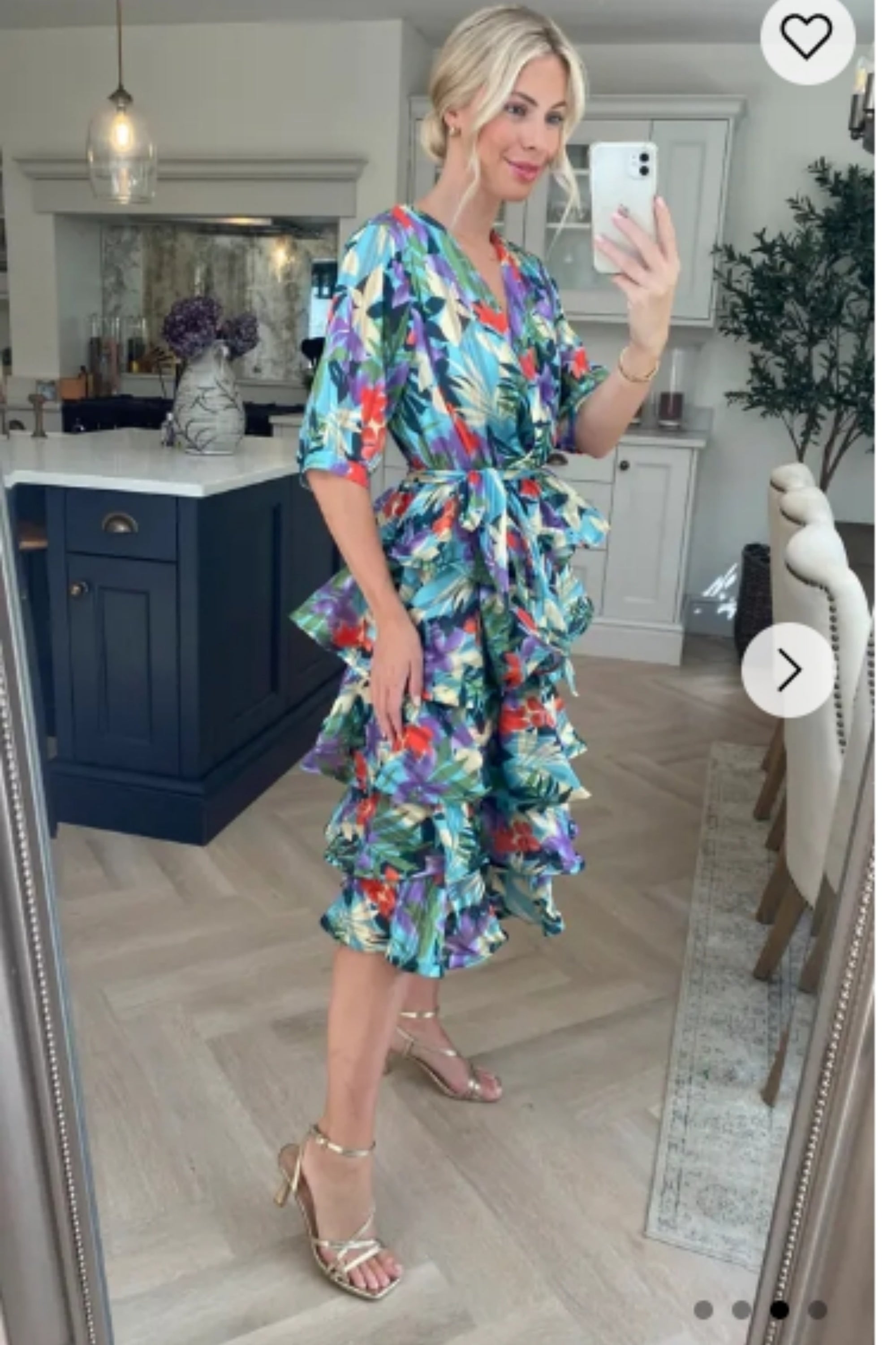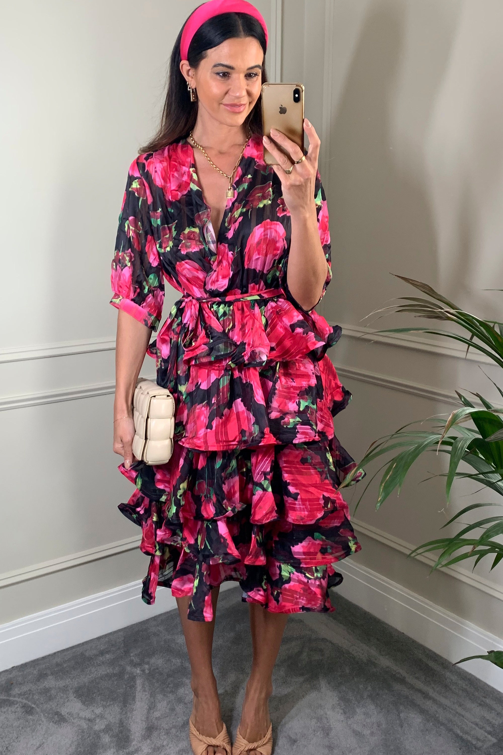 Floral Print Ruffle Multi Layer Hem Design Dress