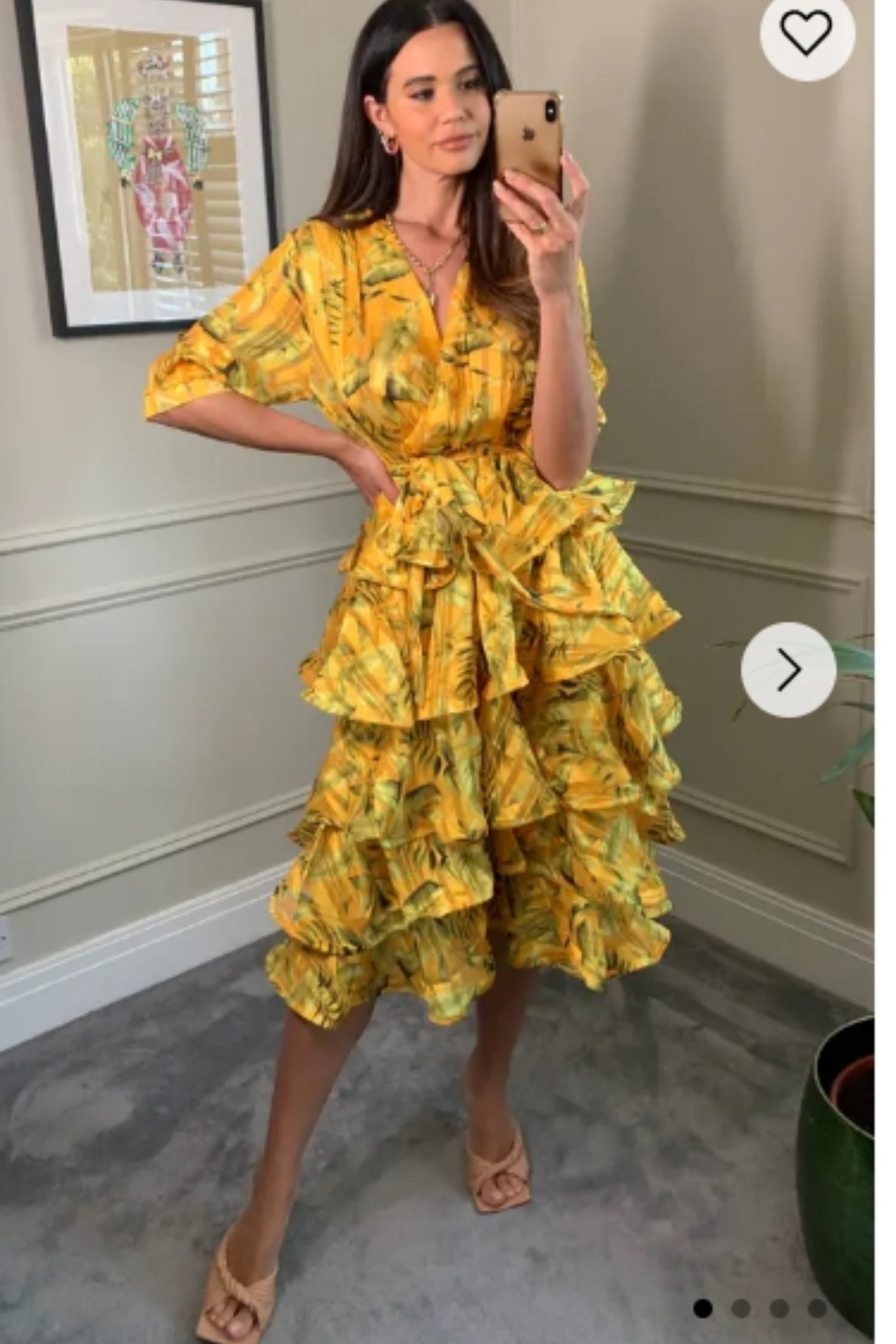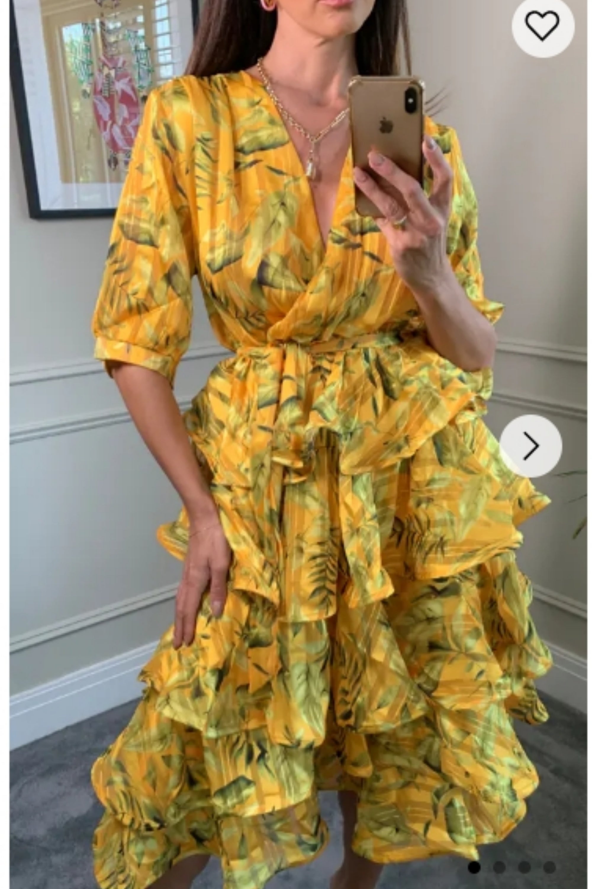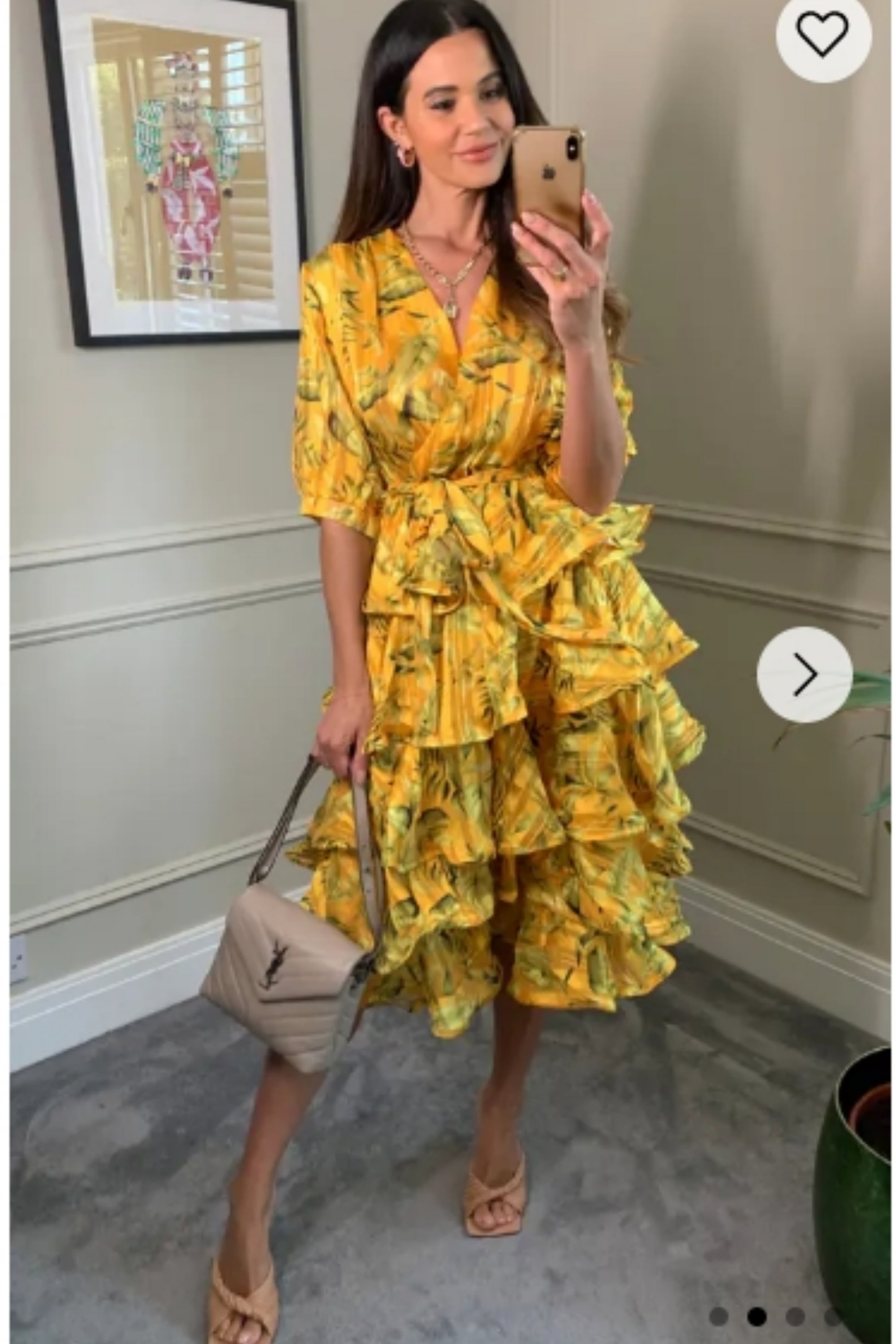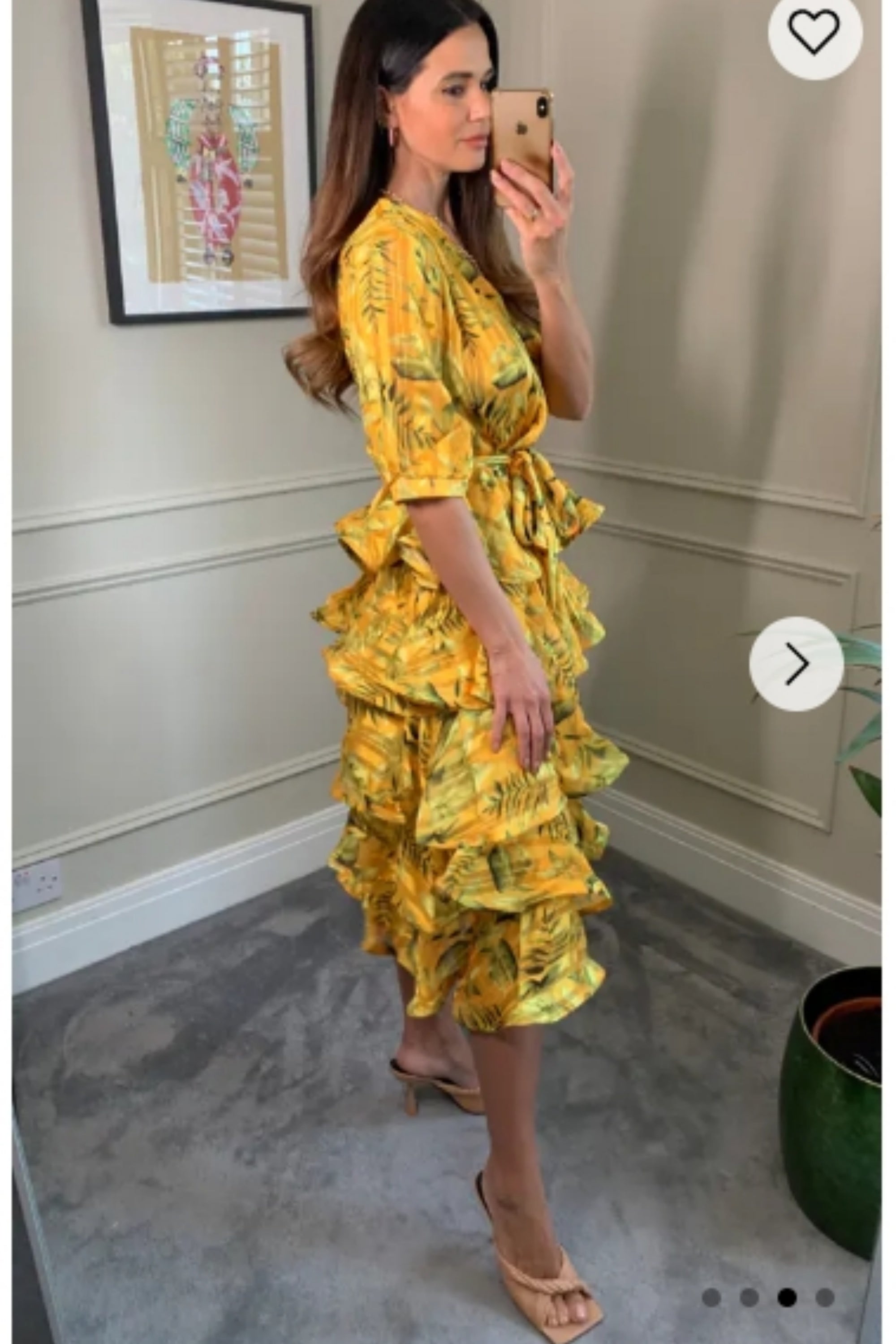 Floral Print Ruffle Multi Layer Hem Design Dress In Yellow