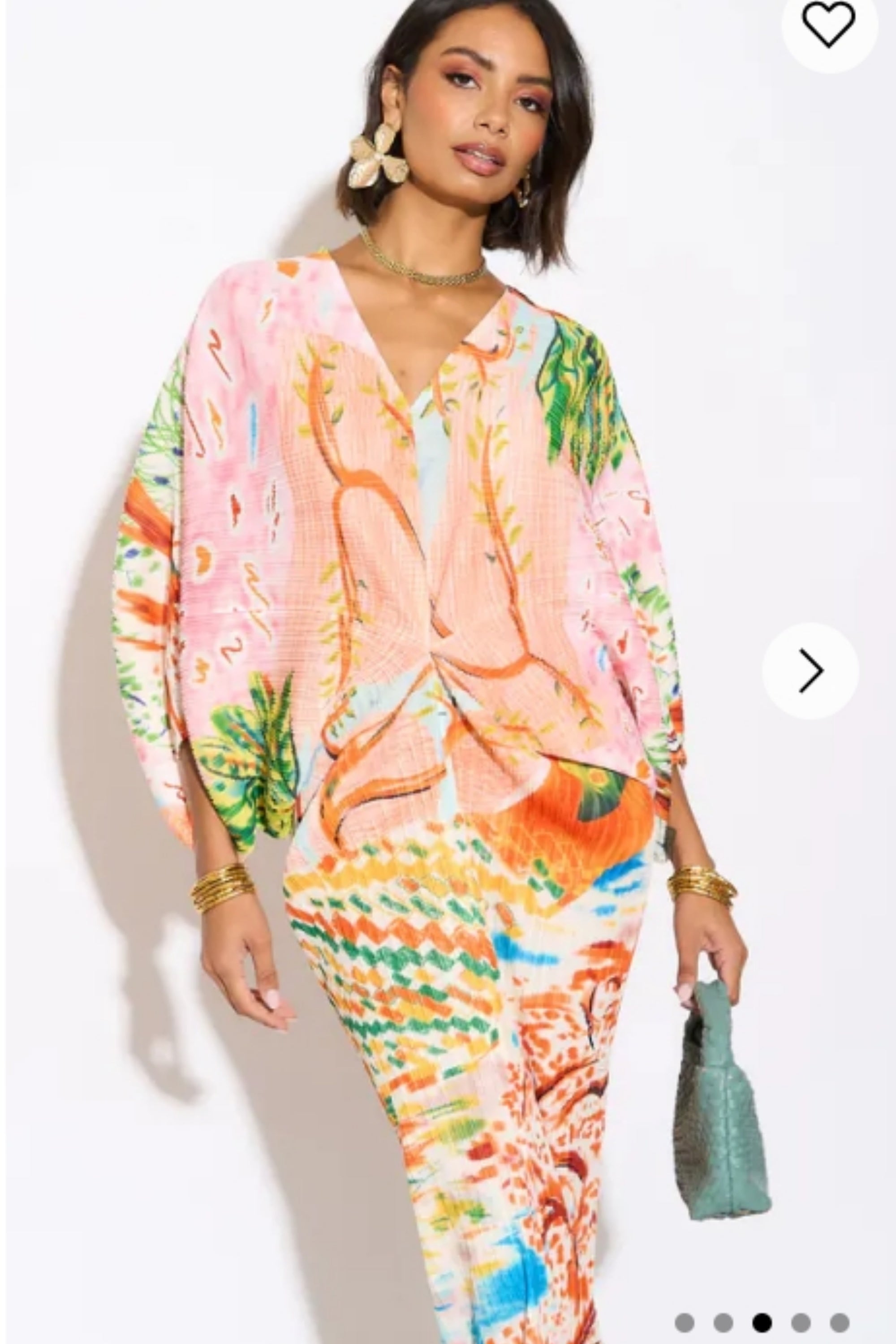 Oversized Full pleated Tie Dye color Cardigan in Red/Orange
