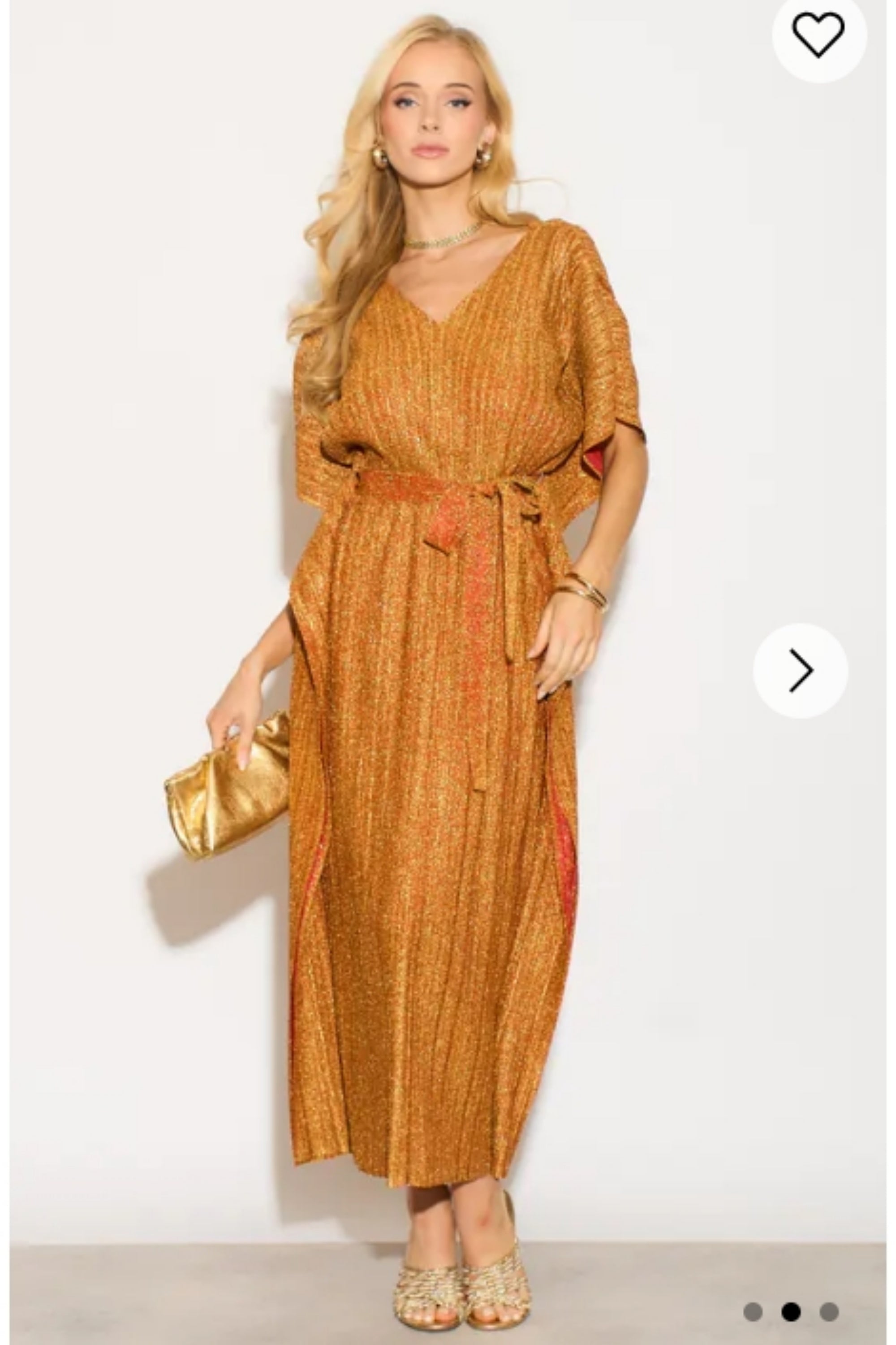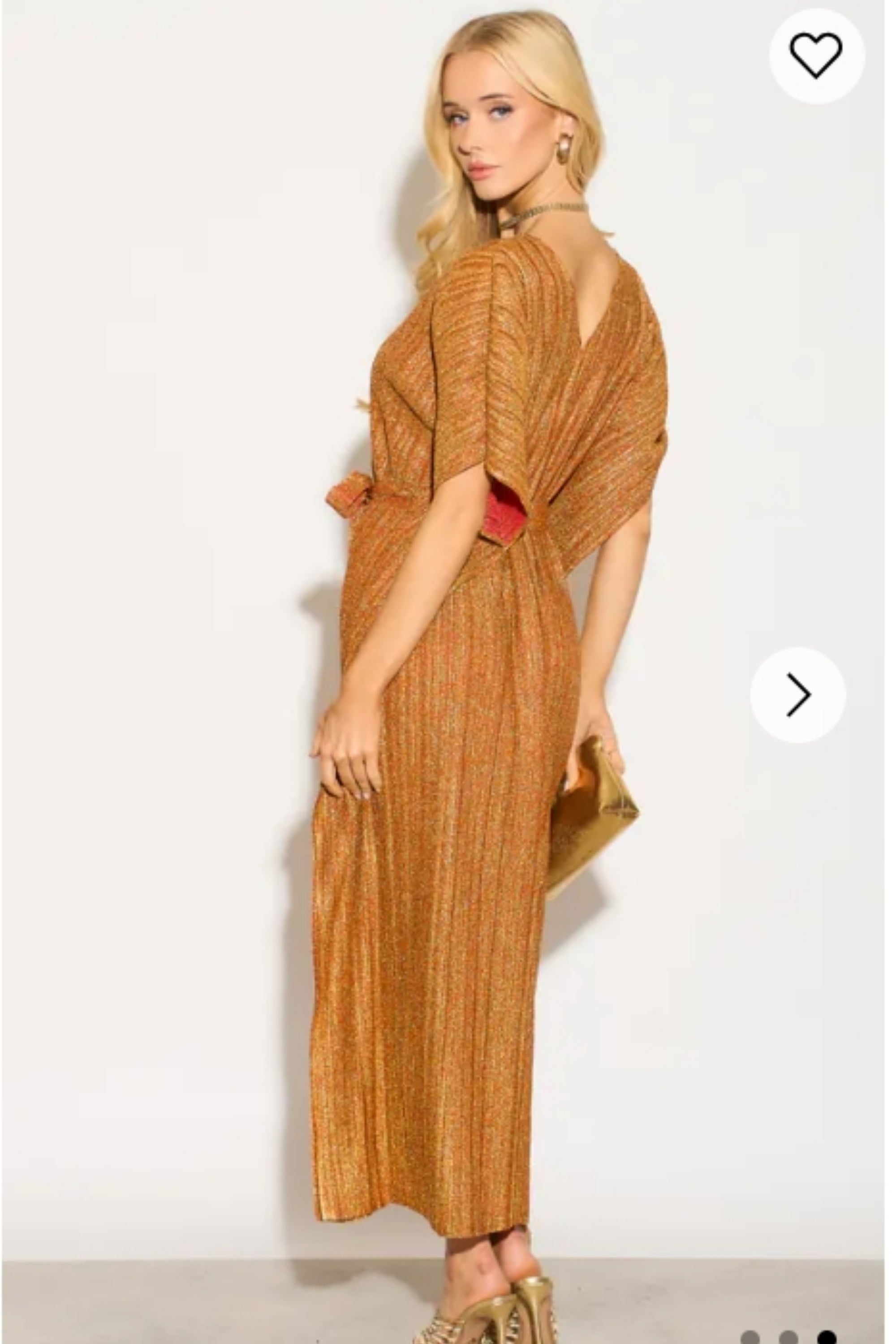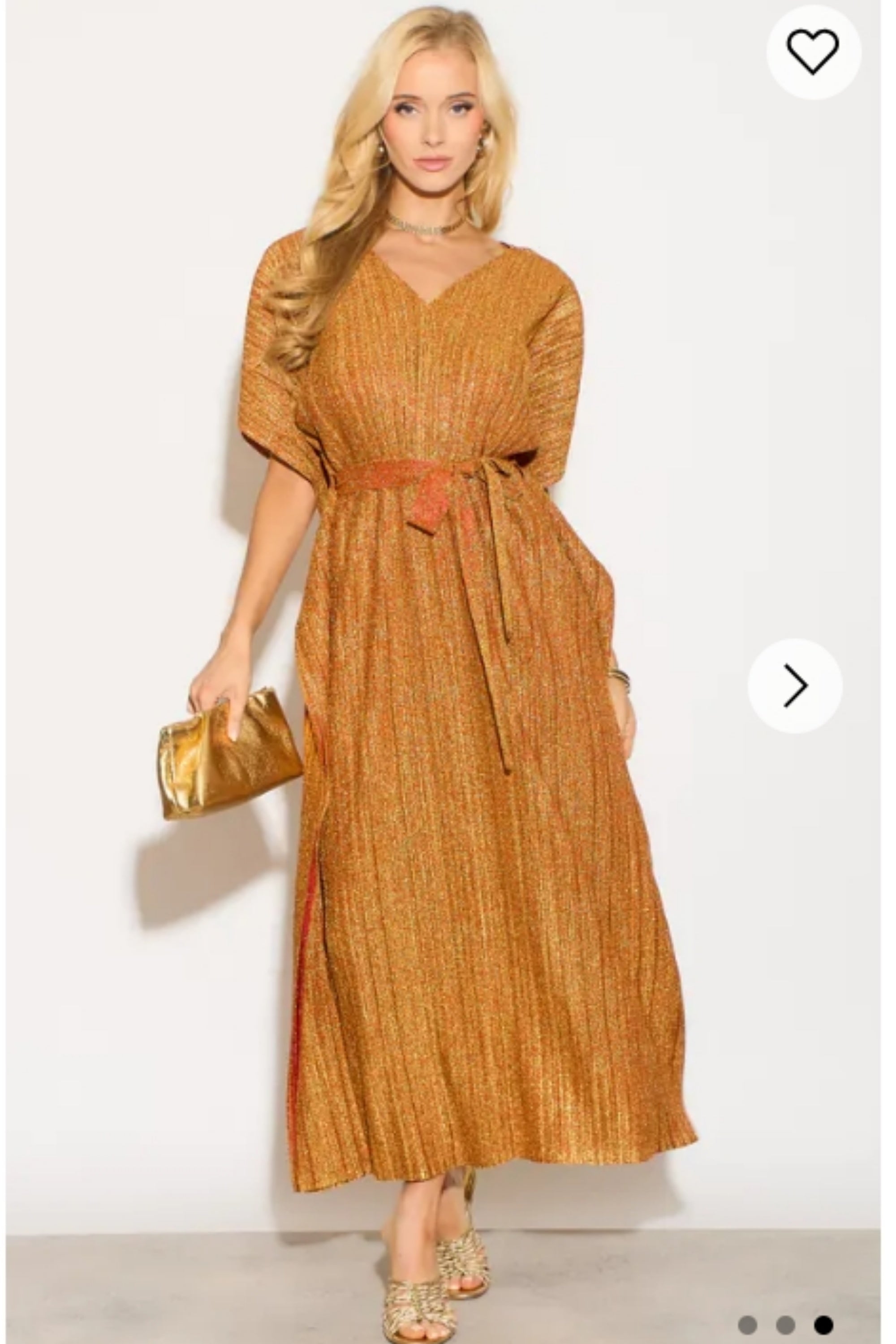 Oversized Metallic pleated kaftan maxi dress in Gold