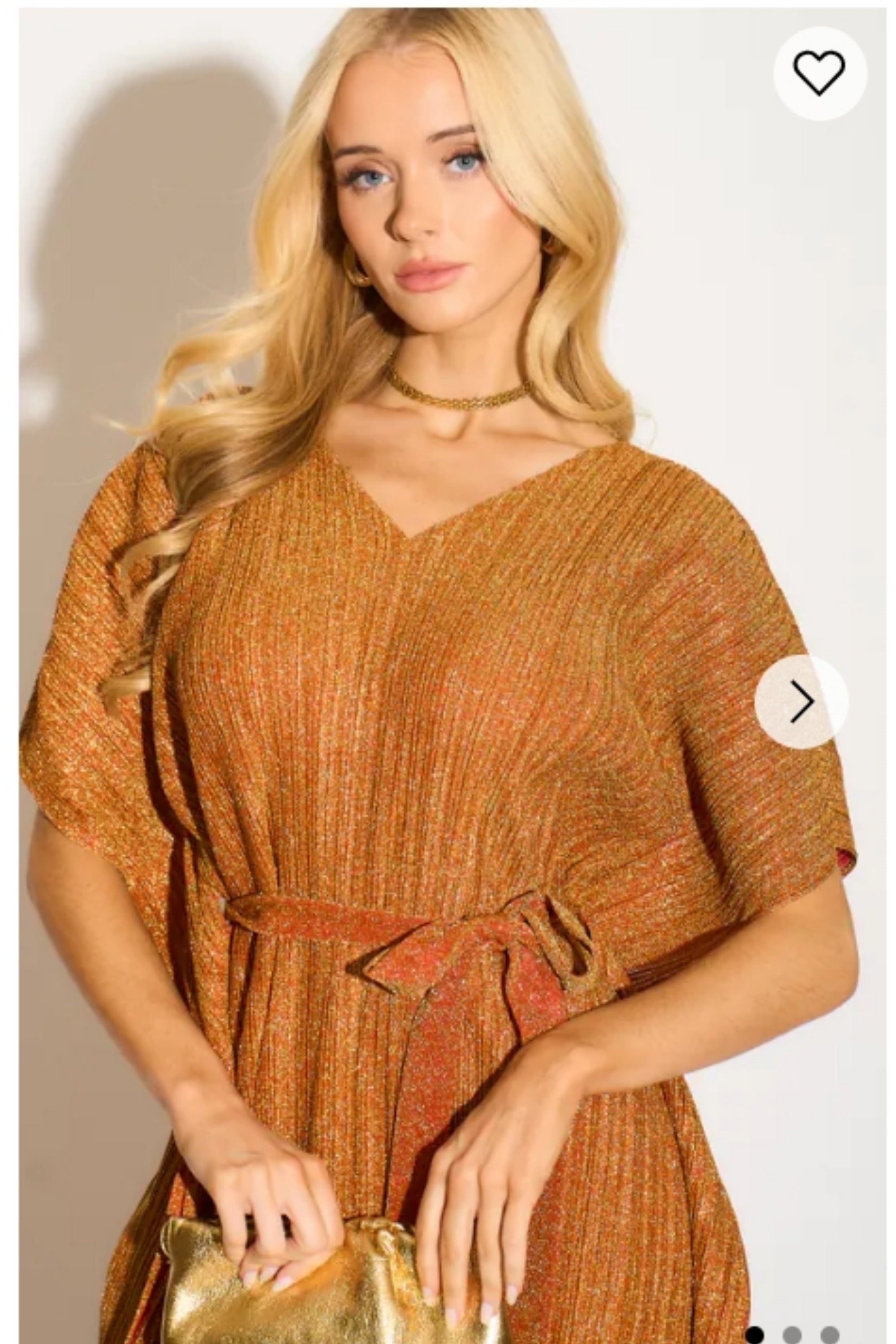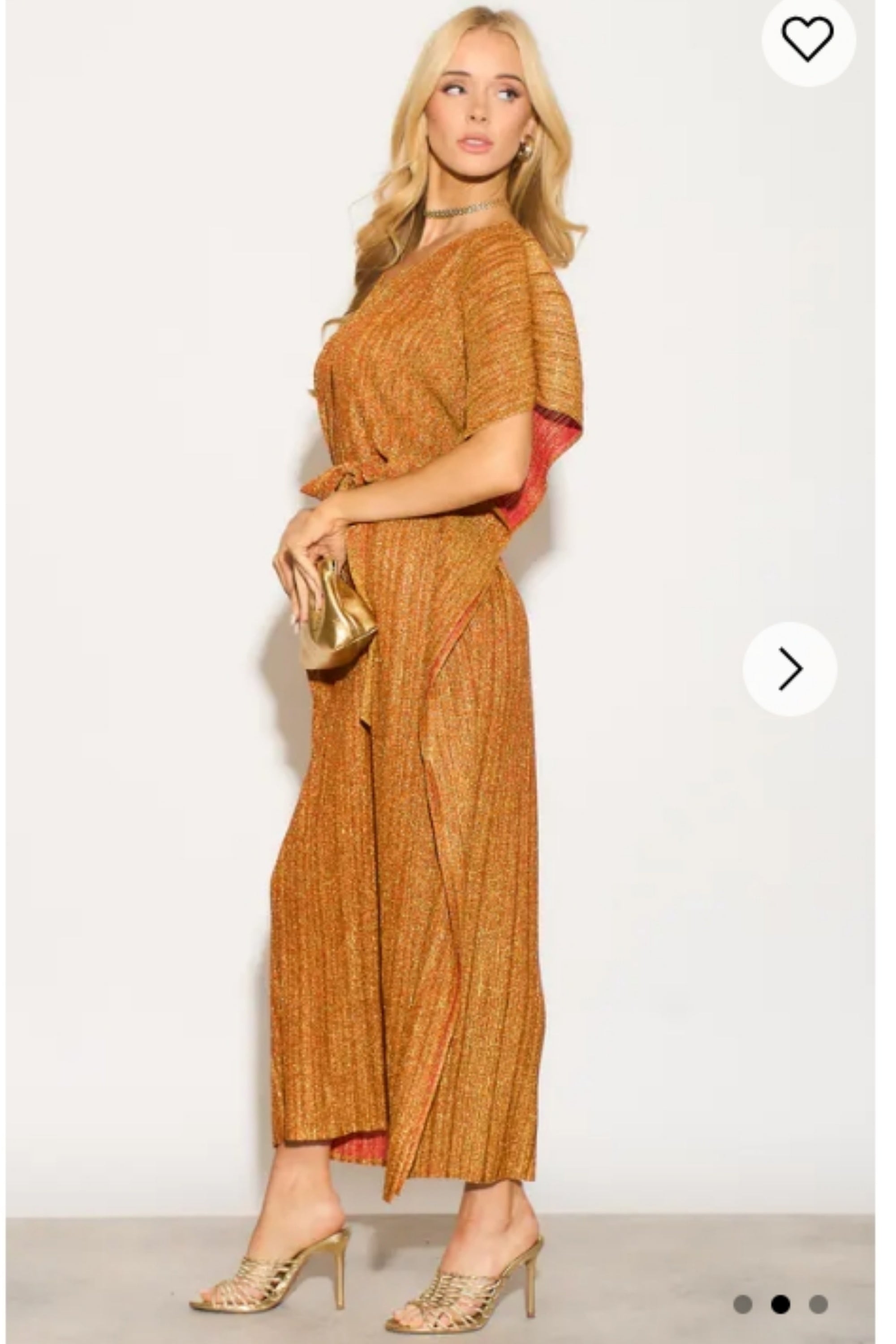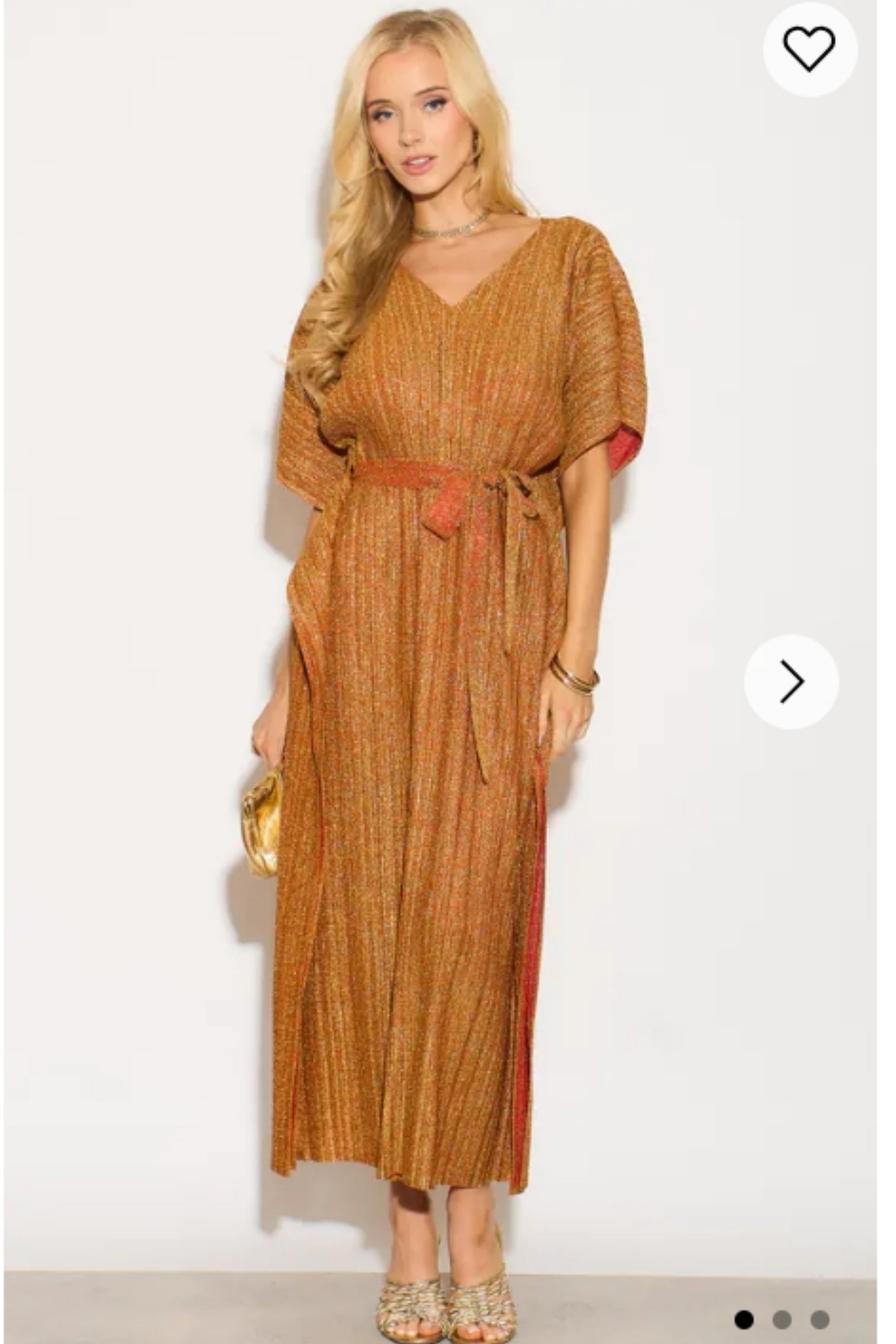 Oversized Metallic pleated kaftan maxi dress in Gold