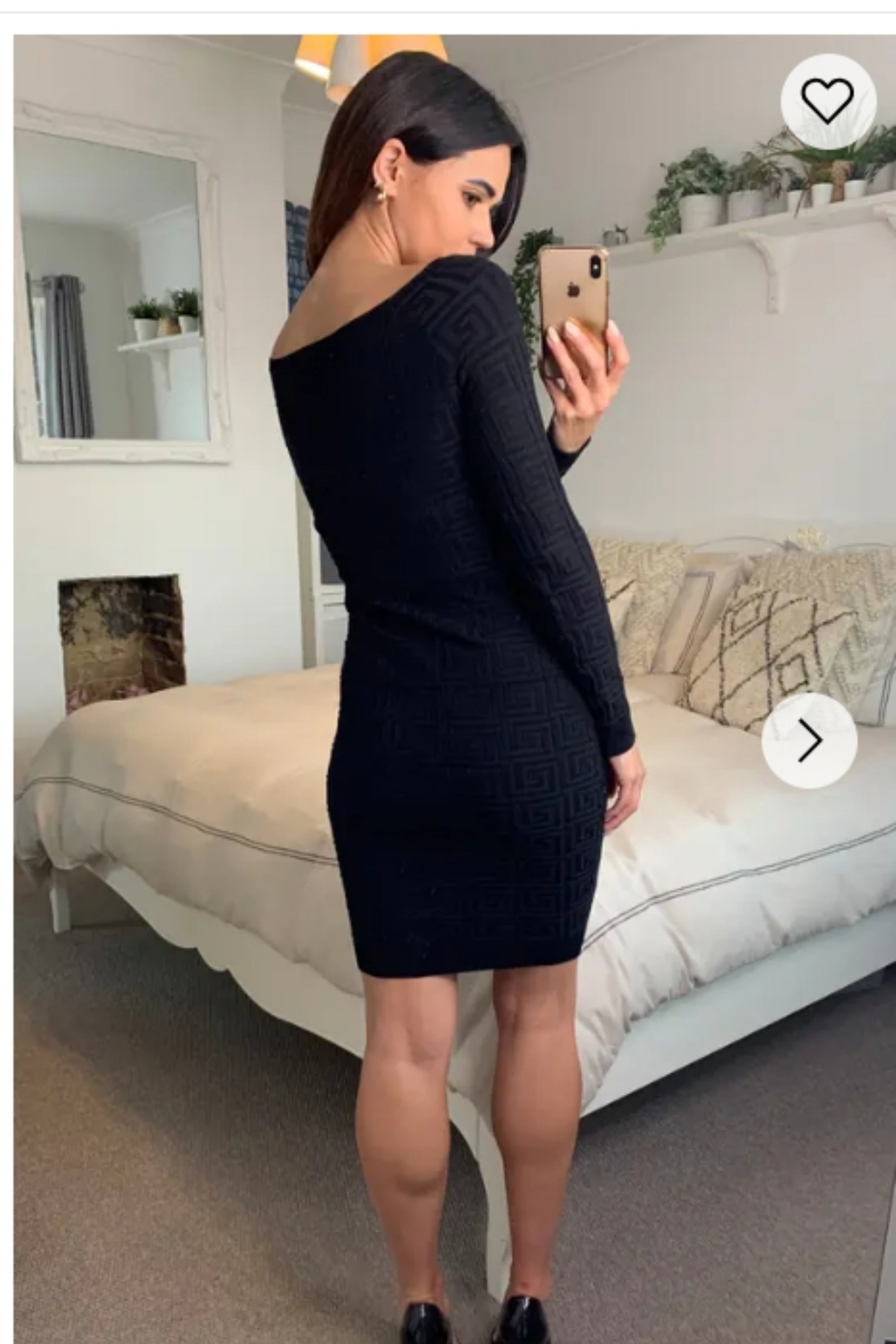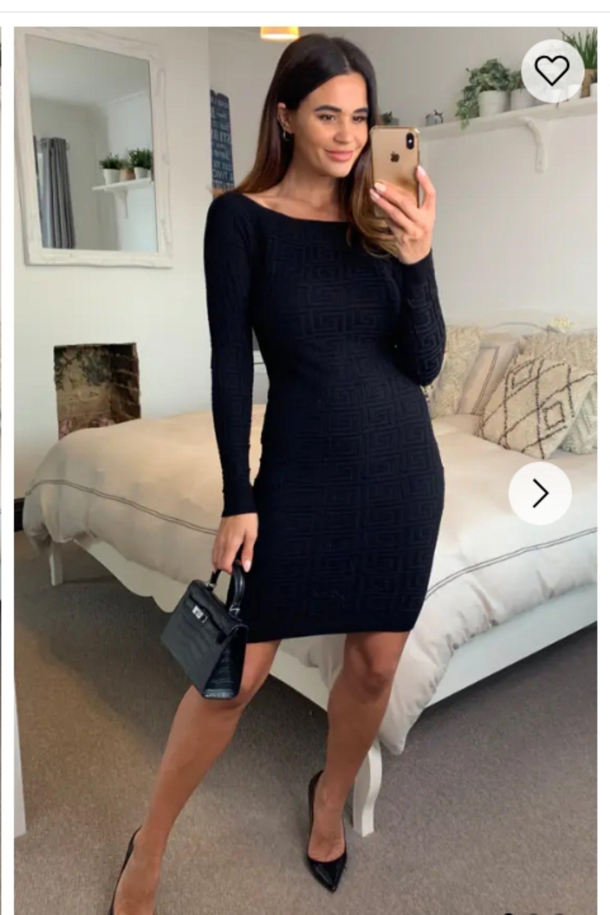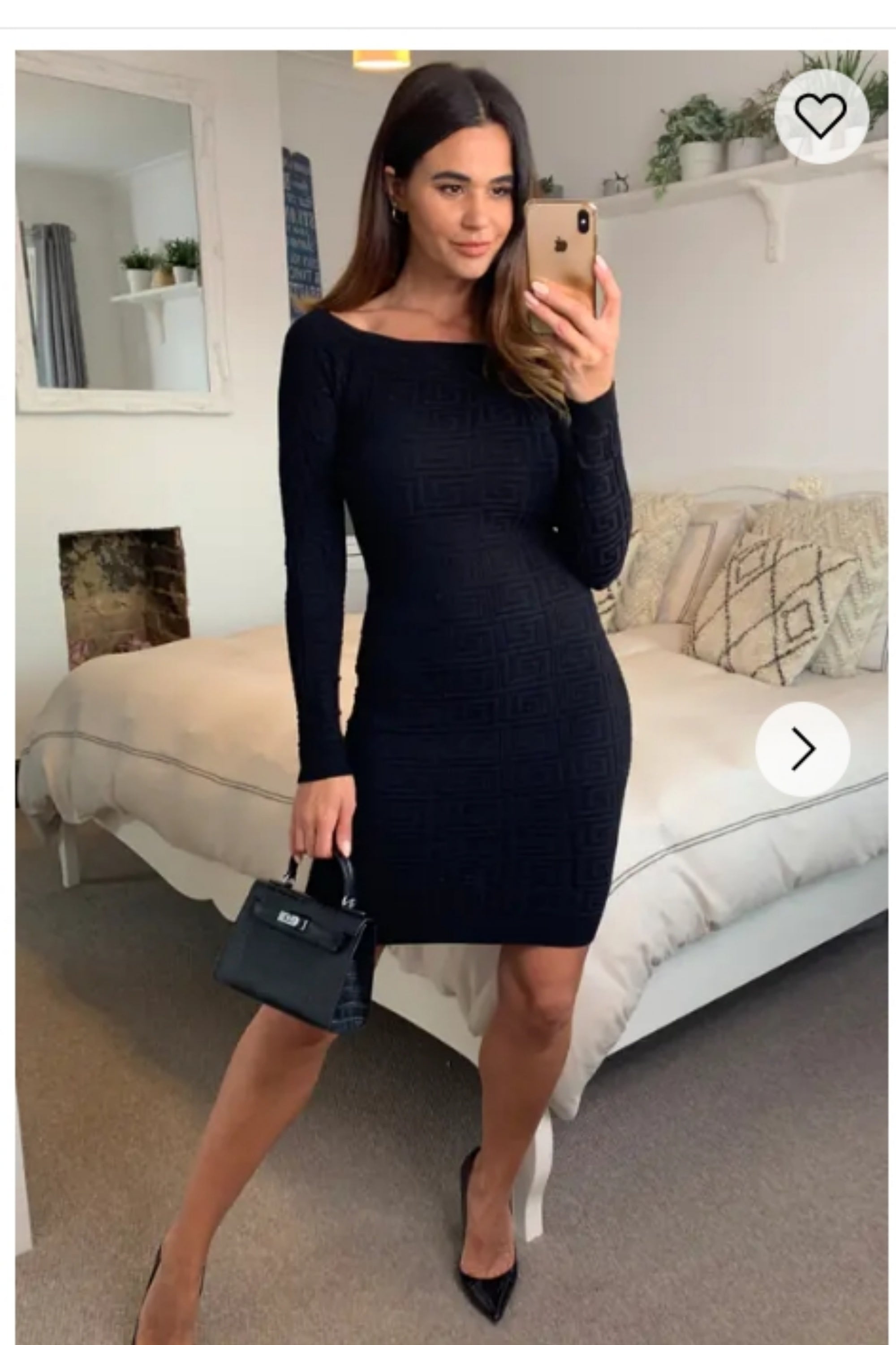 Black Bodycon Knit Dress with Polka Dot Organza Sleeves