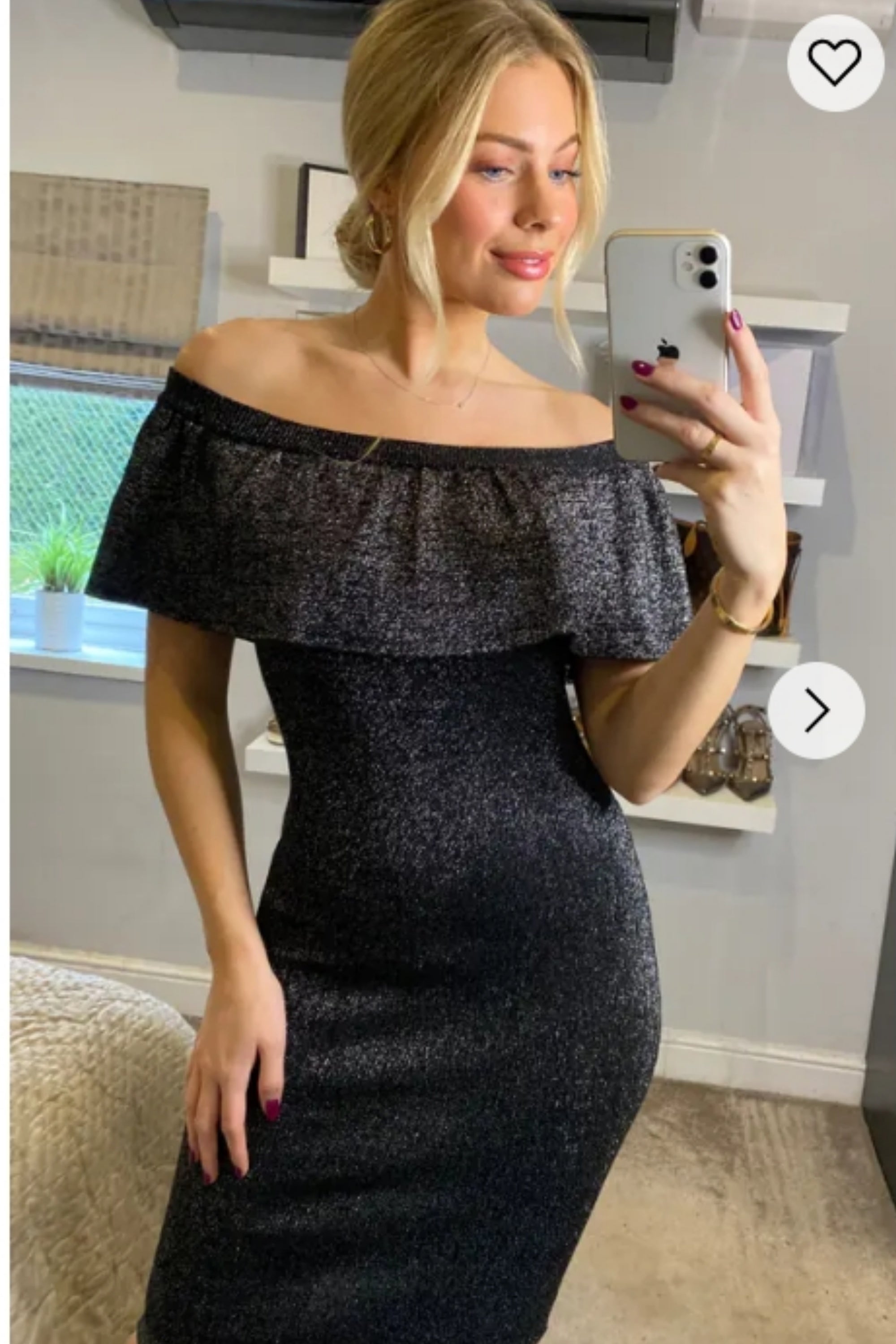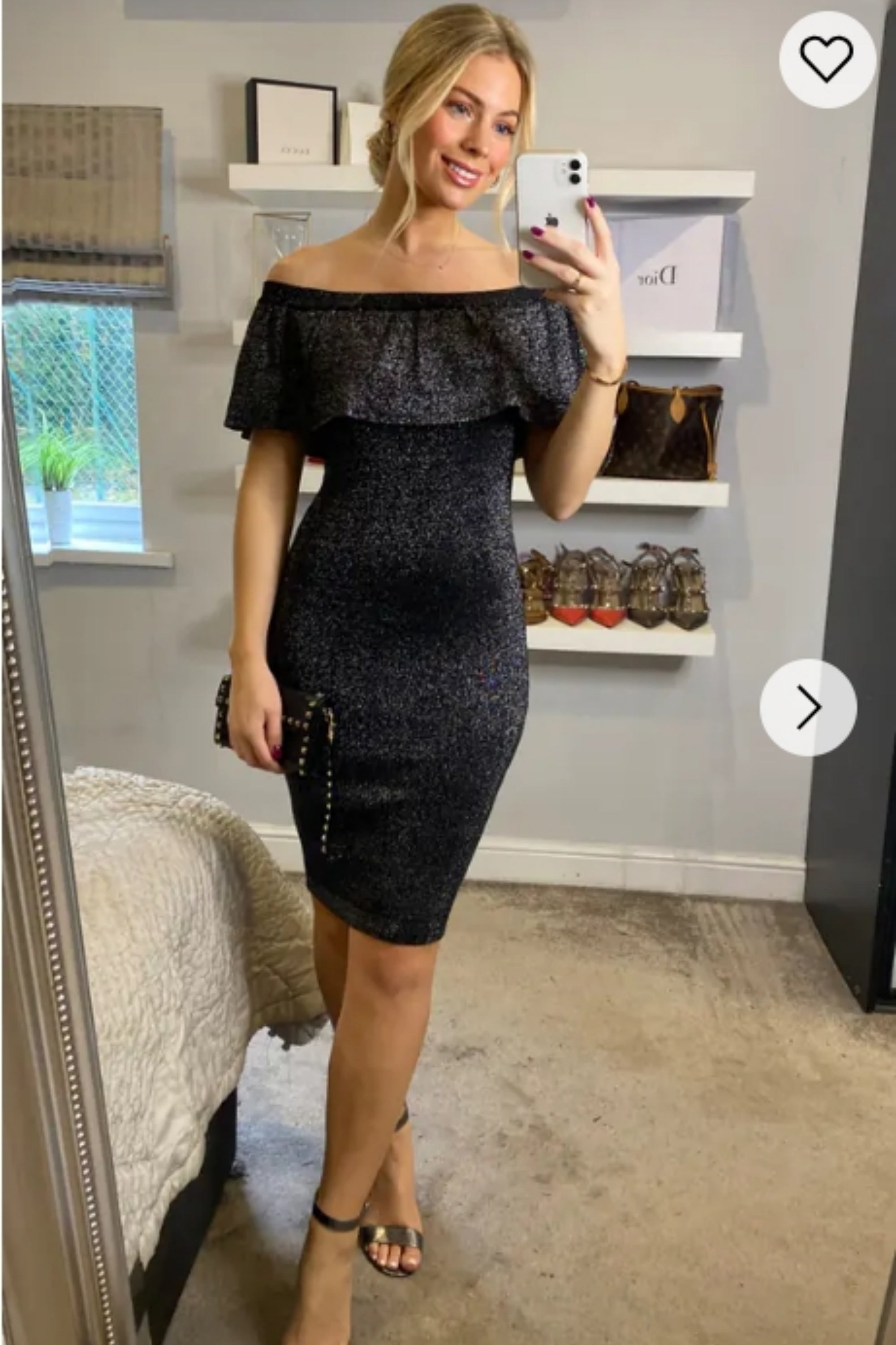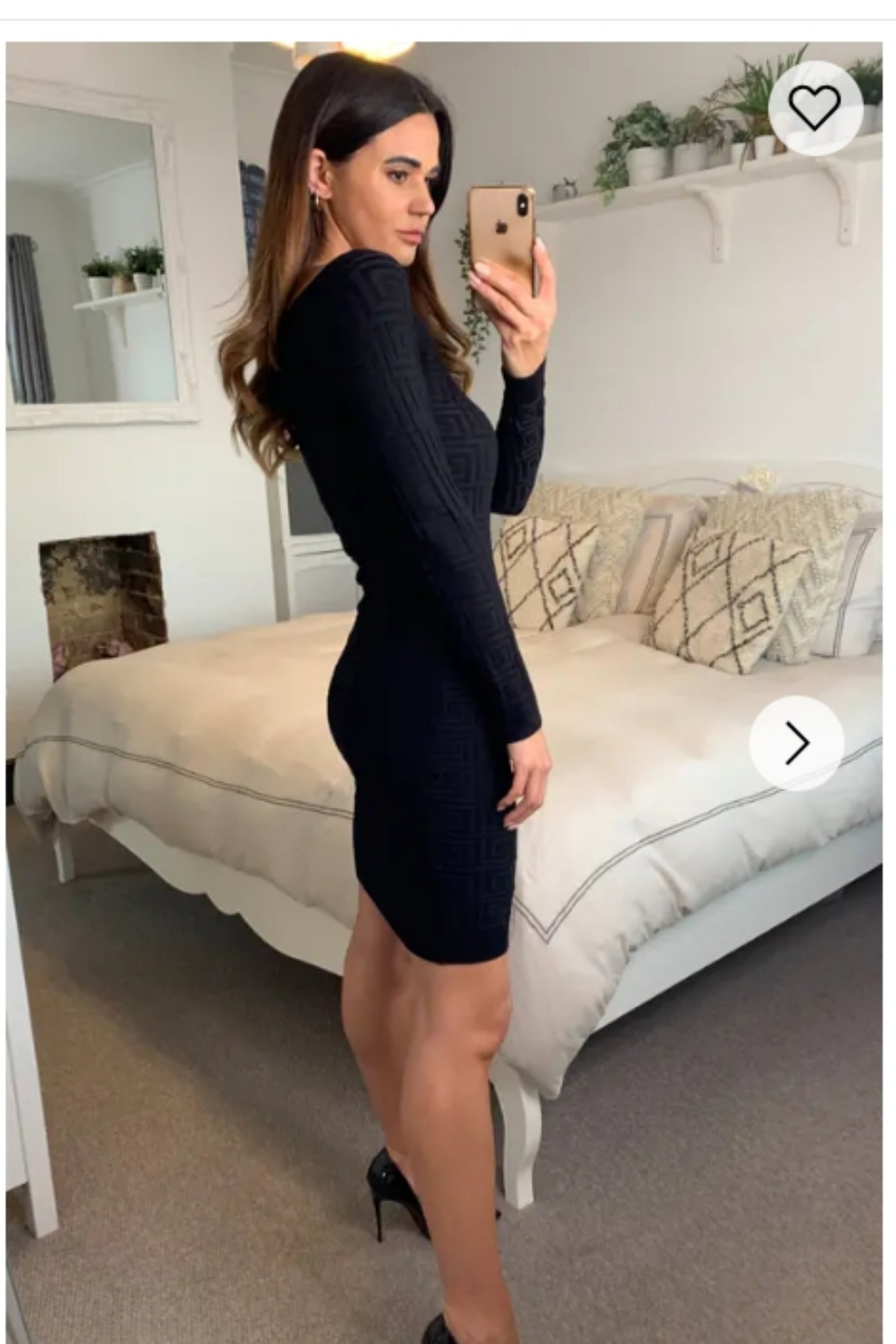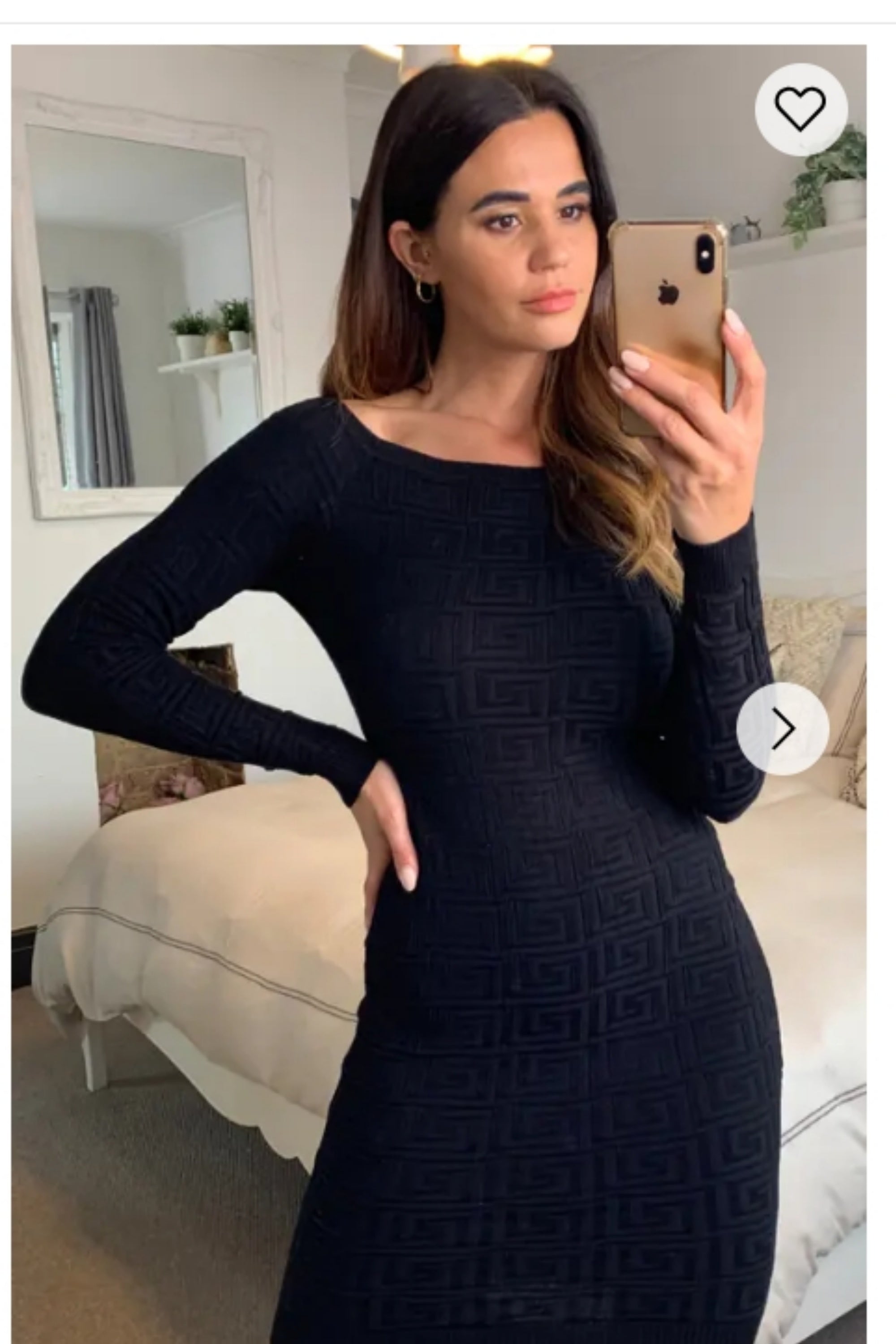 Black Bodycon Knit Dress with Polka Dot Organza Sleeves