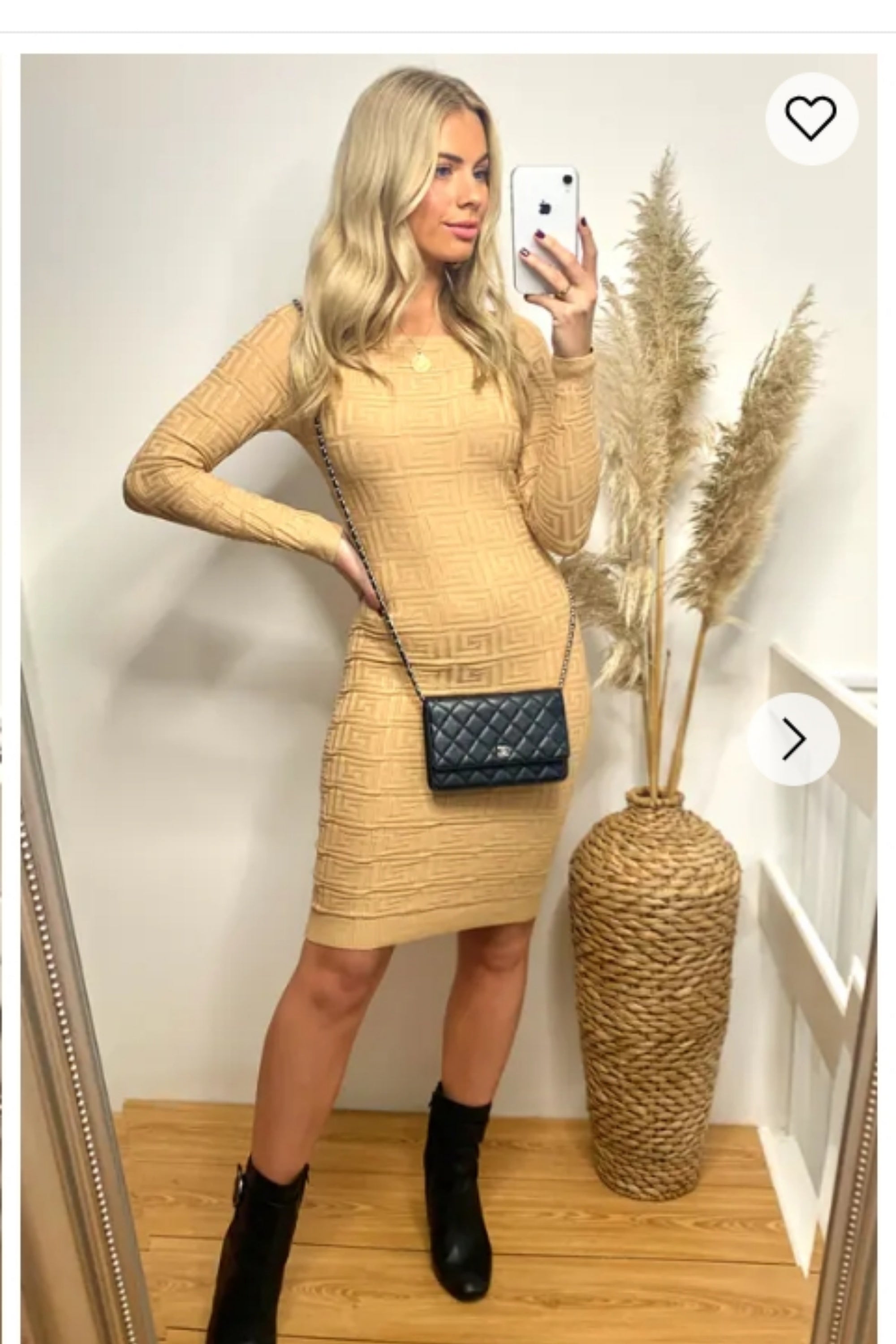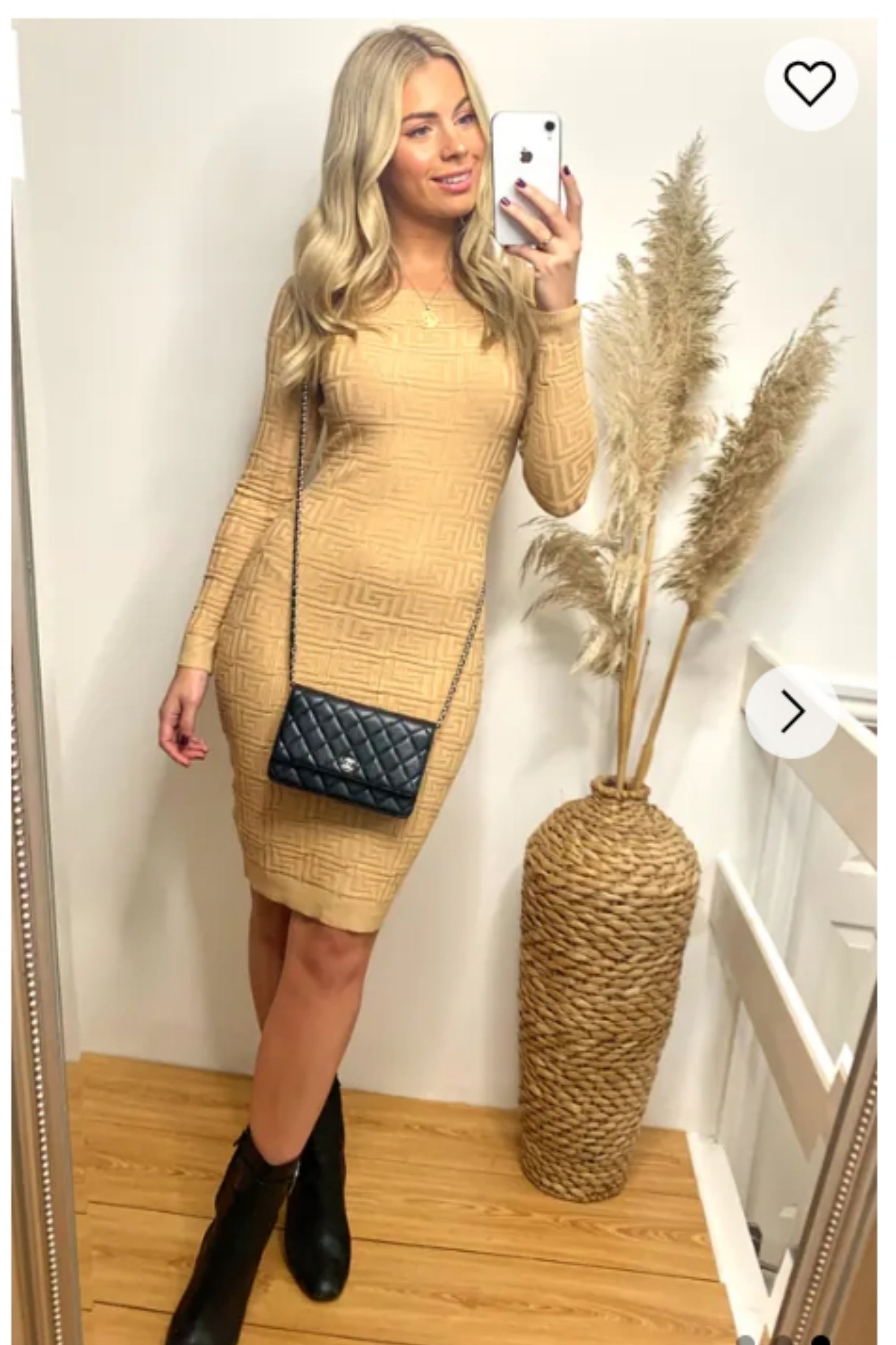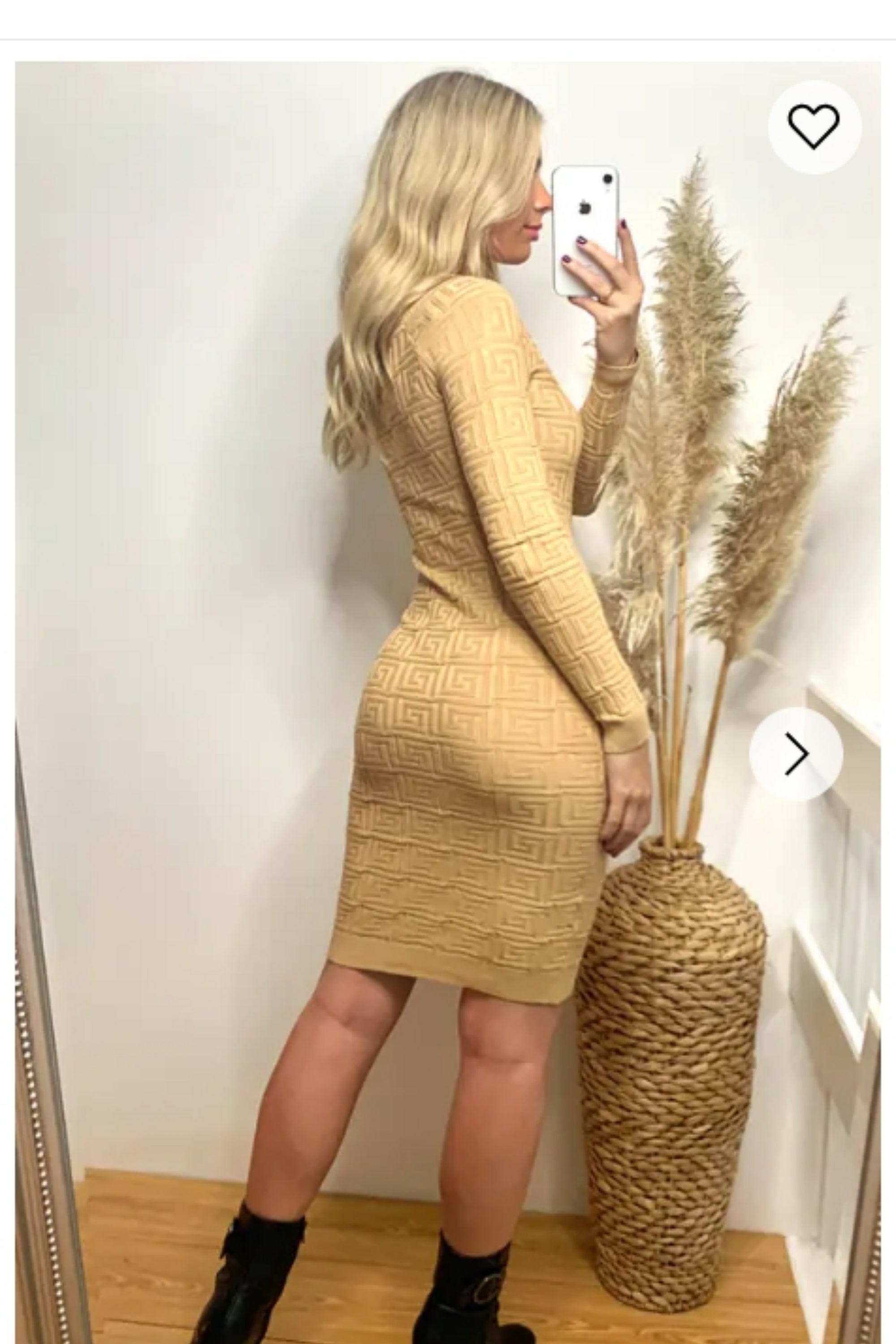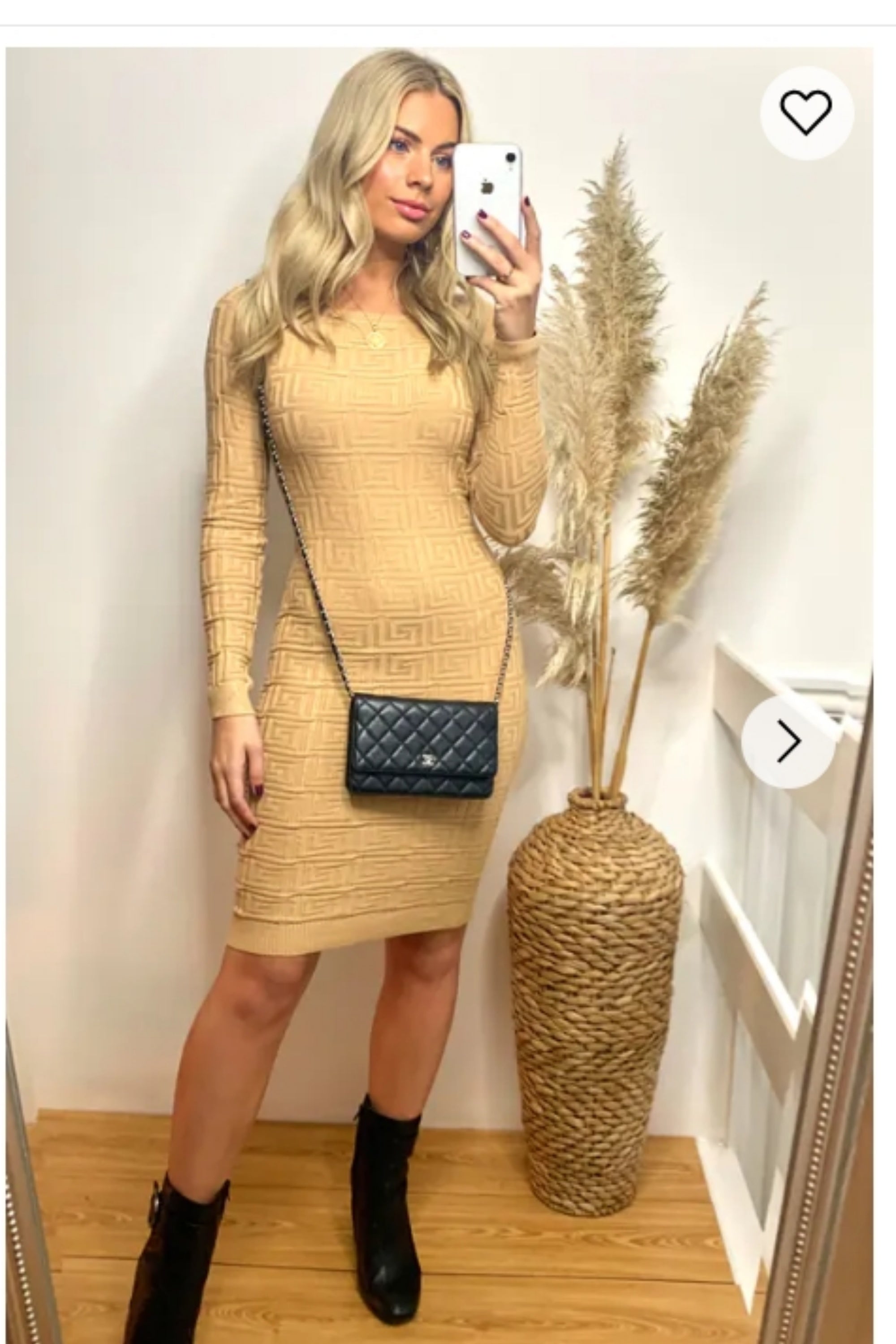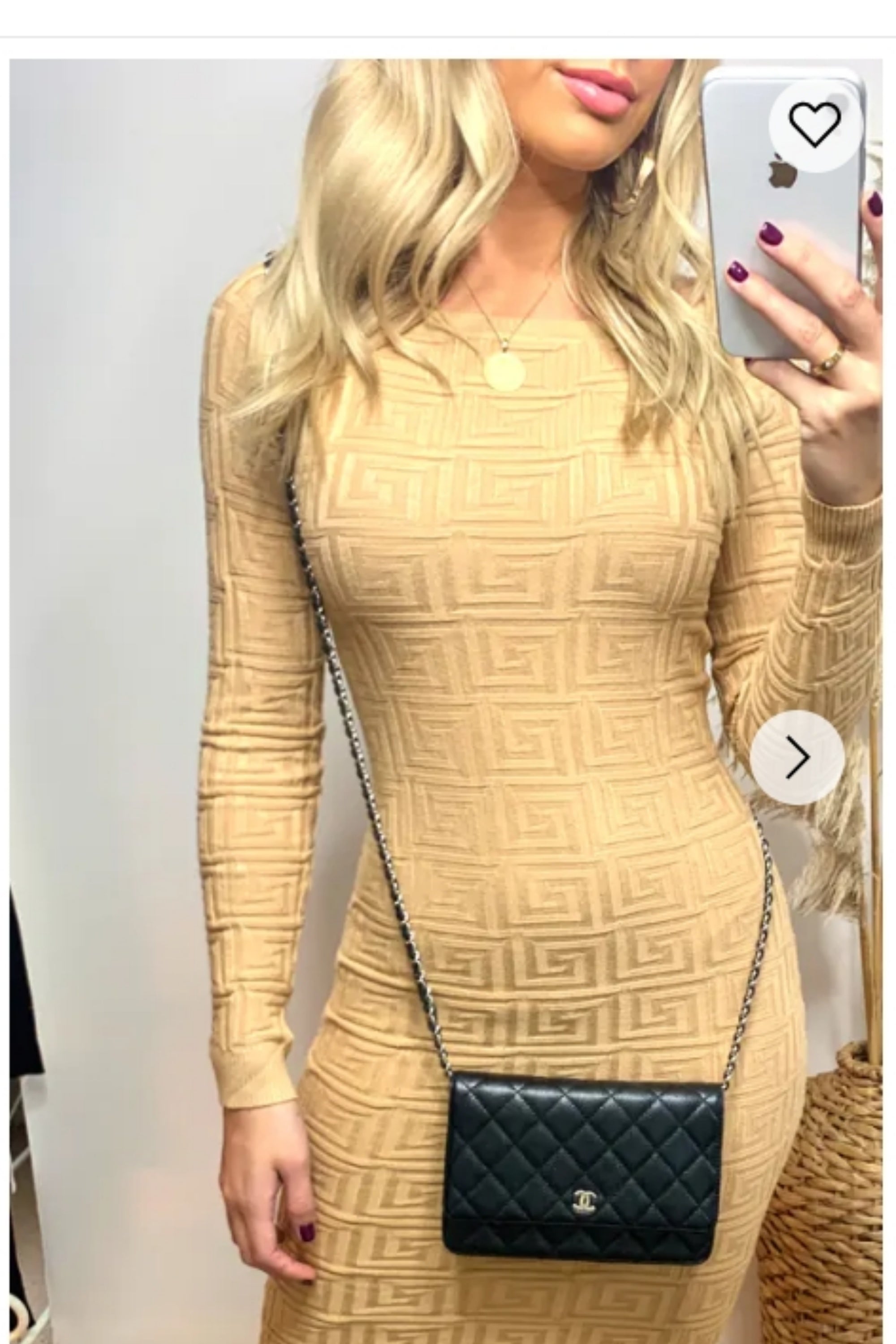 Classic Square check print soft knit off shoulder dress IN BEIGE