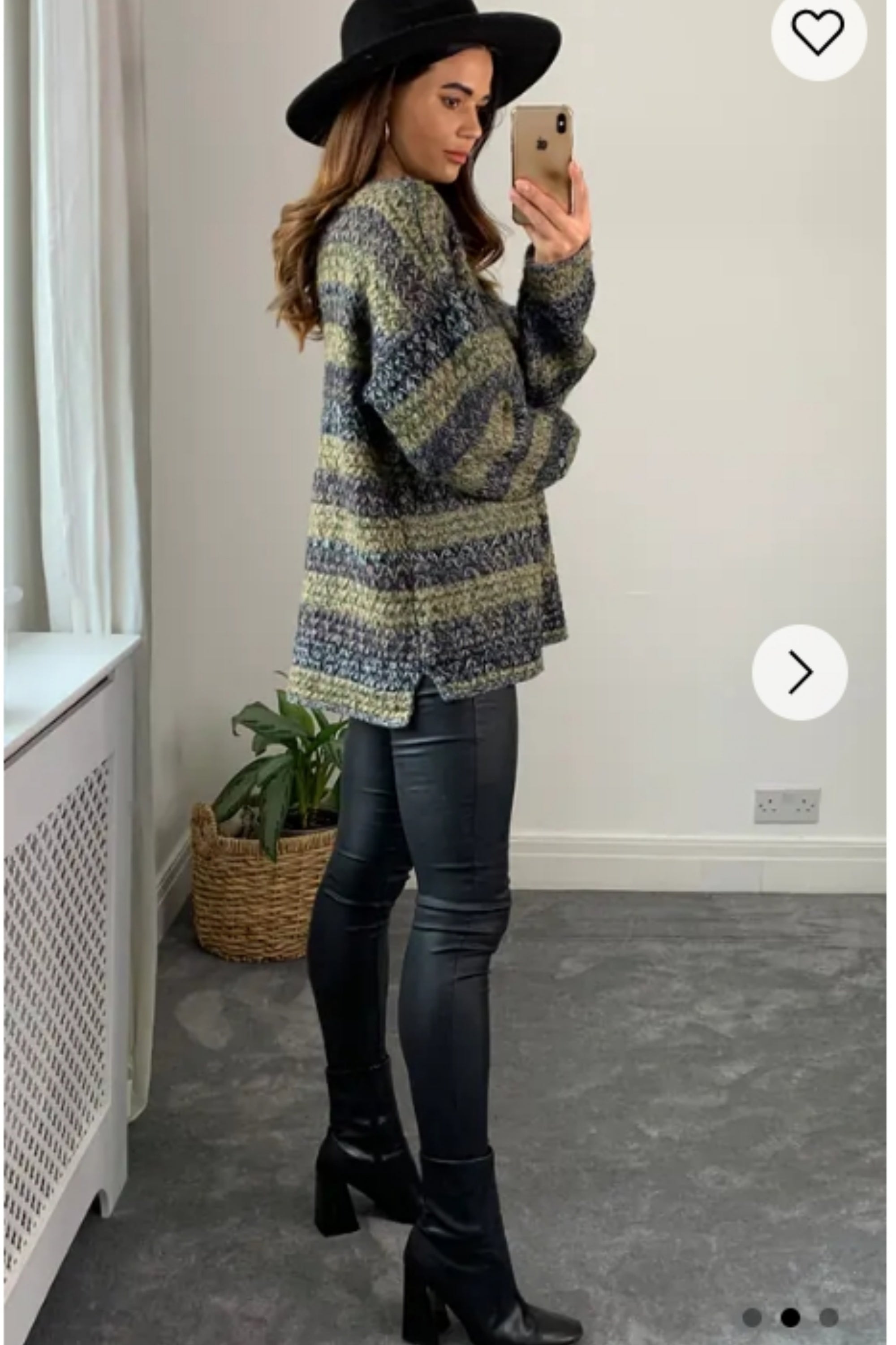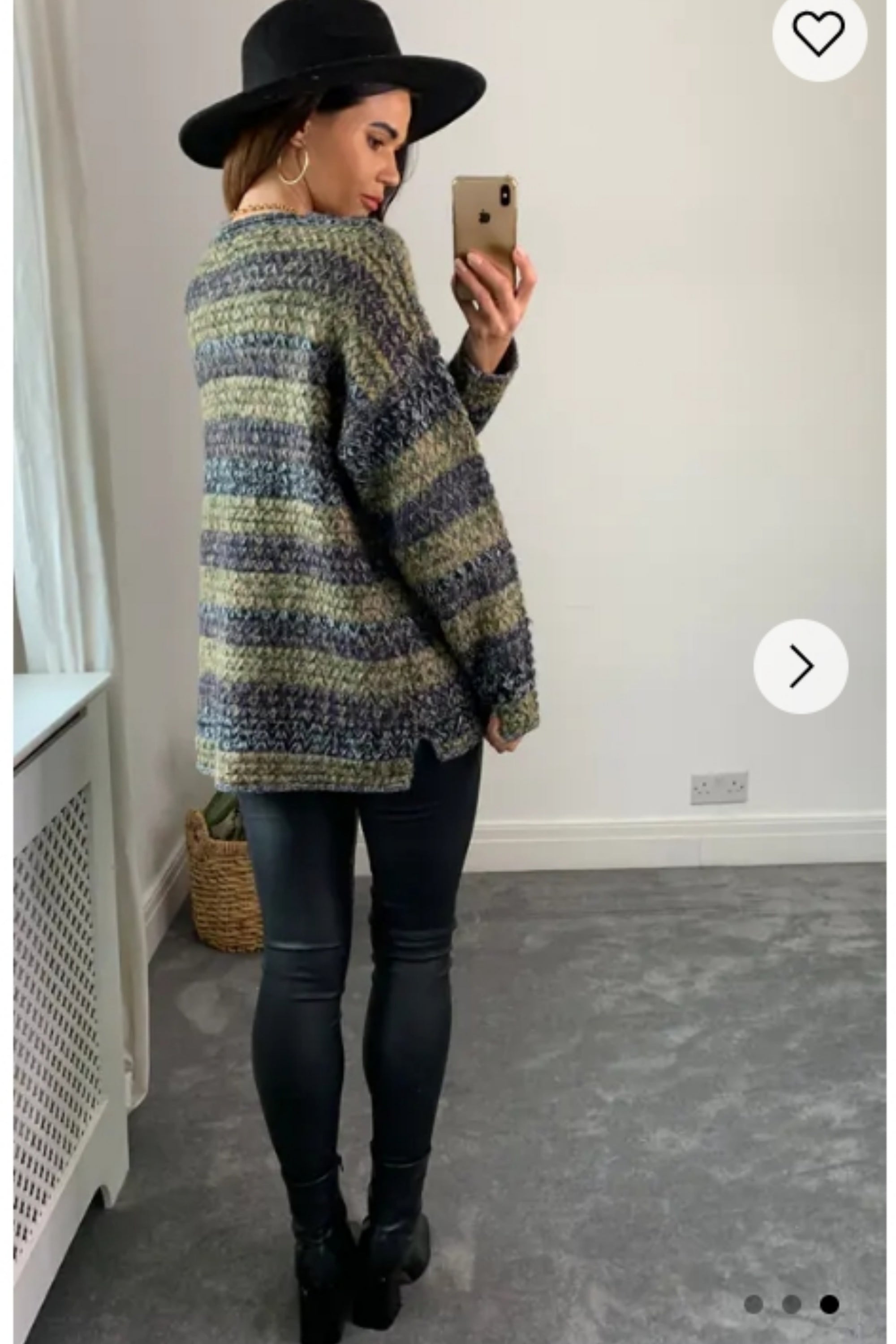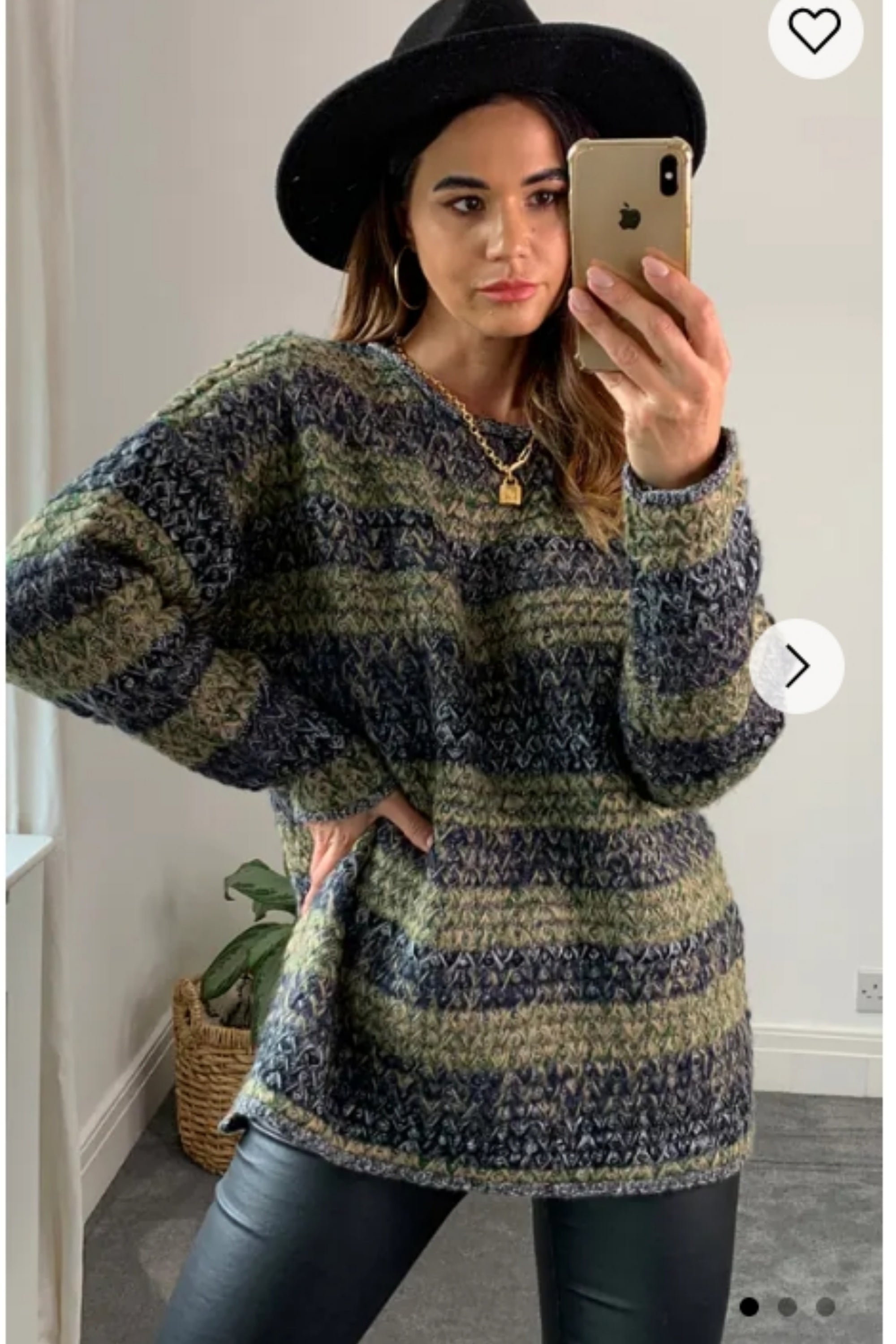 Ribbed stripe mix yarn oversize jumper(GREEN)