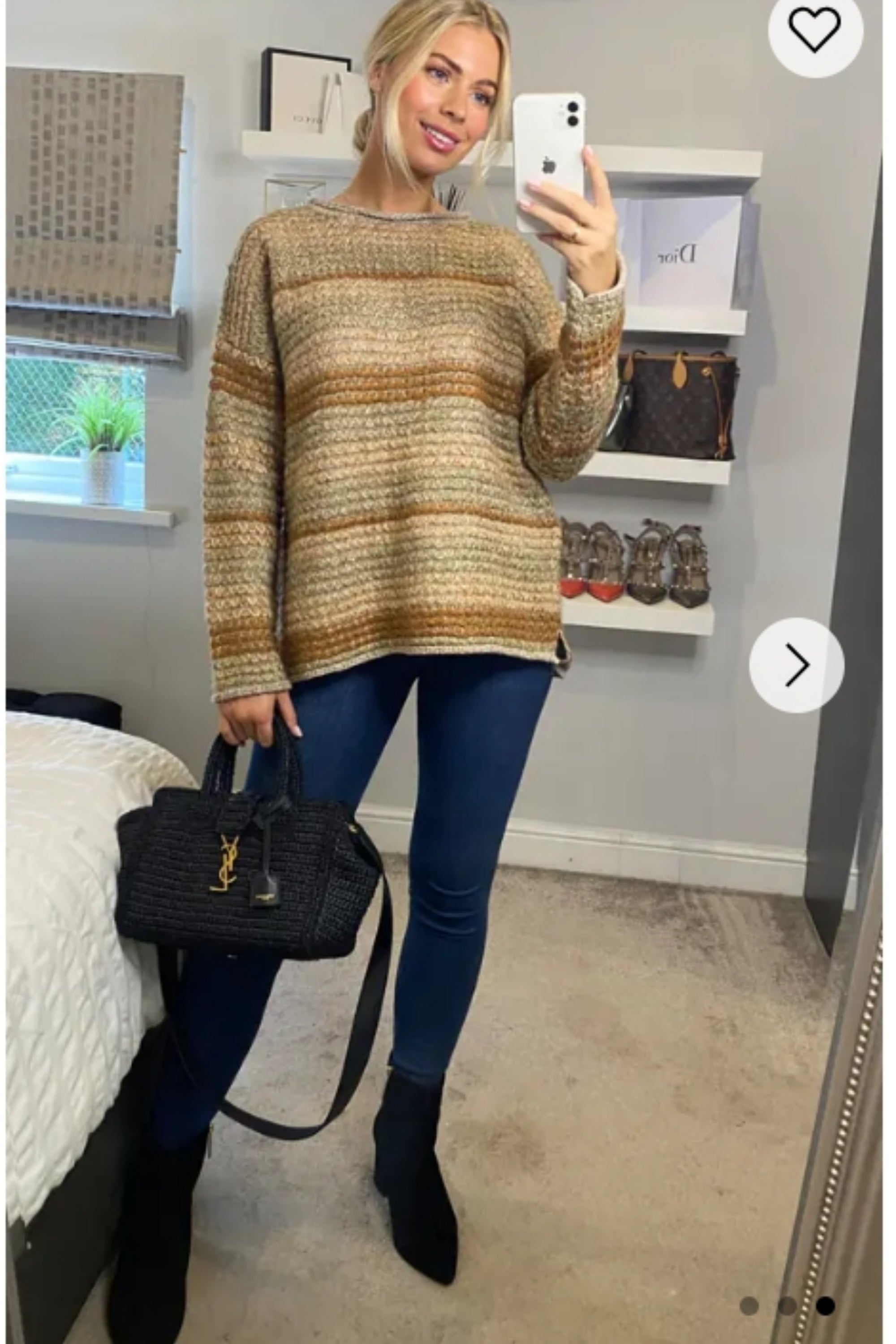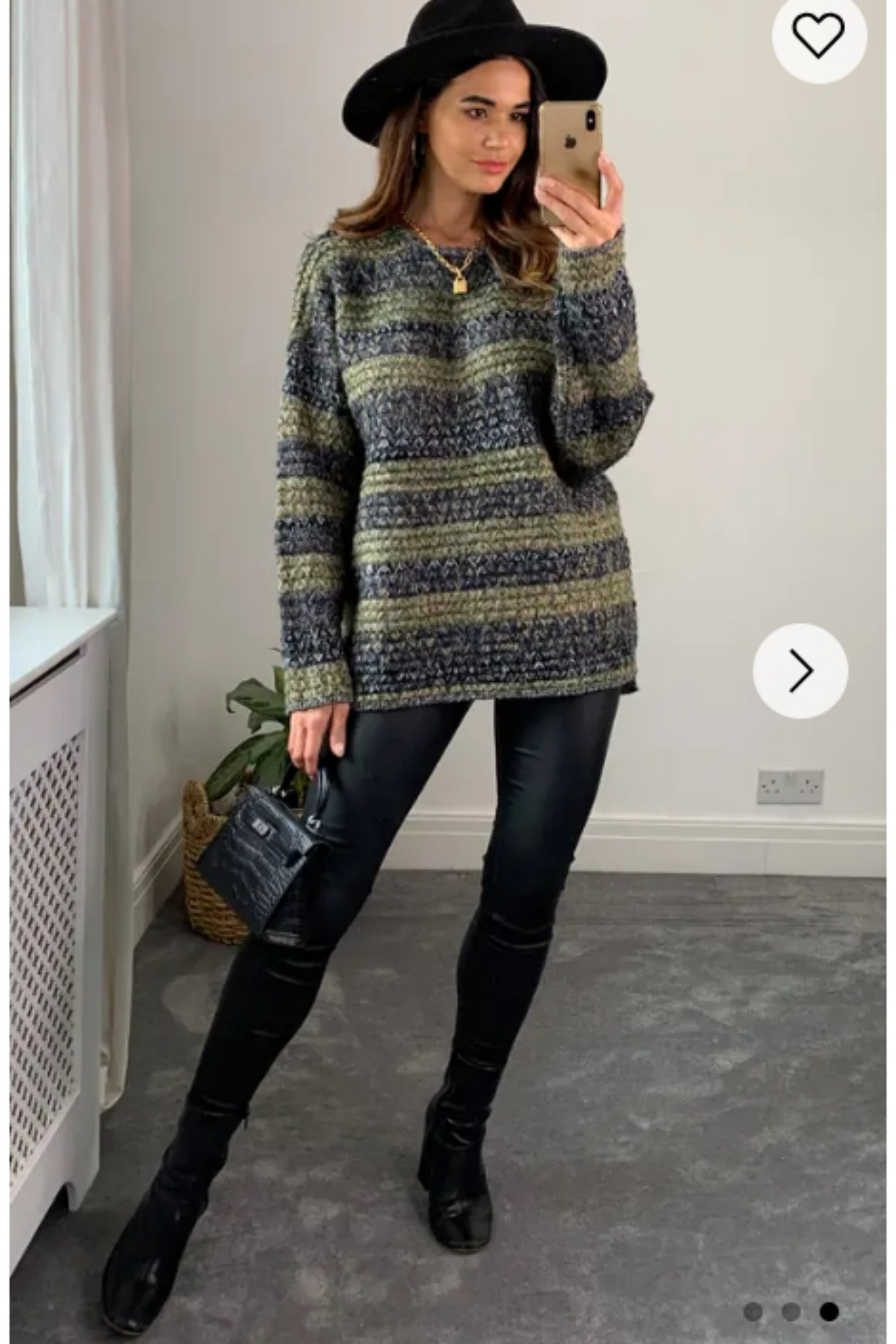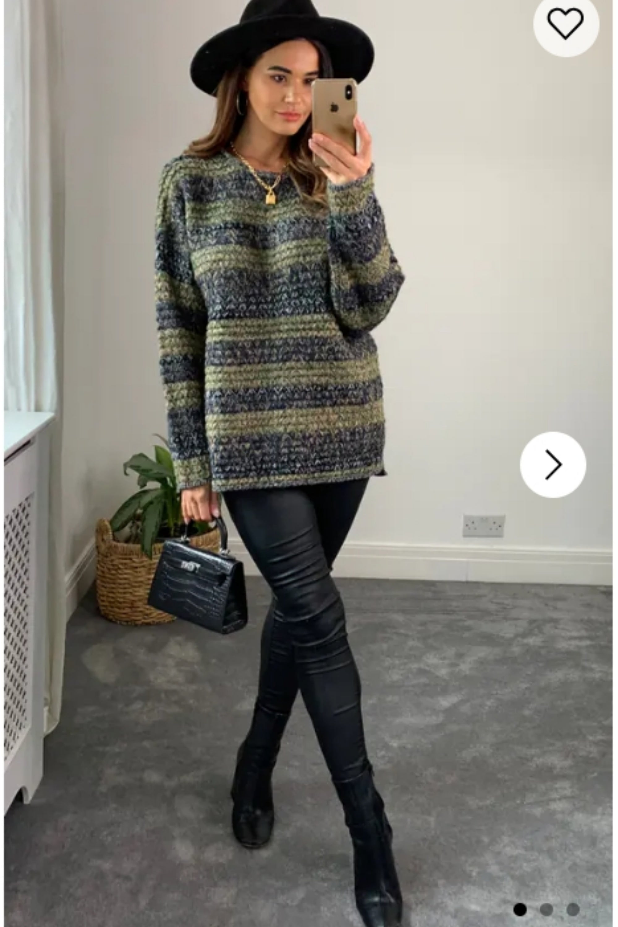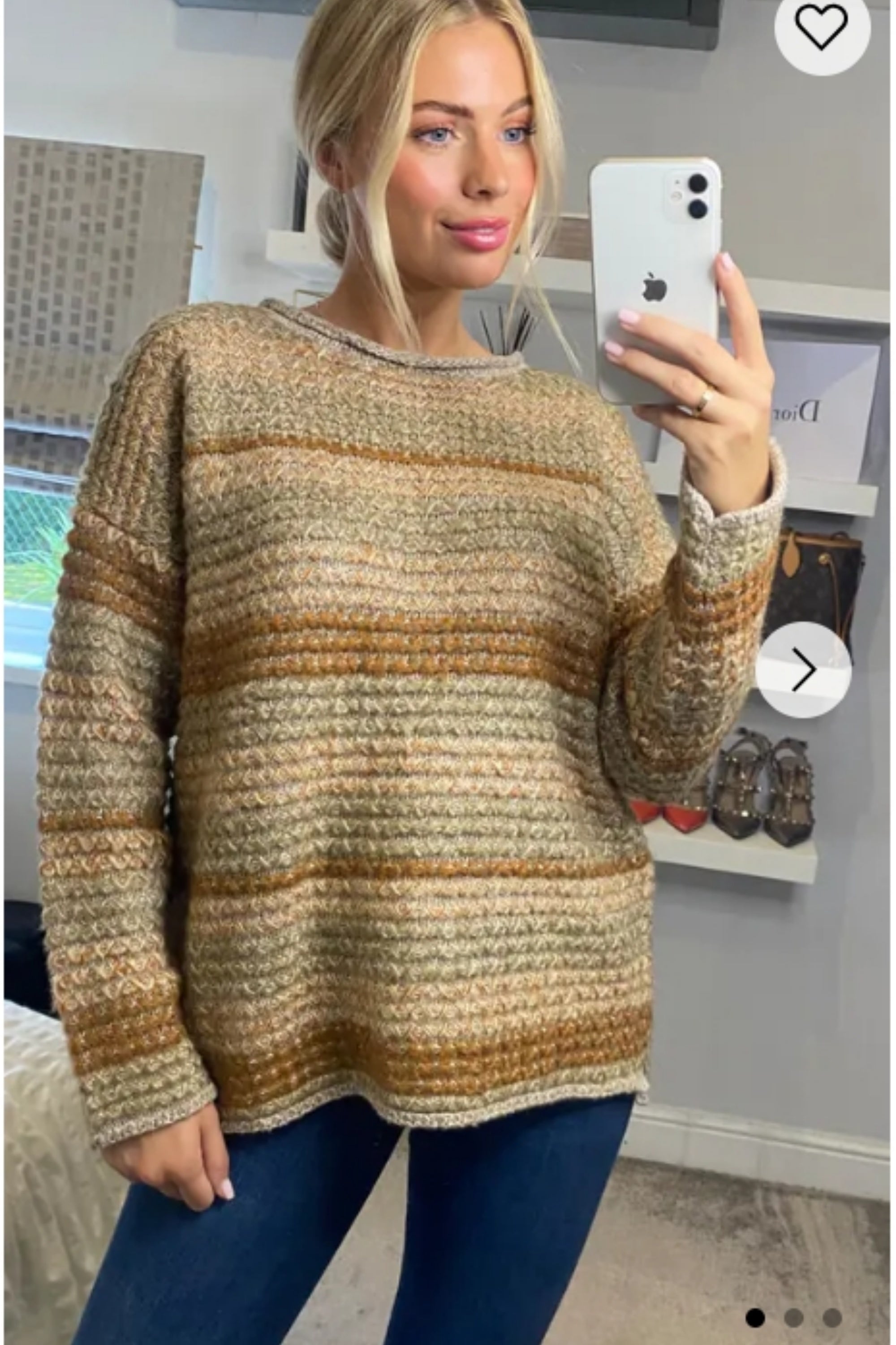 Ribbed stripe mix yarn oversize jumper(GREEN)