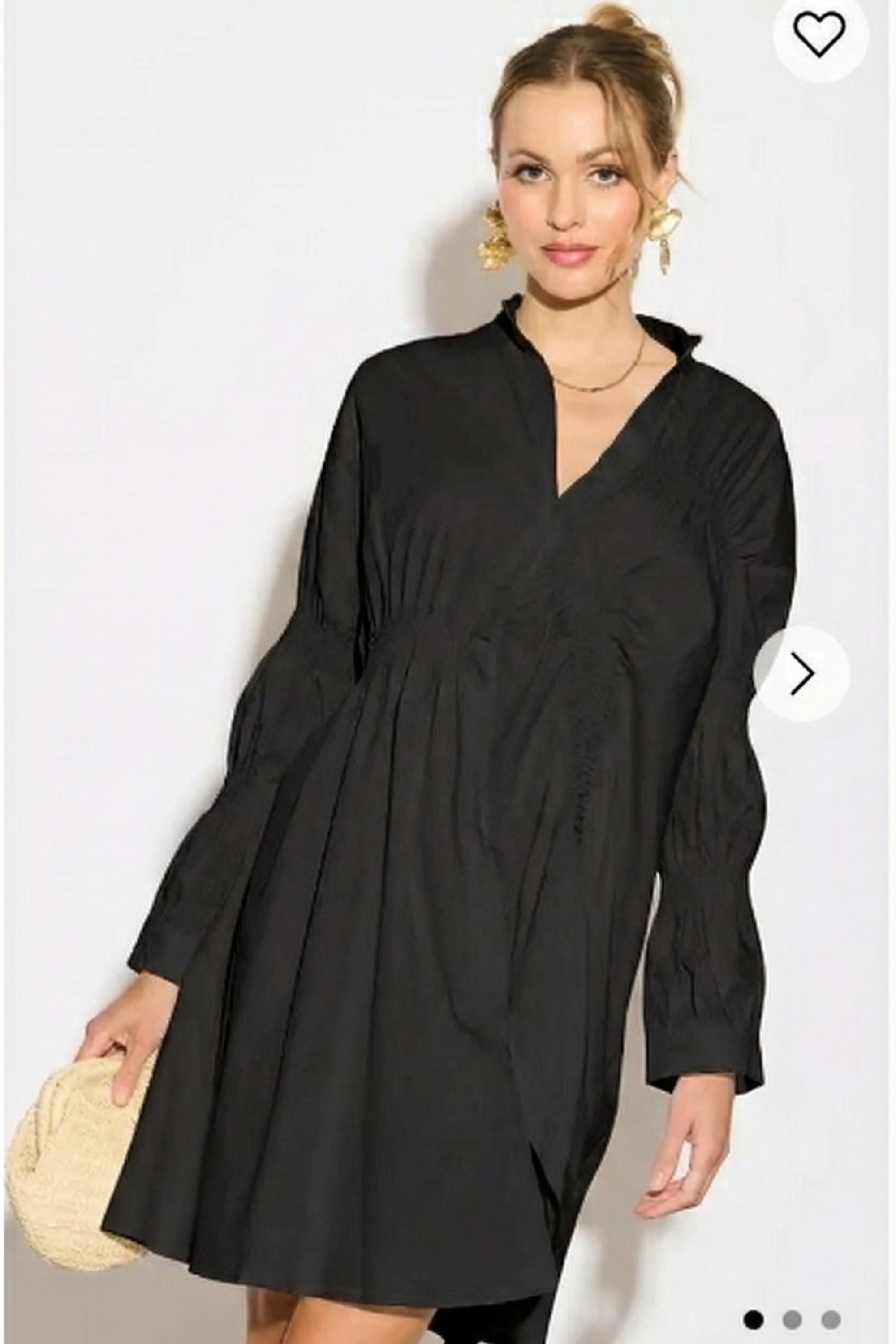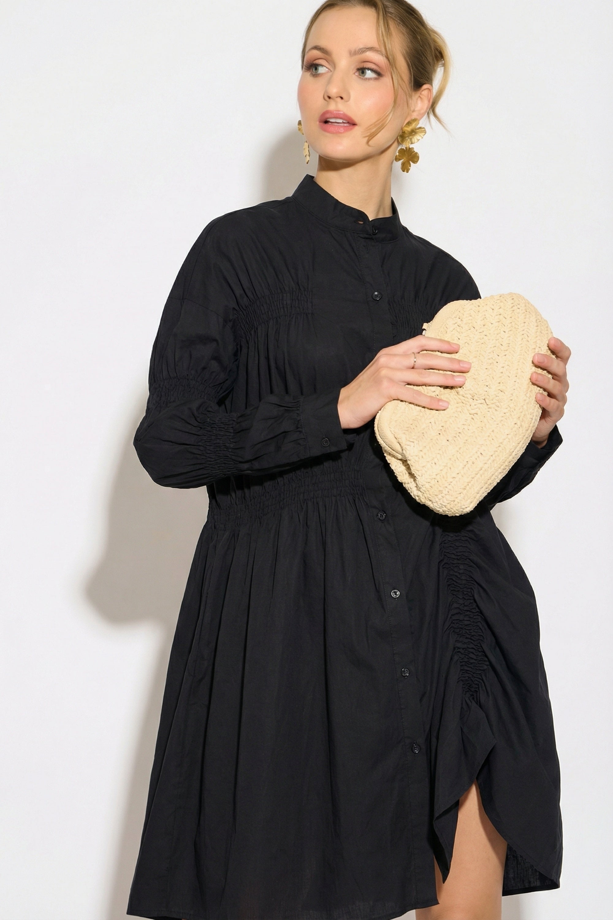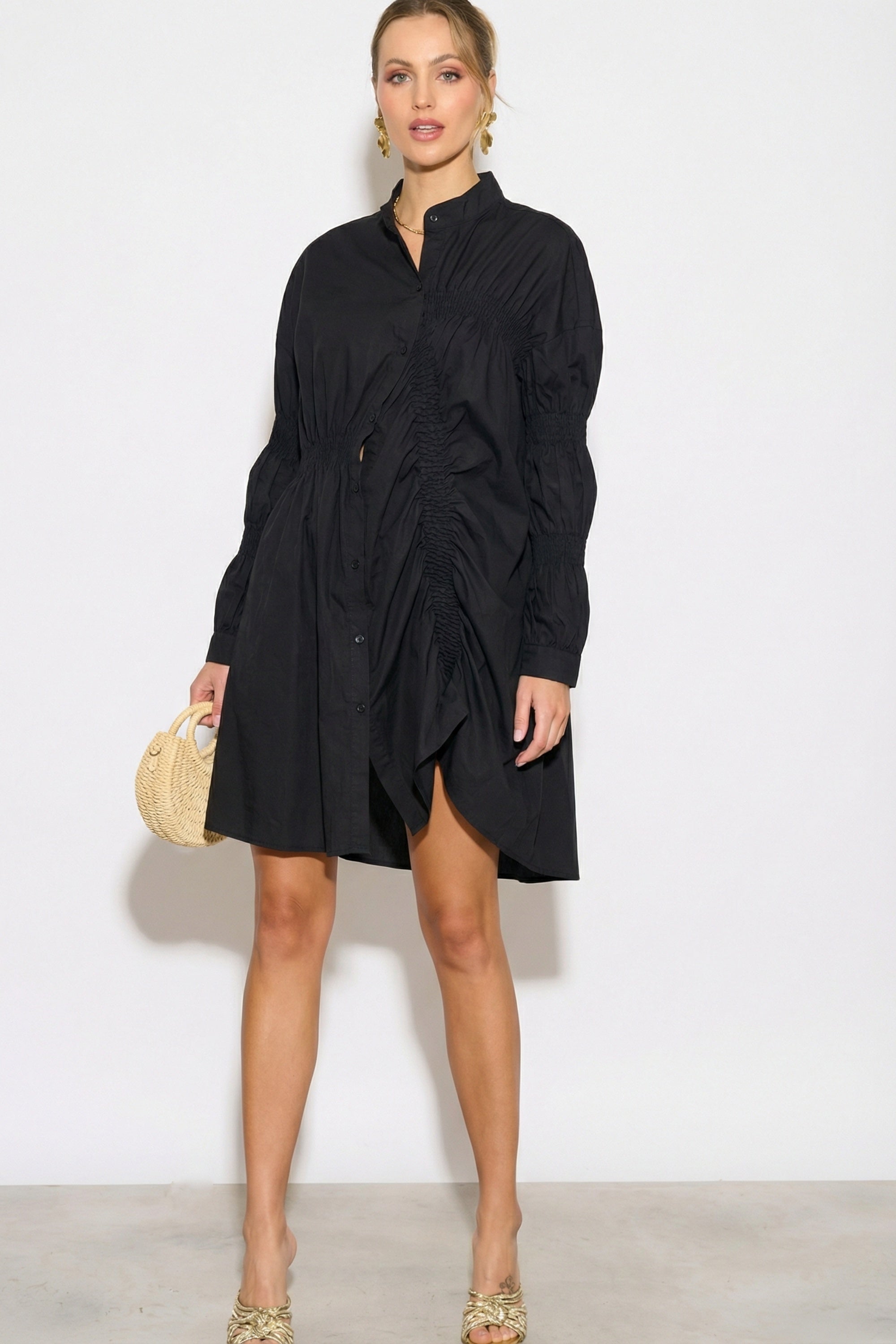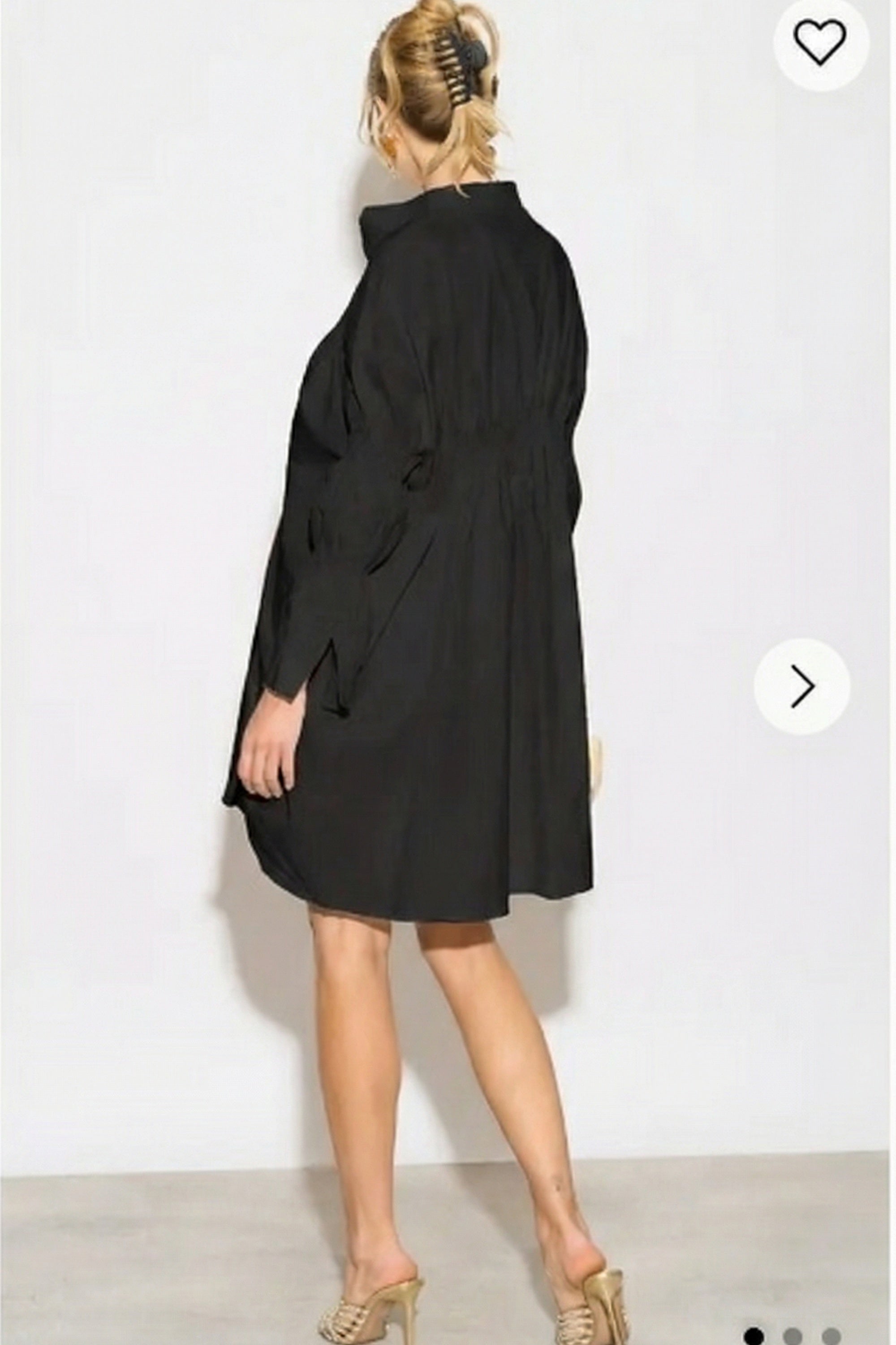 Asymmetry with Elasticated design cotton blend shirt dress in Black