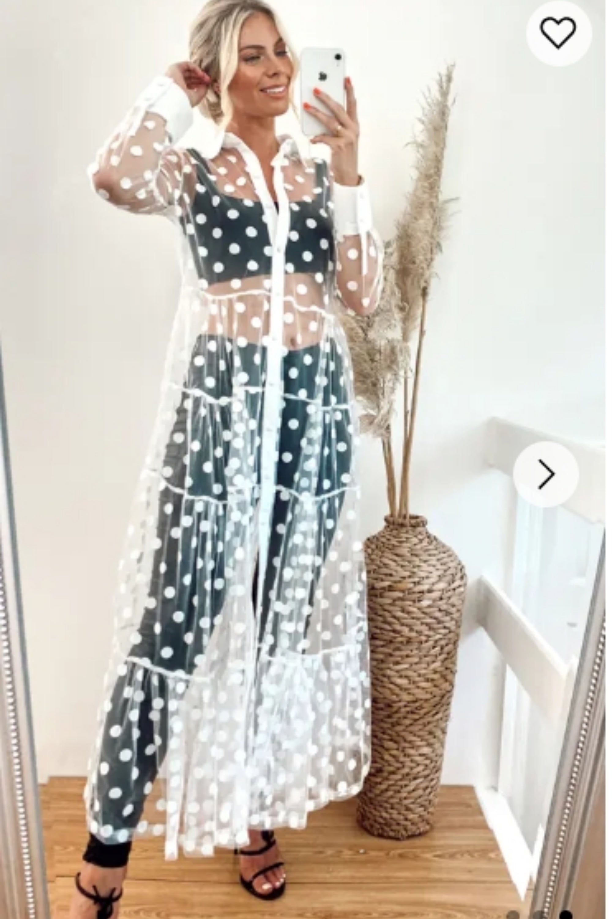 Soft cotton knit dress with collared and buttons down design in Cream Beige