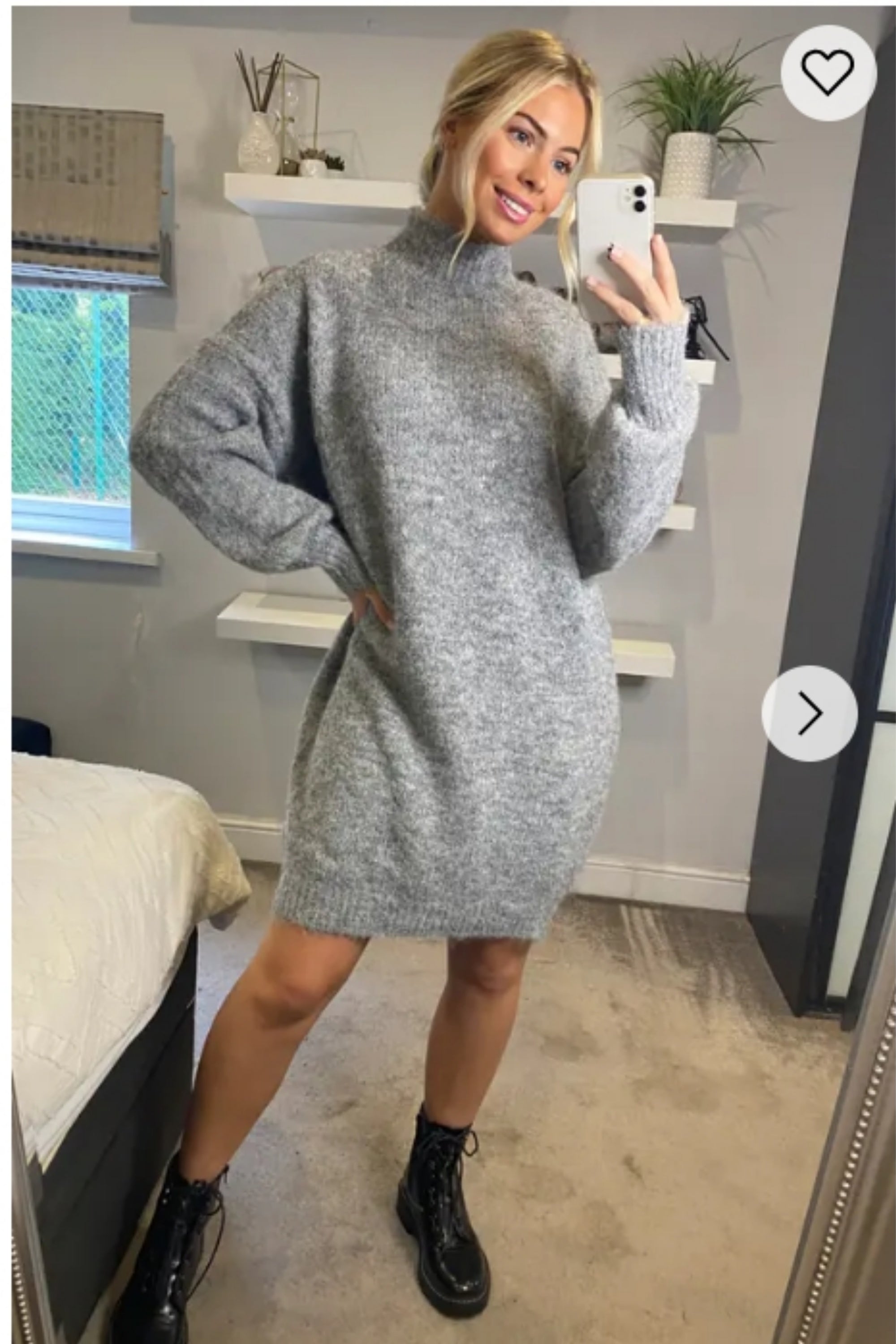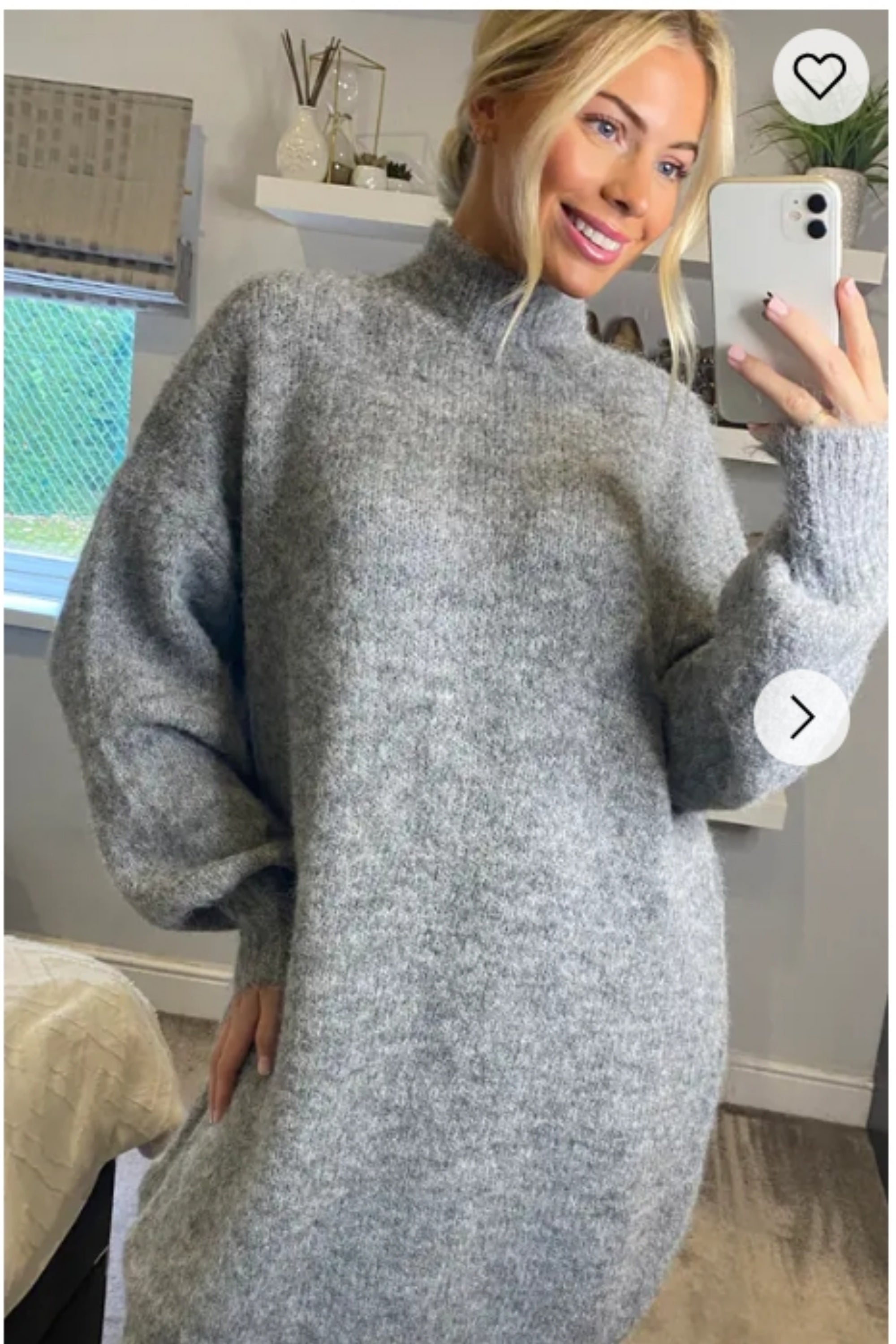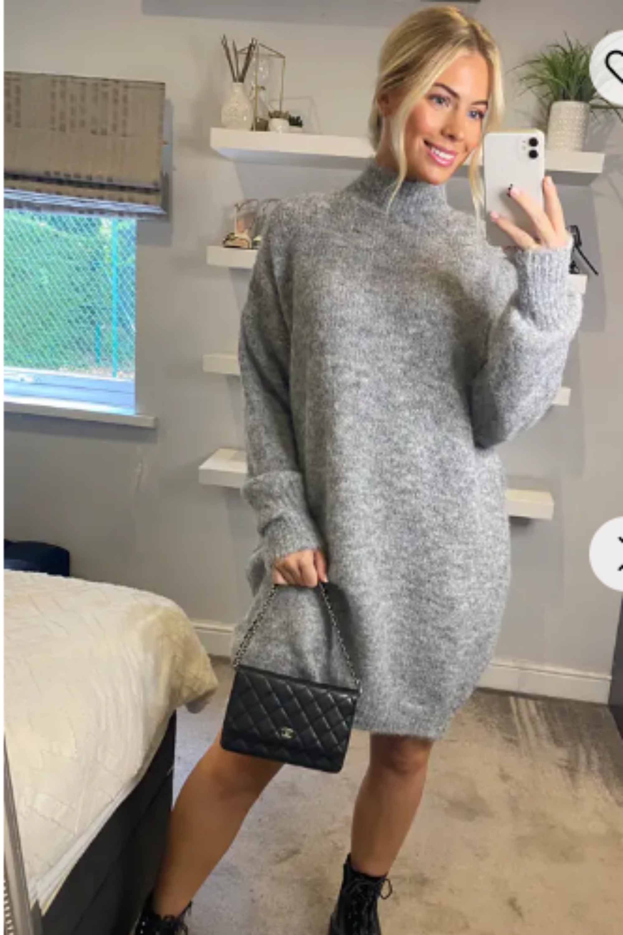 Super Soft Fine Knit Plain Color Funnel Neck Long Jumper in Grey
