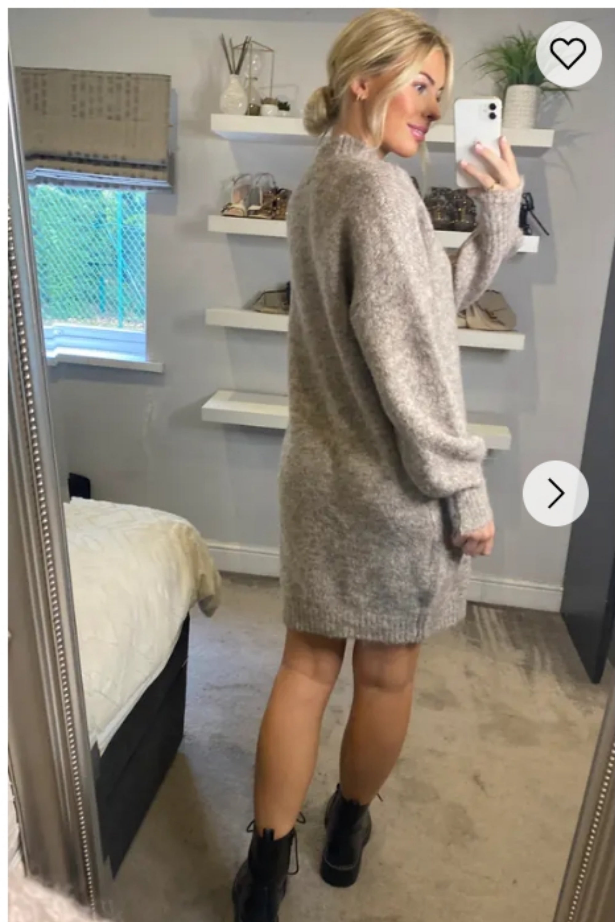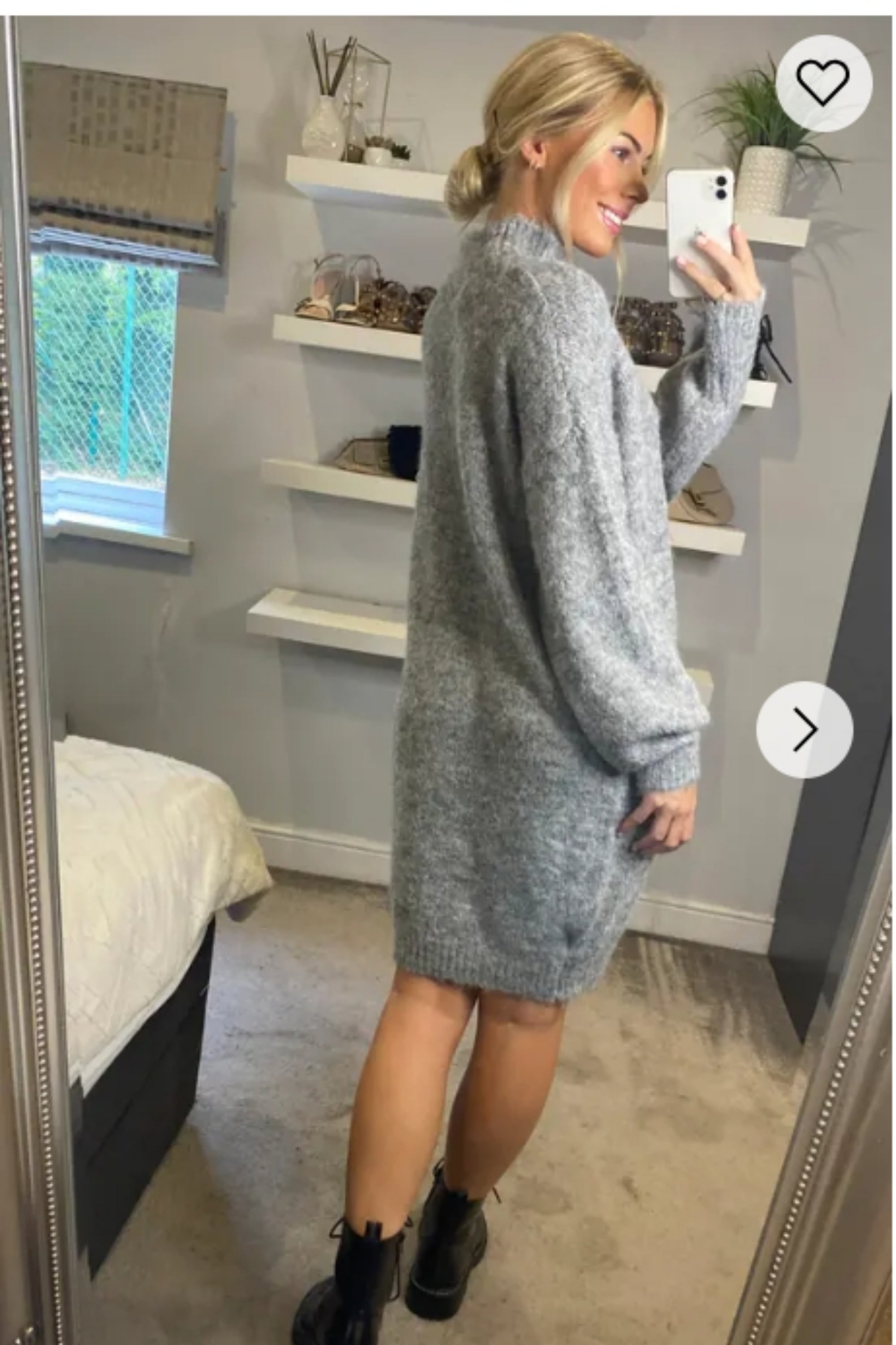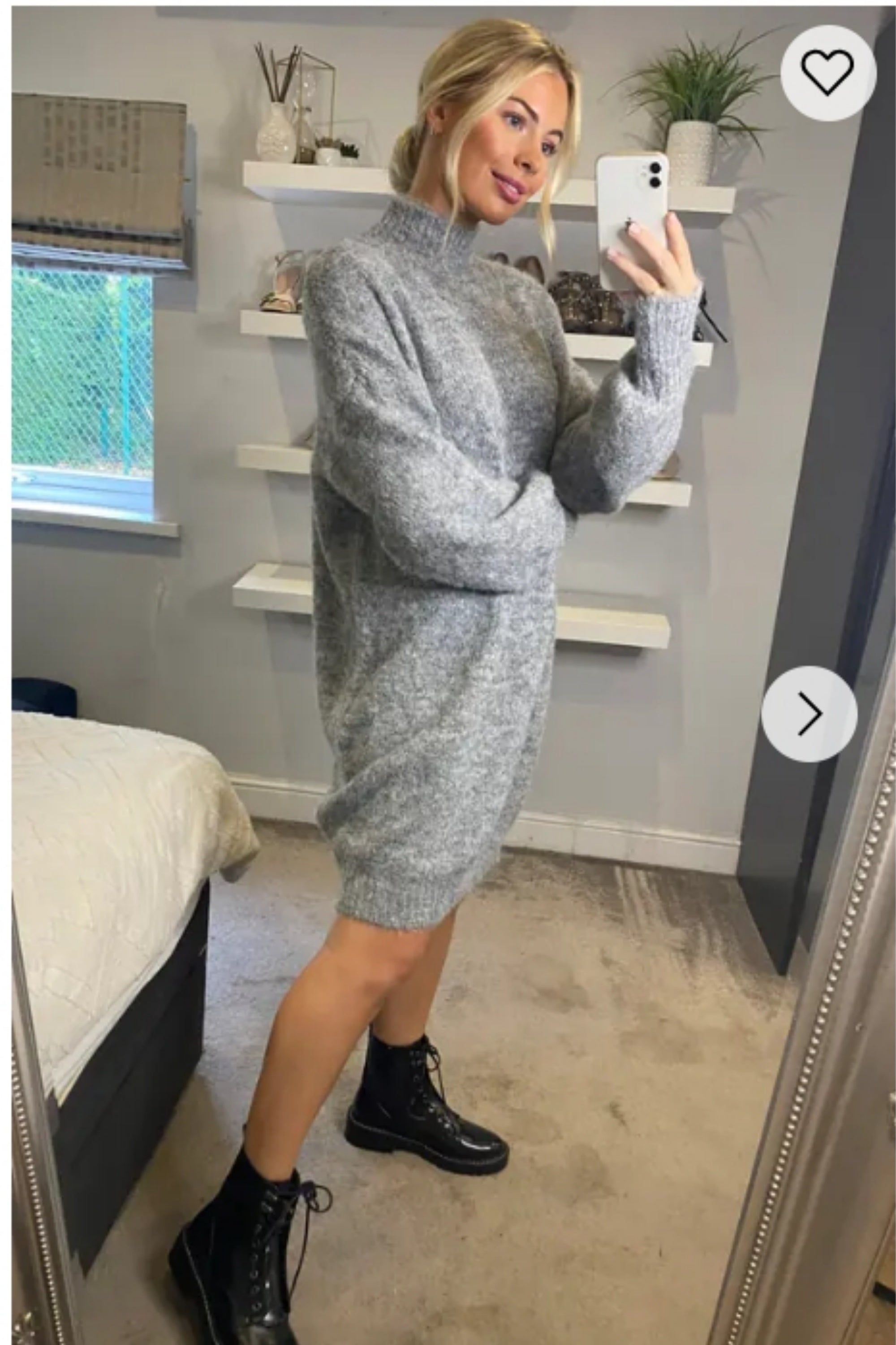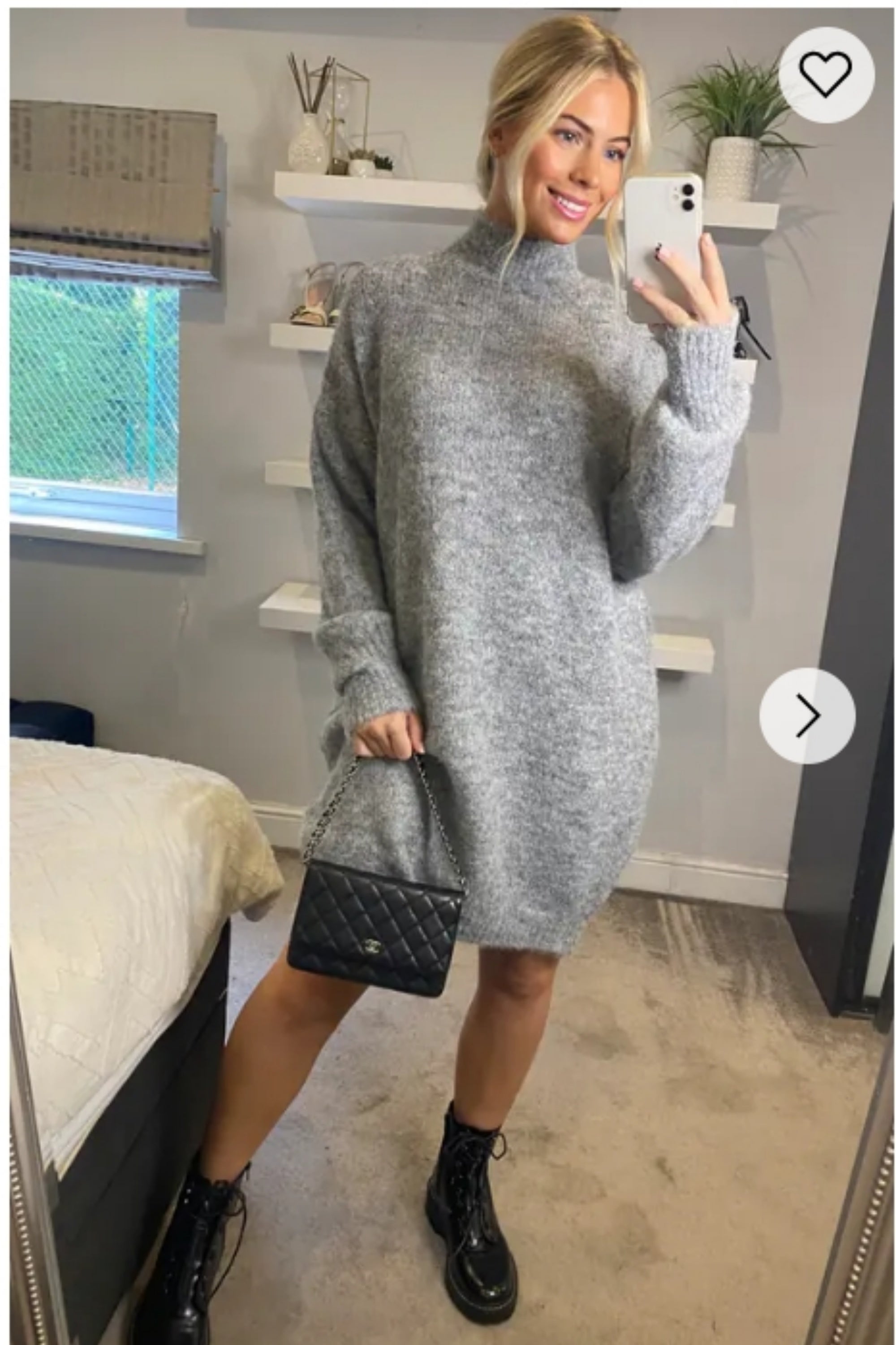 Super Soft Fine Knit Plain Color Funnel Neck Long Jumper in Grey