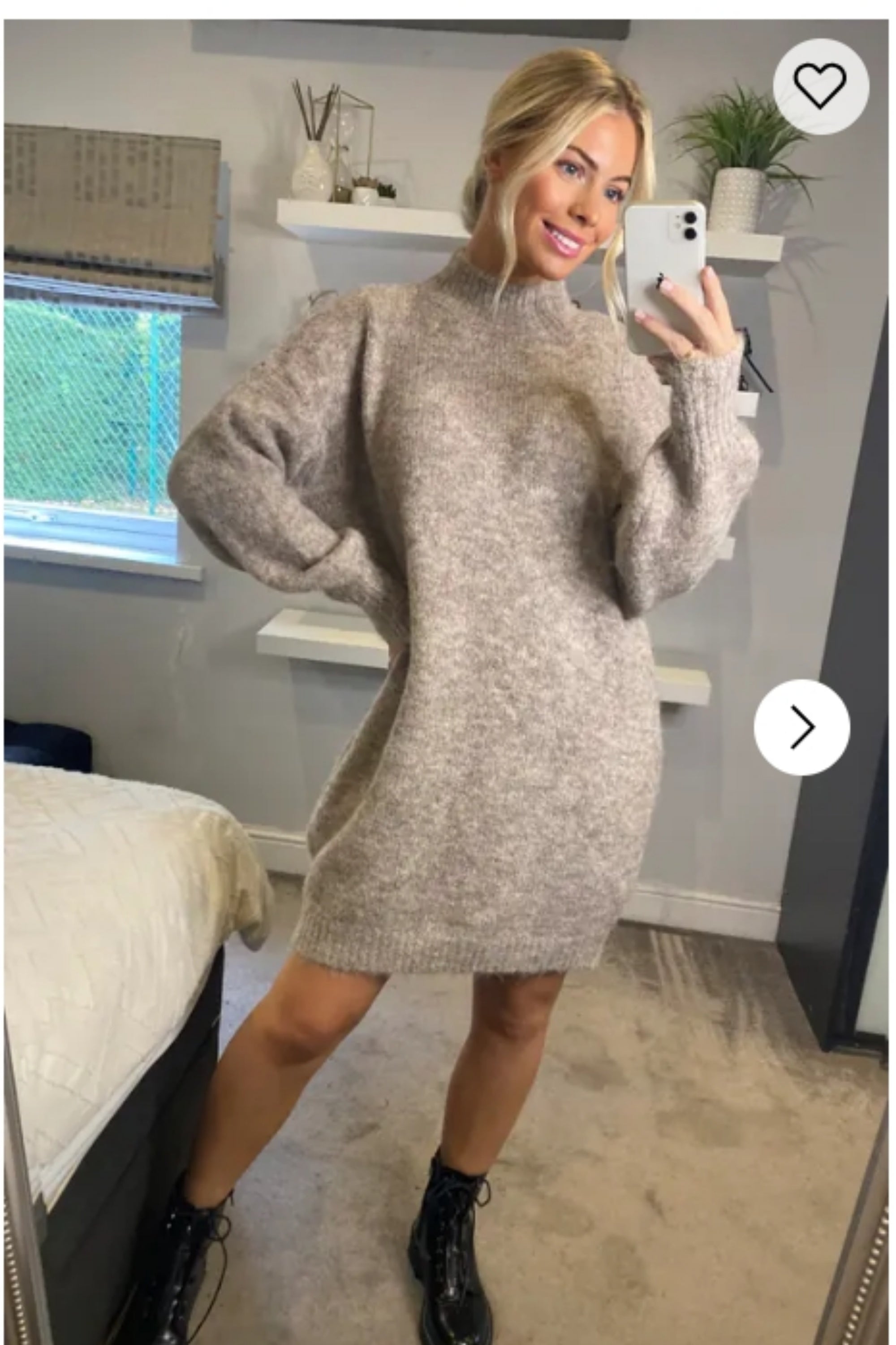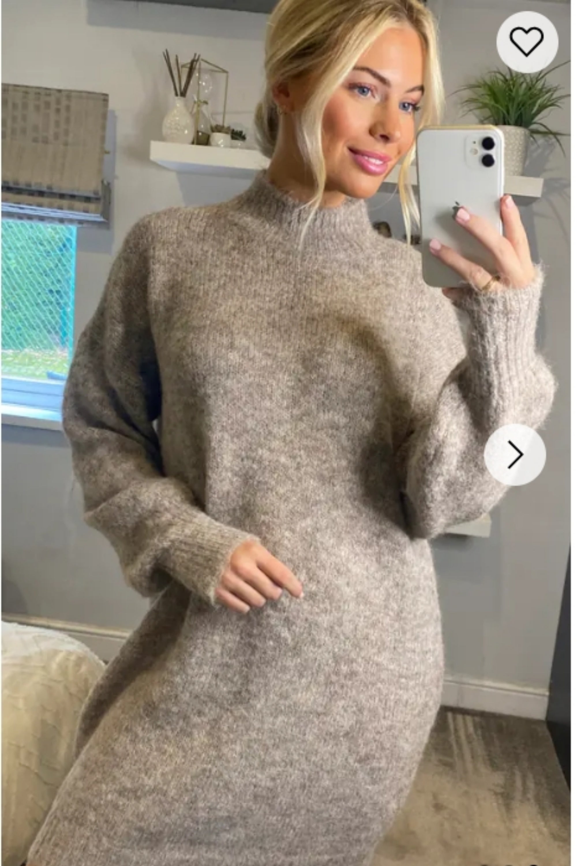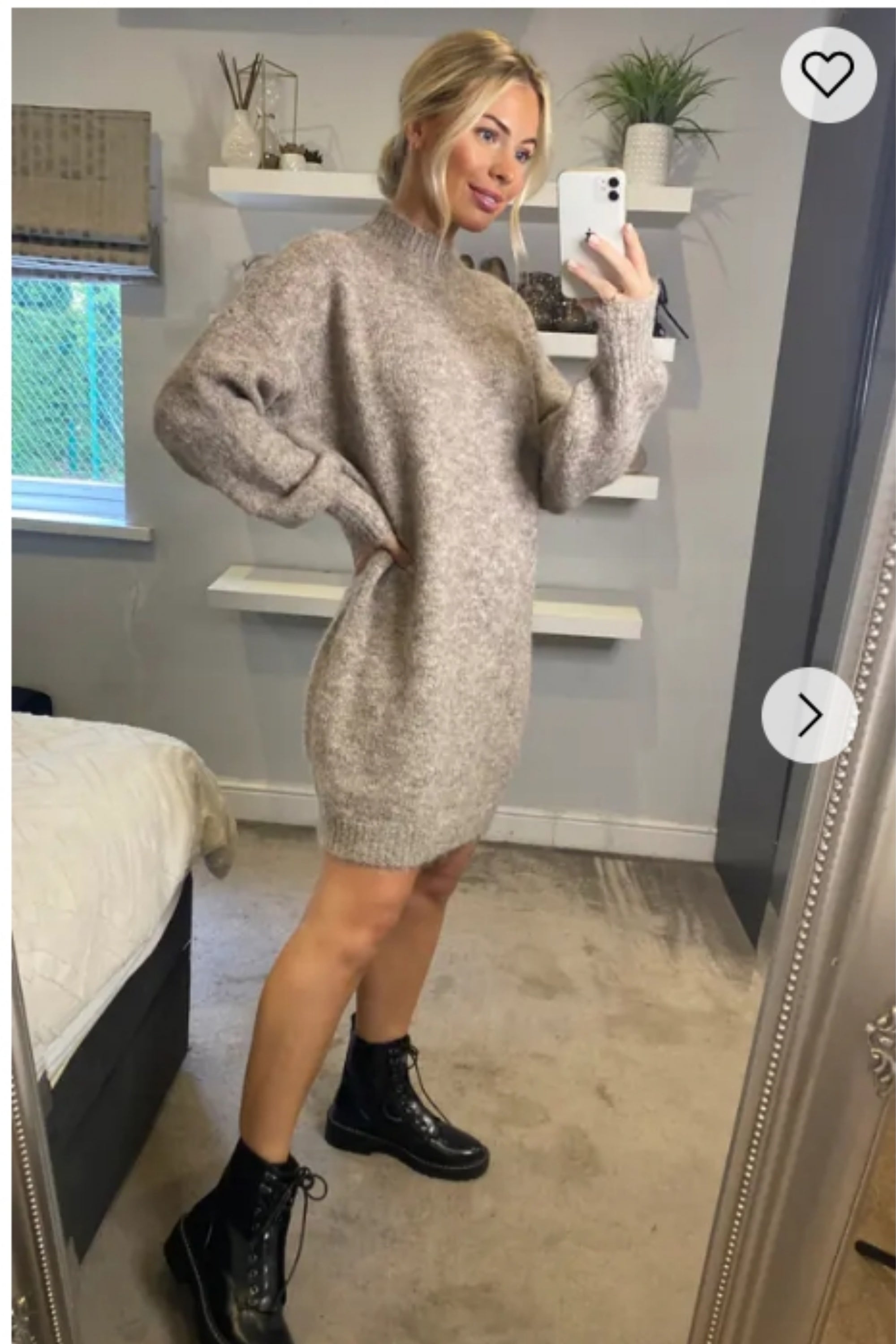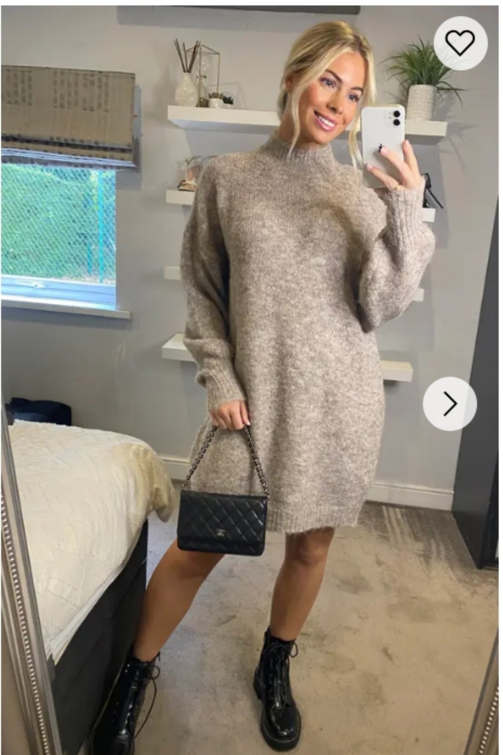 Super Soft Fine Knit Plain Color Funnel Neck Long Jumper in Beige