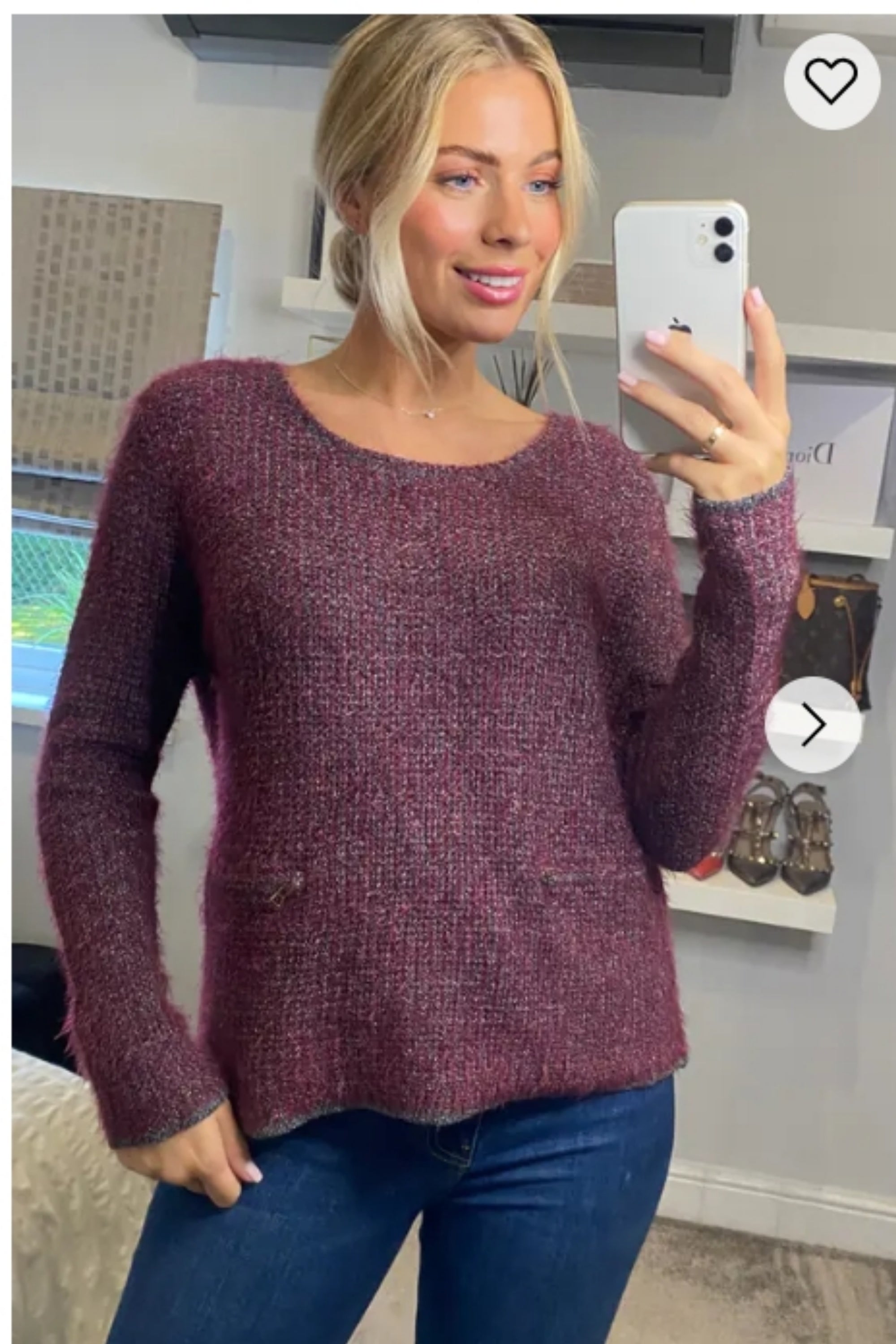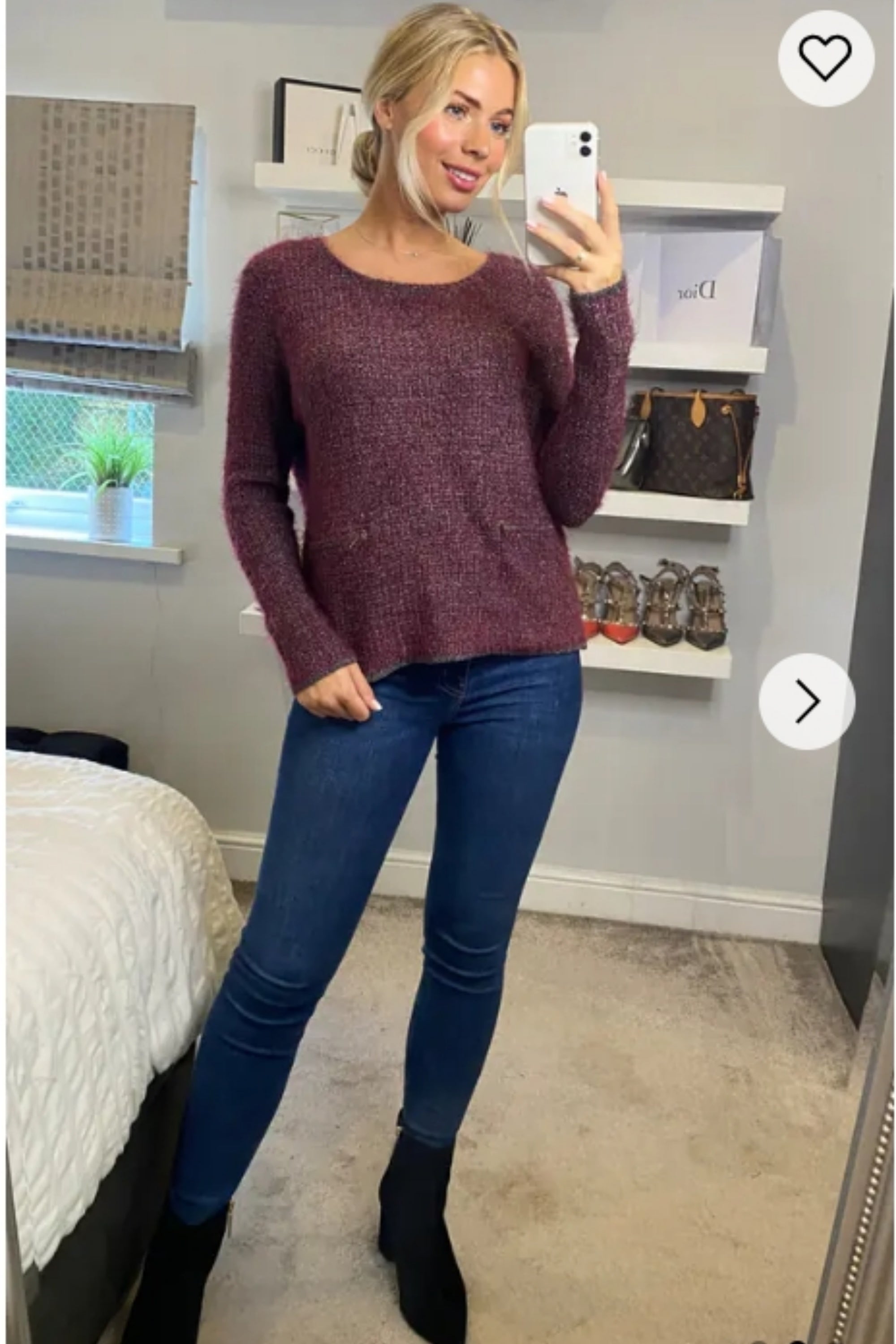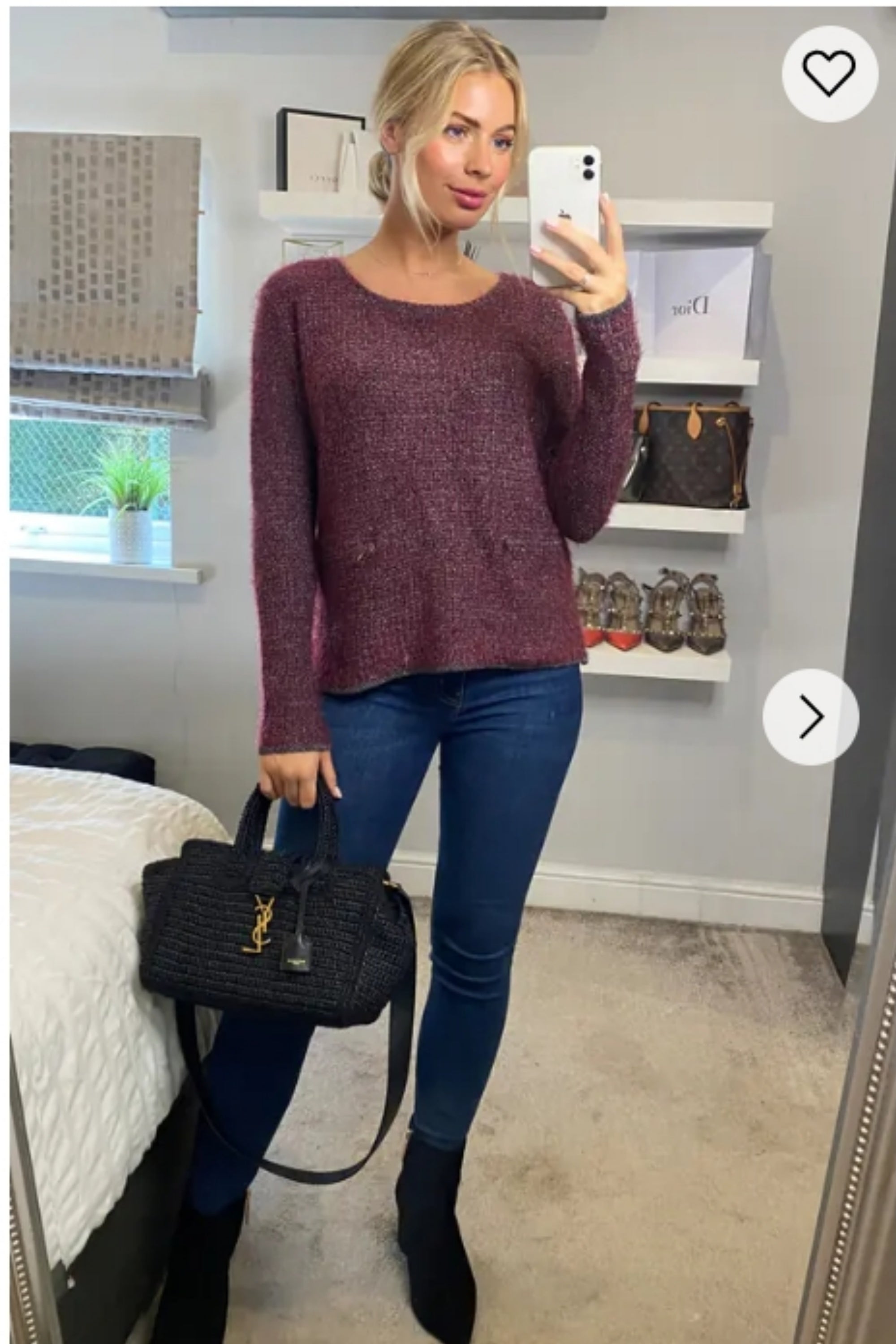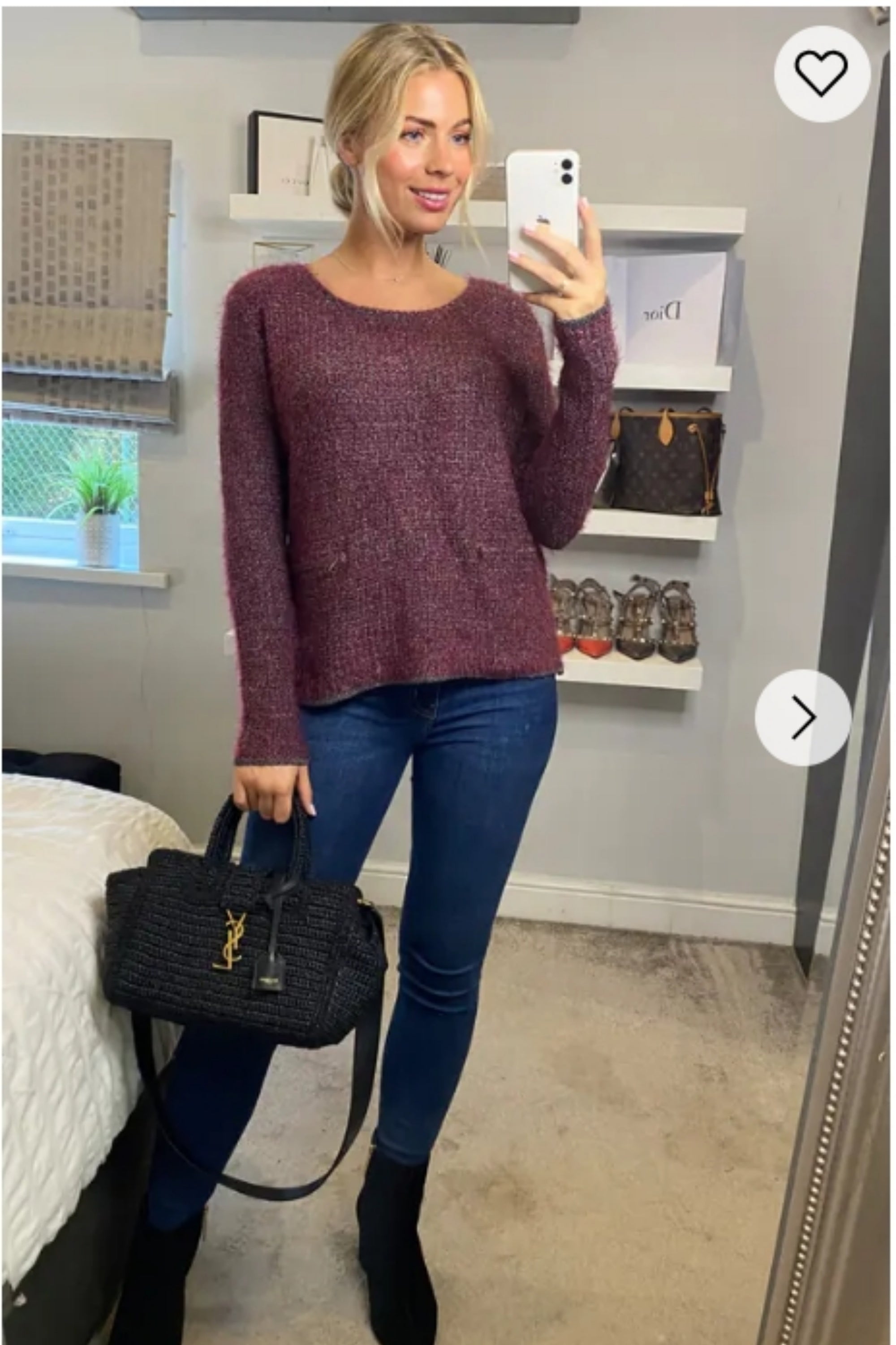 Brushed texture Love Heart Jacquard Pattern Embroidered Jumper in Grey
