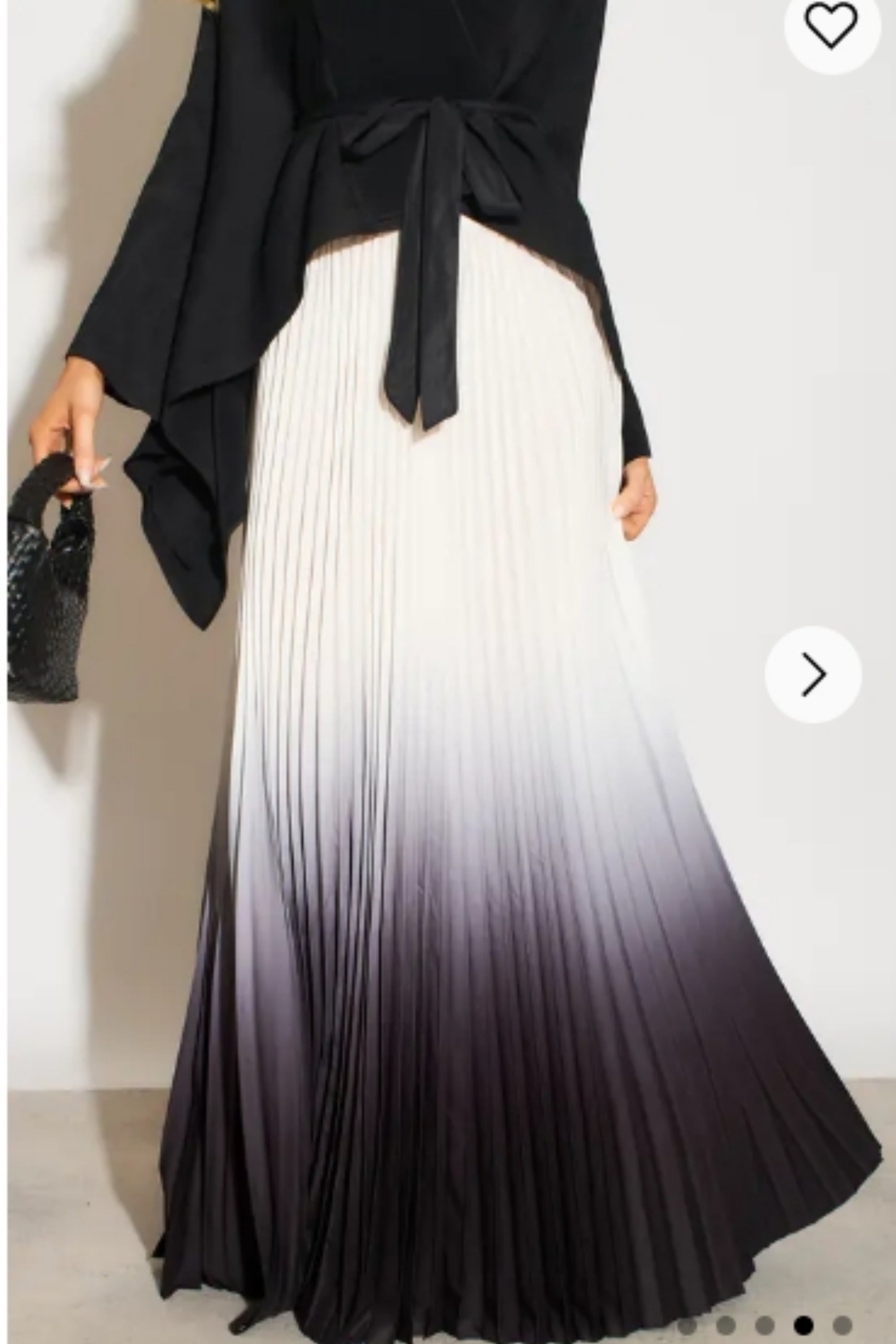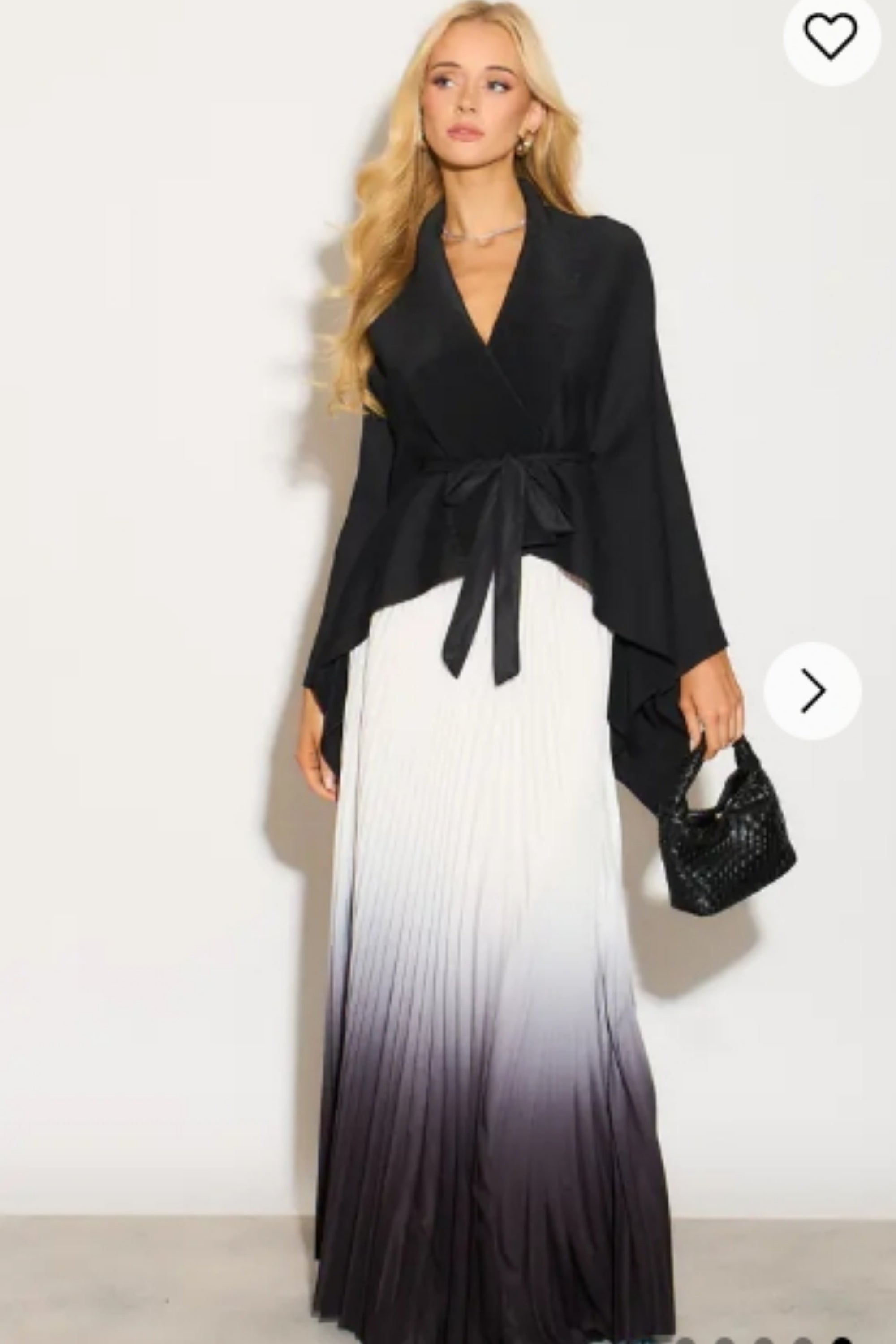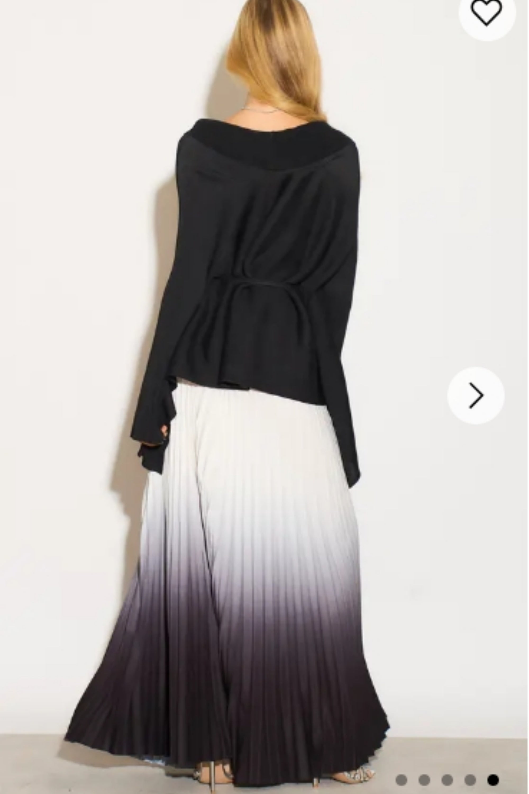 Full pleated Kimono sleeves cardigan top and tie dye print maxi skirt in black