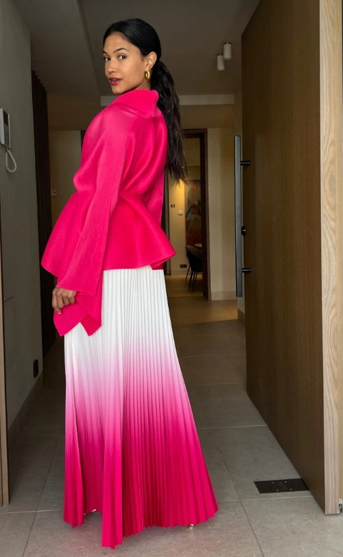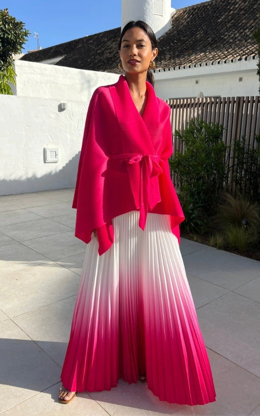 Full pleated Kimono sleeves cardigan top and tie dye print maxi skirt in pink