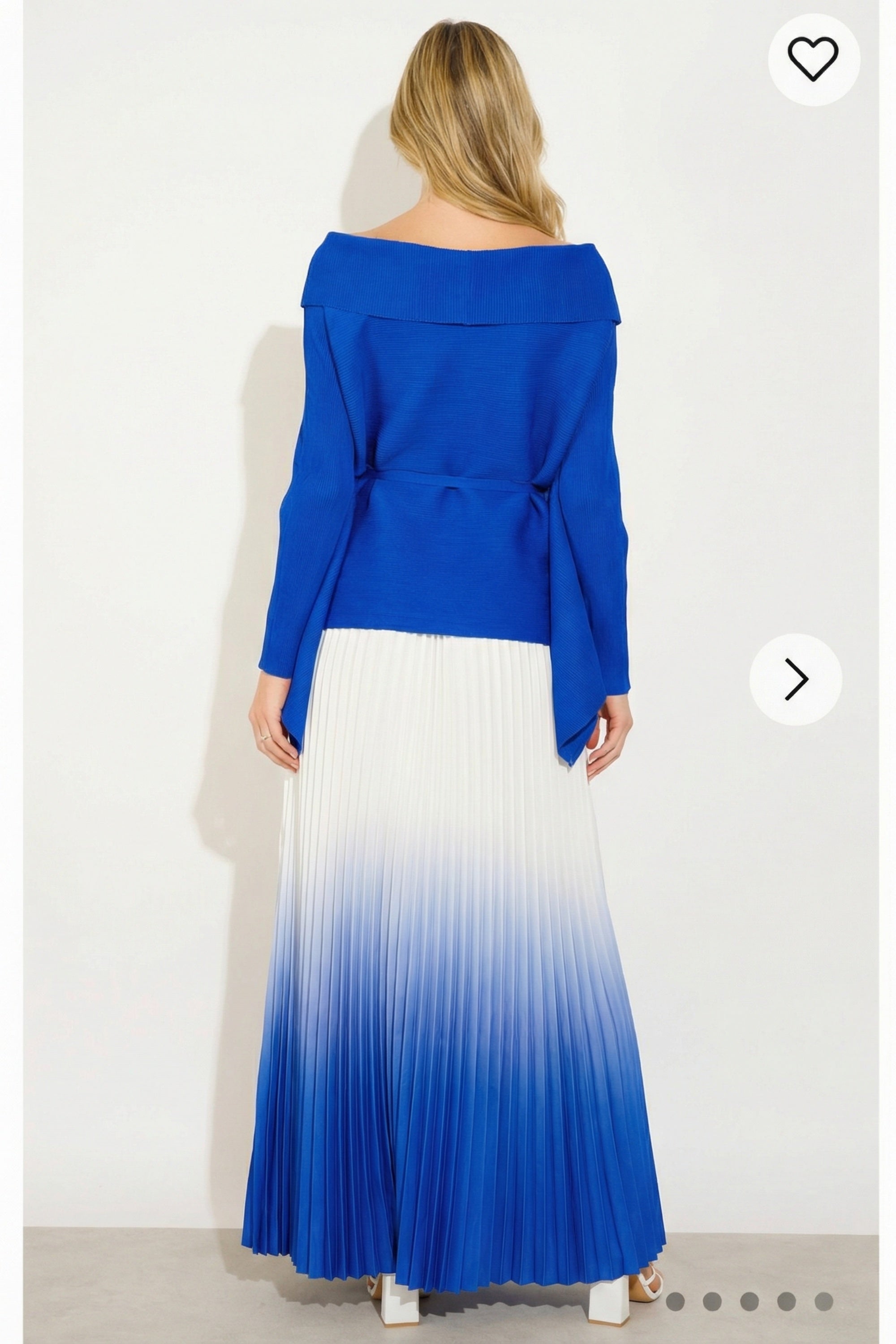Full pleated Kimono sleeves cardigan top and tie dye print maxi skirt in Royal Blue