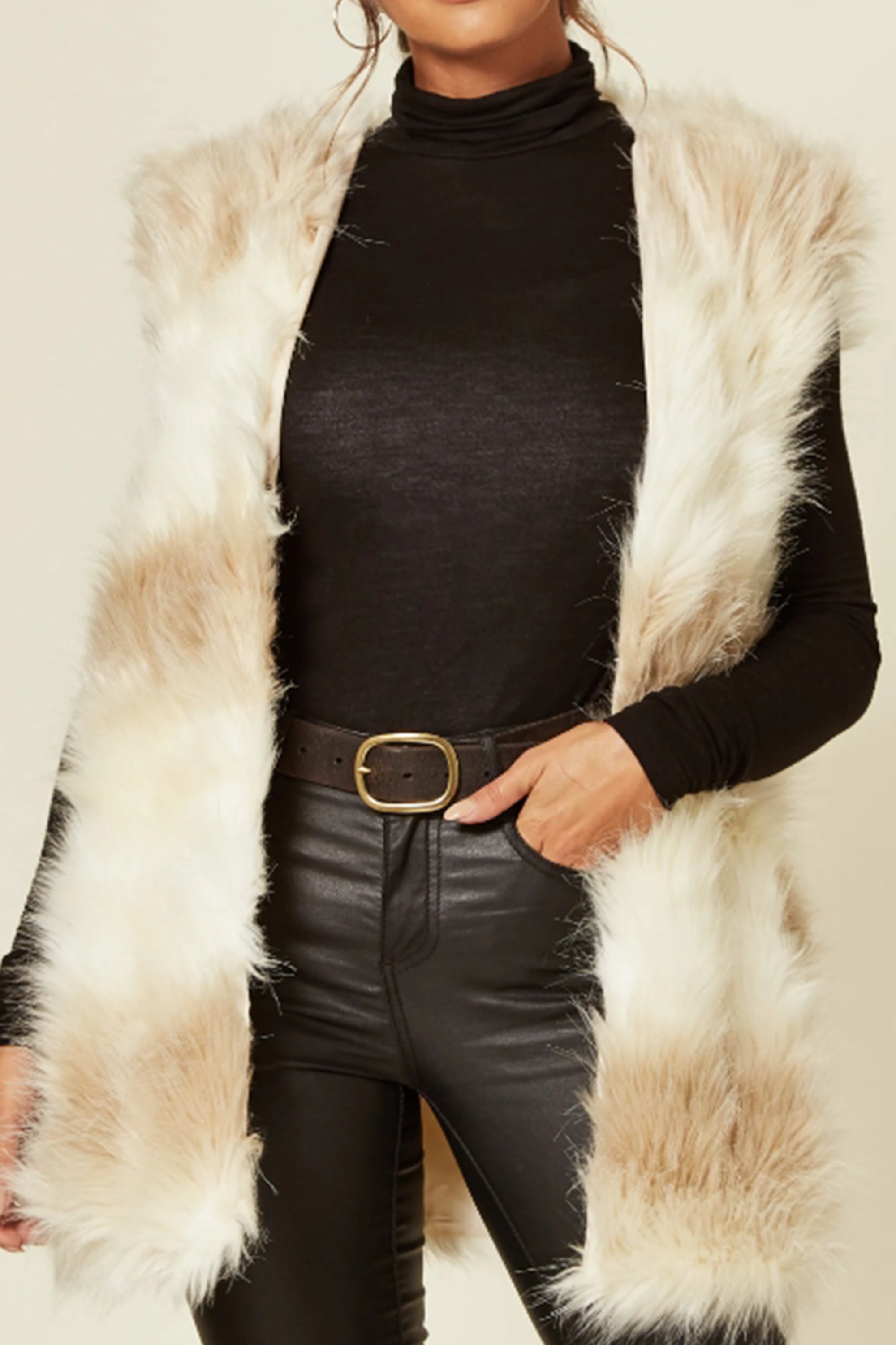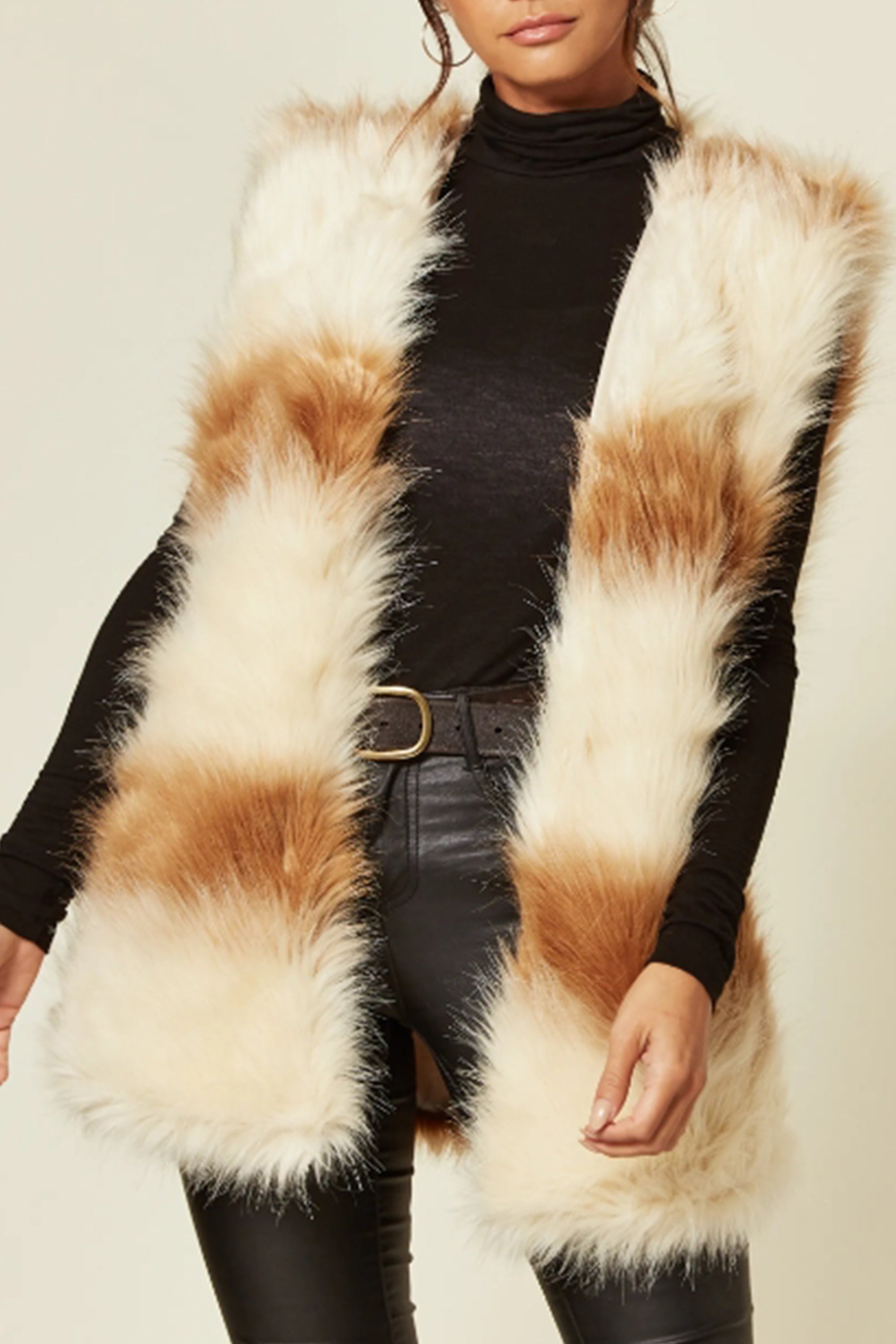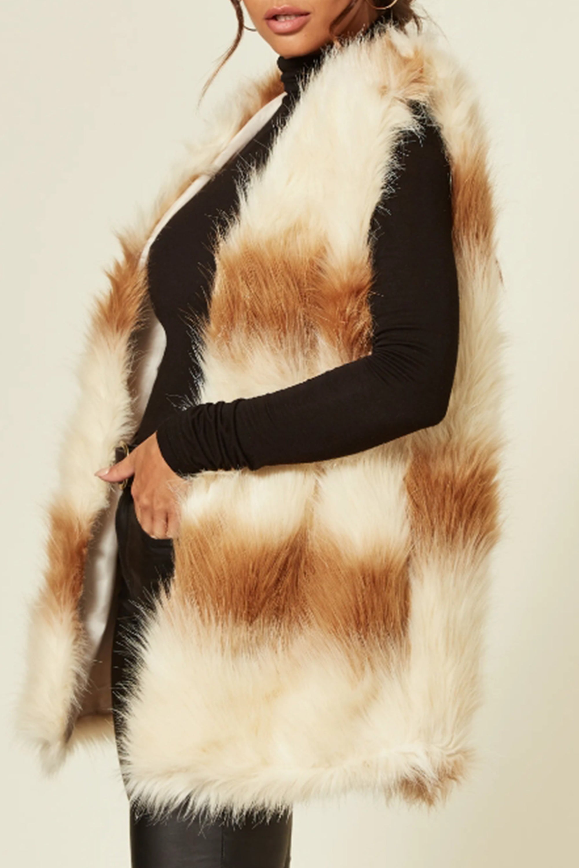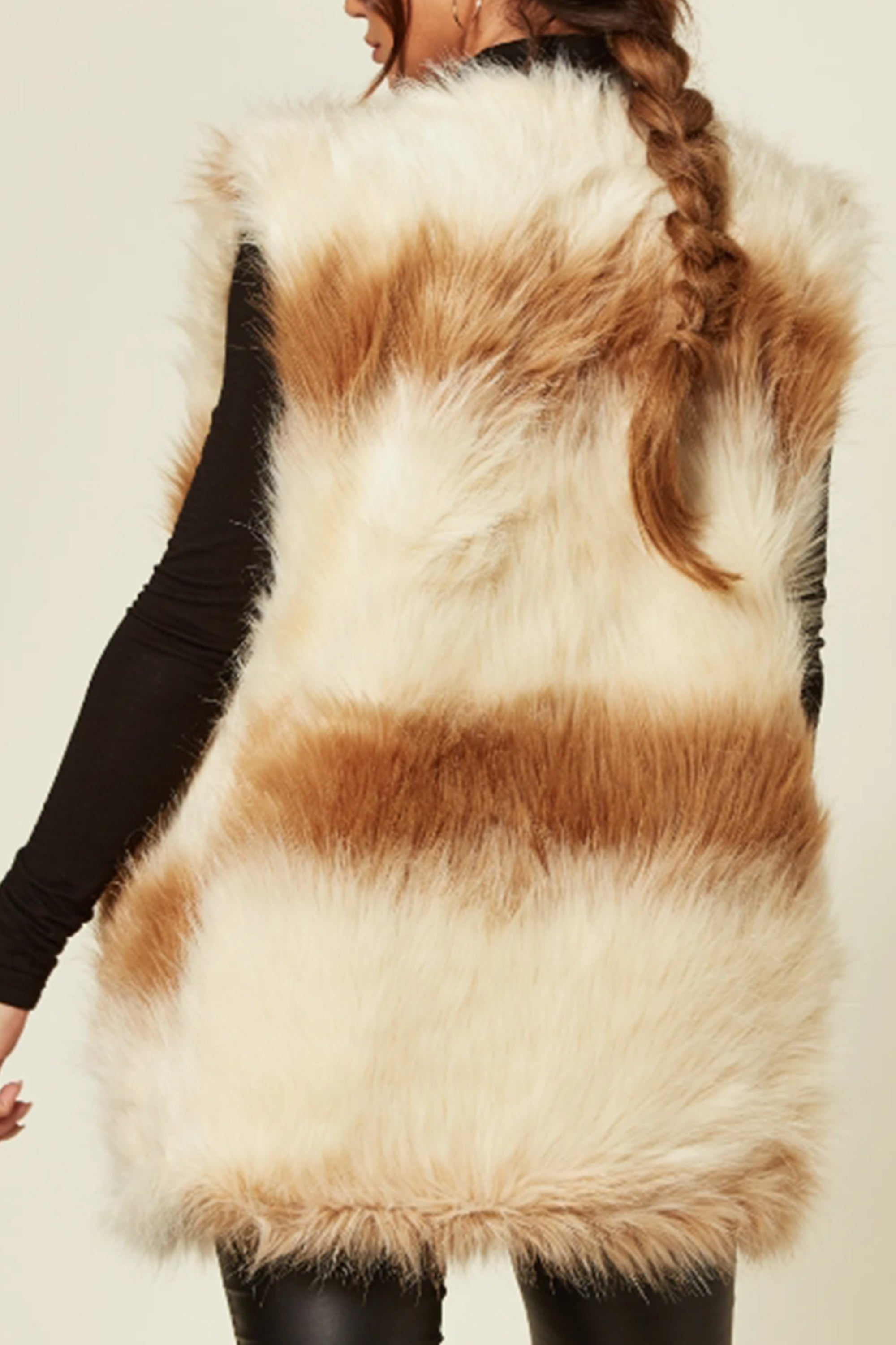 Sleeveless Wool Knitted long Cardigan (Brown)