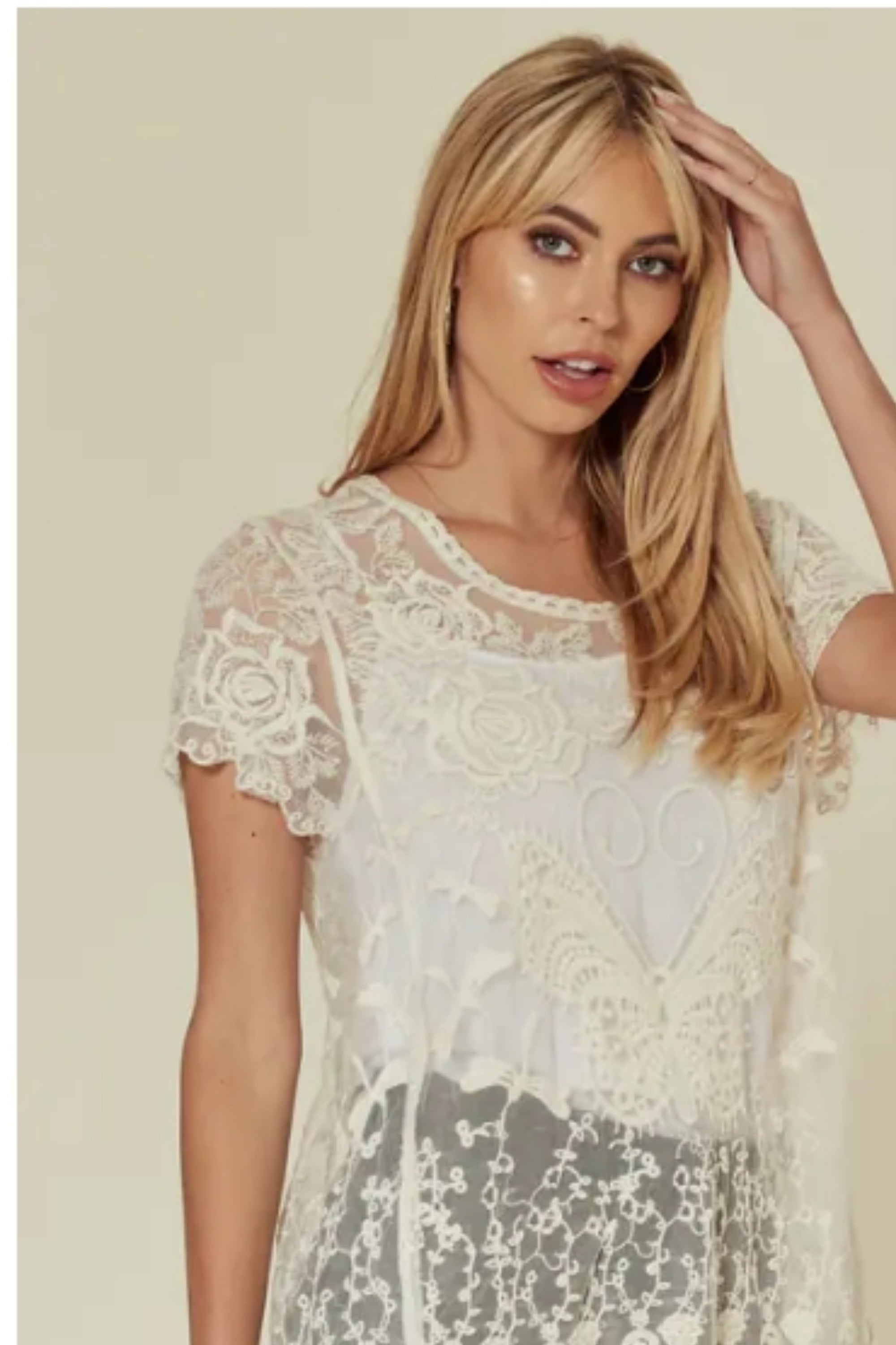 Black Knitted Floral Lace & Chiffon Dropped Hem Split Tank Top/Vest