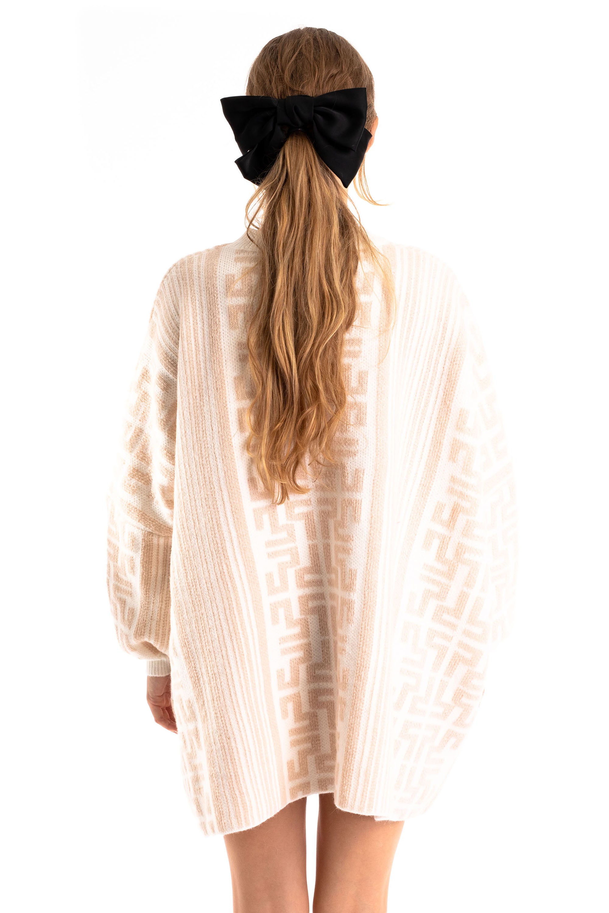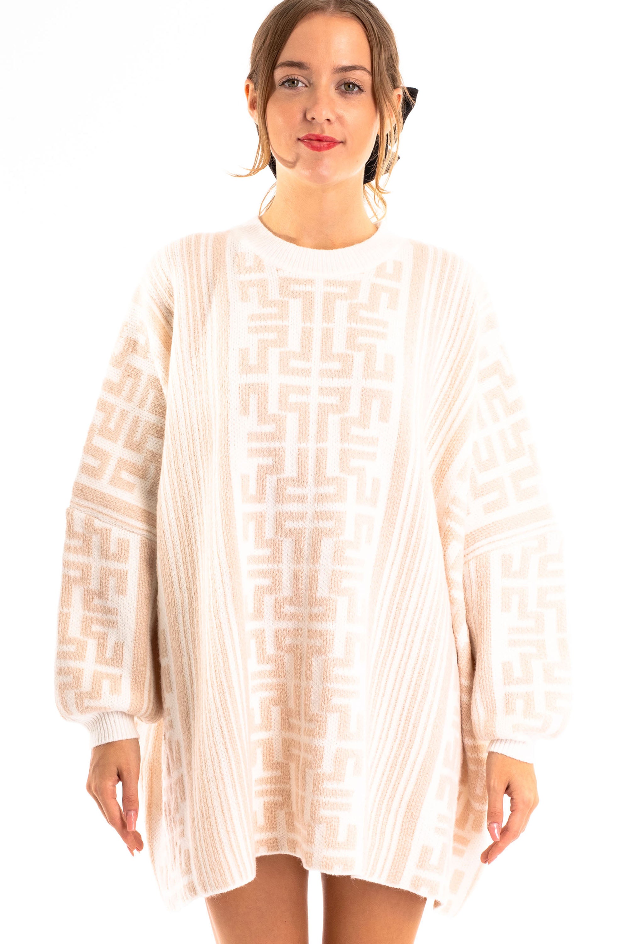 Fine knit oversized jumper with monogrammed pattern design in Pink and White