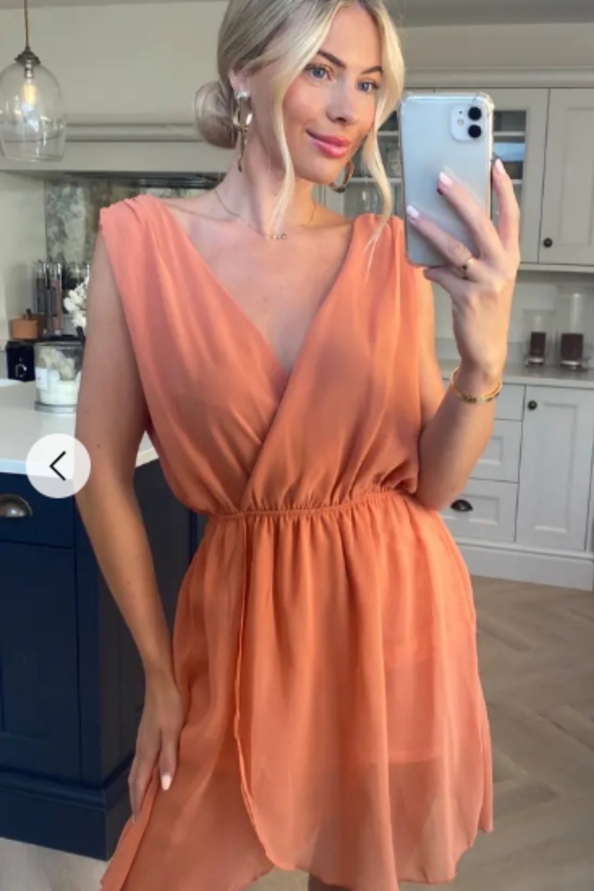 Chiffon pleated full length wedding maxi dress (Salmon pink)
