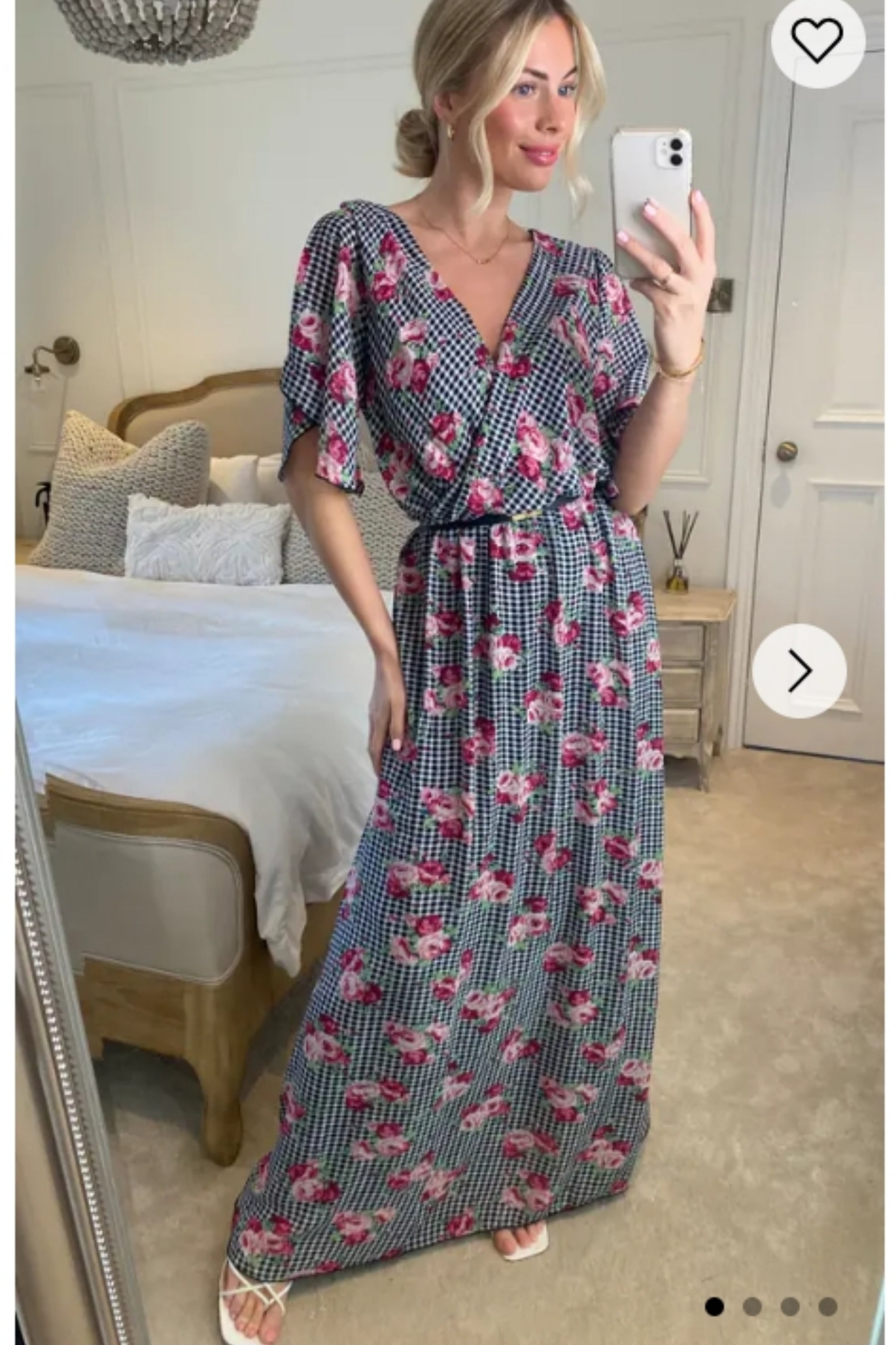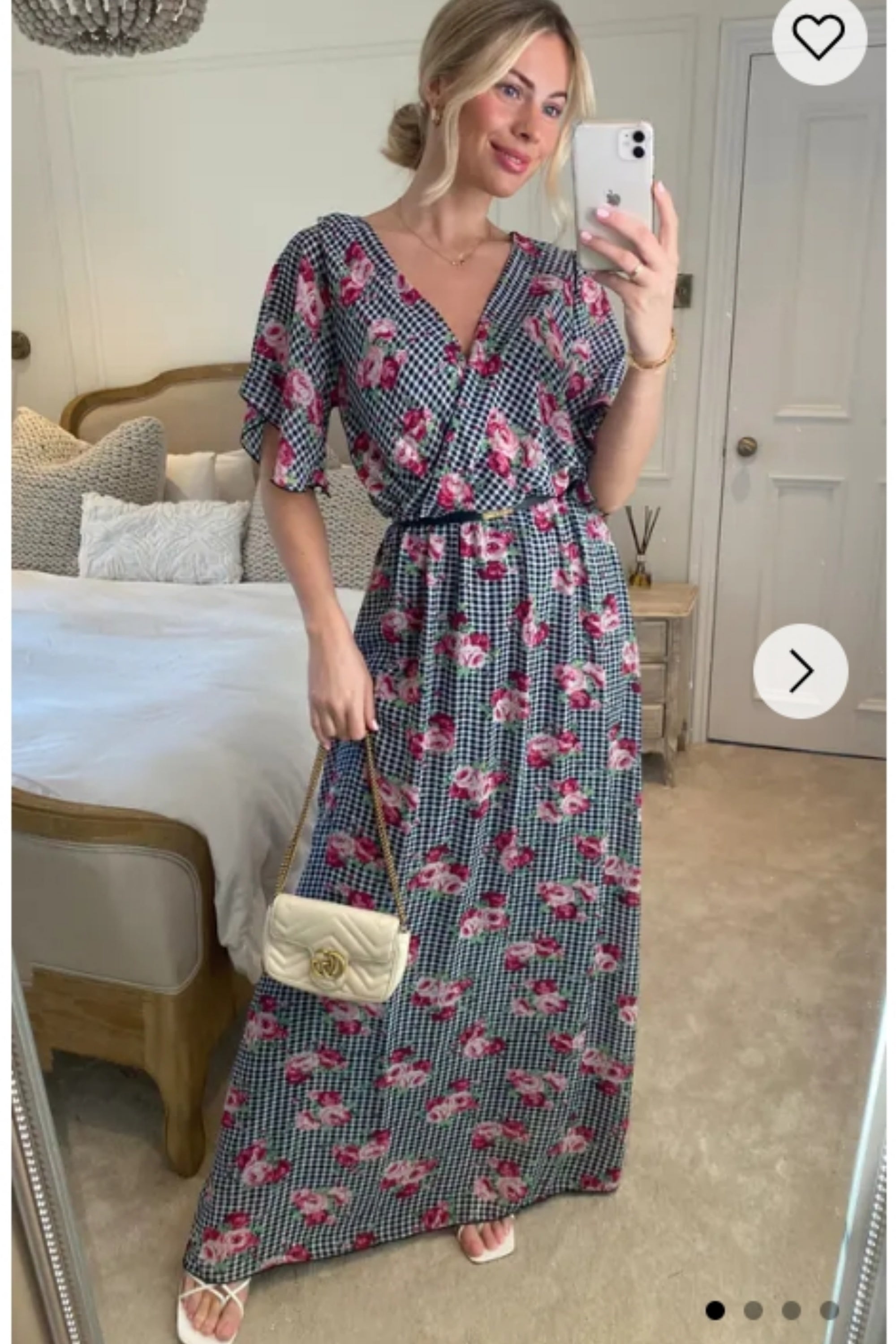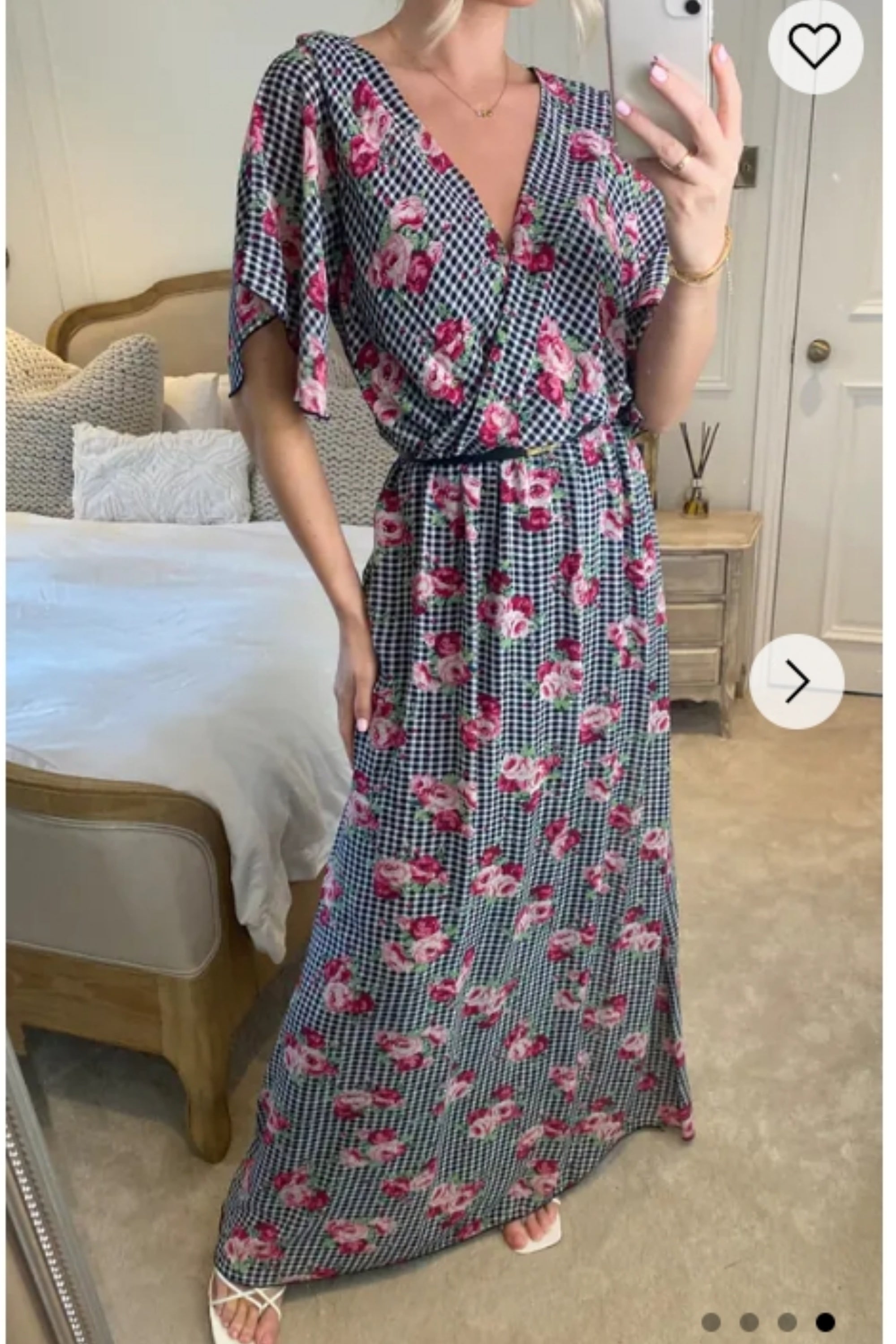 Rose and Check Print Chiffon Wrap Maxi Dress