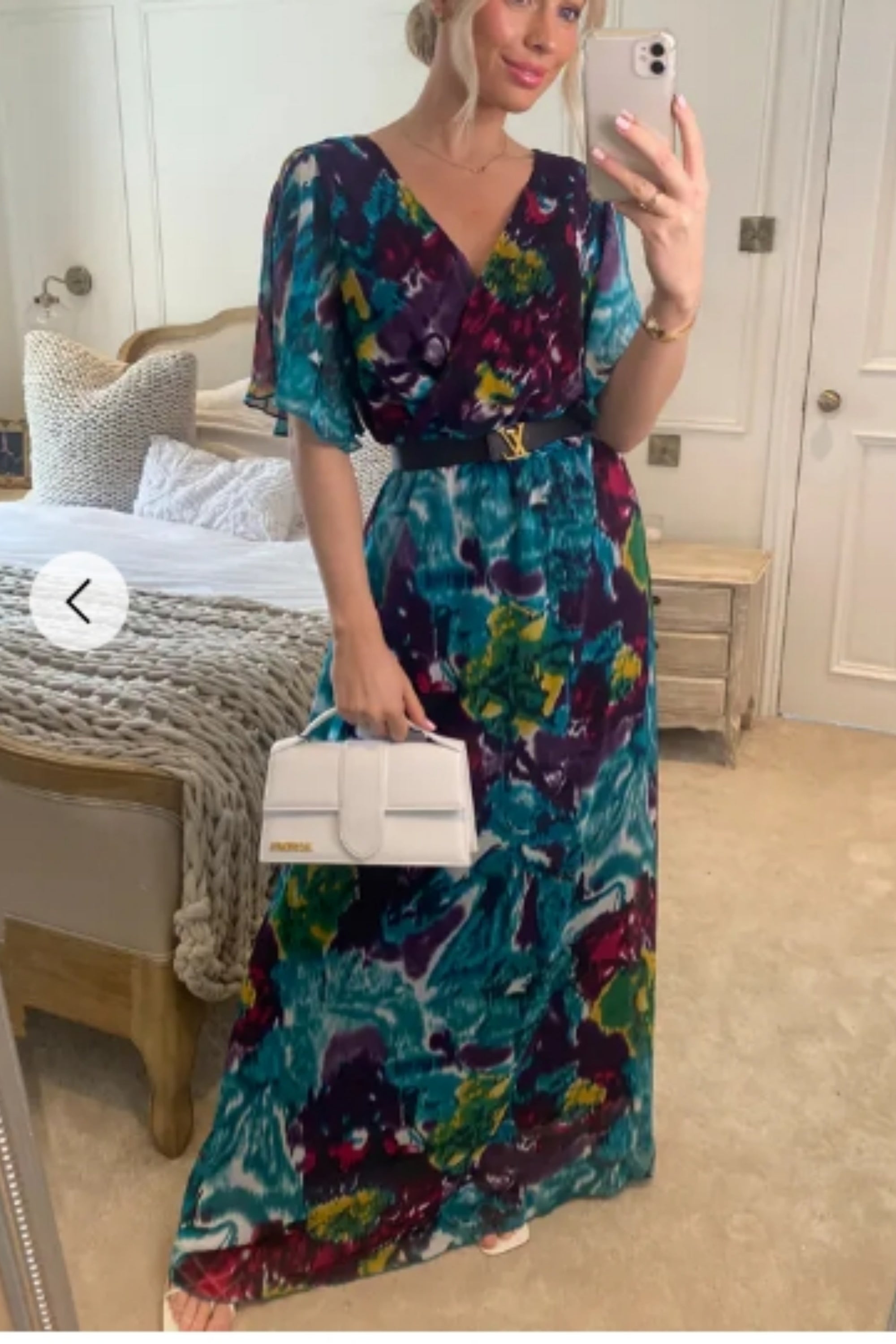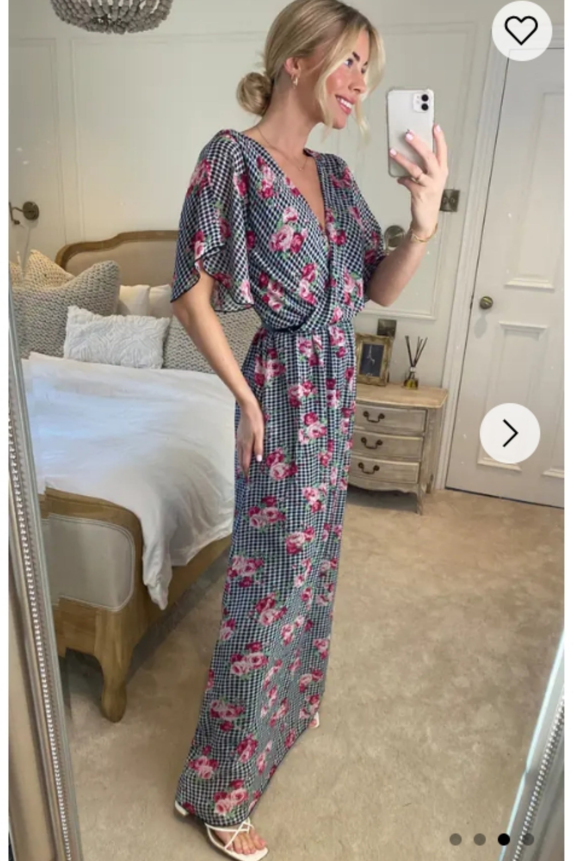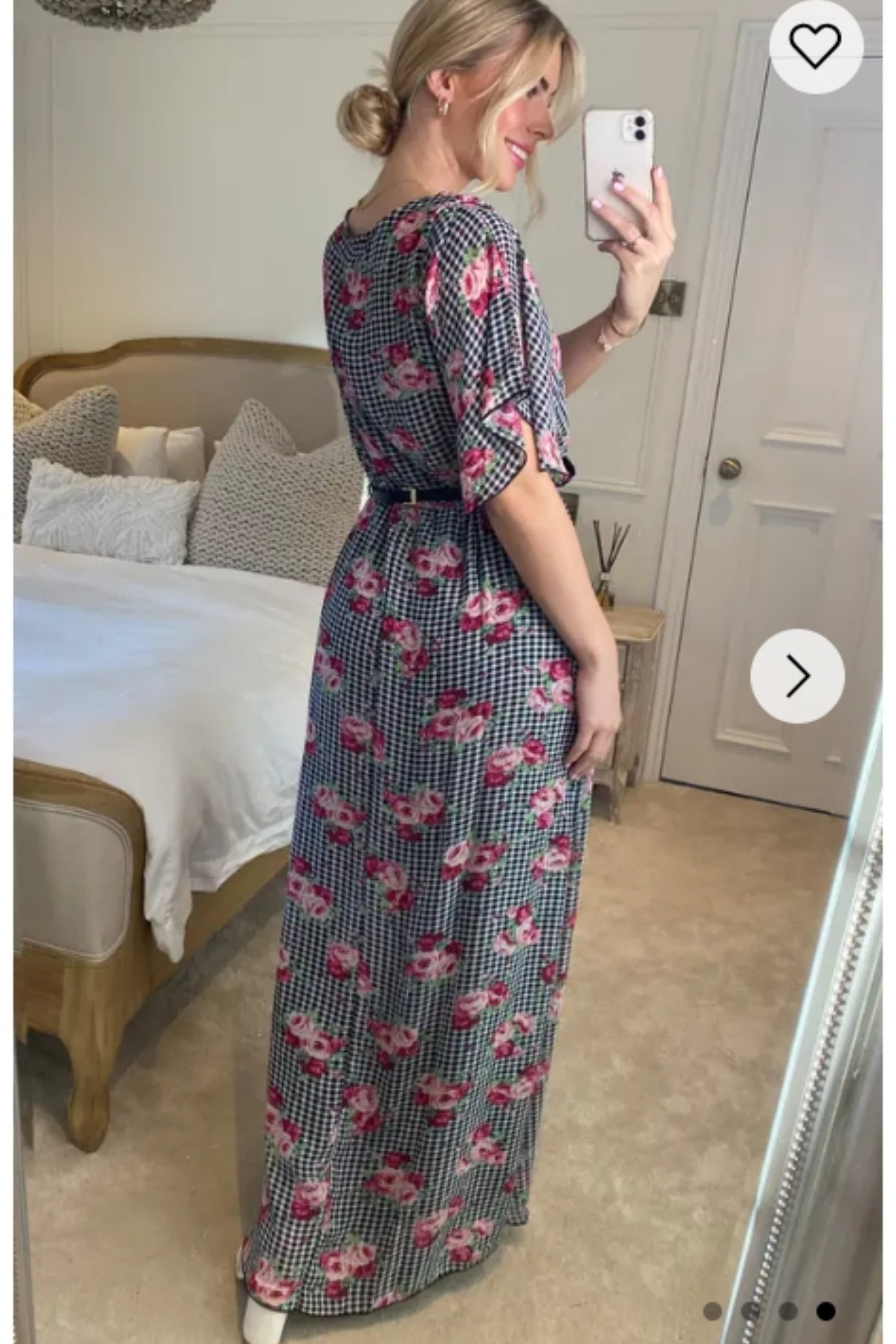 Rose and Check Print Chiffon Wrap Maxi Dress