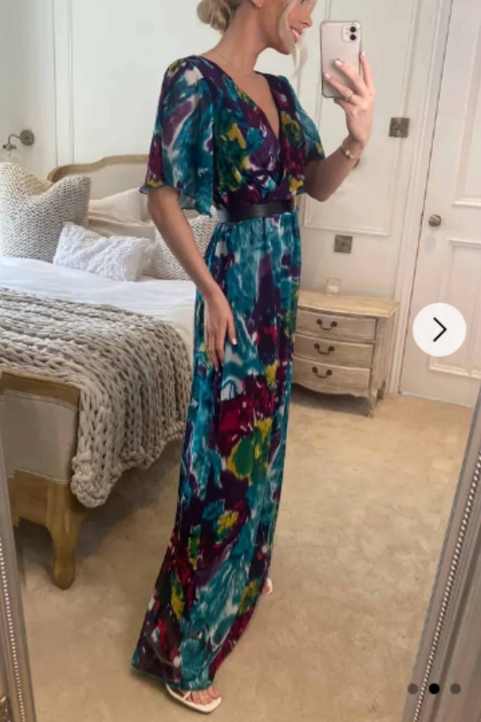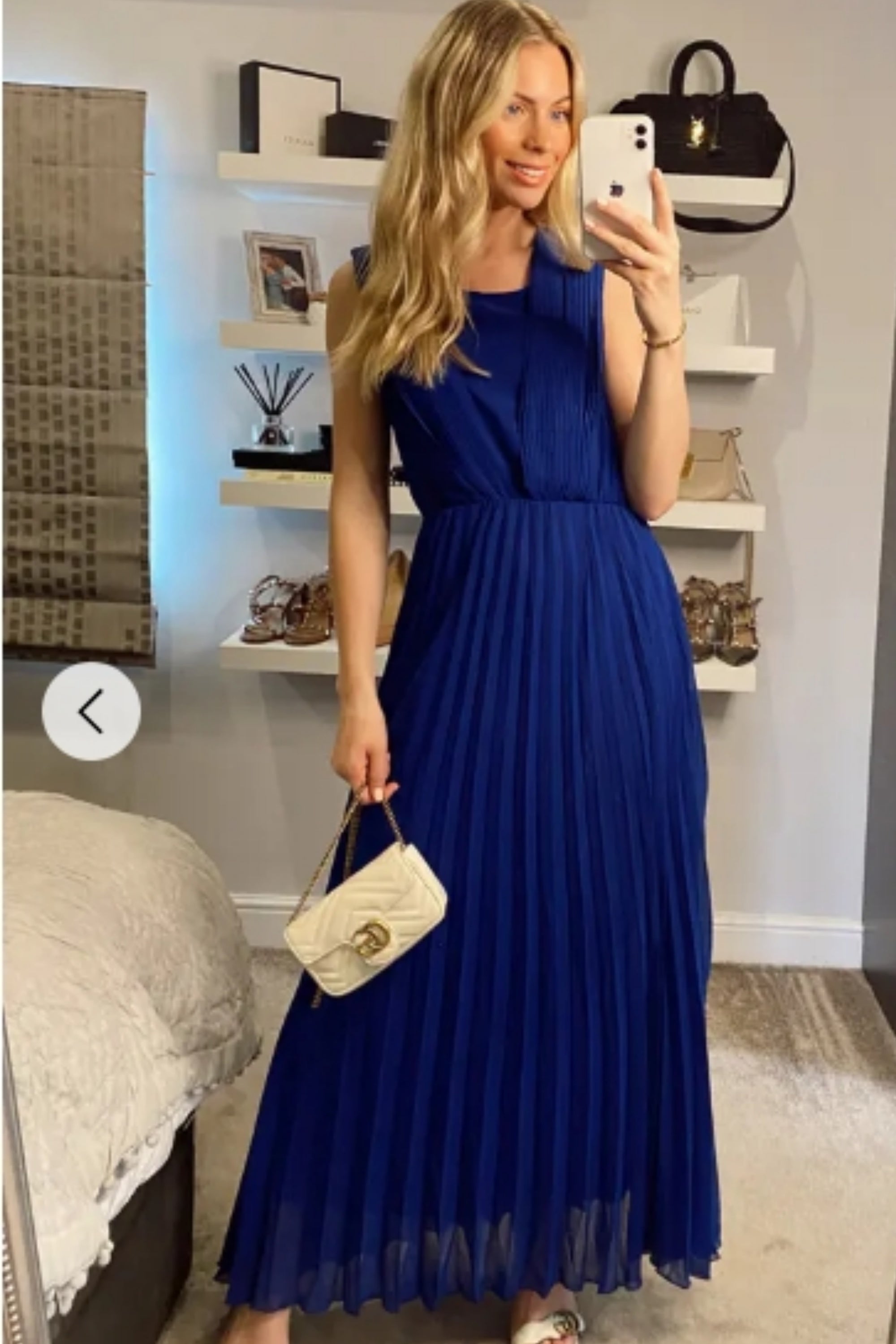 Chiffon pleated full length wedding maxi dress (Royal Blue)
