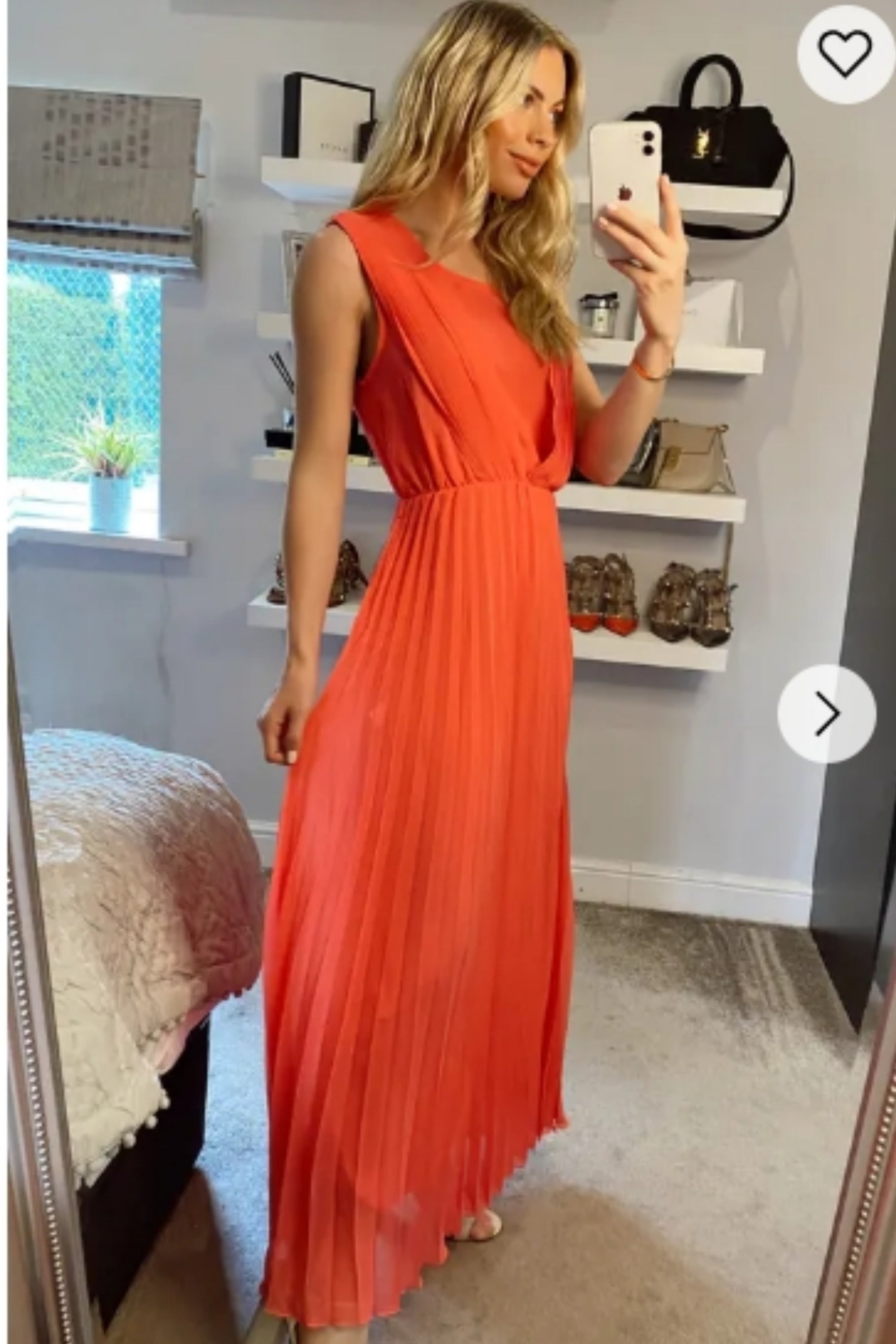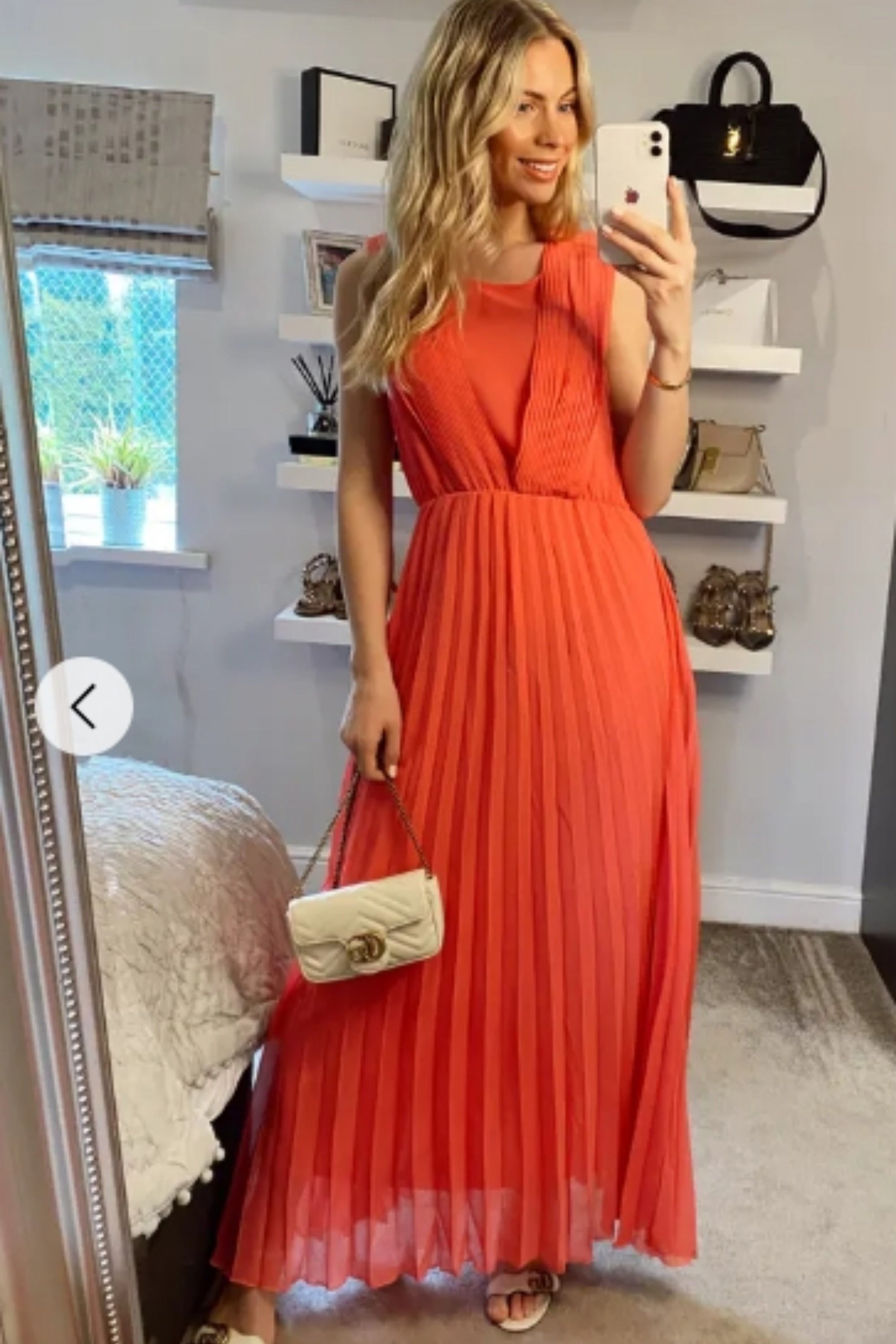 Chiffon pleated full length wedding maxi dress (Peach)