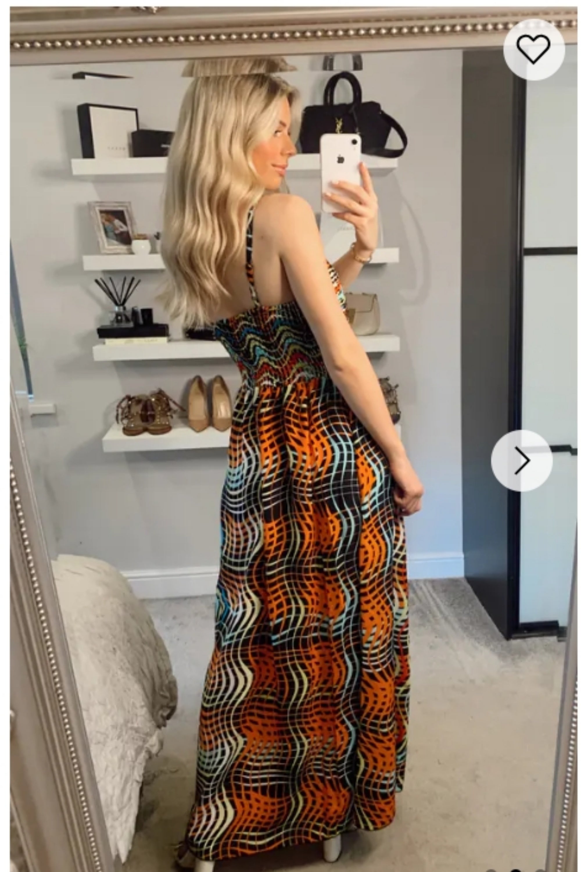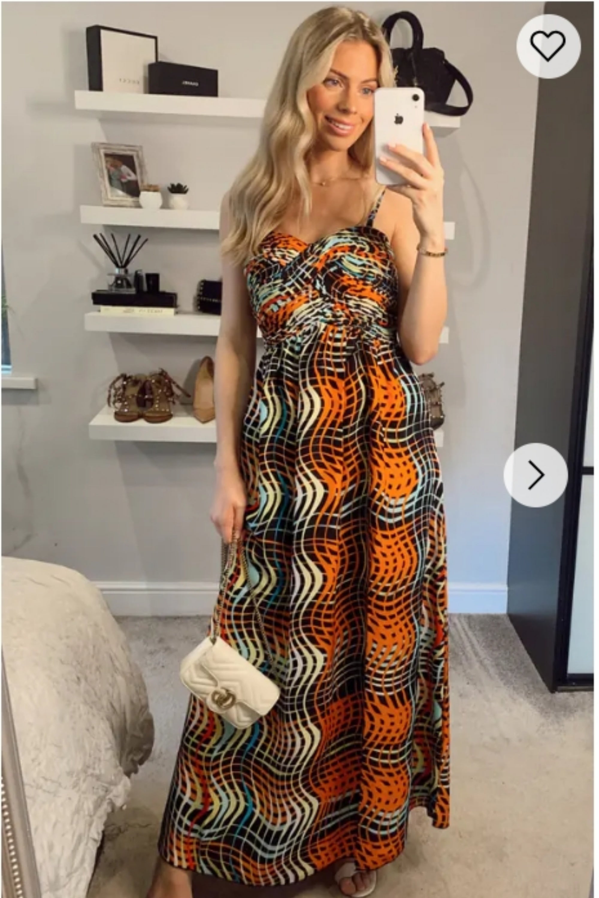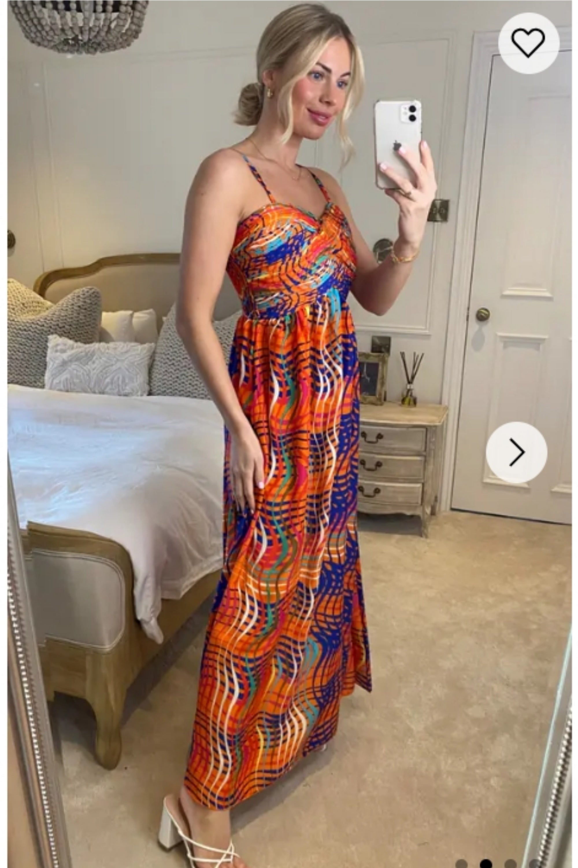 Peach Floral Print Chiffon Pleated Bust & Sweetheart Neckline Maxi Dress