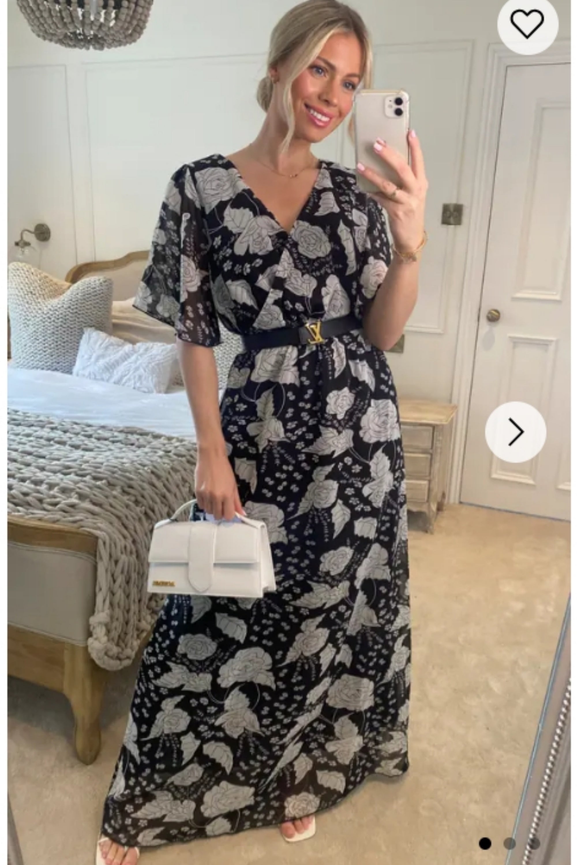 Floral Print Chiffon Pleated Bust & Sweetheart Neckline Maxi Dress