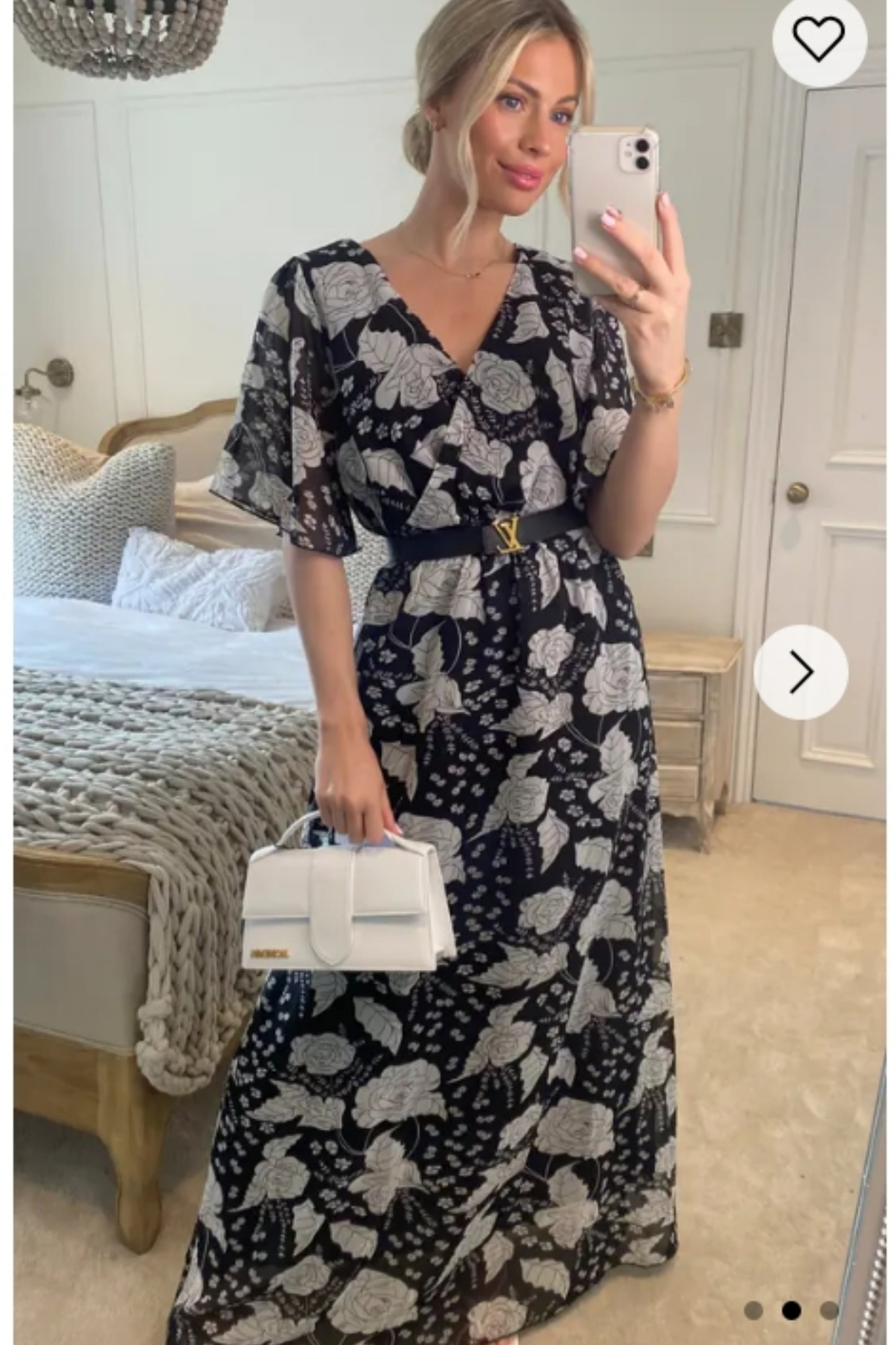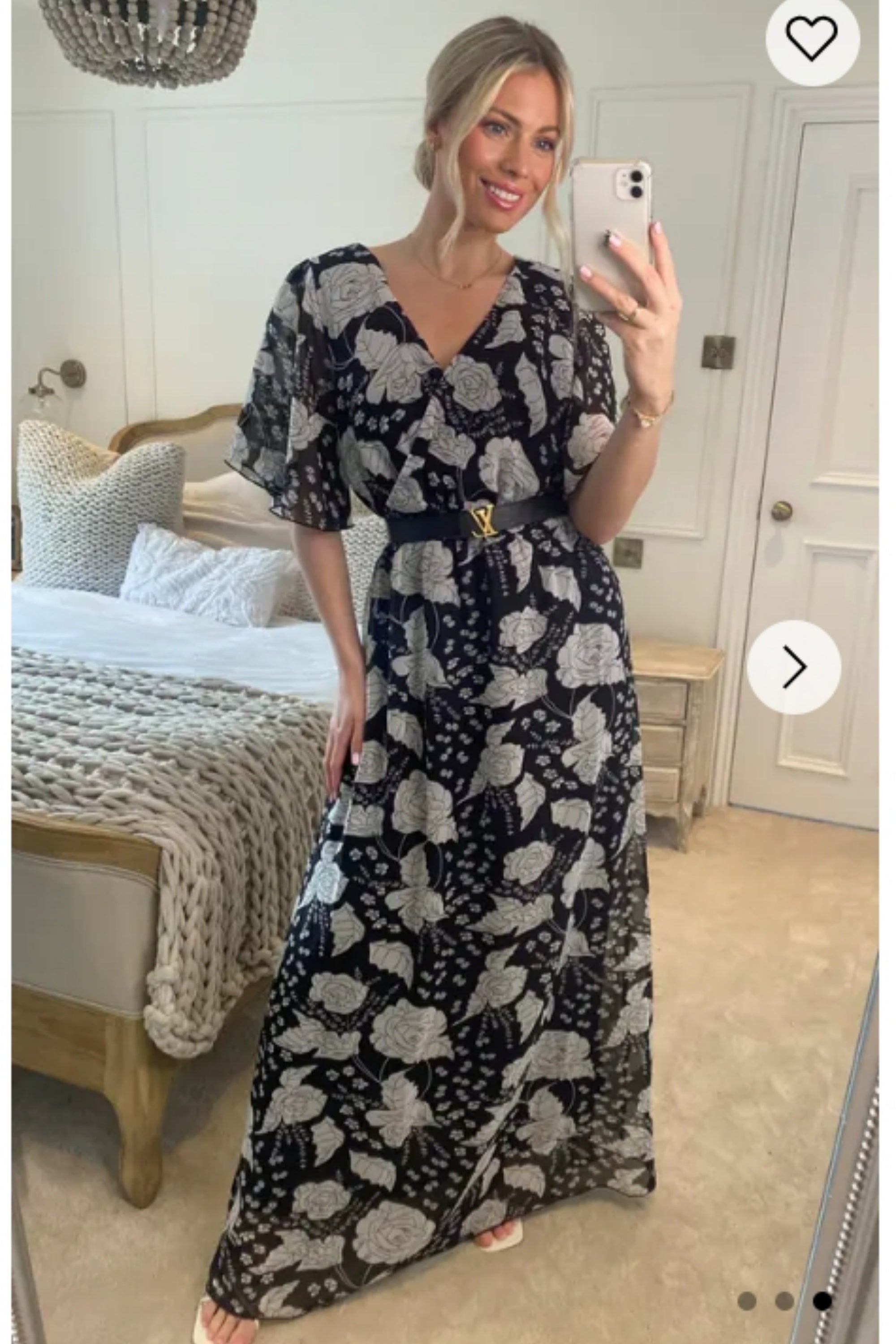 Lady Black Rose Print Chiffon Wrap Maxi Dress