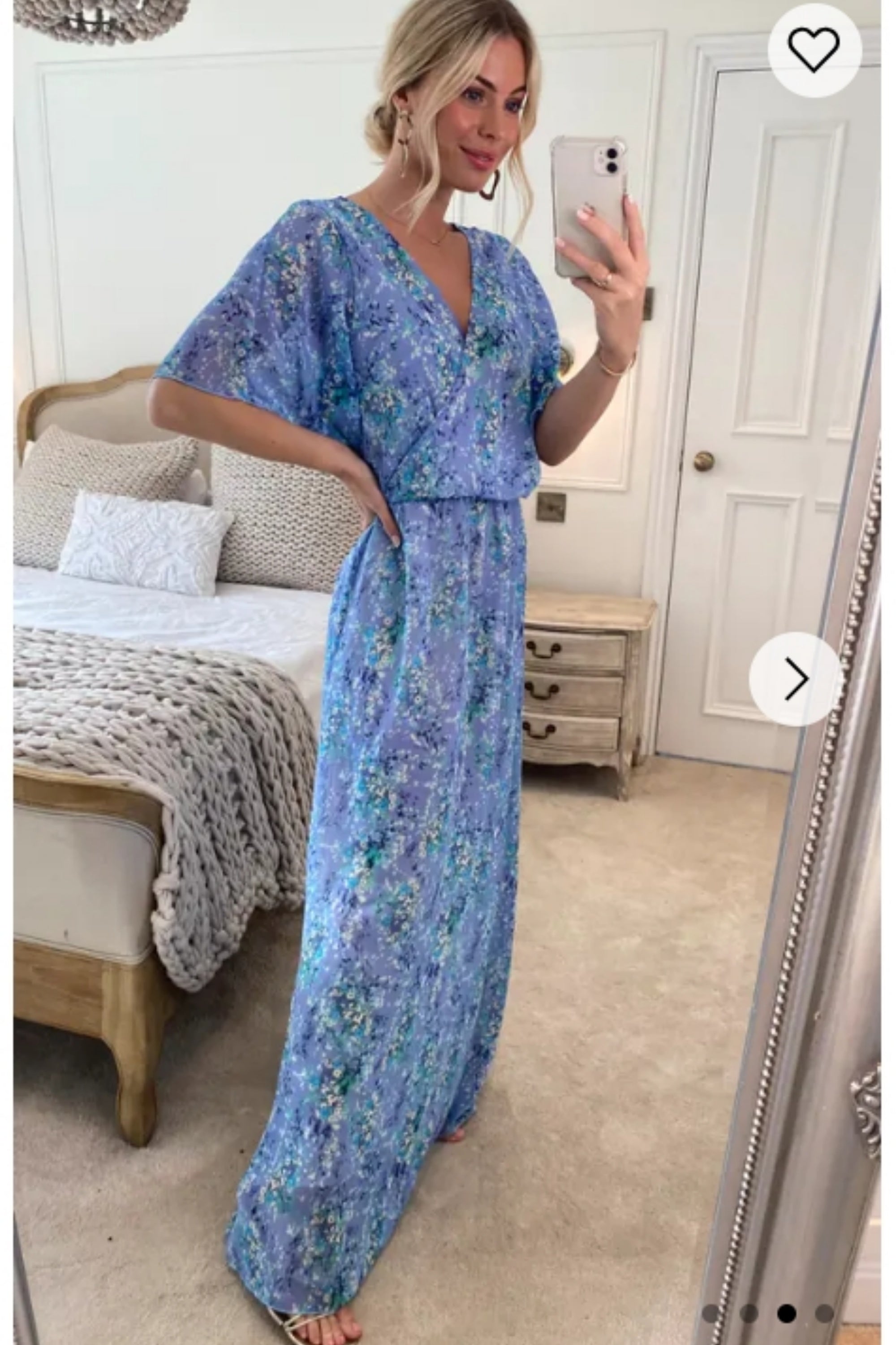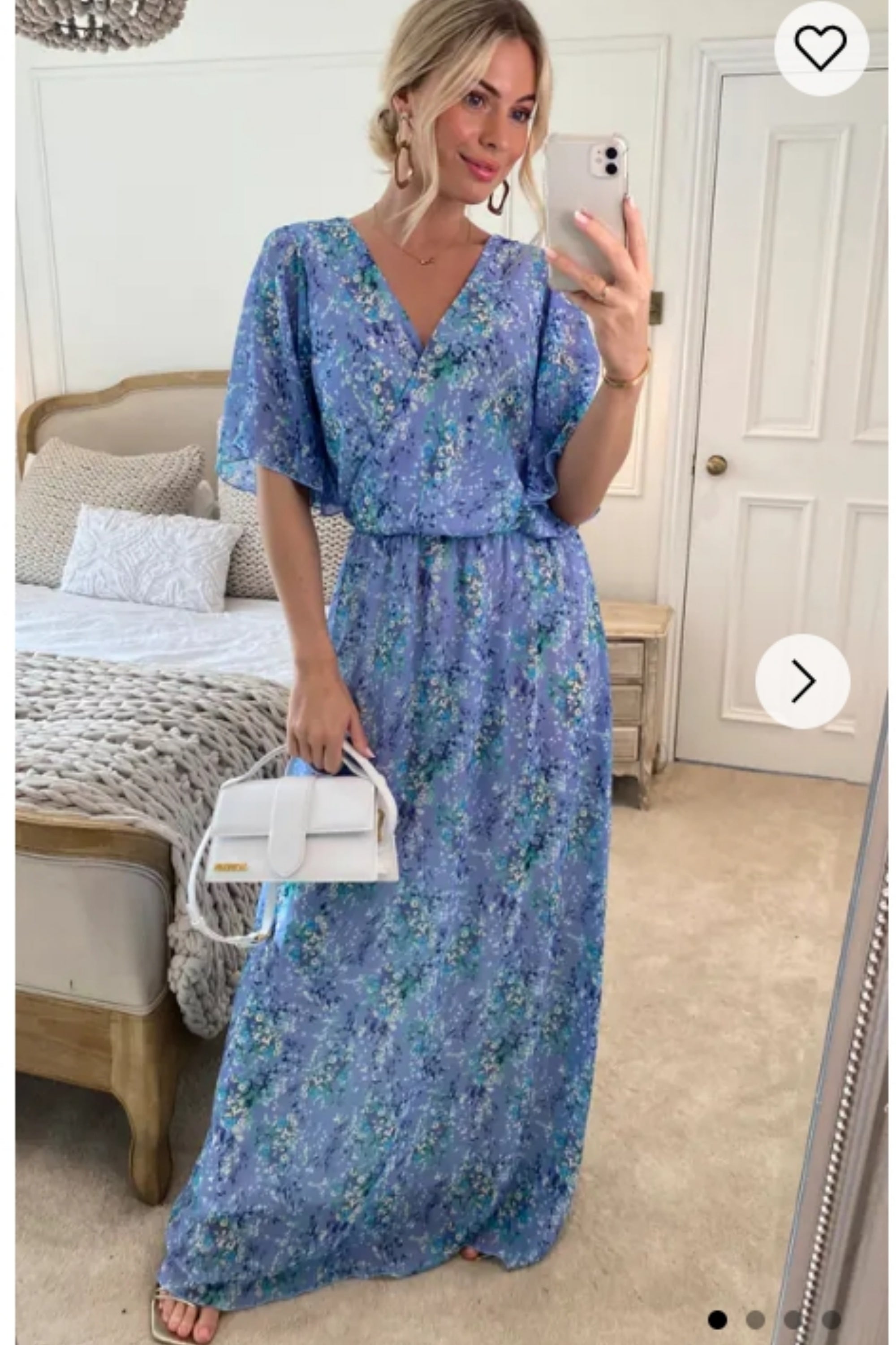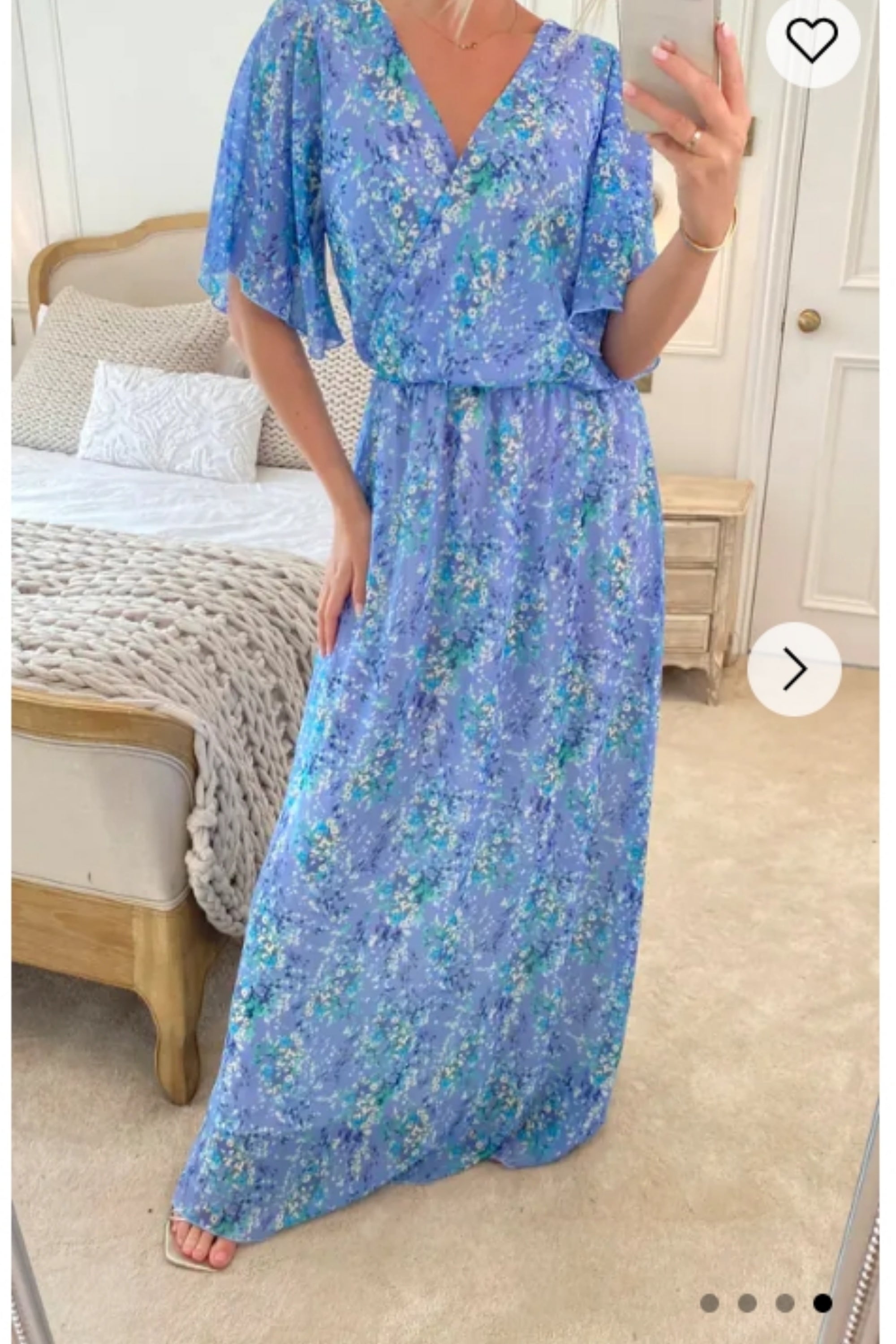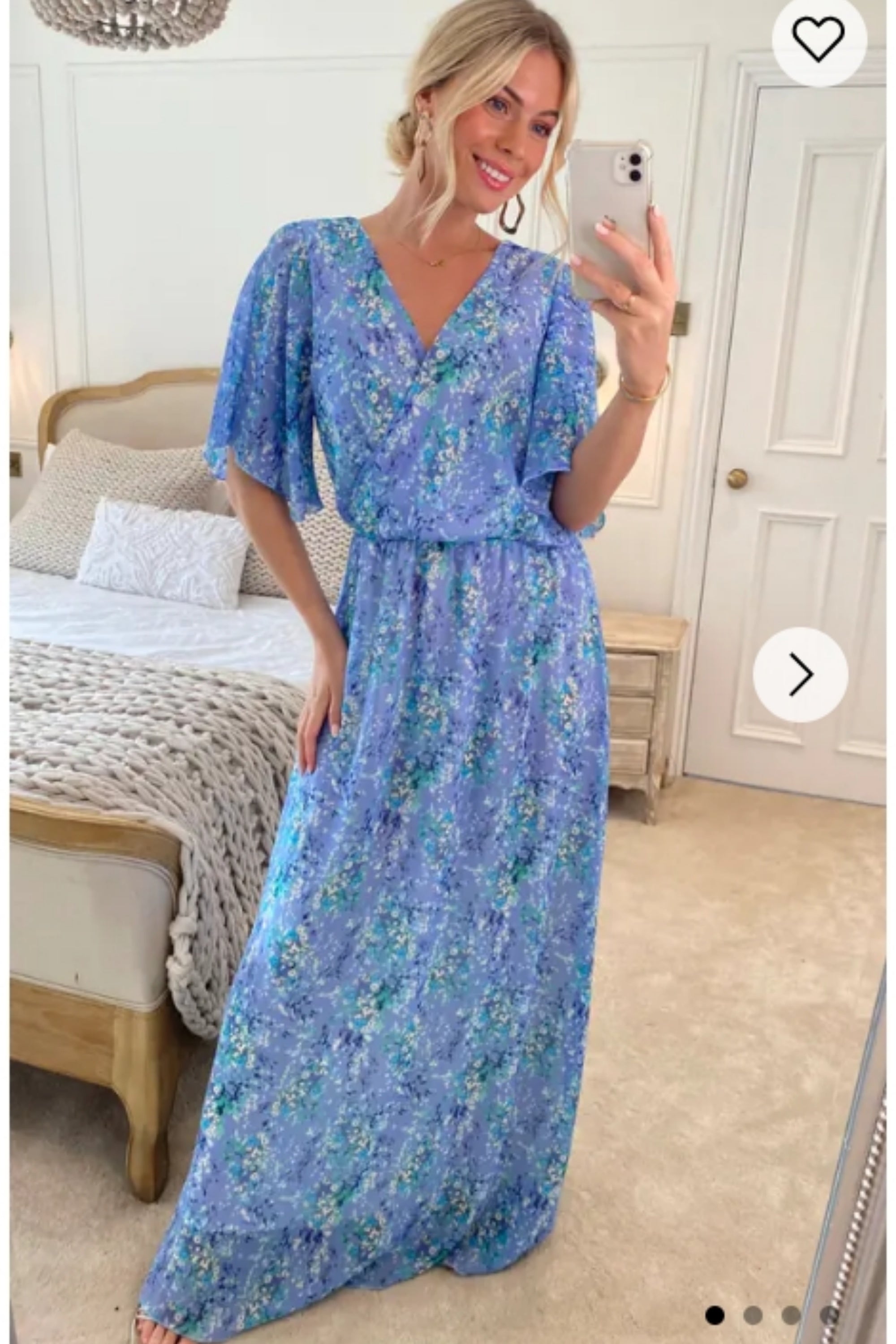 Lady Blue Floral Print Chiffon Wrap Maxi Dress