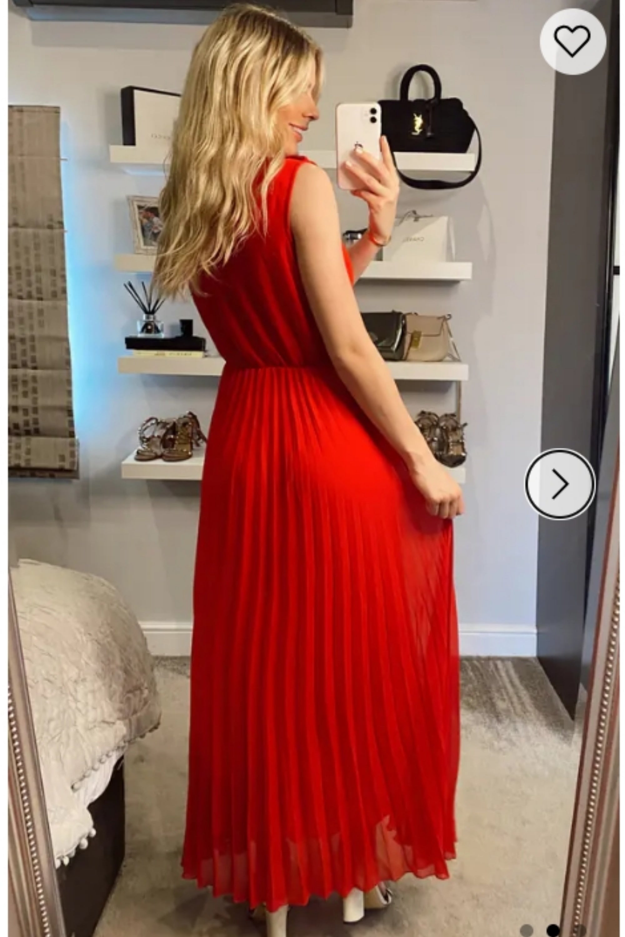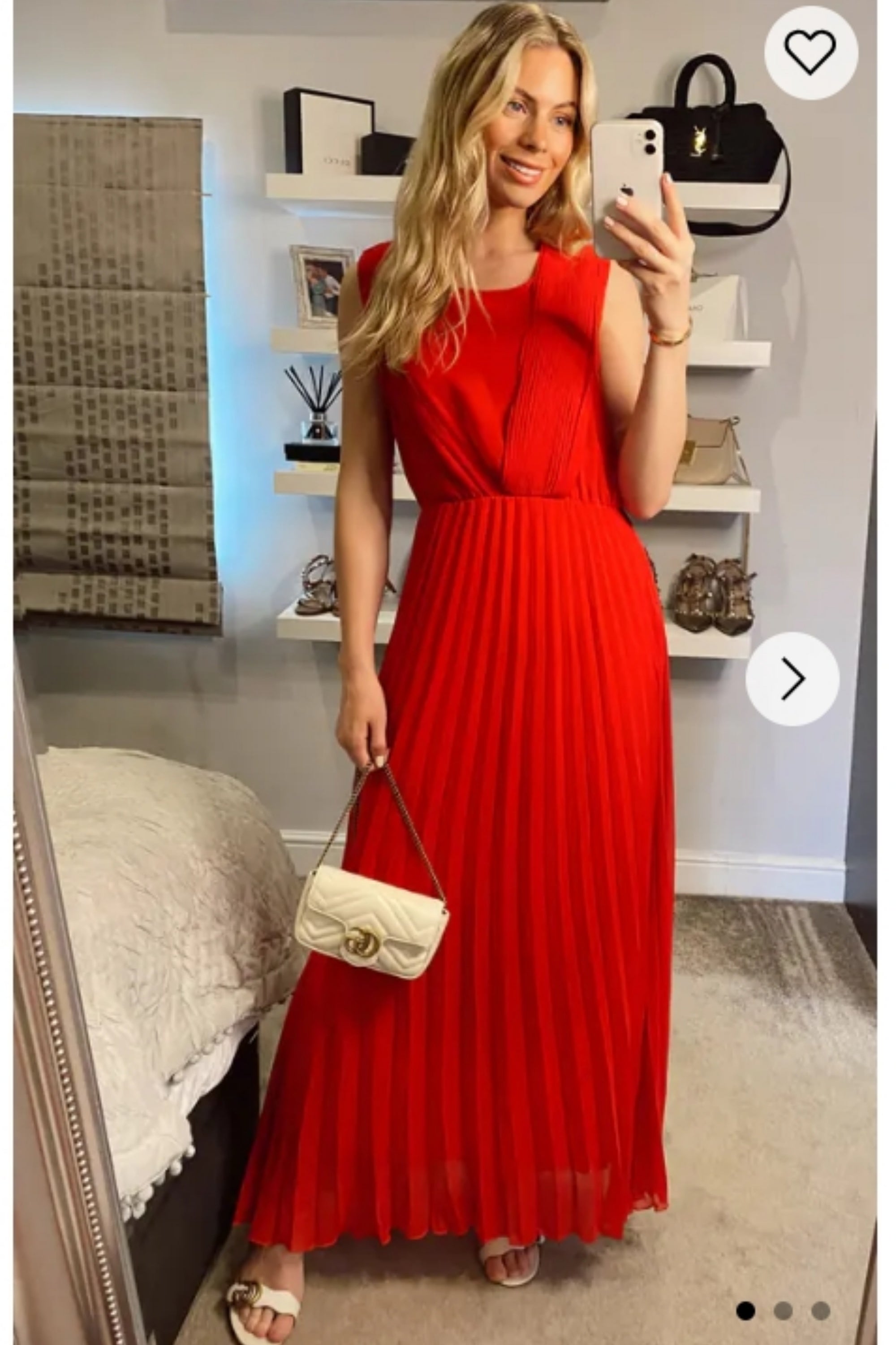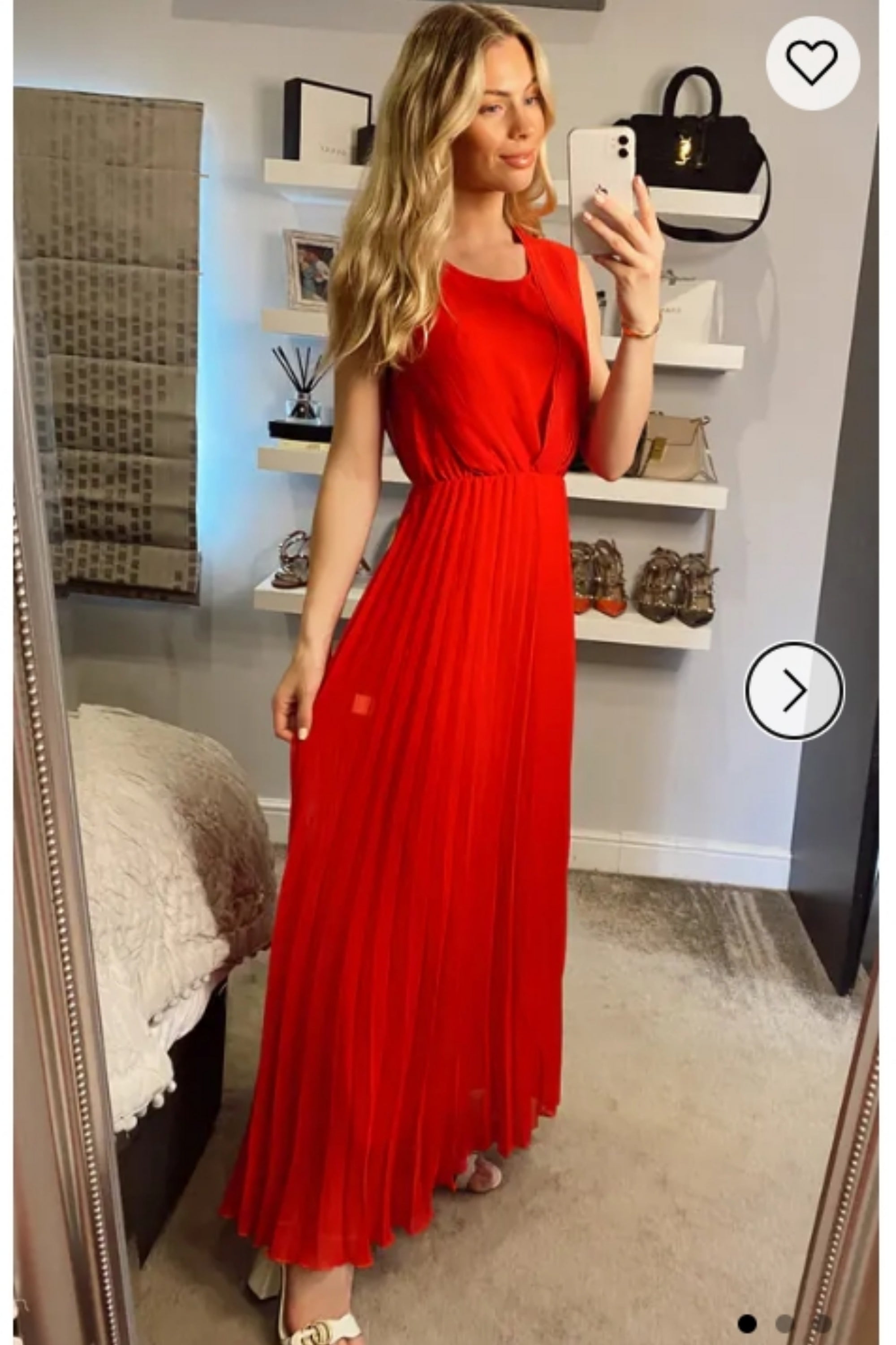 Chiffon pleated full length wedding maxi dress (Red)