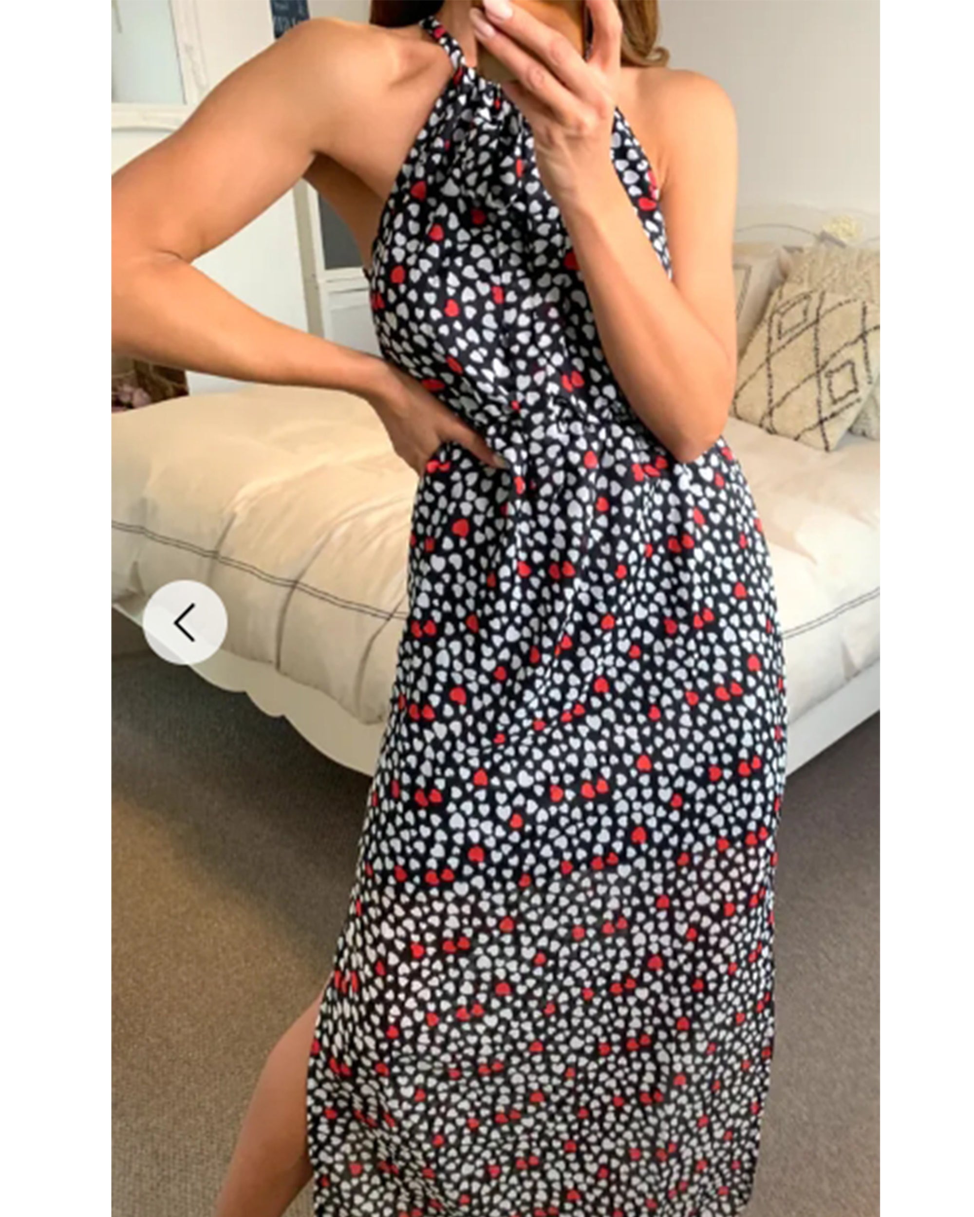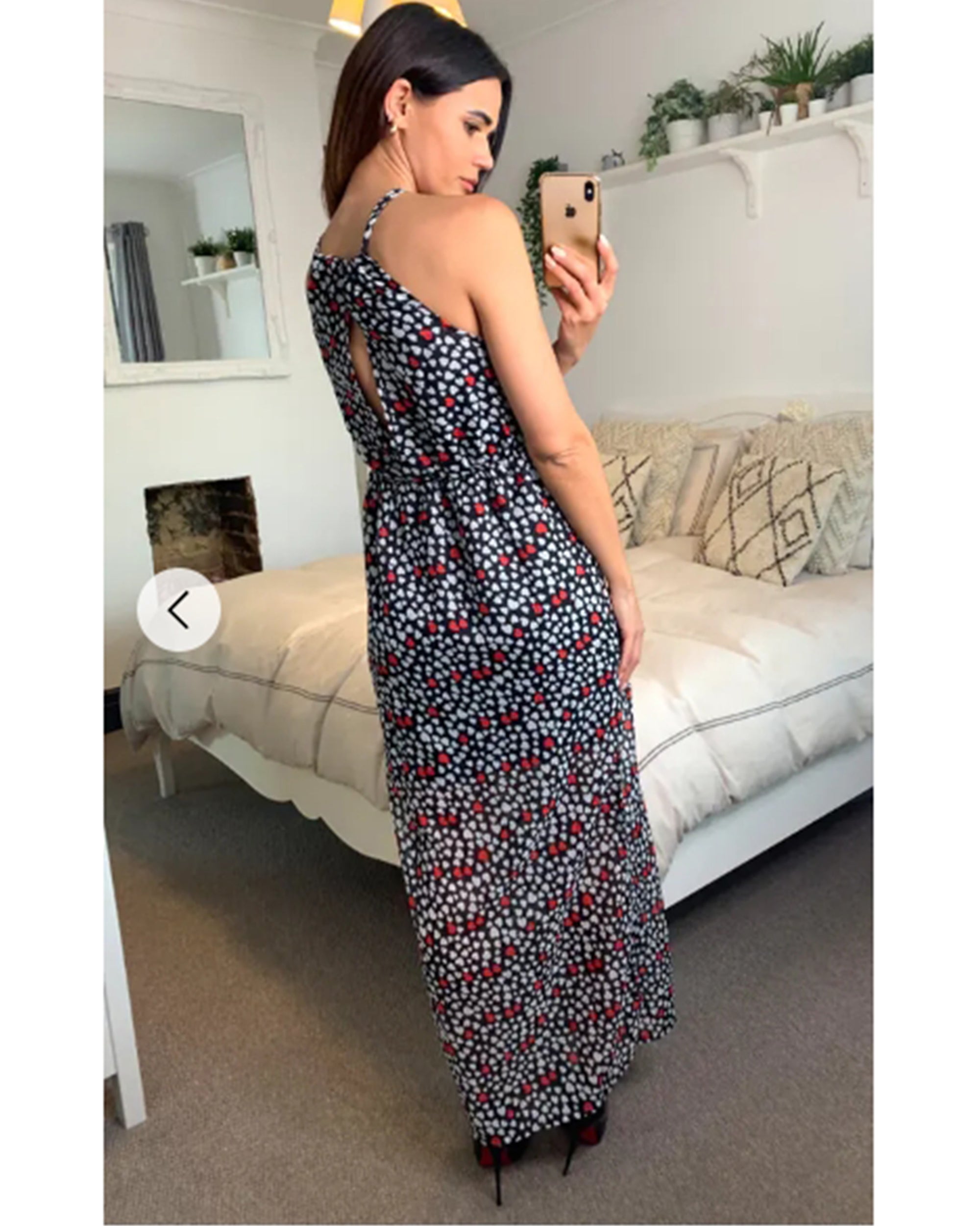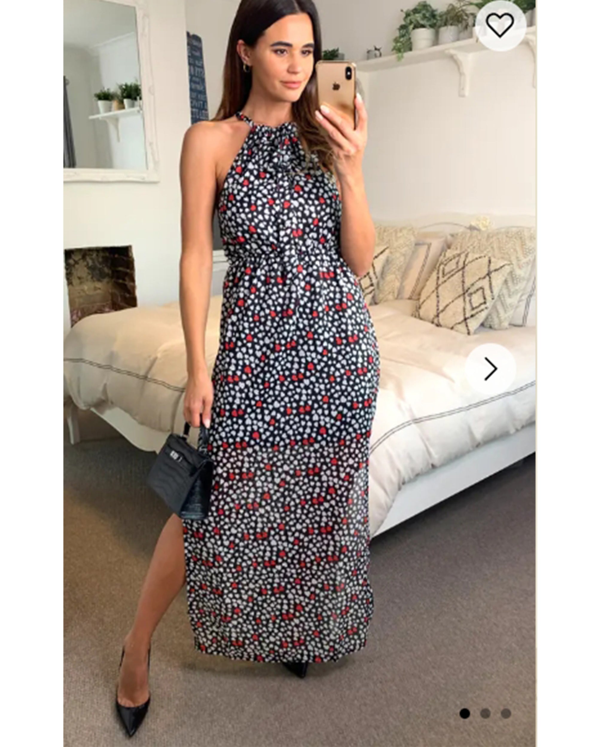 Heart Print Maxi Dress with side split detail