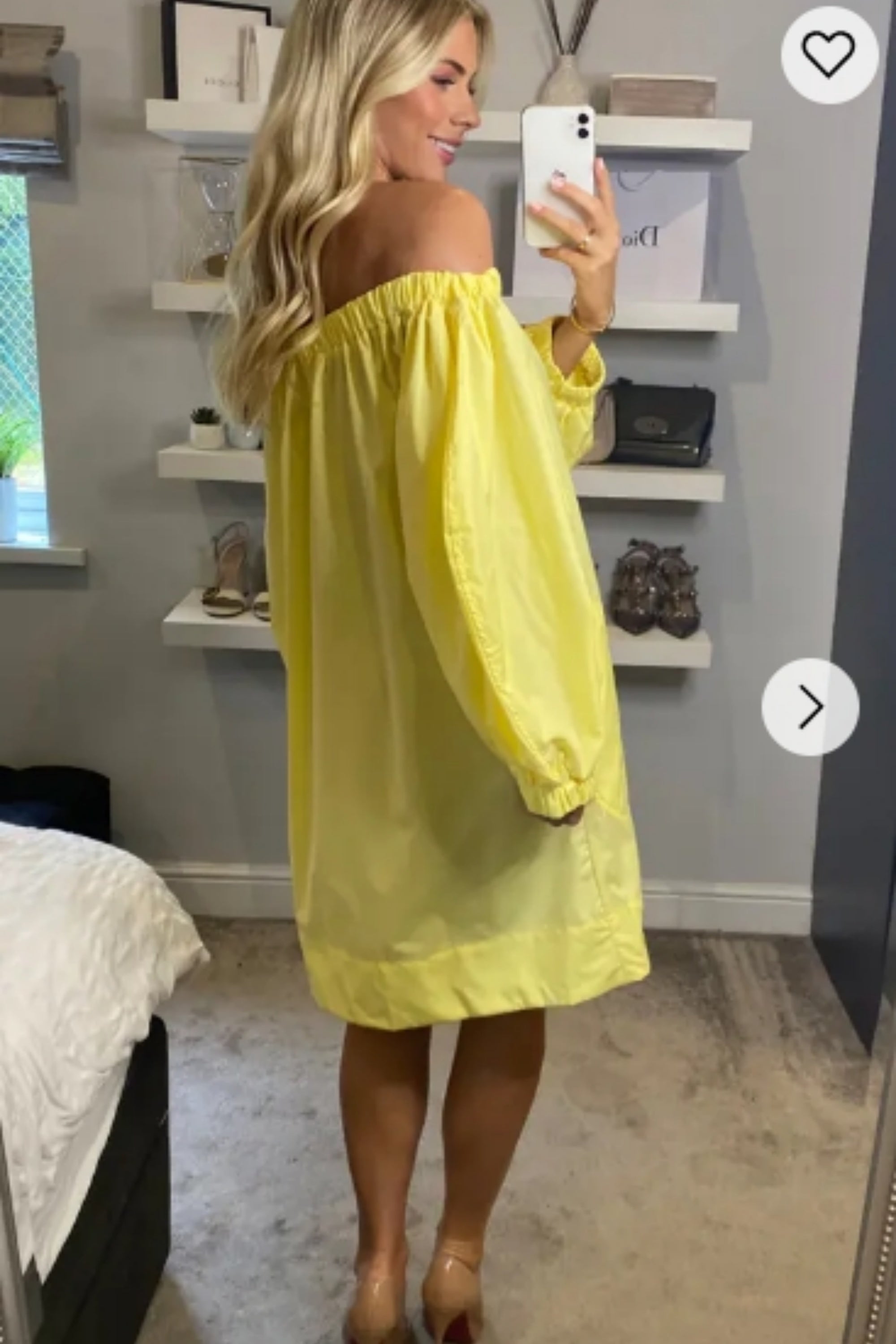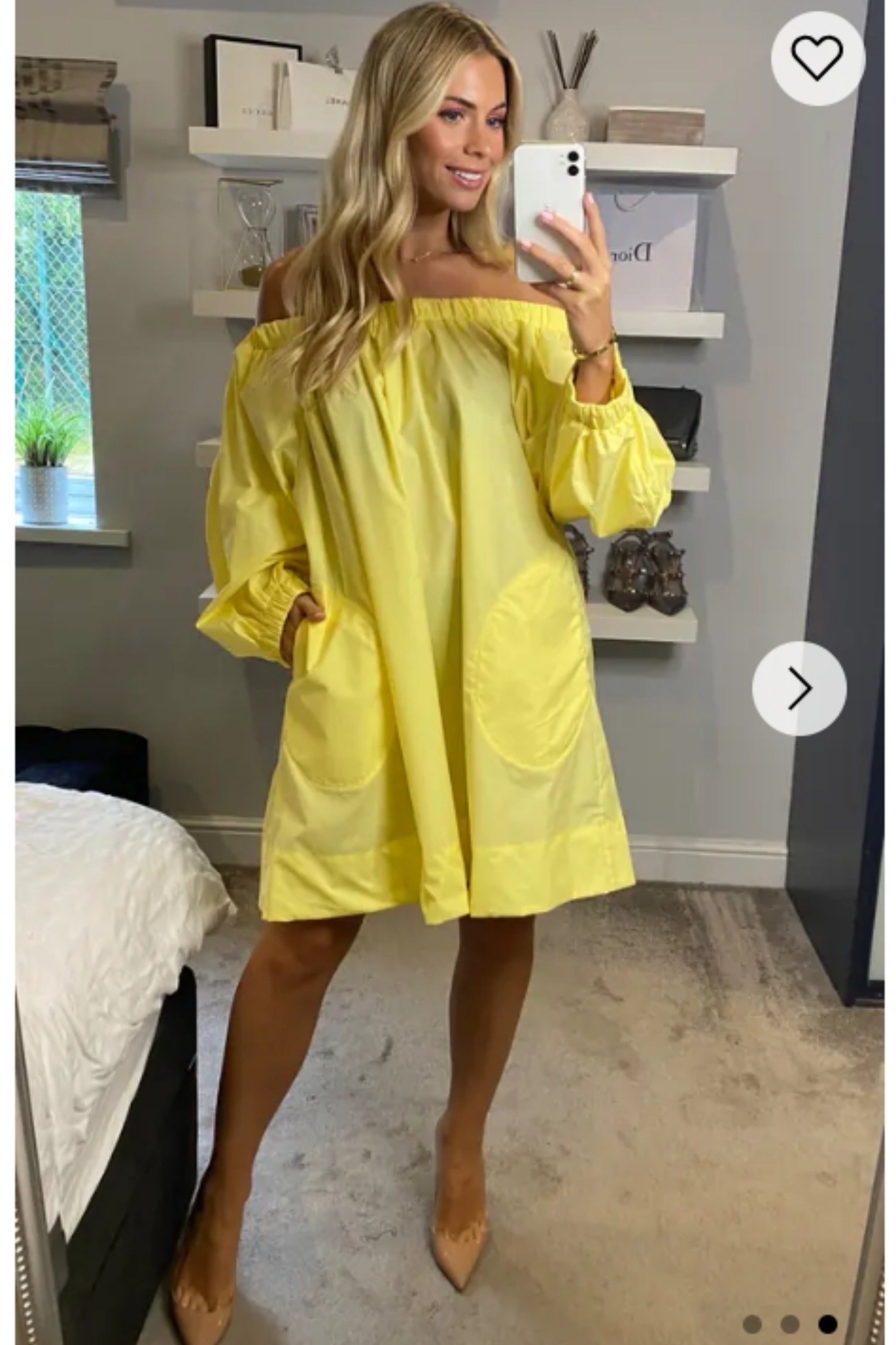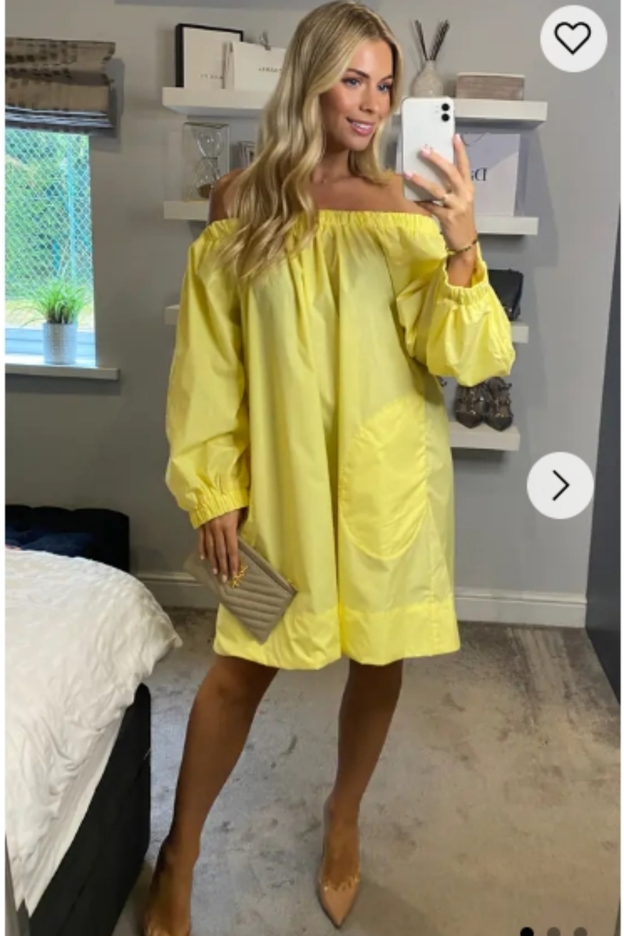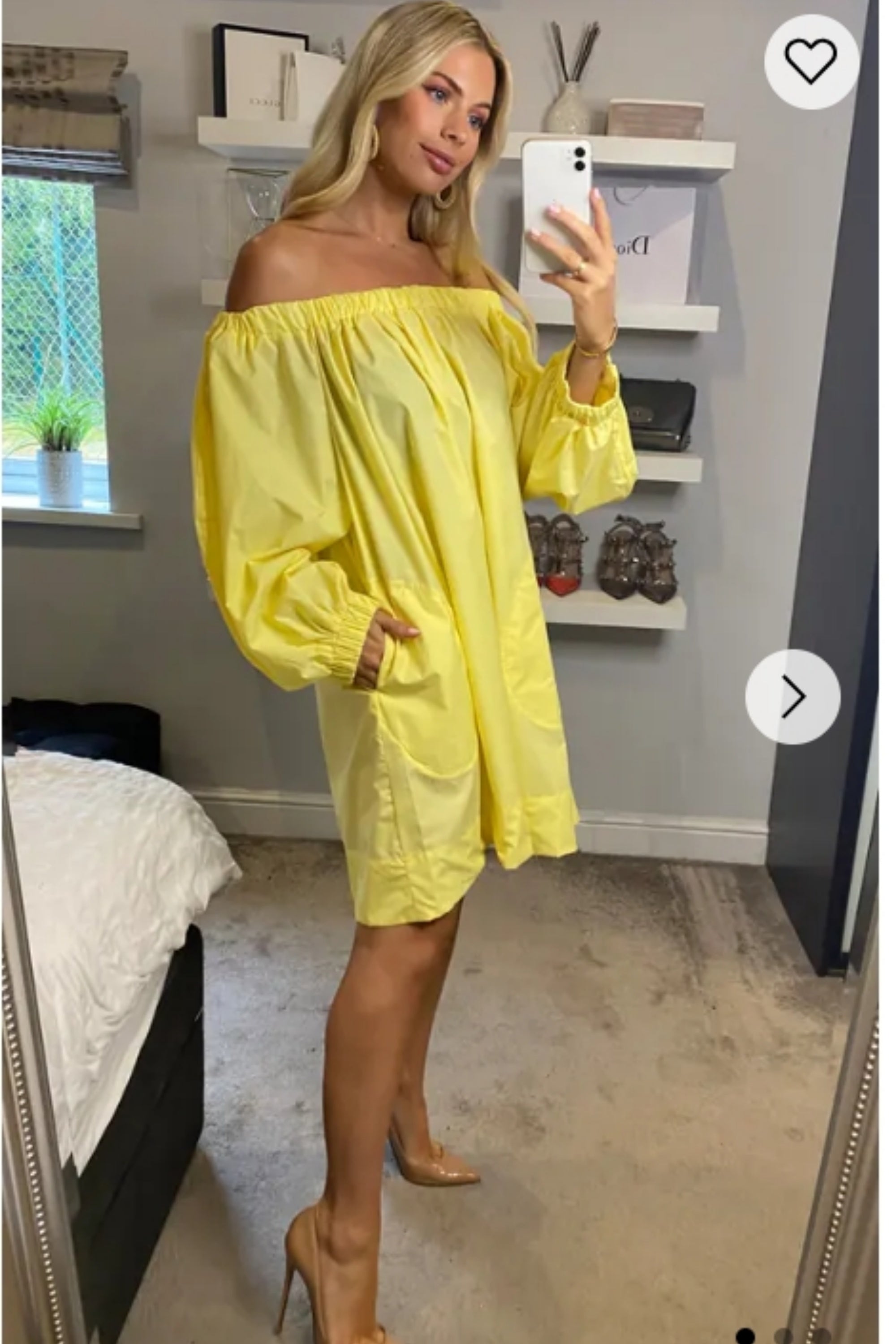 Off shoulder long sleeves oversize dress in yellow