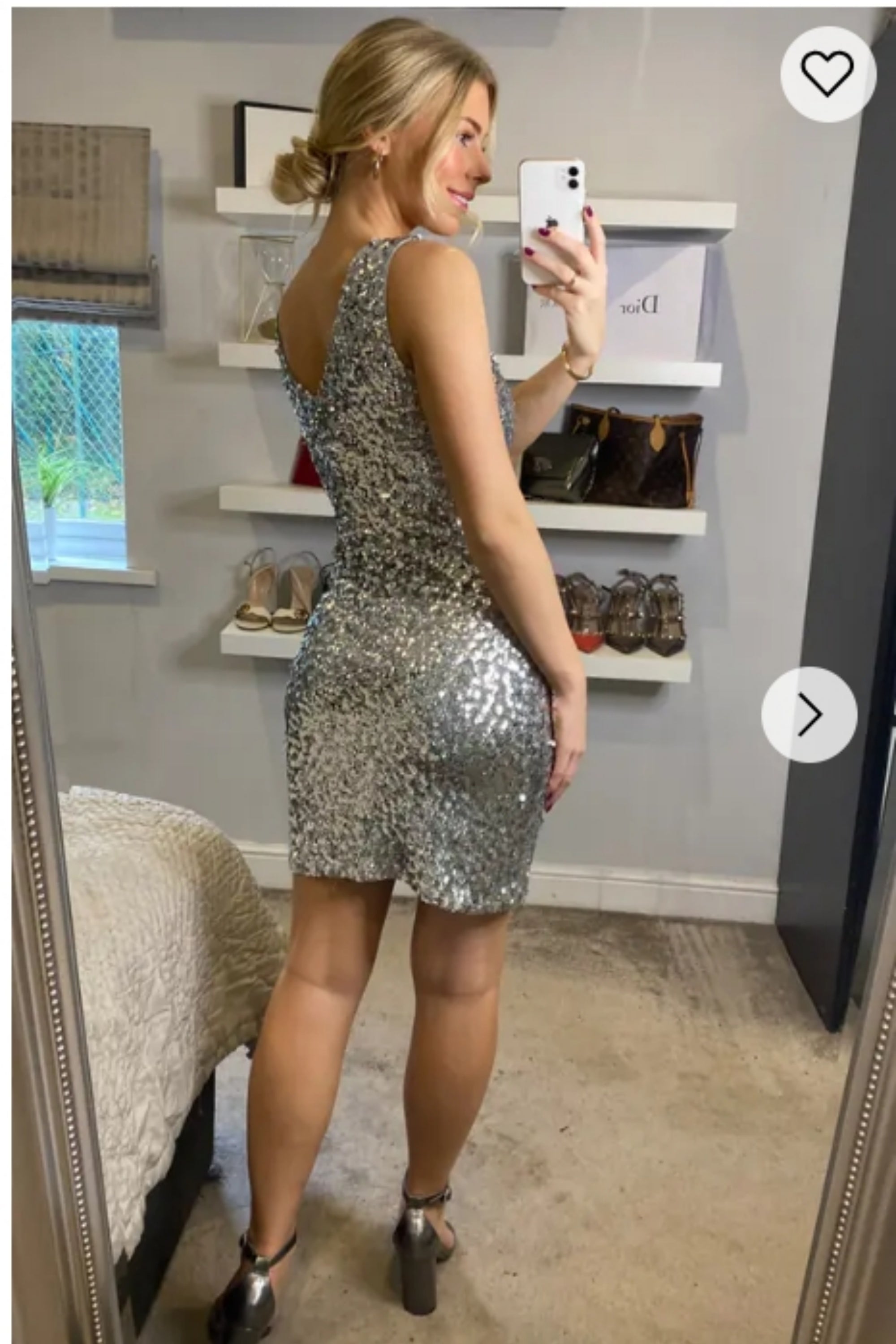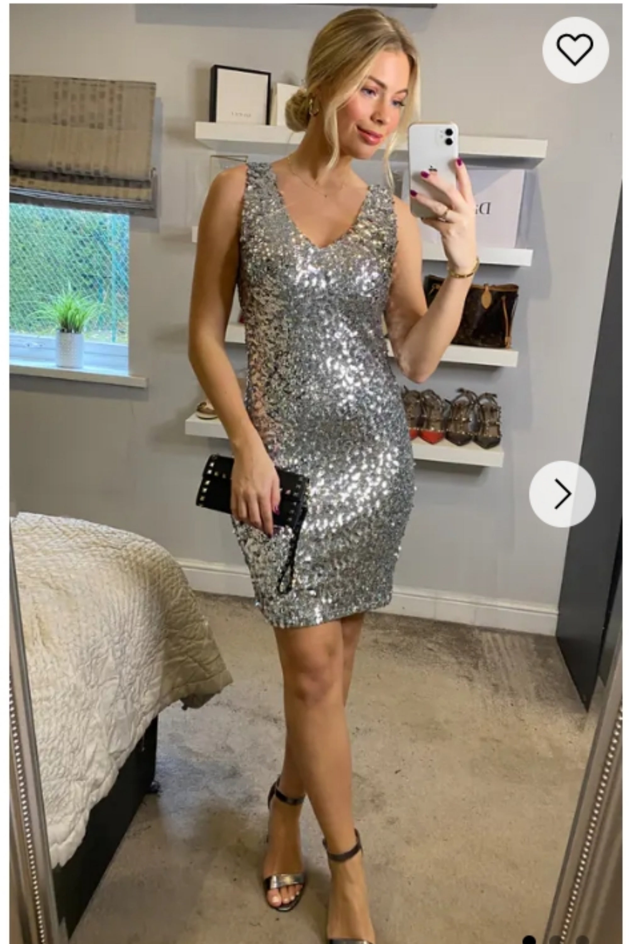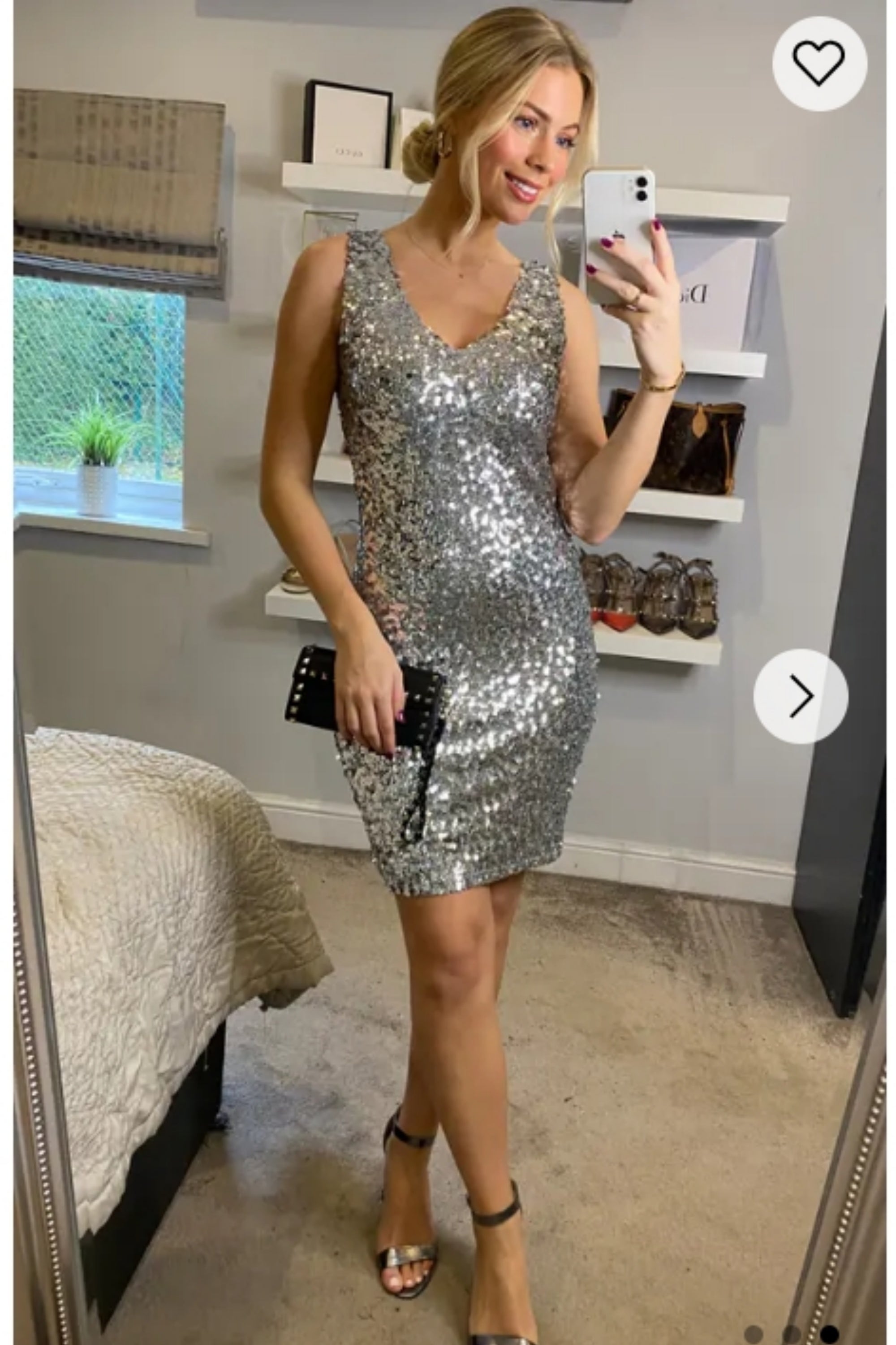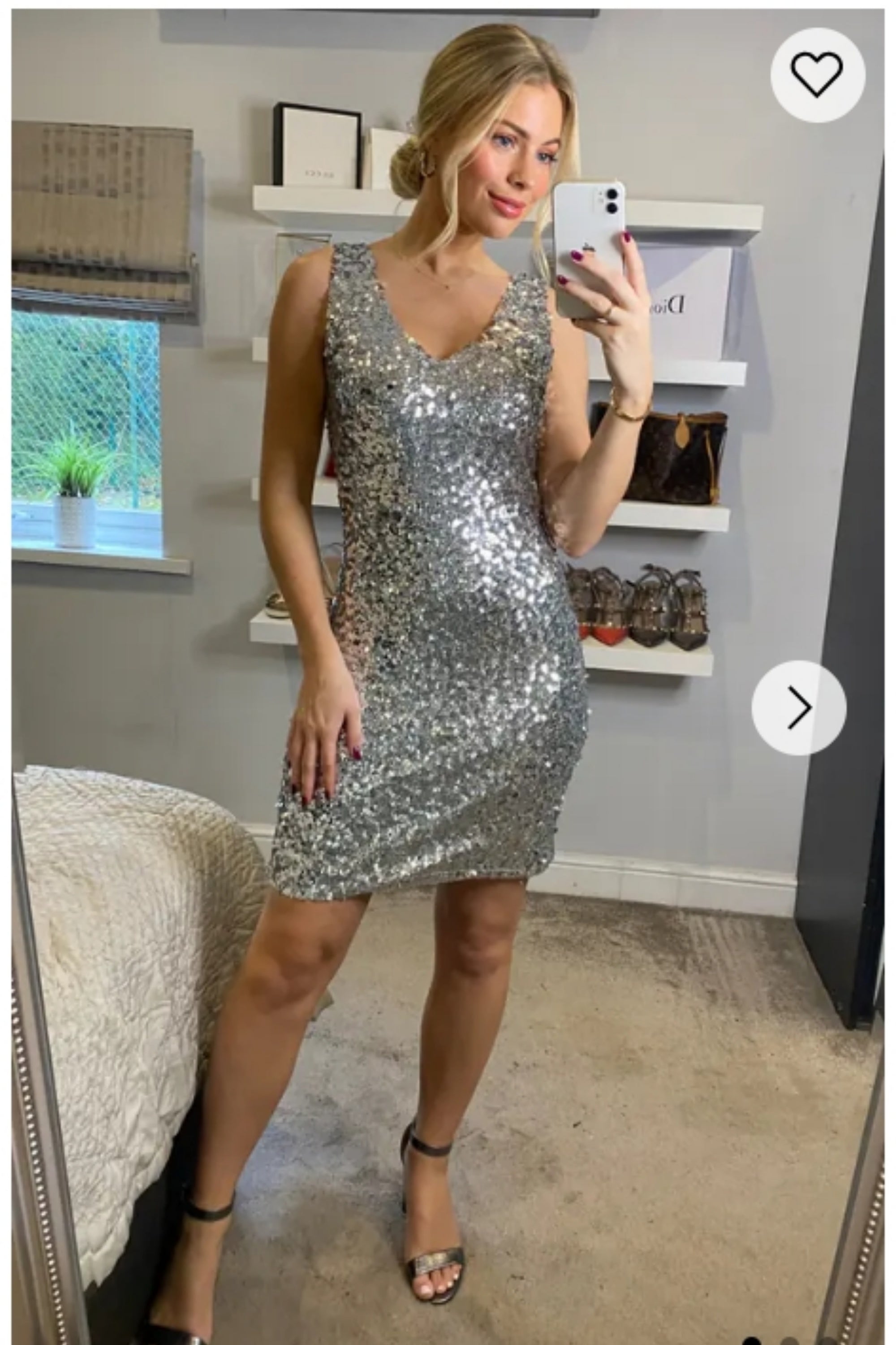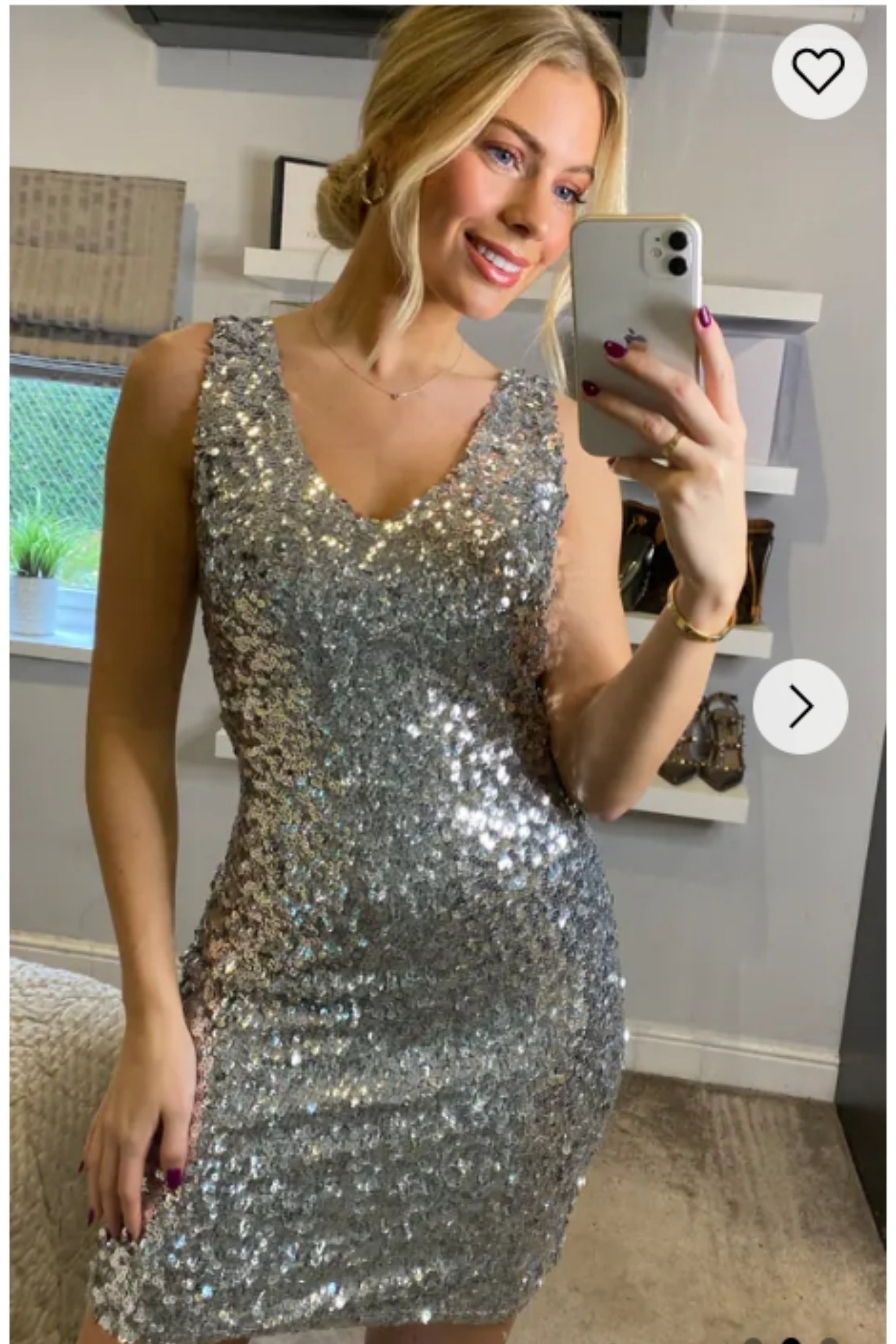 Plain color sequin V neck dress (Sliver)