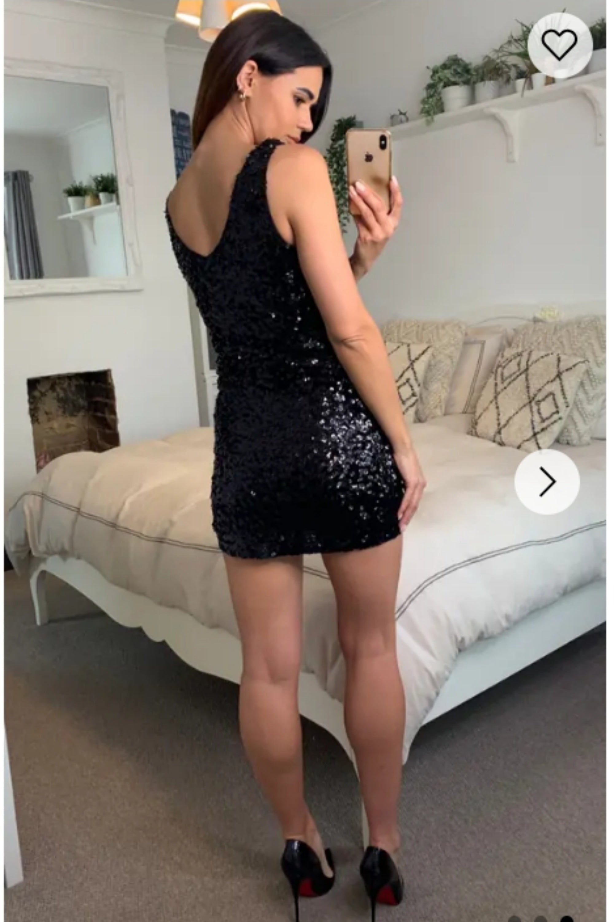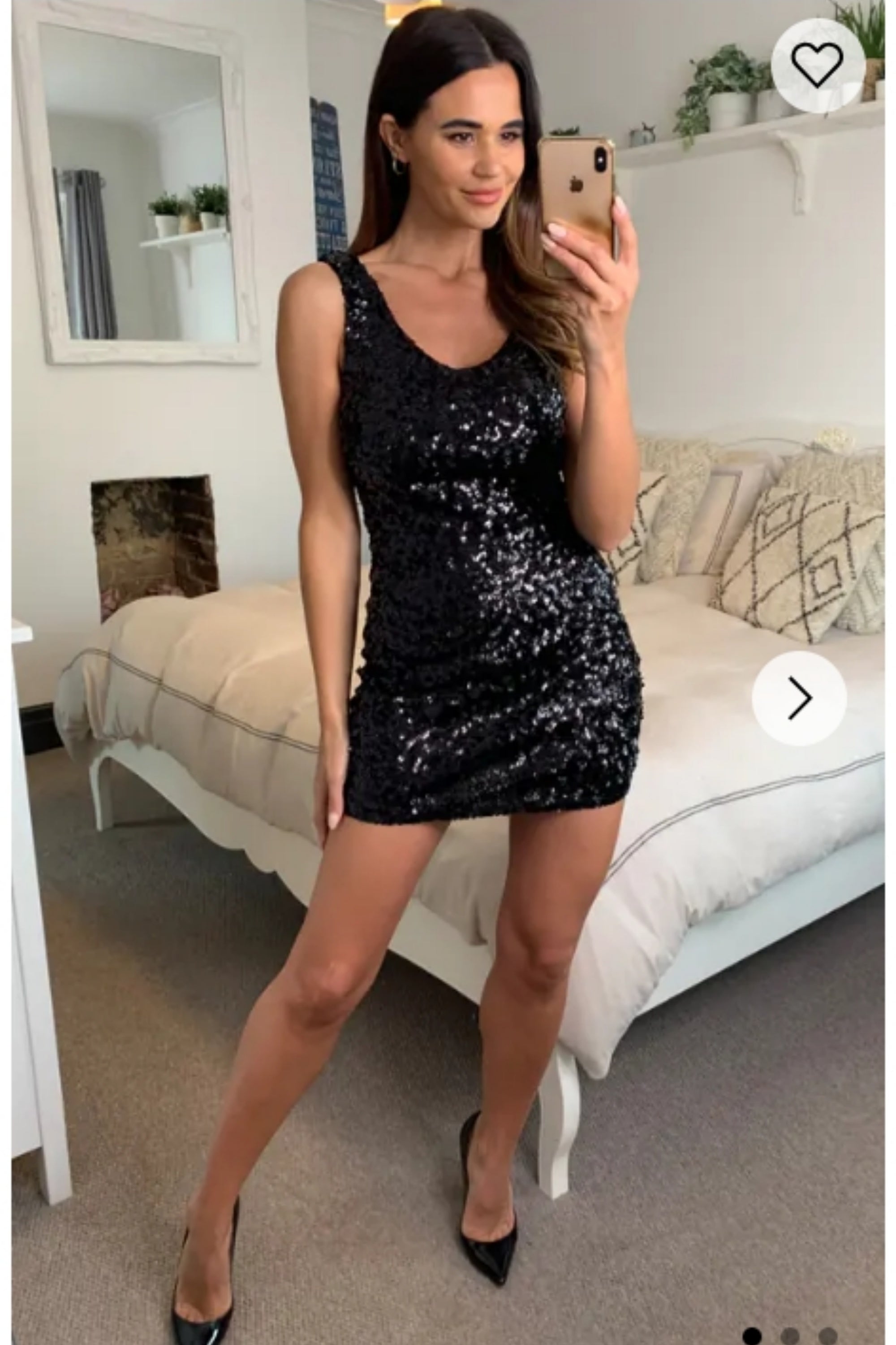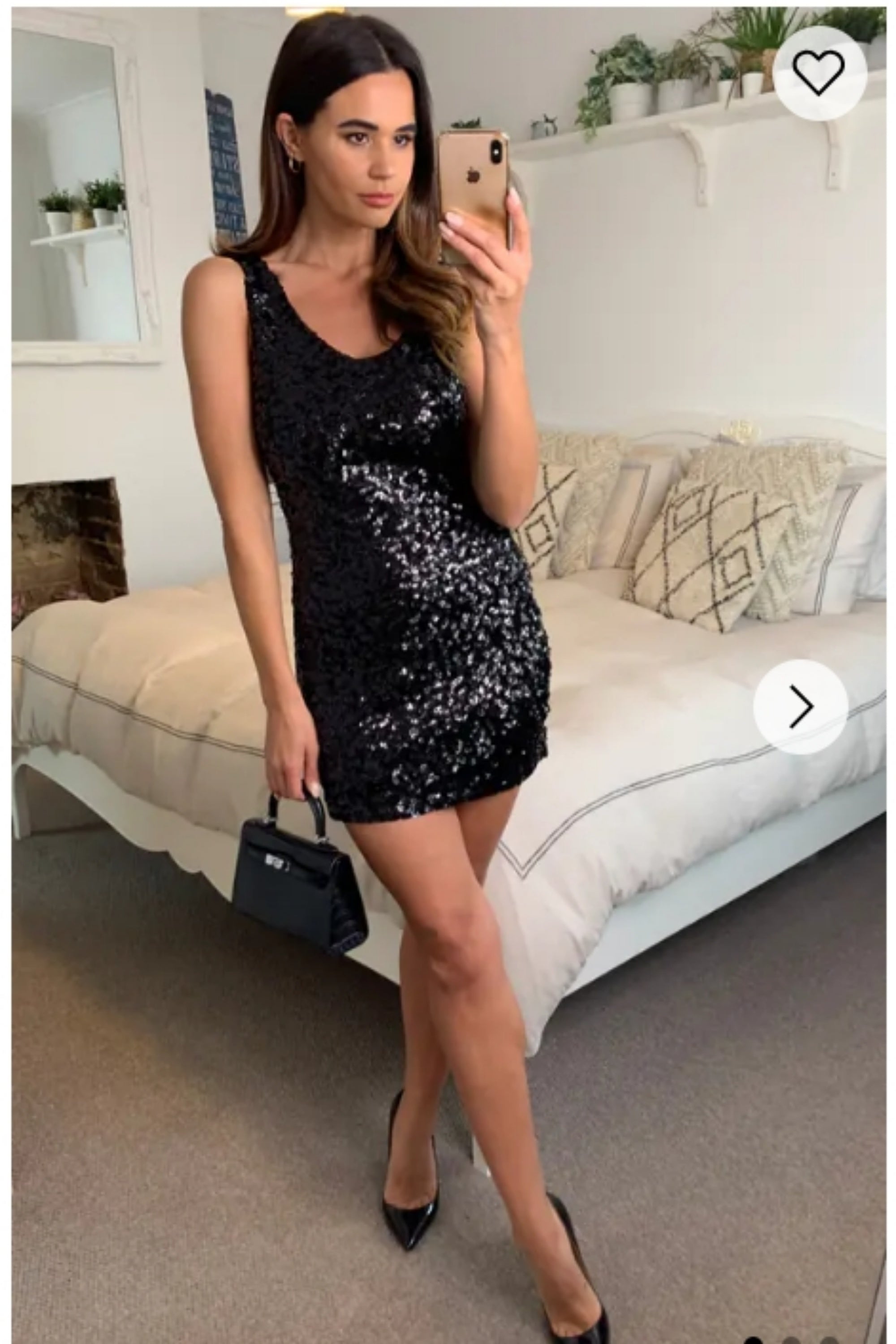 Plain color sequin V neck dress (Black)