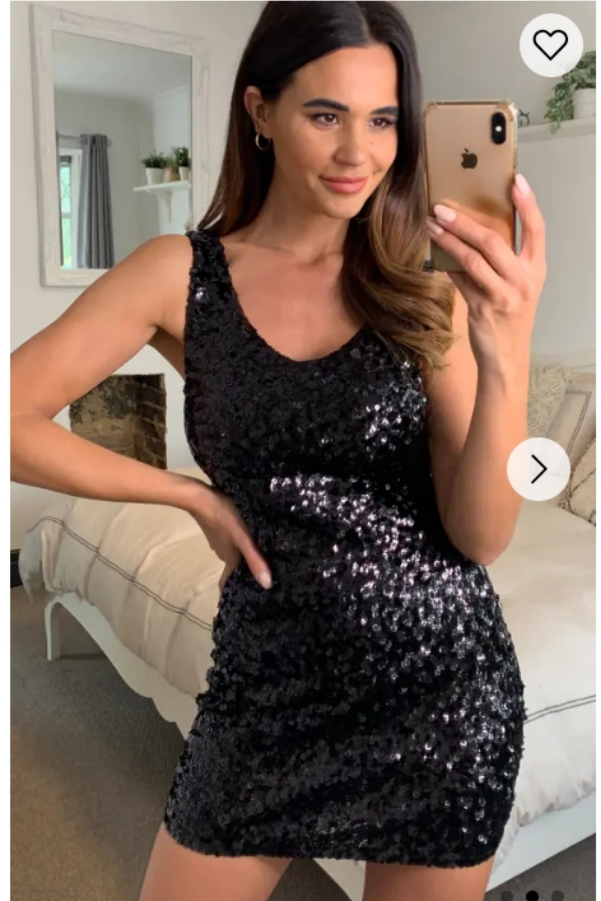 Plain color sequin V neck dress (Gold)