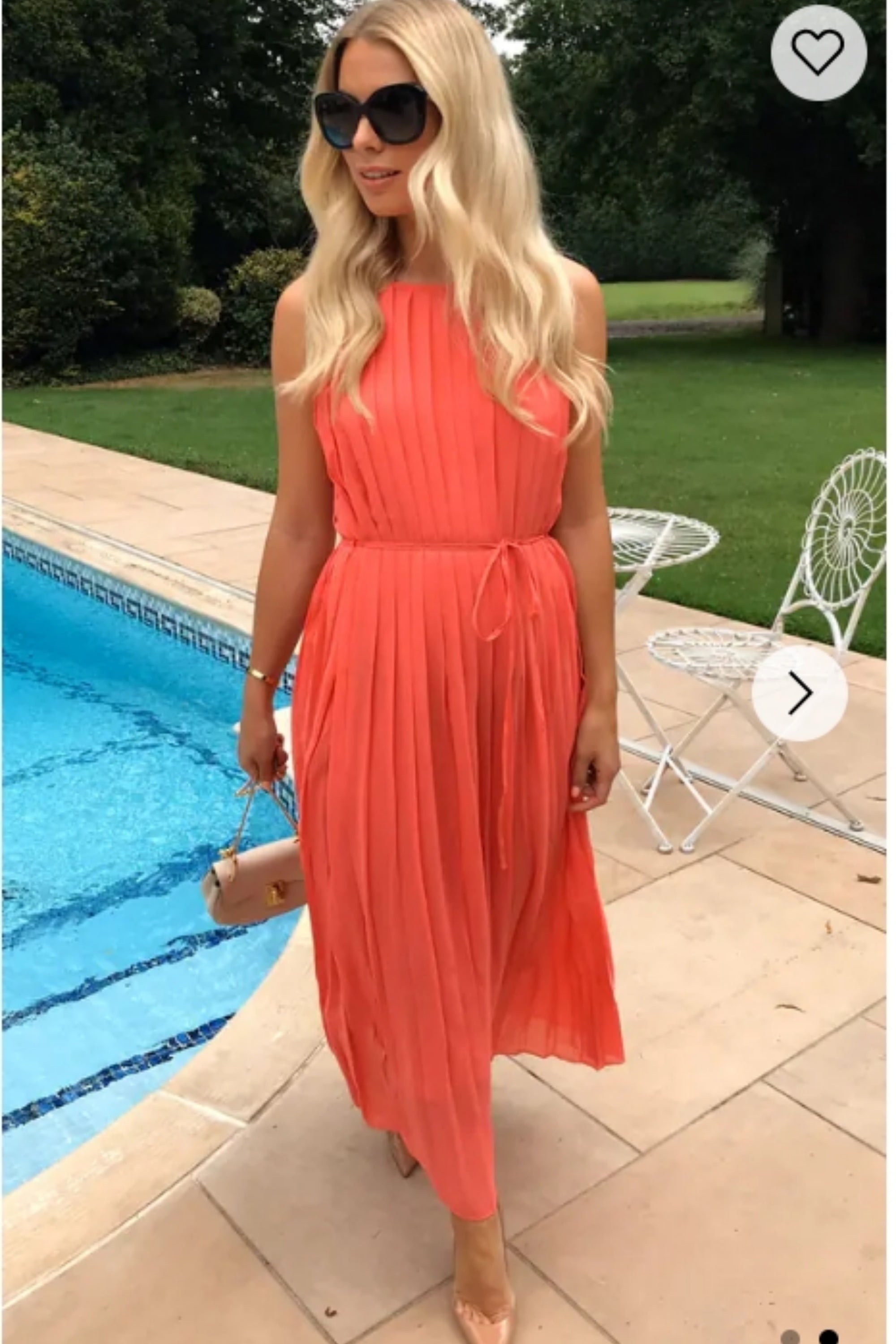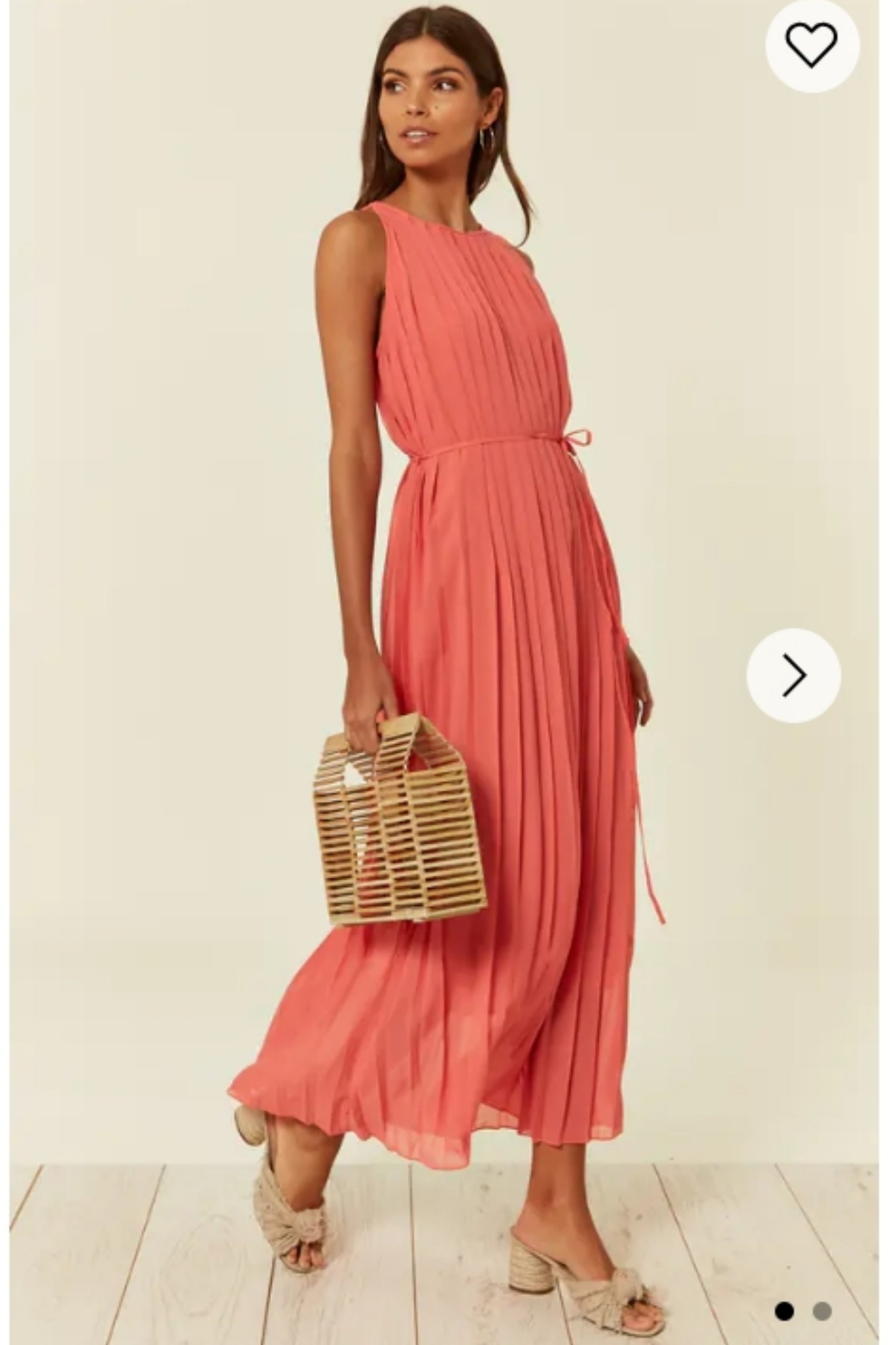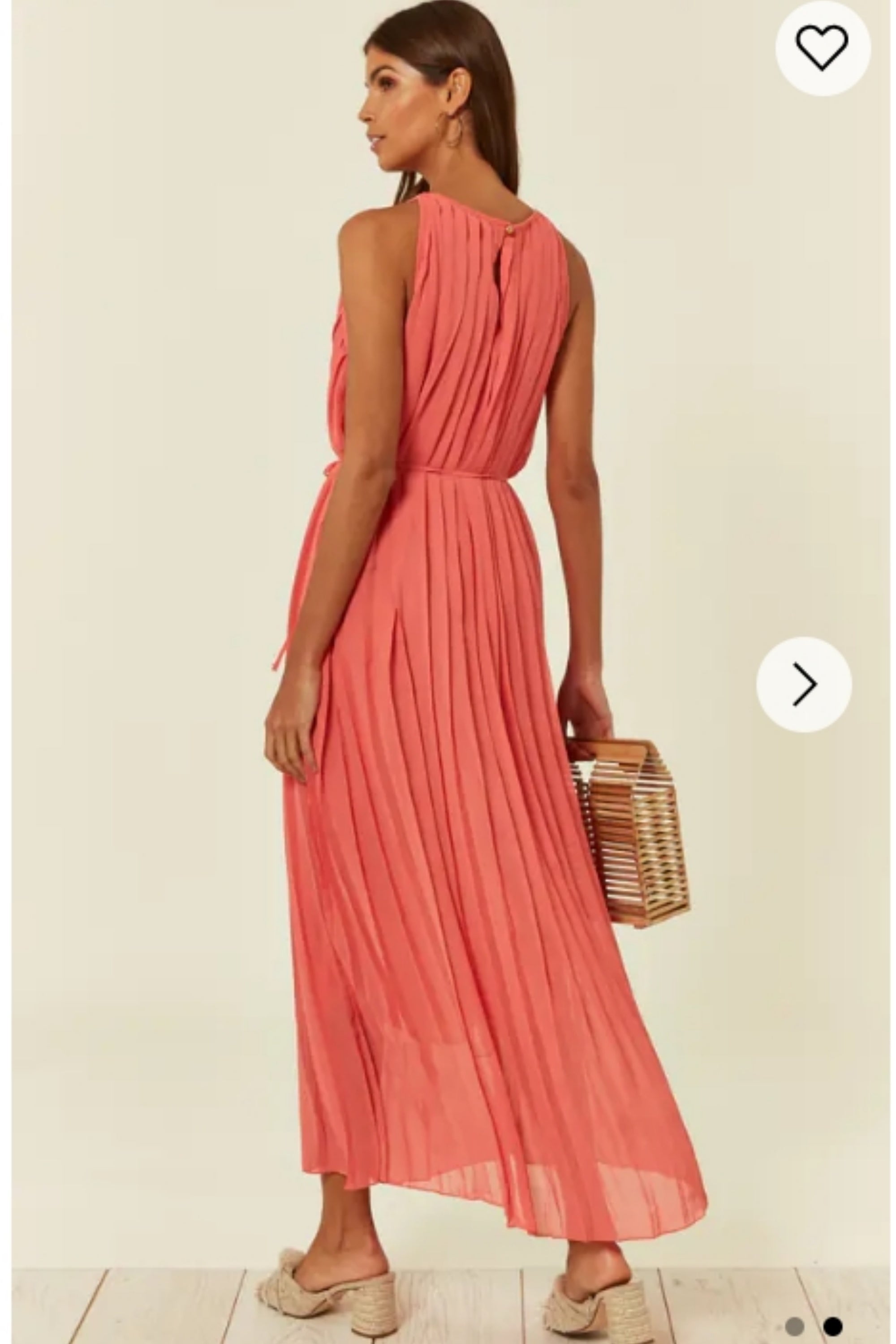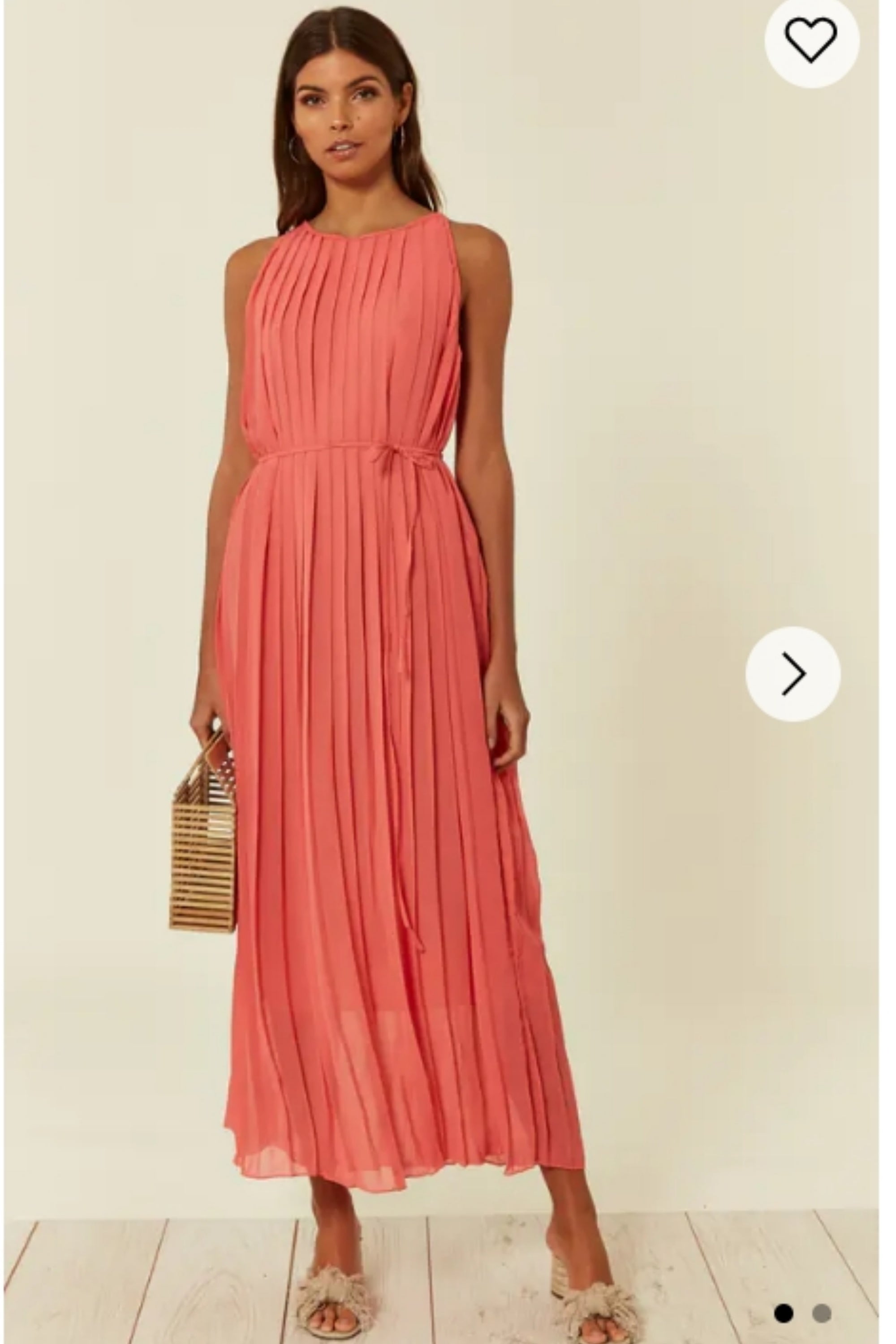 Pleated Full Length Maxi Dress in salmon pink