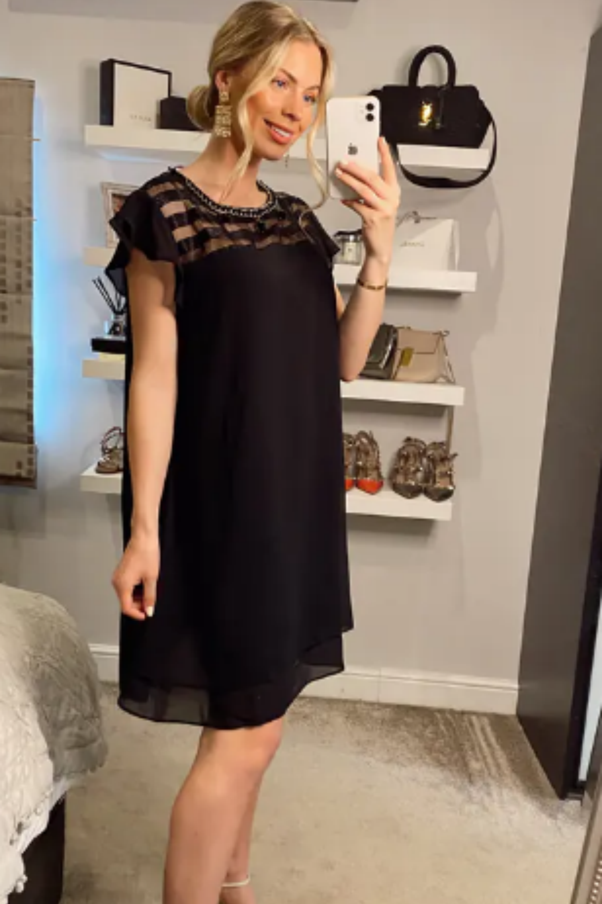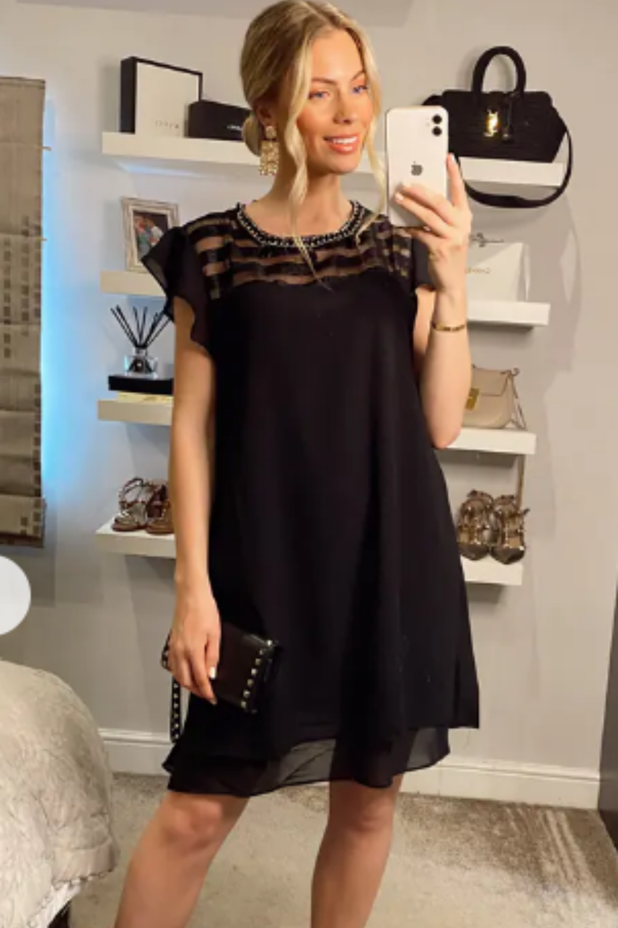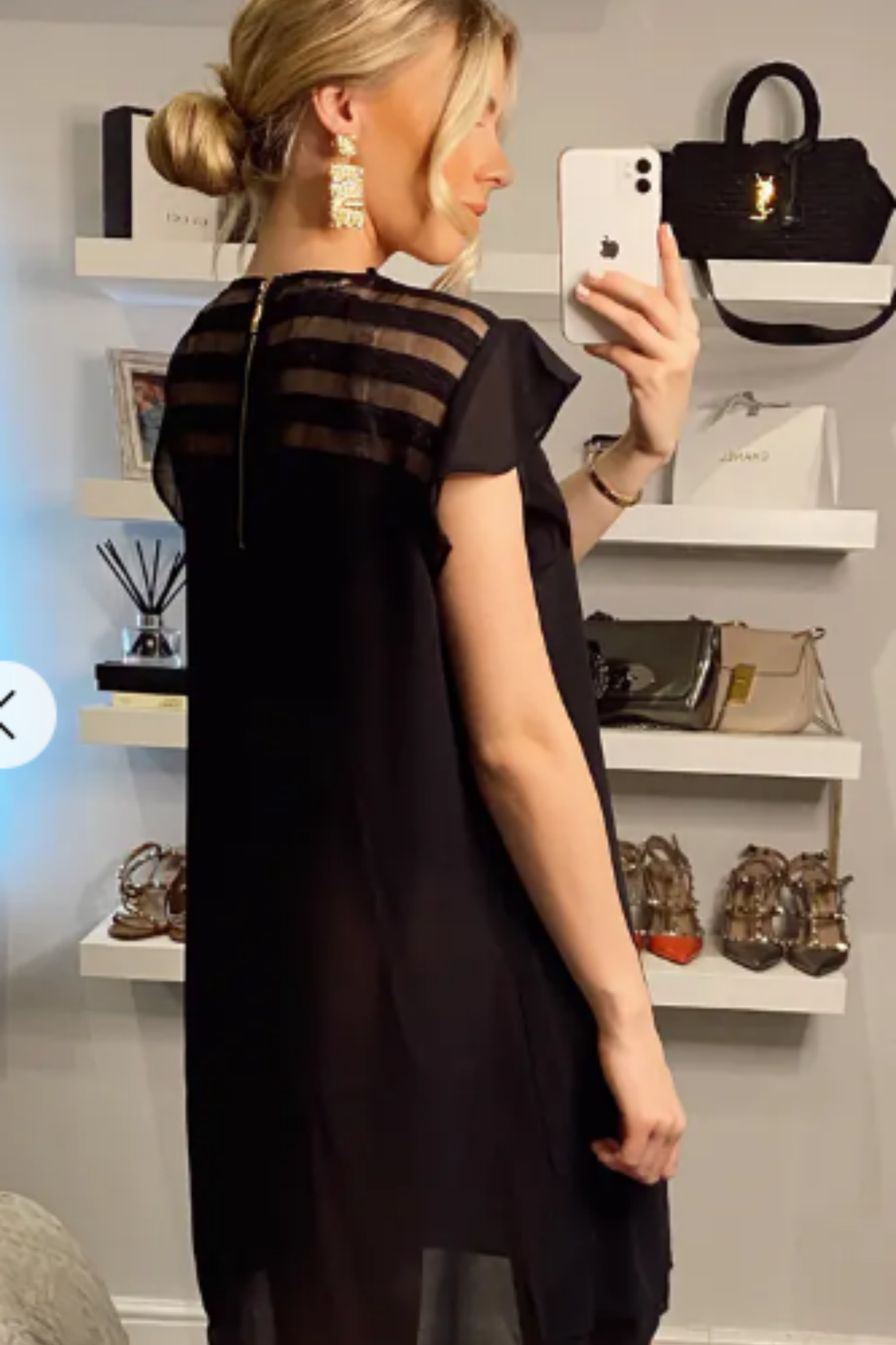 Oversized Short Sleeve Shirt with Frill Detail on Sides in Black