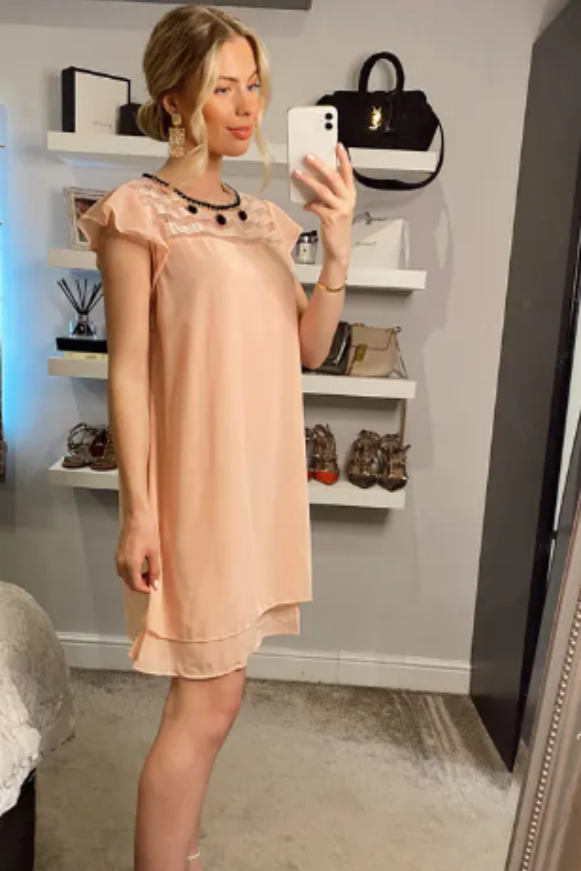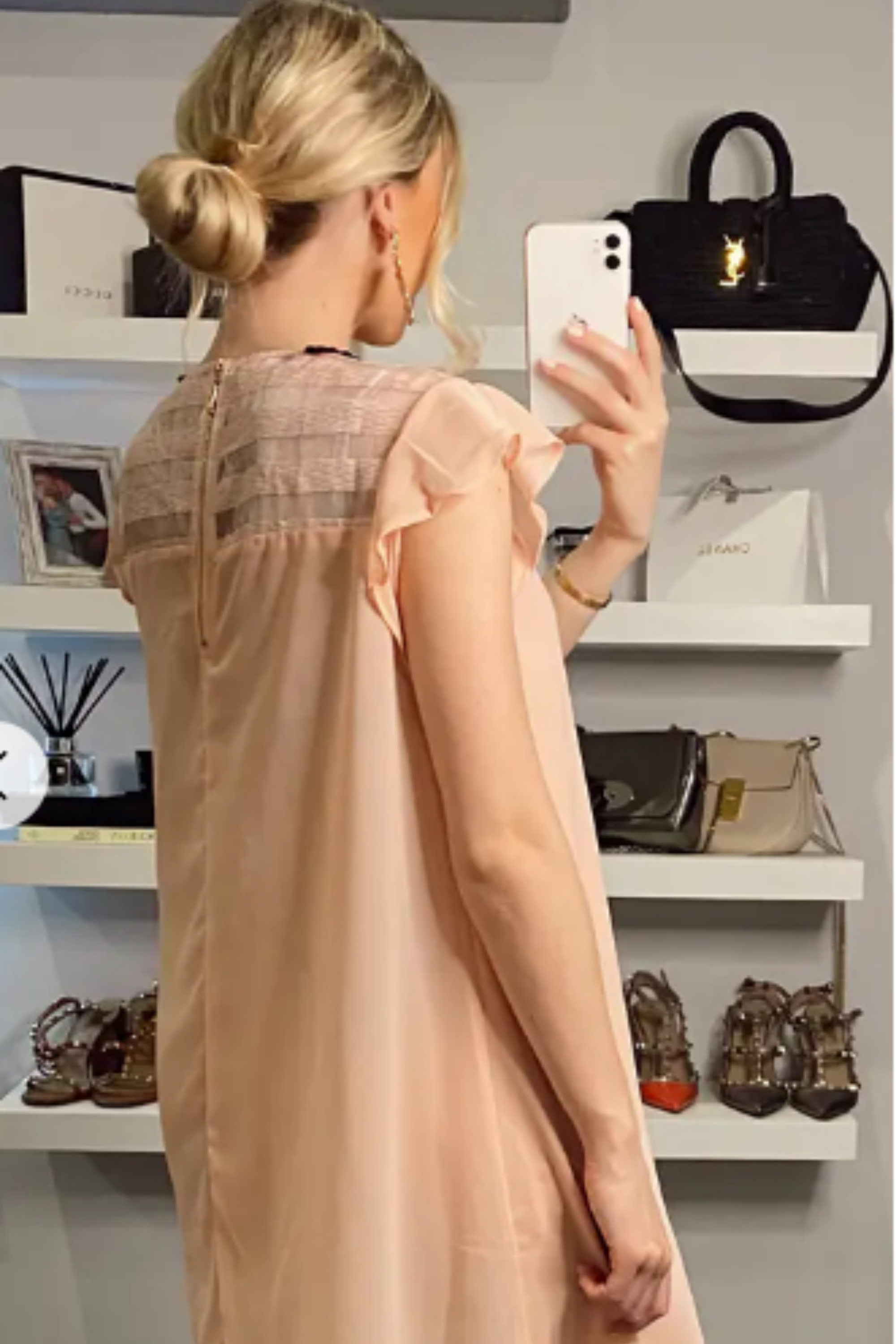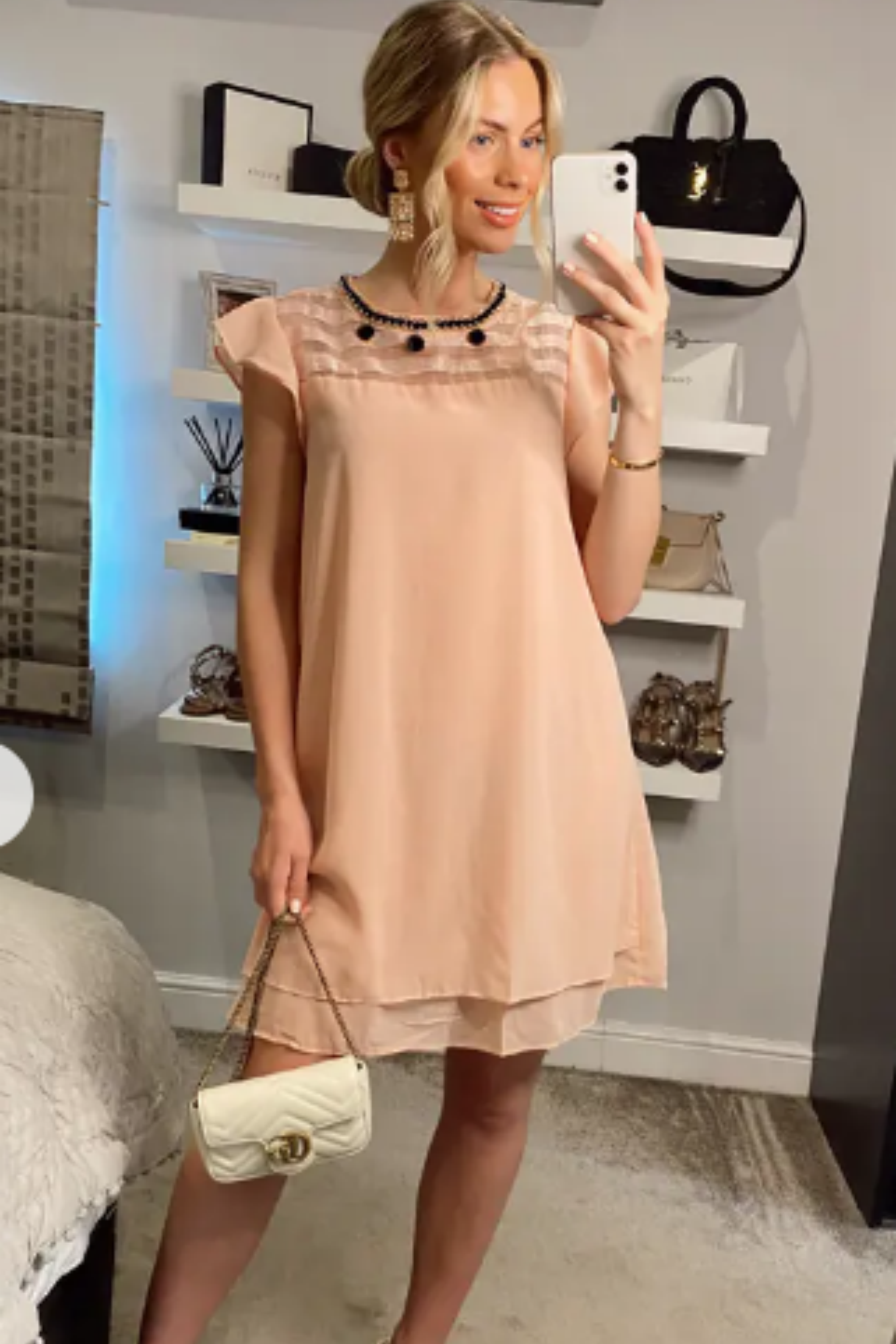 Ruffles Sleeves Chiffon Midi Dress (NUDE)
