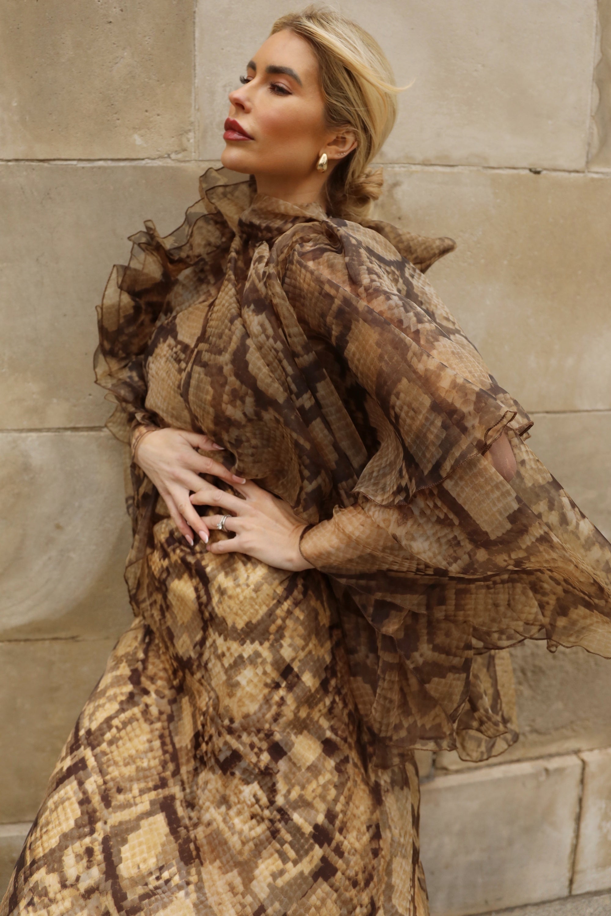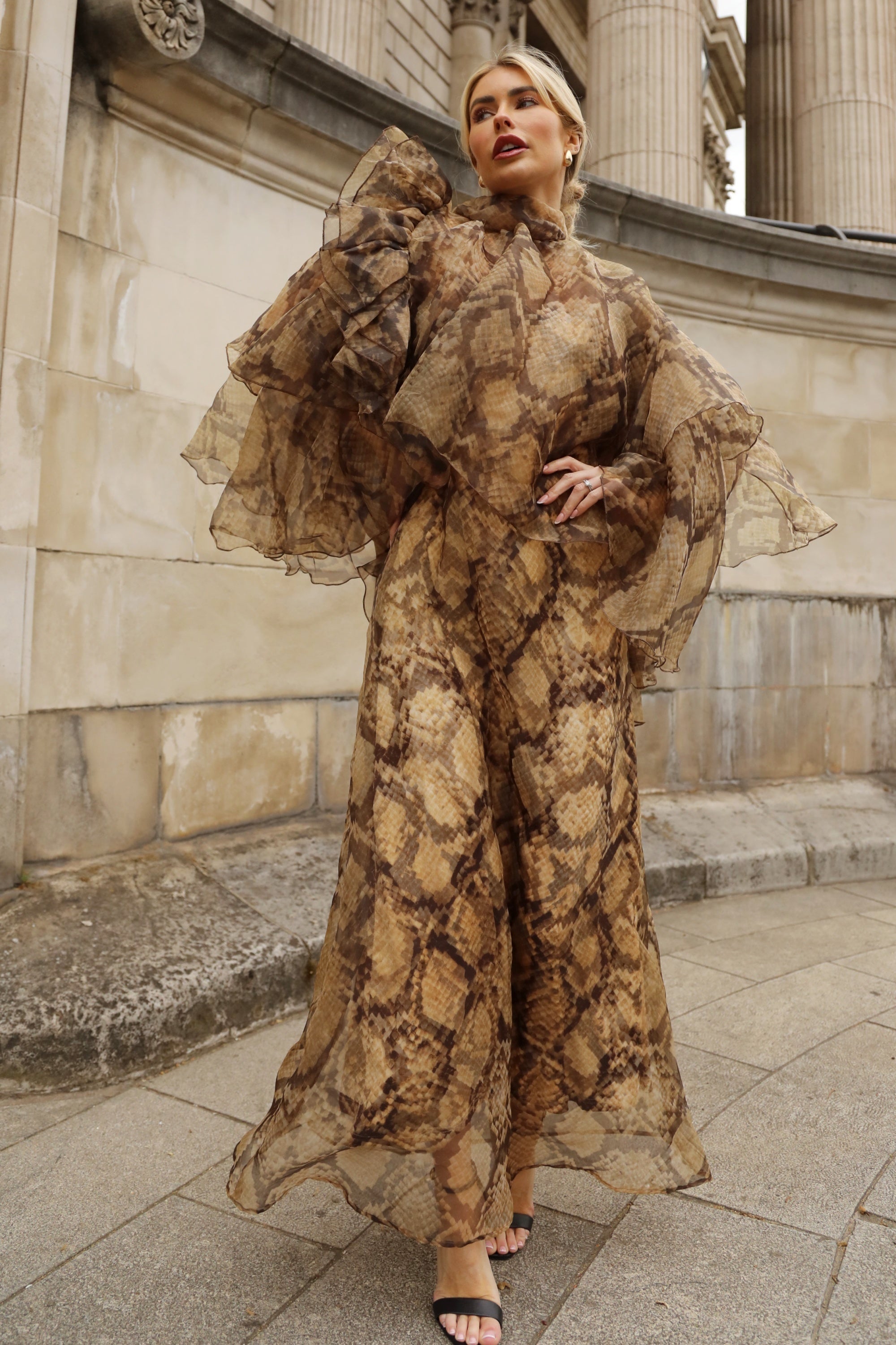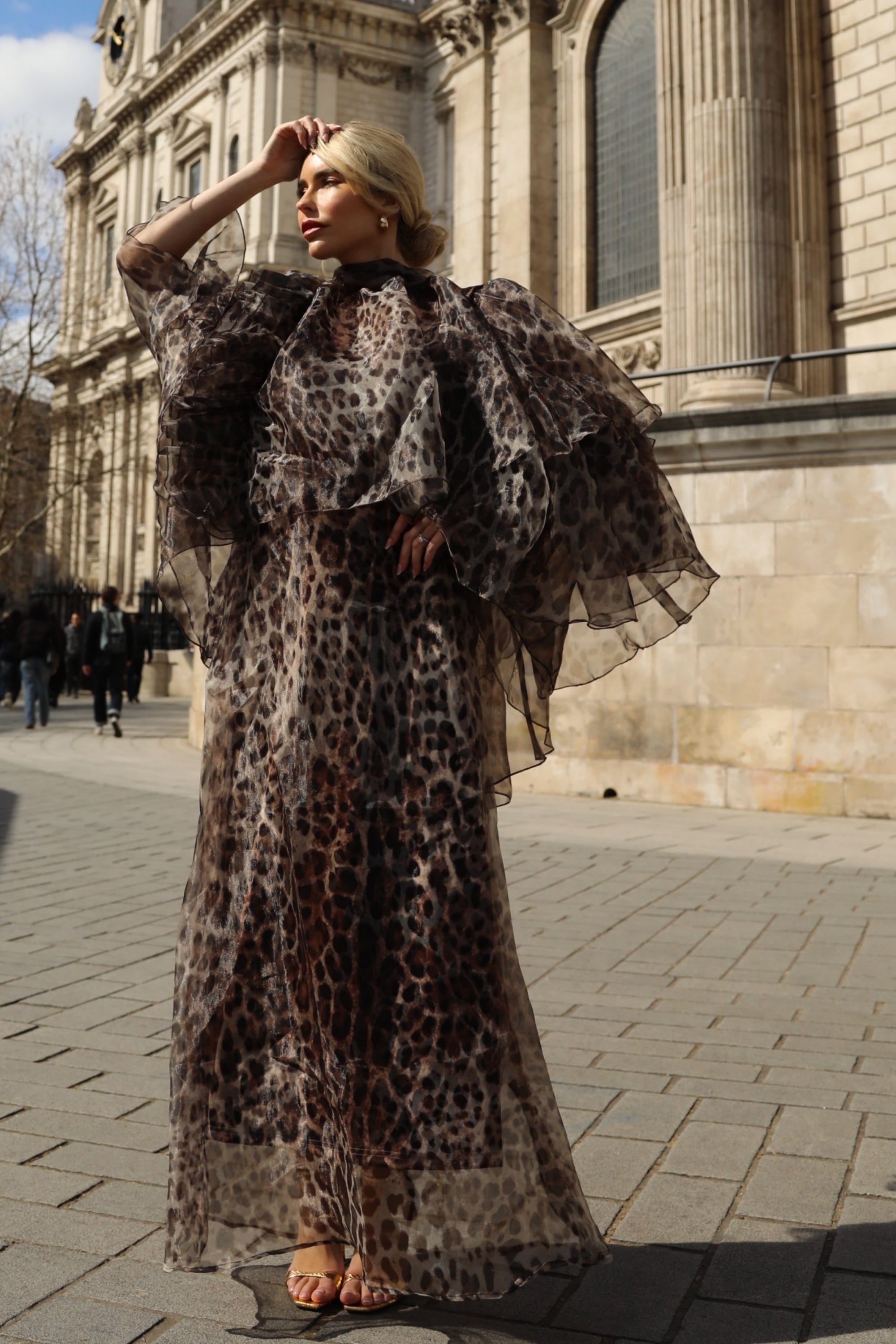 Leopard Print Organza Ruffle Statement Maxi Dress