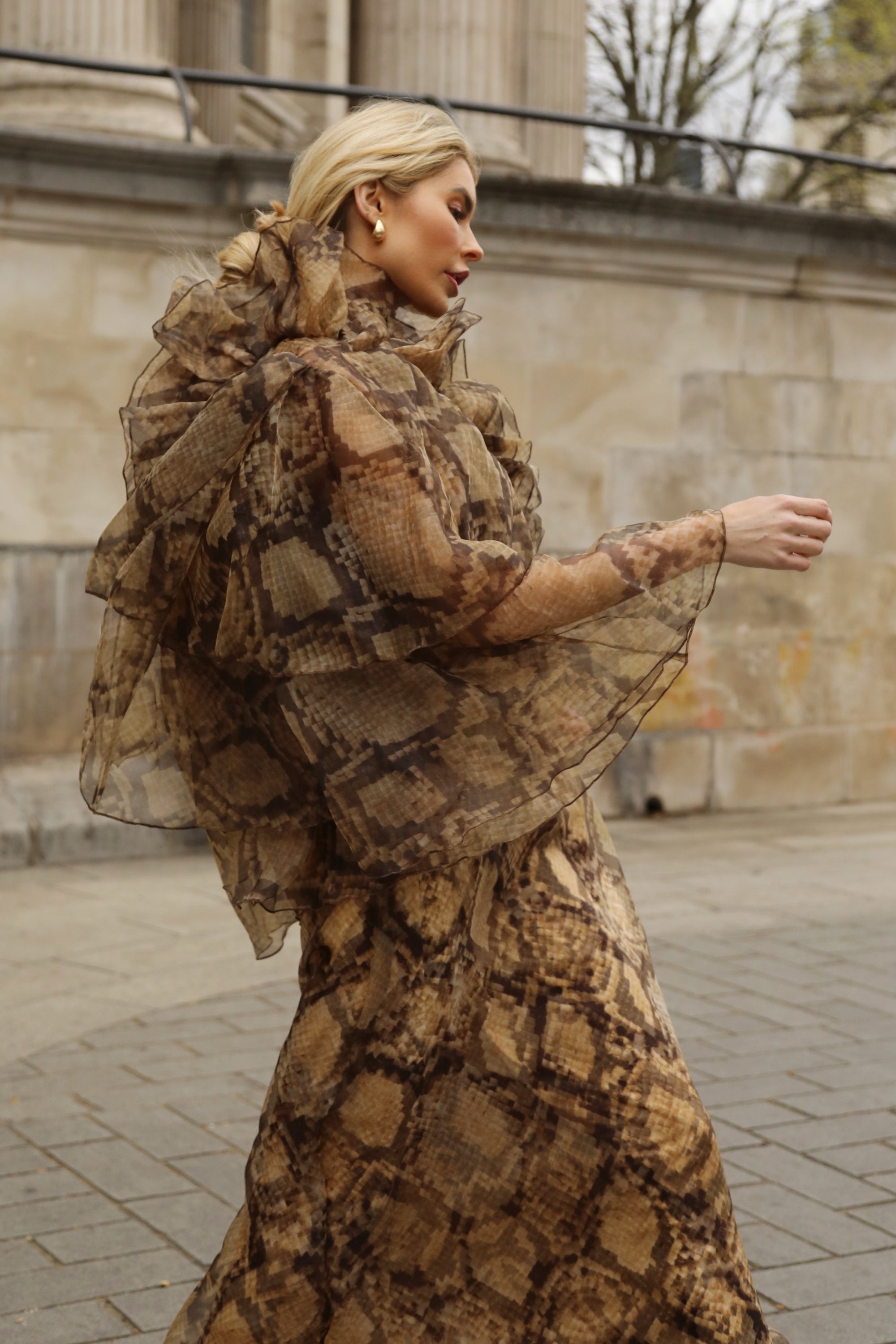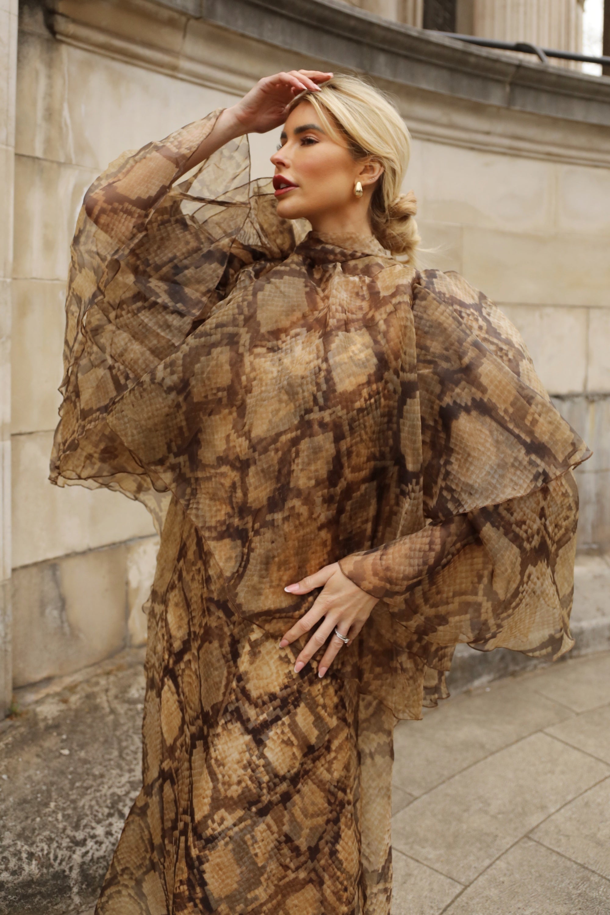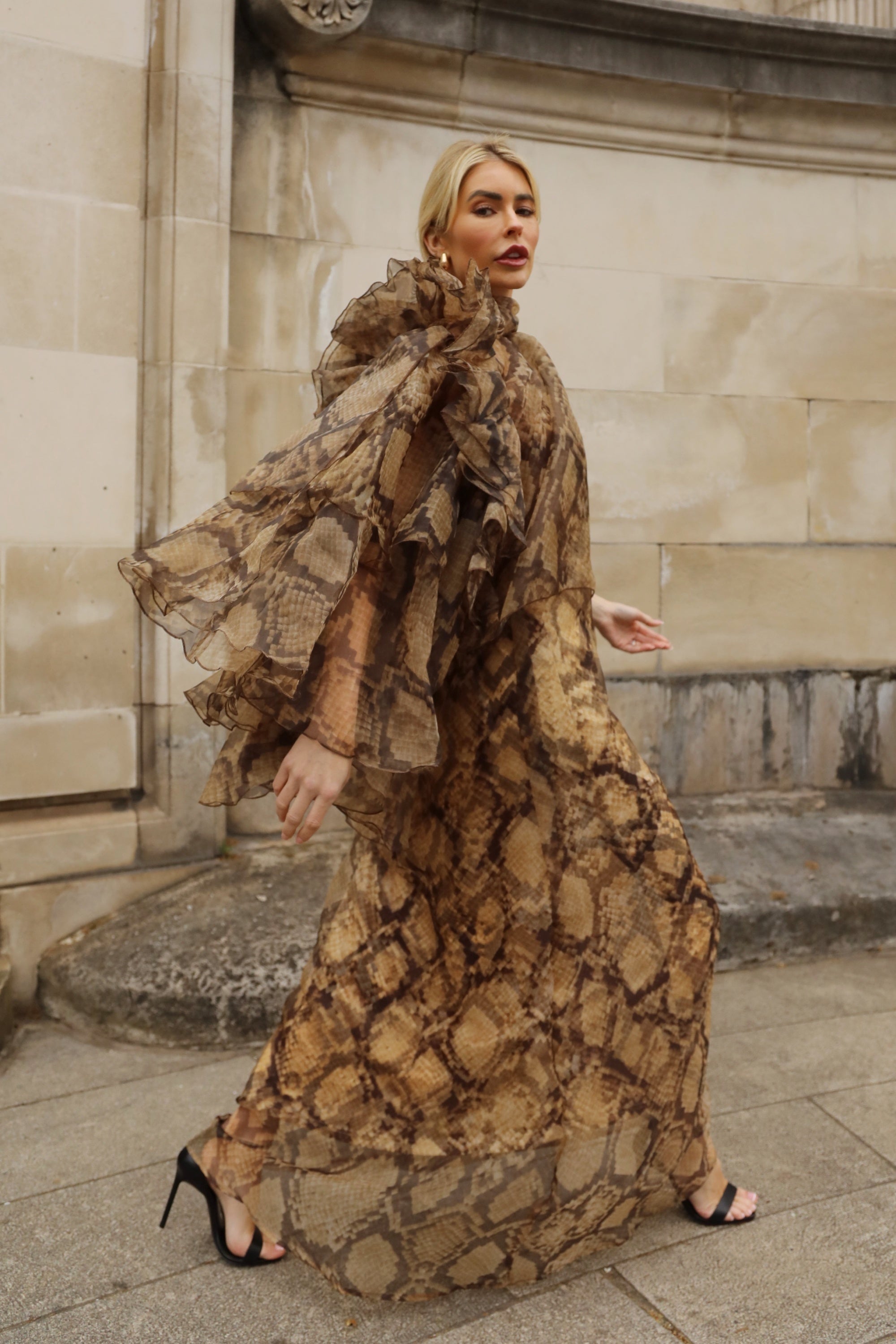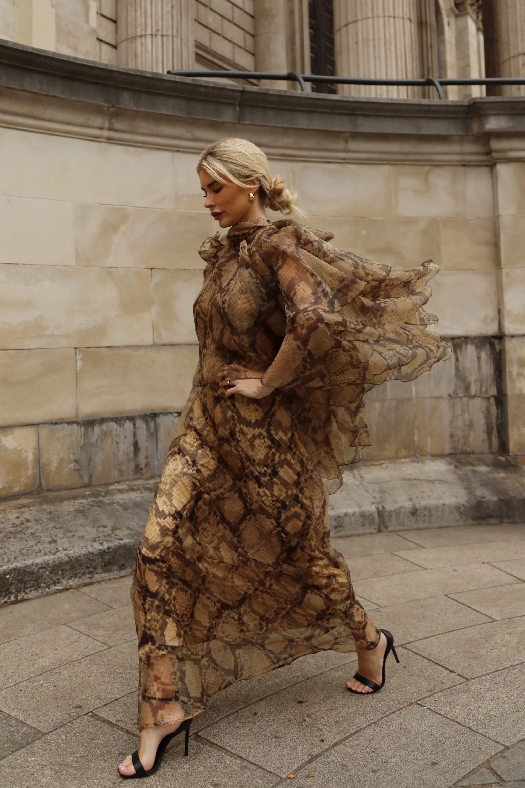 Leopard Print Organza Ruffle Statement Maxi Dress