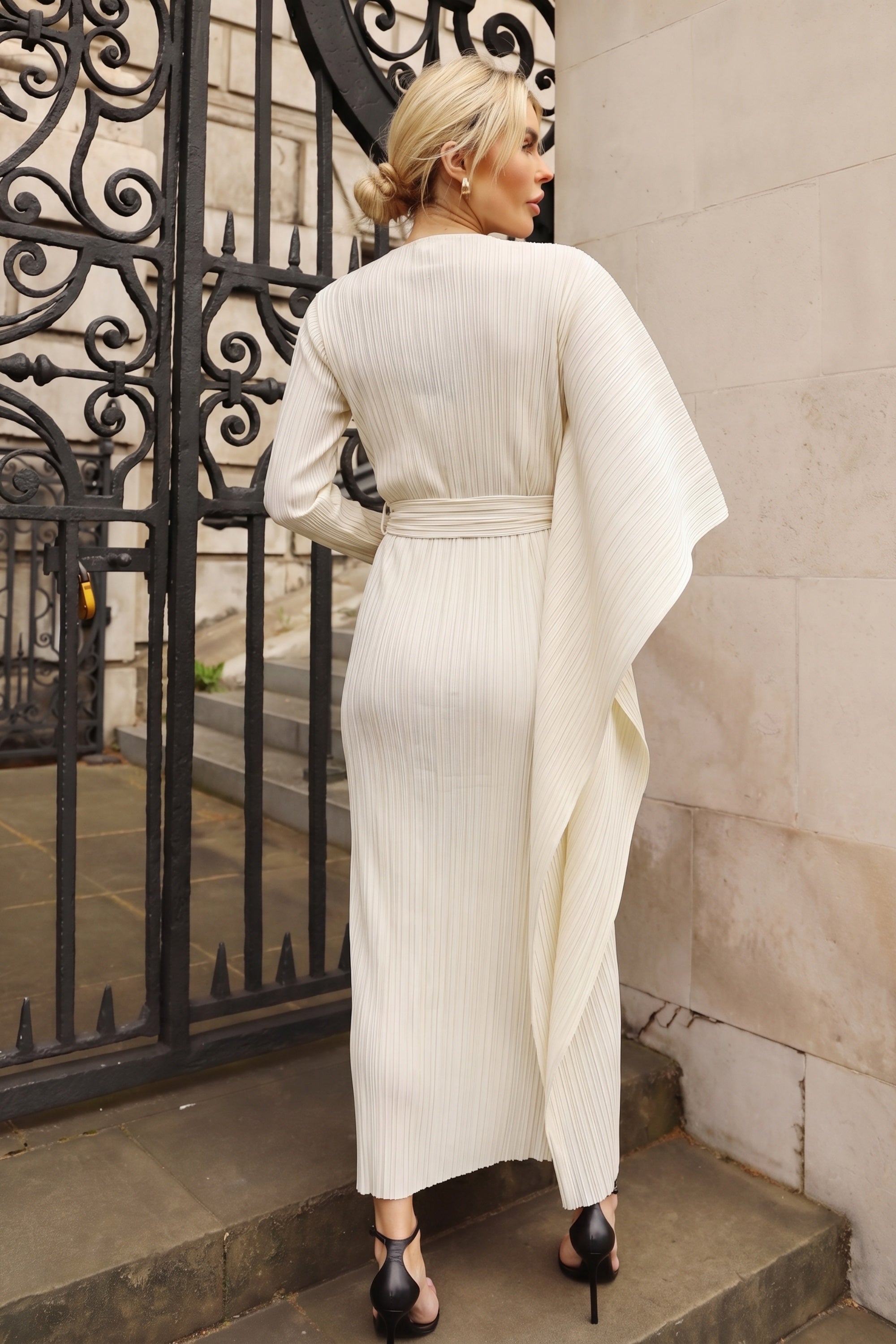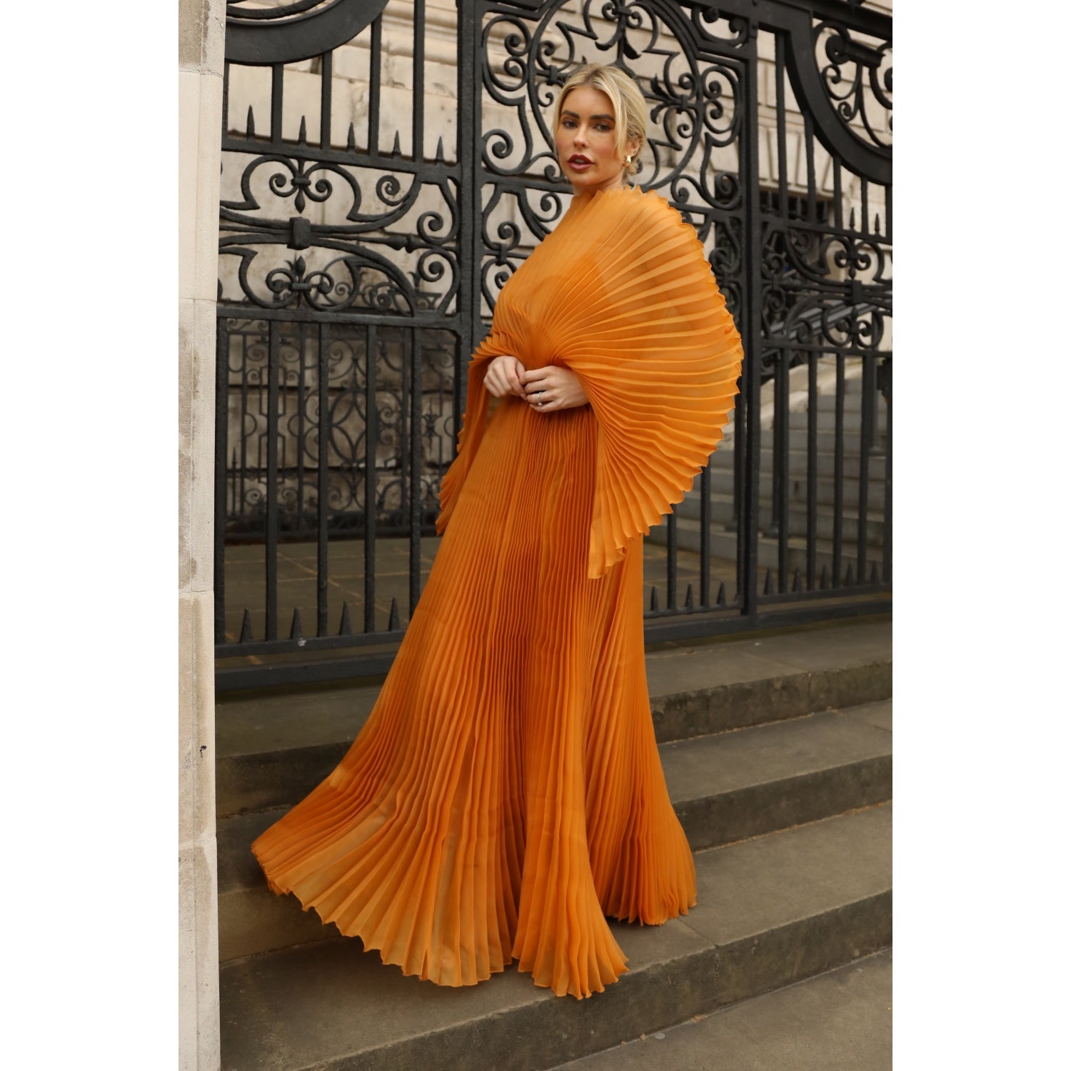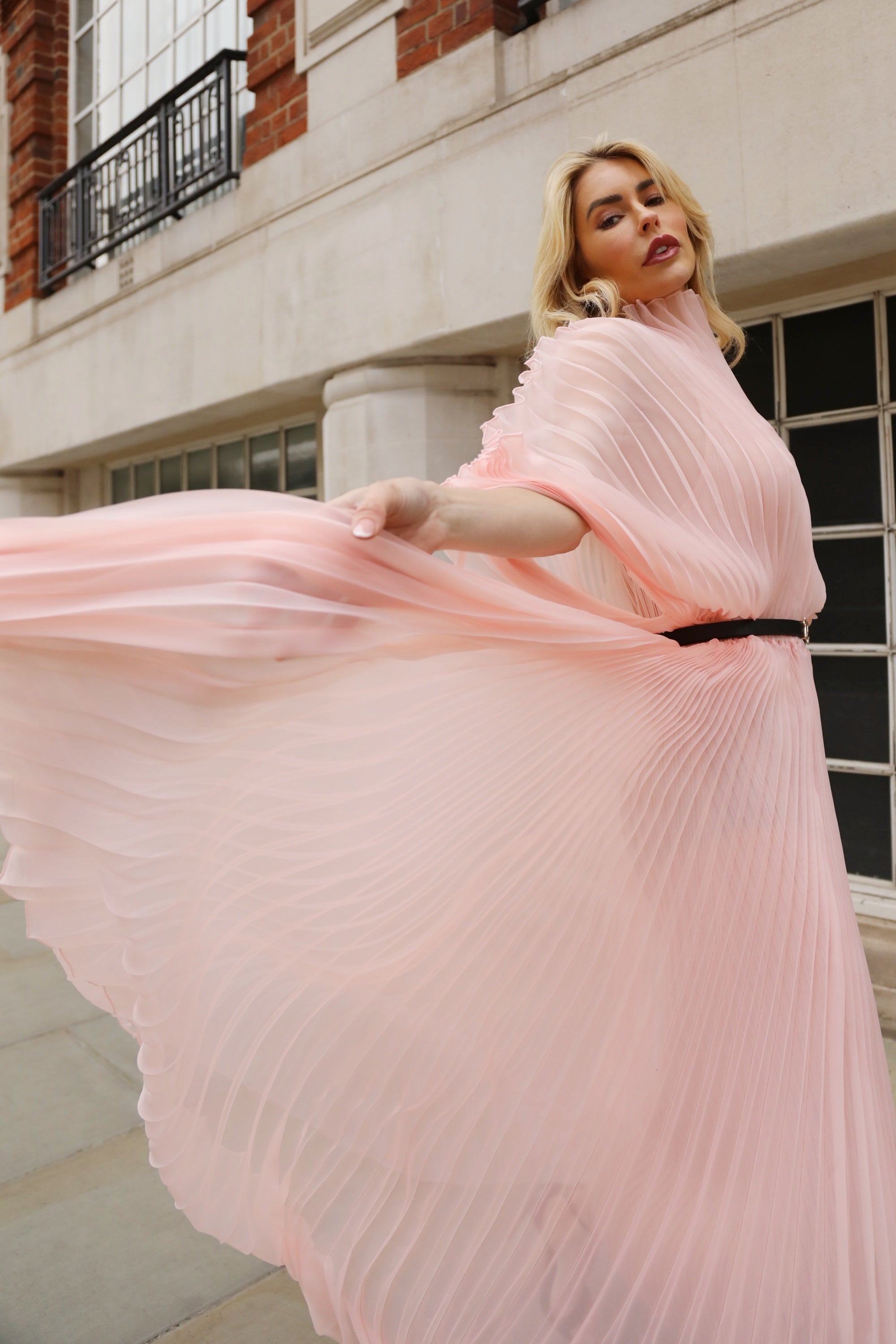 Pleated long dress with organza pleated cape sleeves in Light Pink