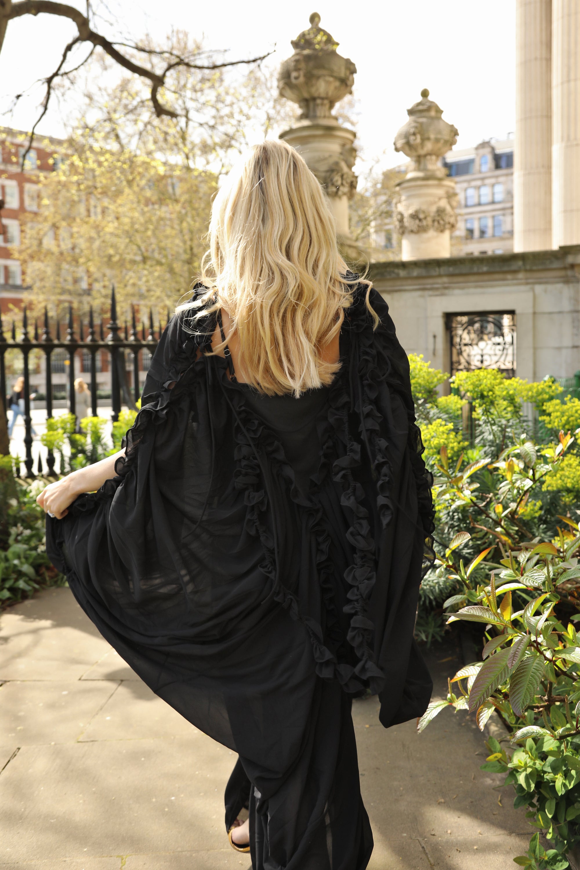 Full pleated Kimono sleeves cardigan top and tie dye print maxi skirt in black