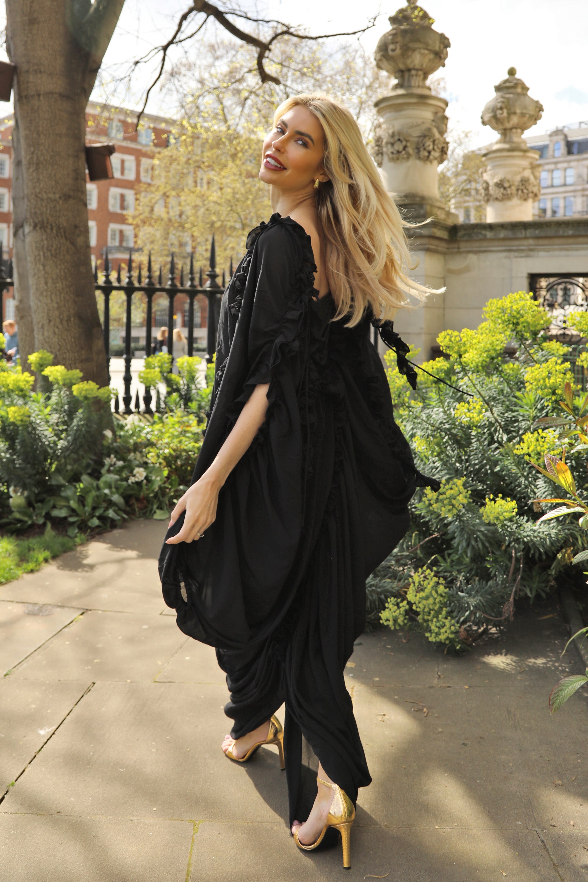 Multi Diamond and Pearl Embellished Open Back Maxi Dress