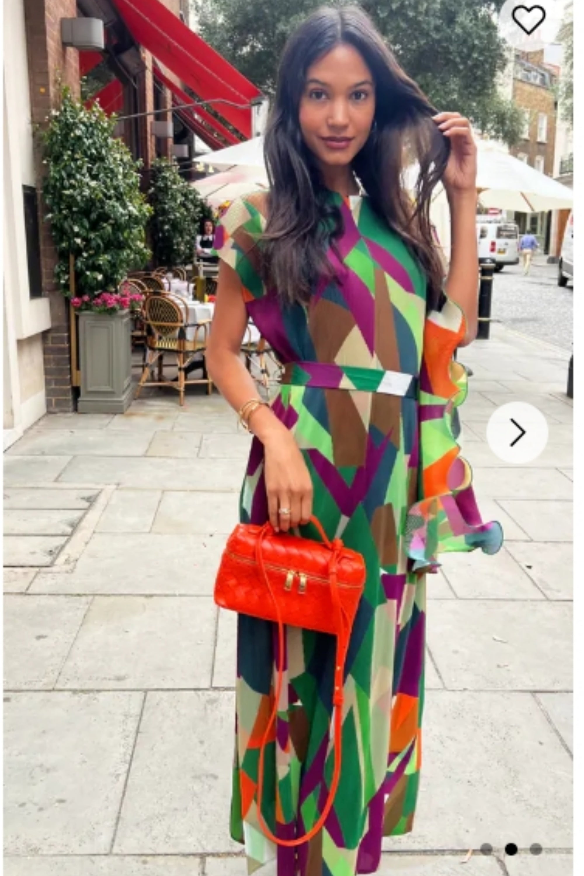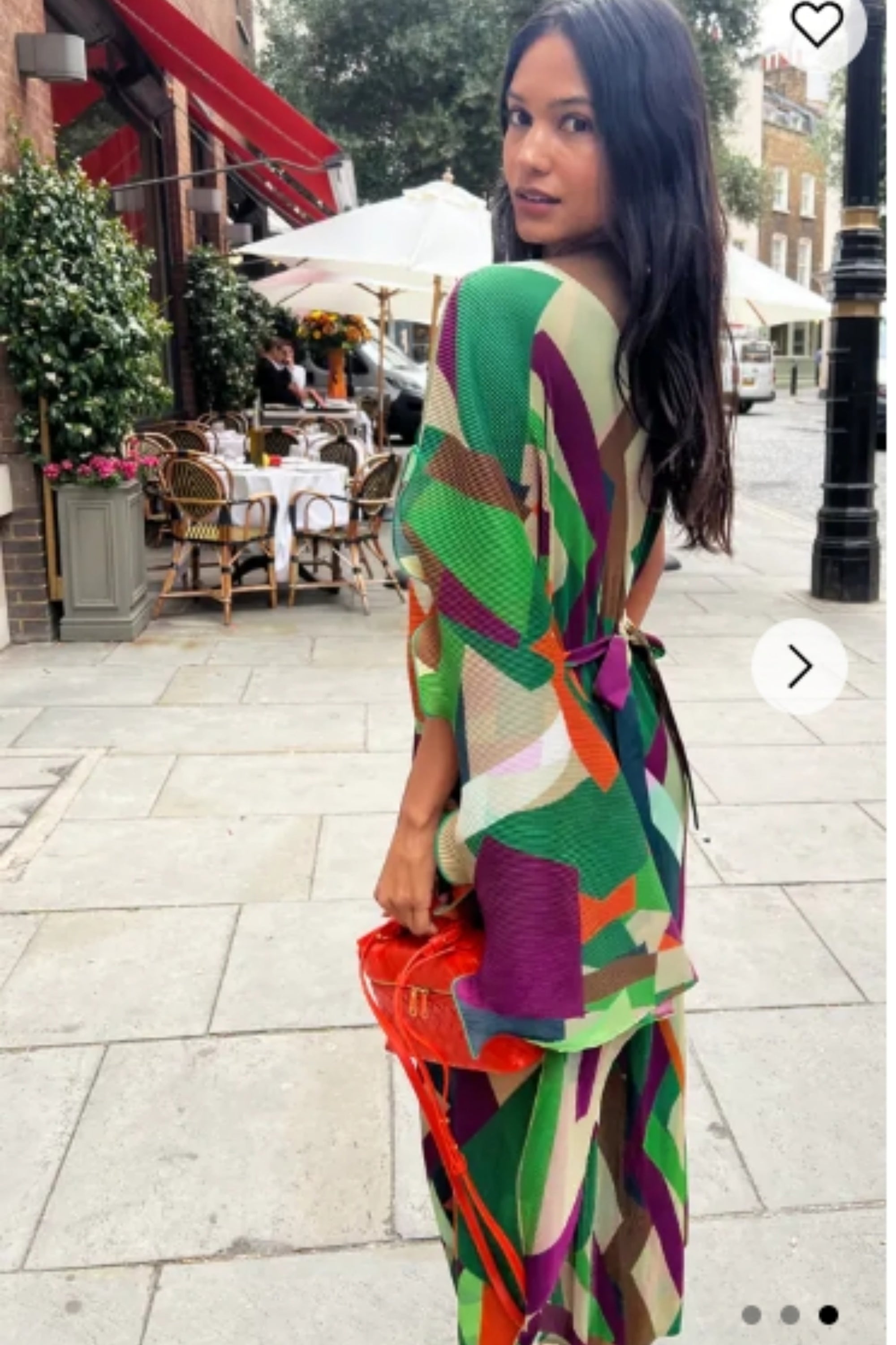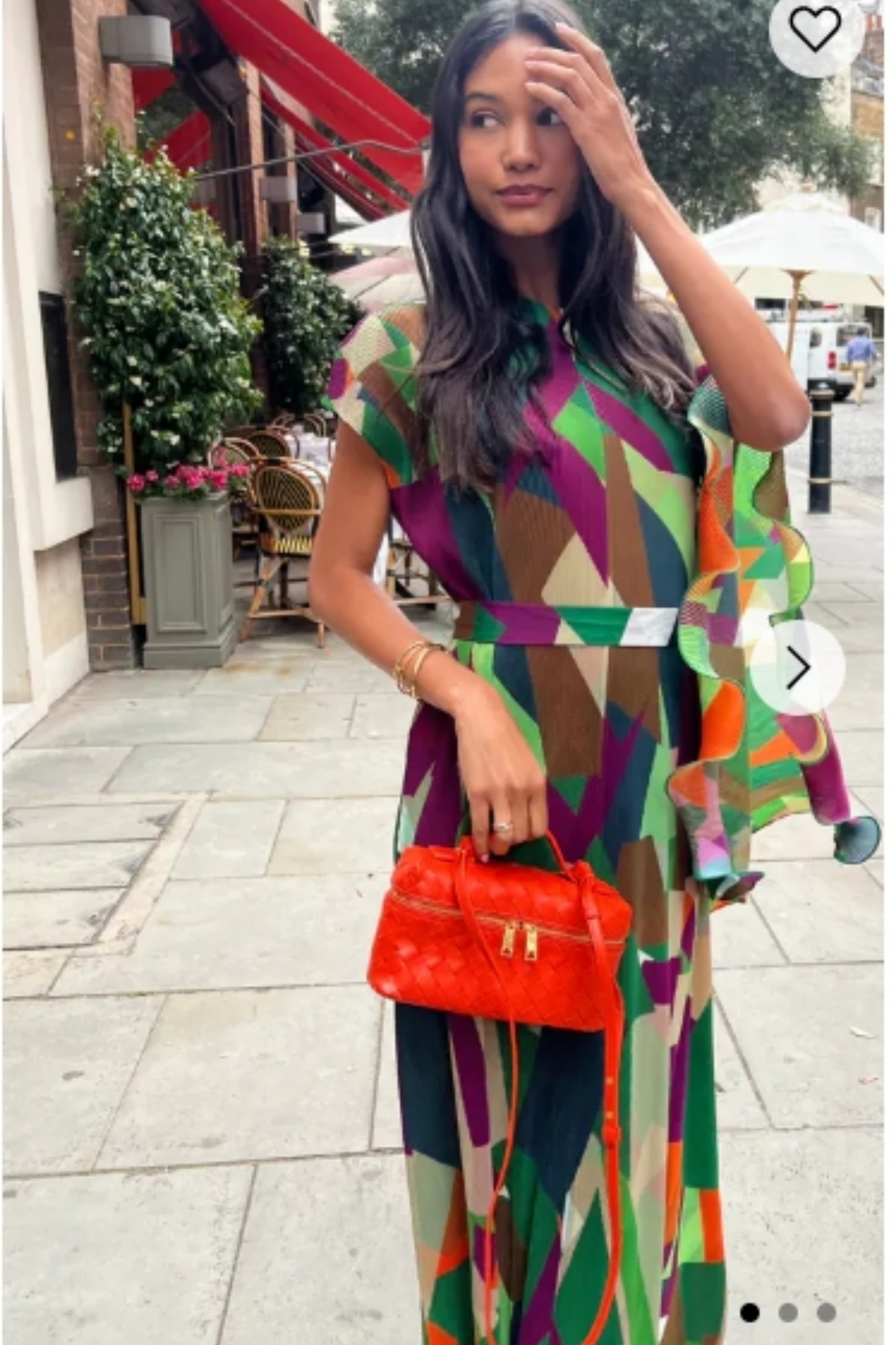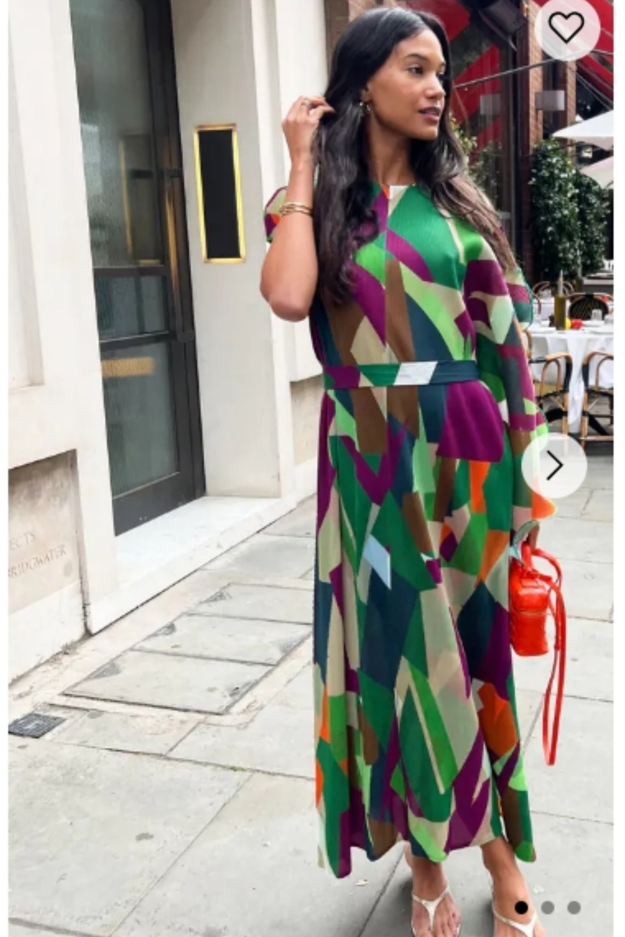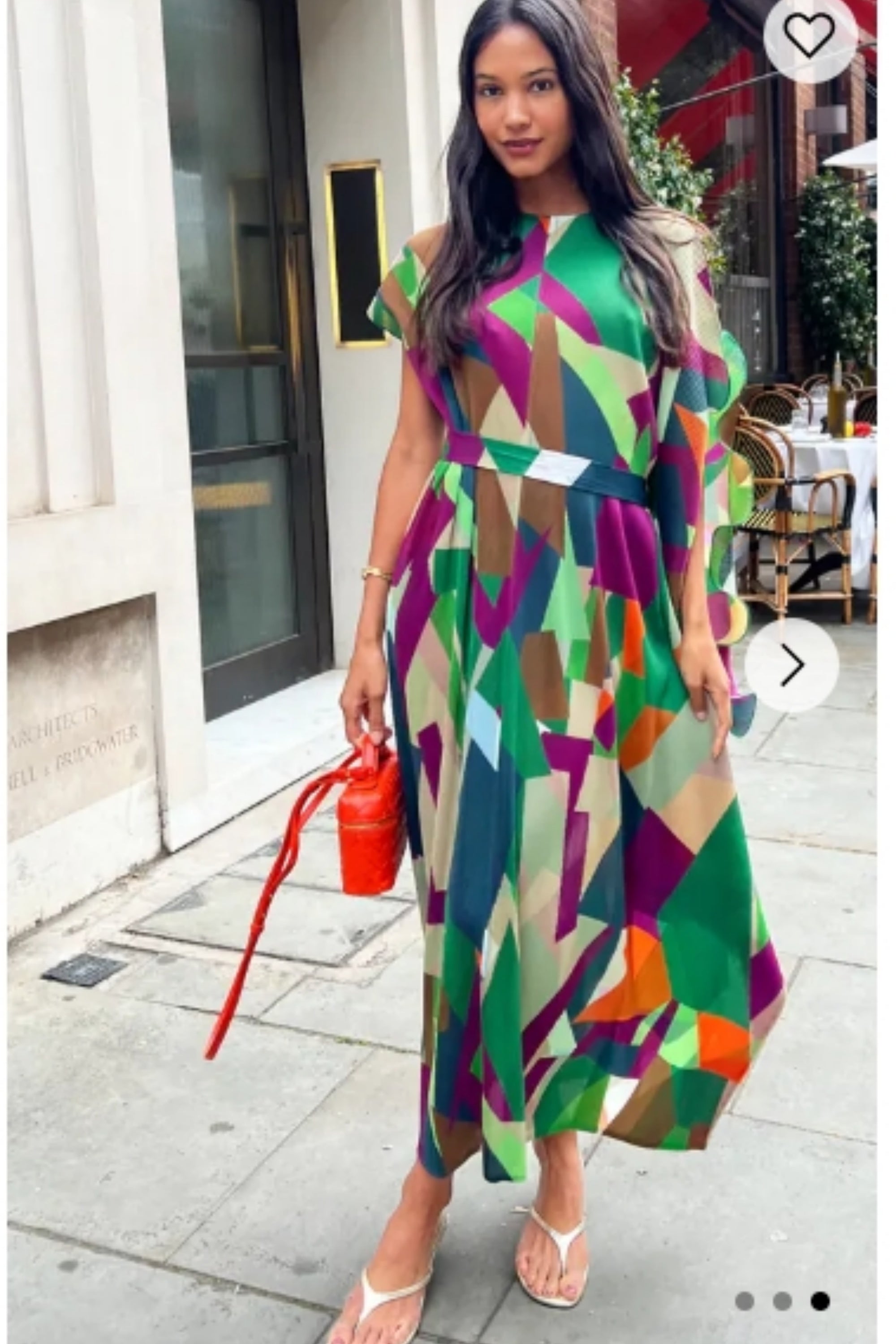Aztec Print Pleated Dress in asymmetric sleeves design in Green