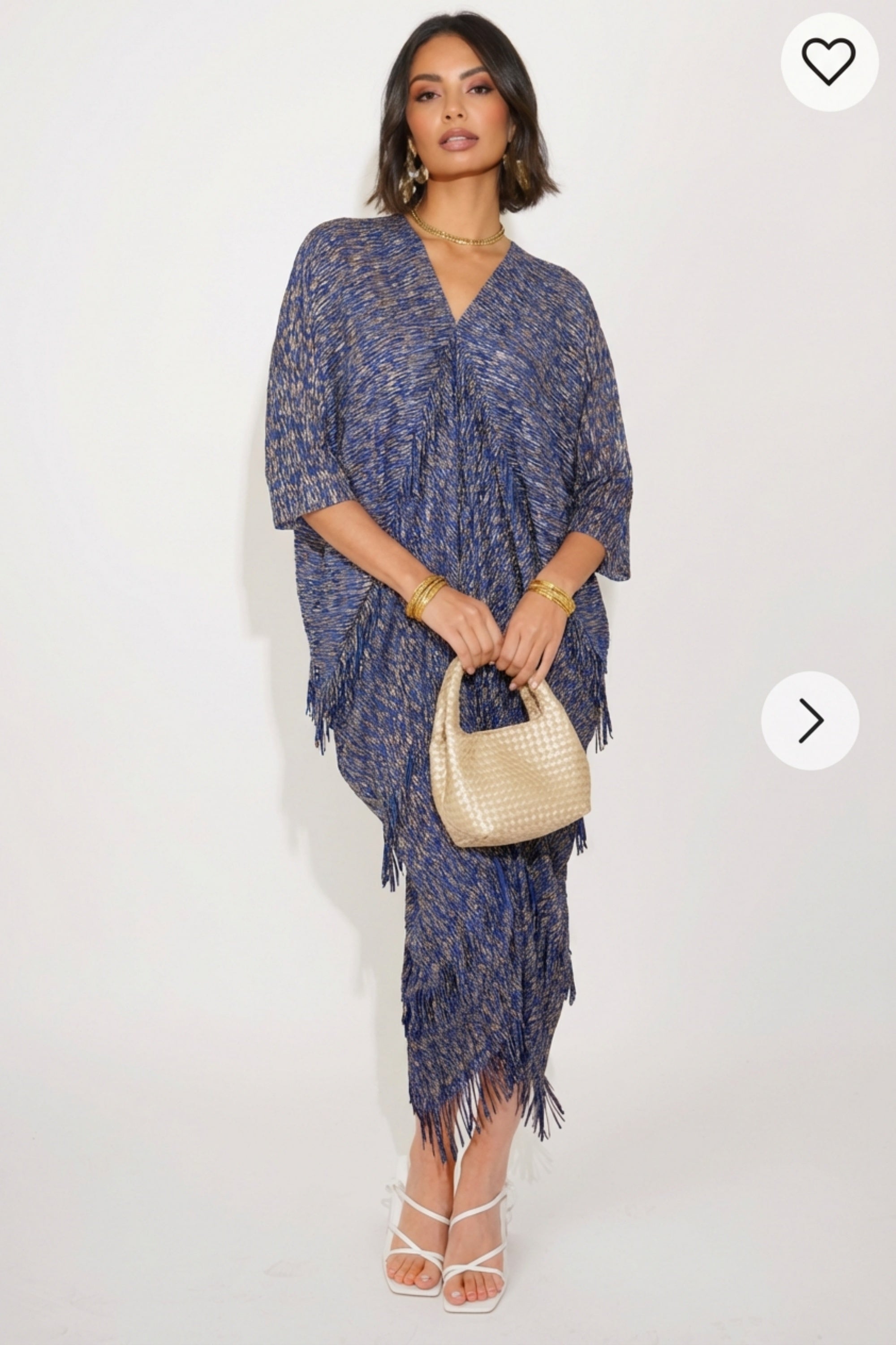 Full pleated Kimono sleeves cardigan top and tie dye print maxi skirt in Royal Blue